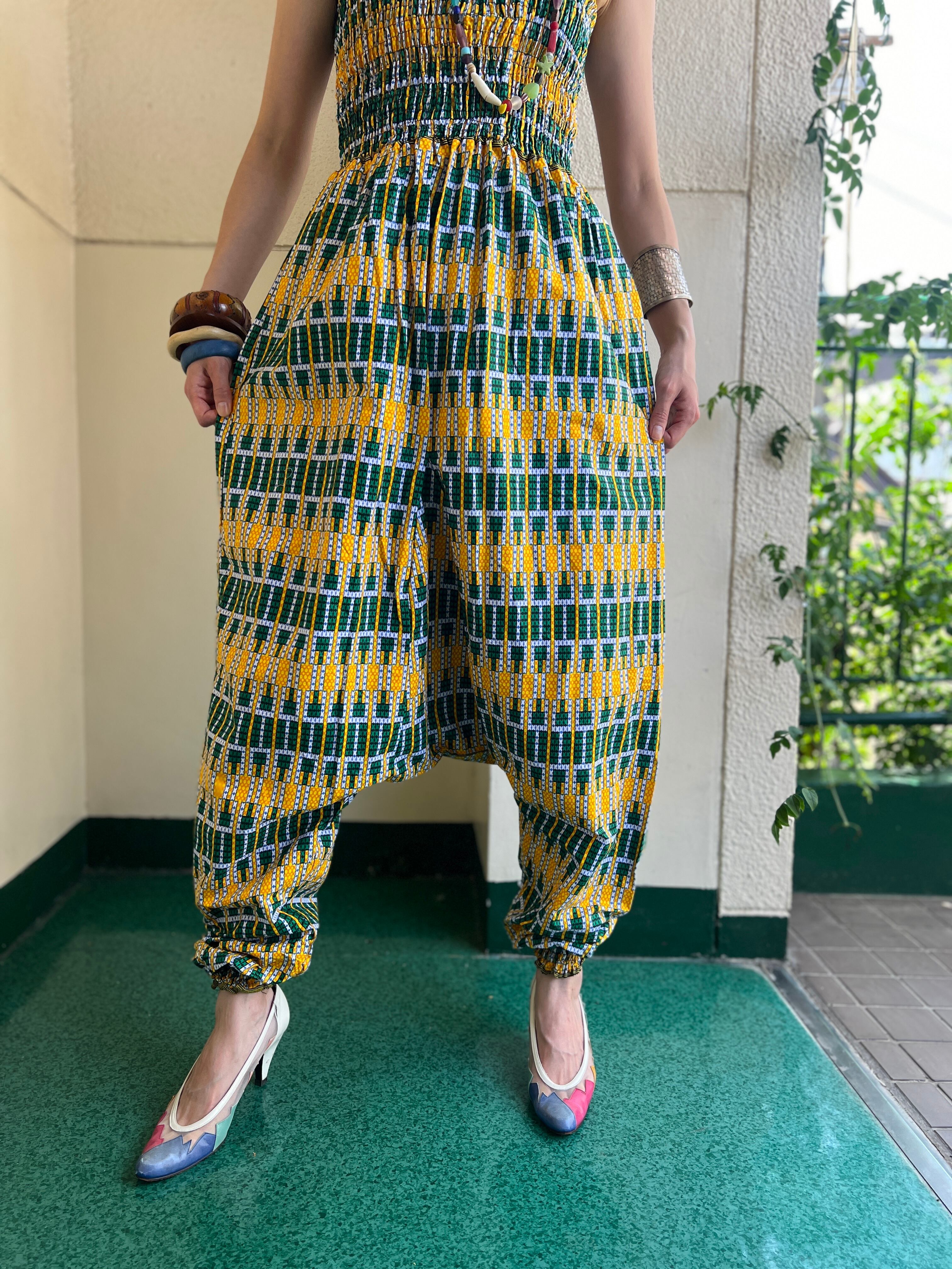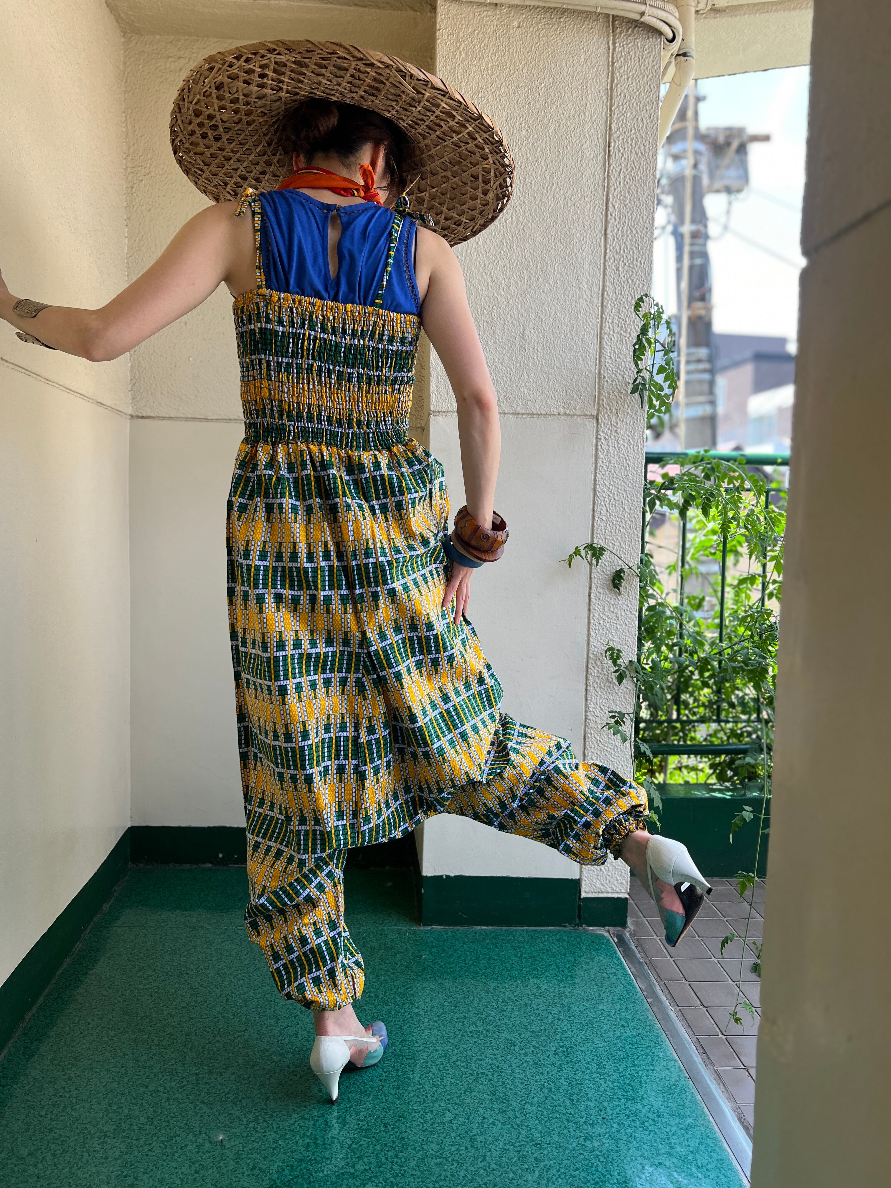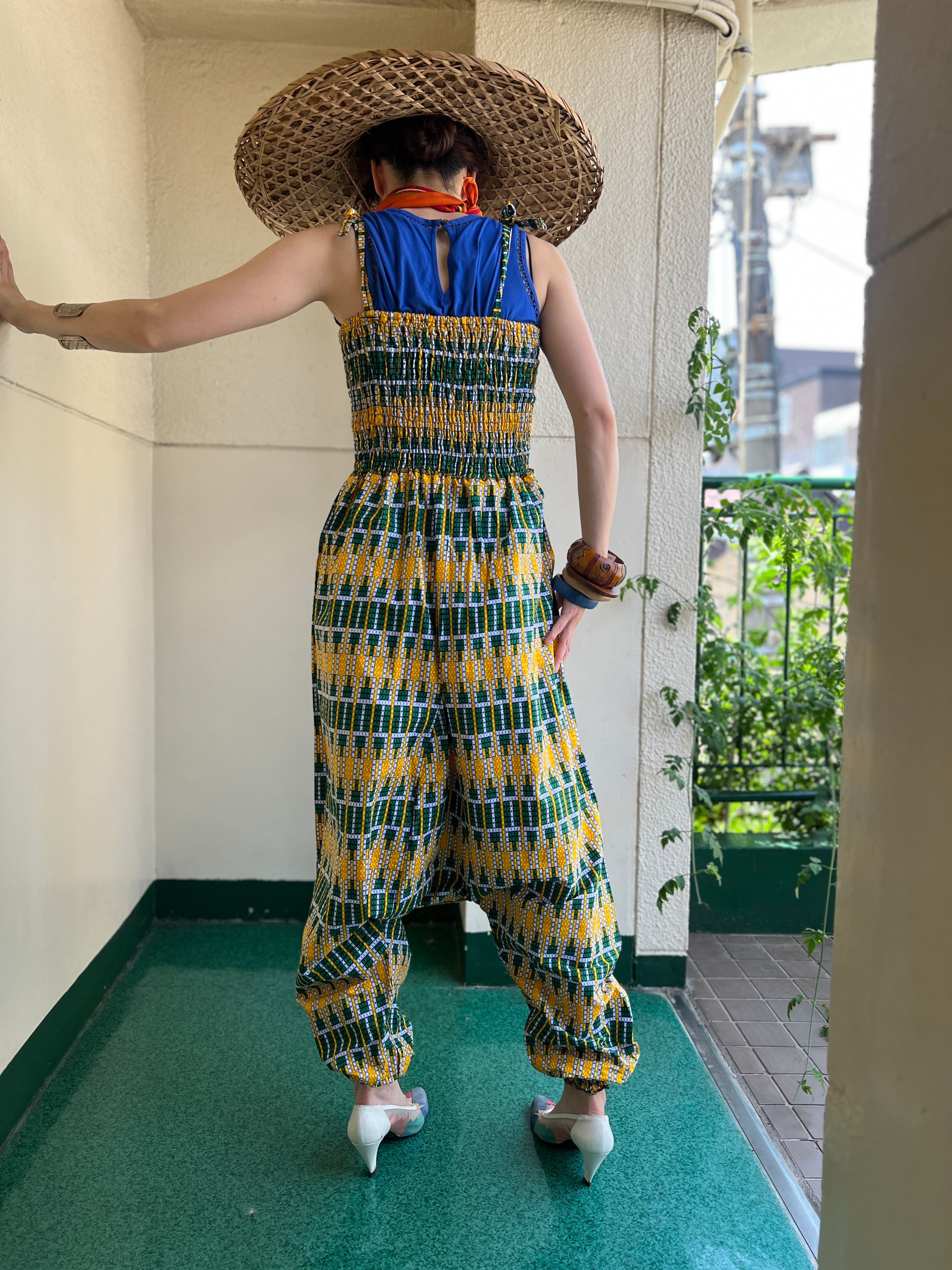 (フリーサイズですが、ジャンプスーツとして着用する場合普段LLサイズの方が着用の場合は胸のゴムがきつめになる場合がございます。参考までに記載)