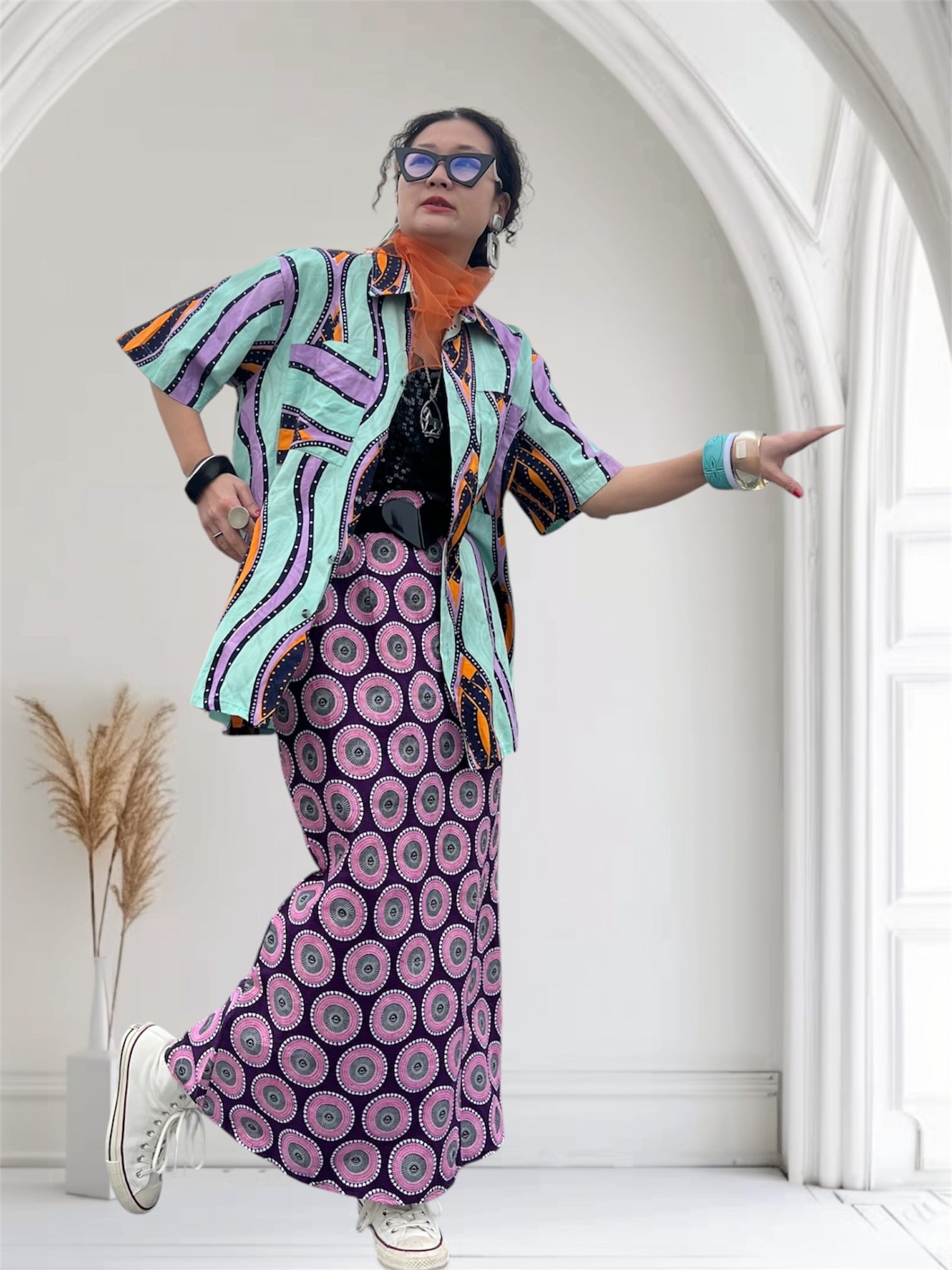 Vintage african batik cotton Heart skirt ( ヴィンテージ アフリカン バティック ハート コットン スカート )