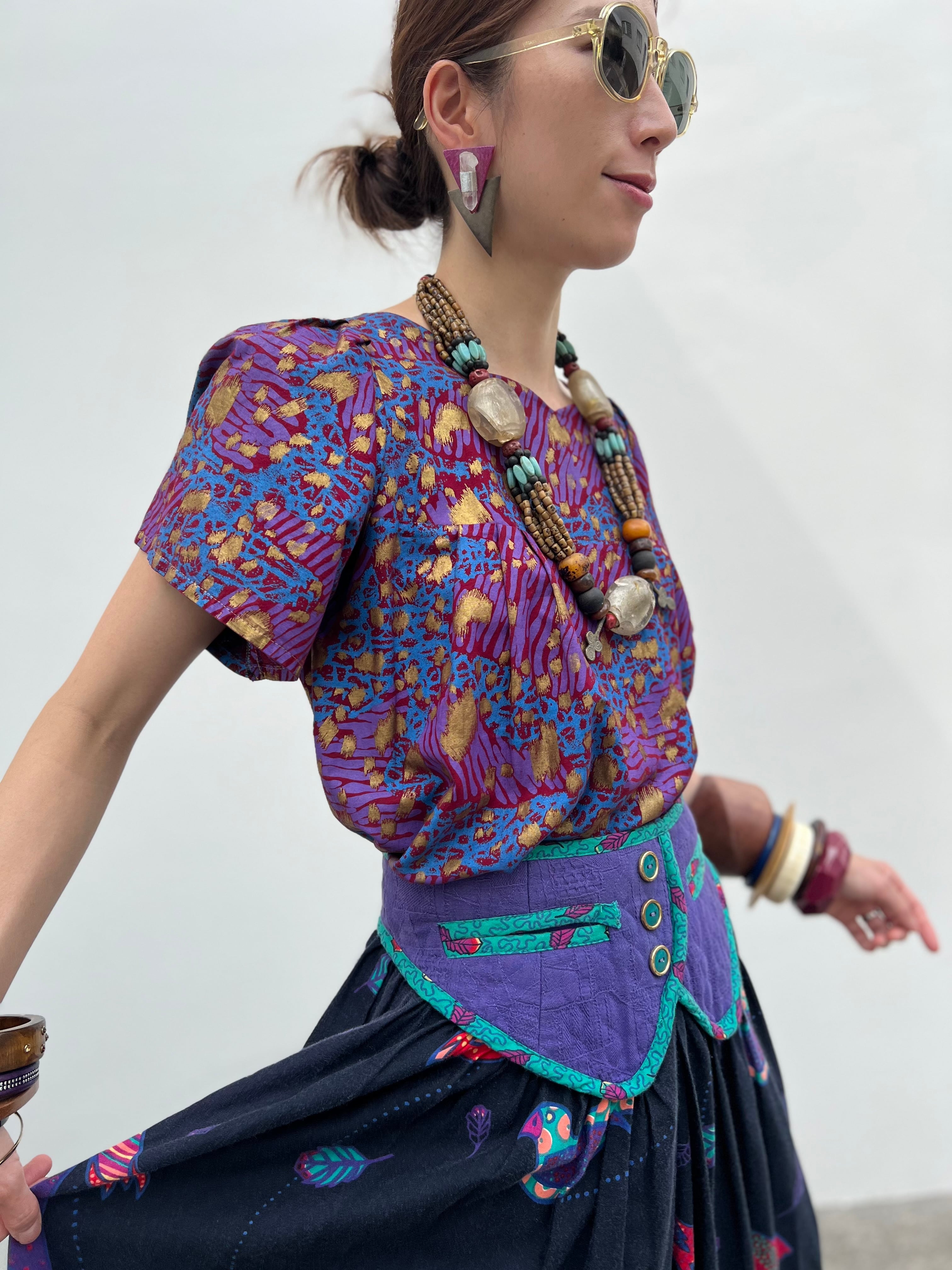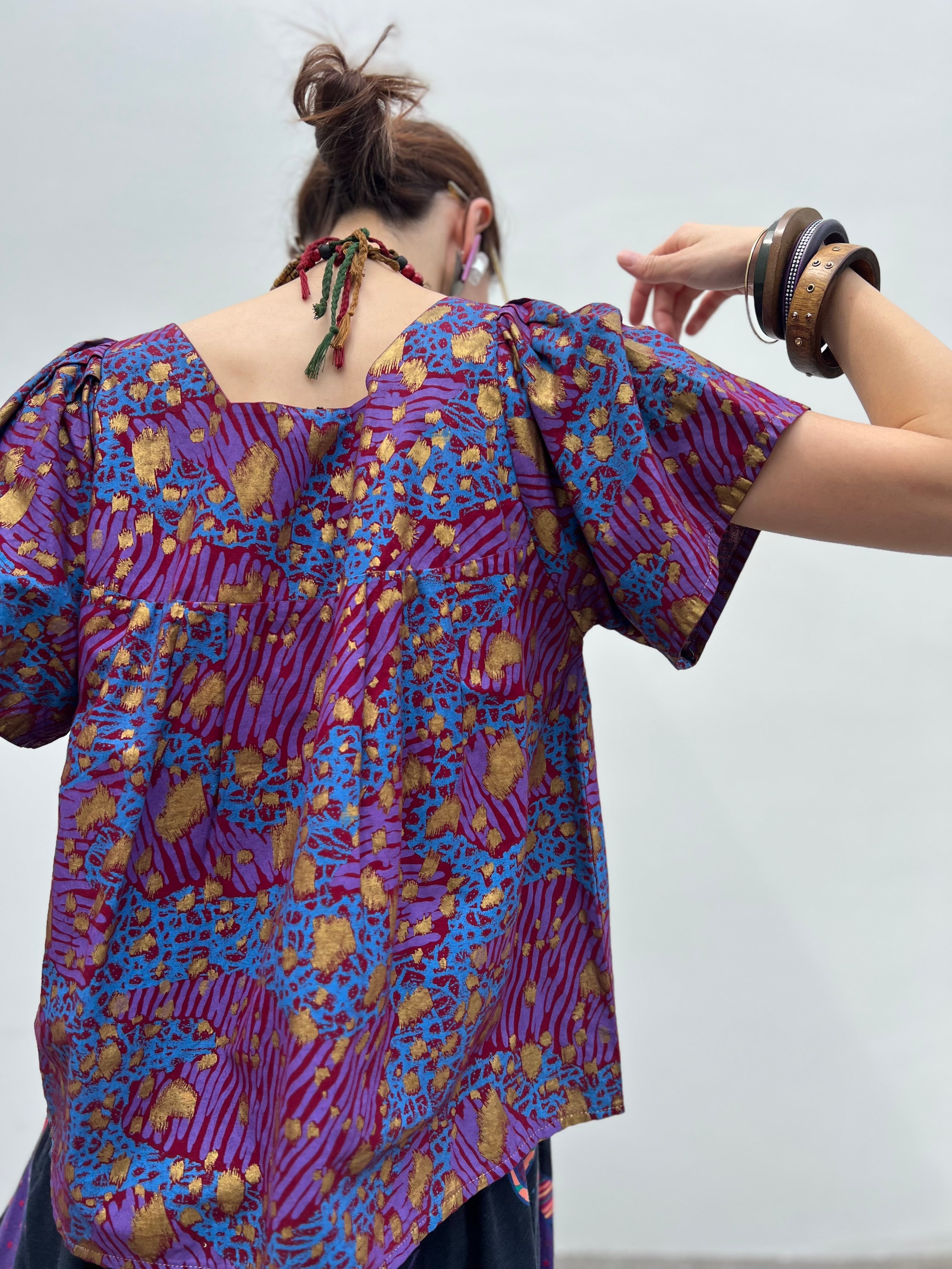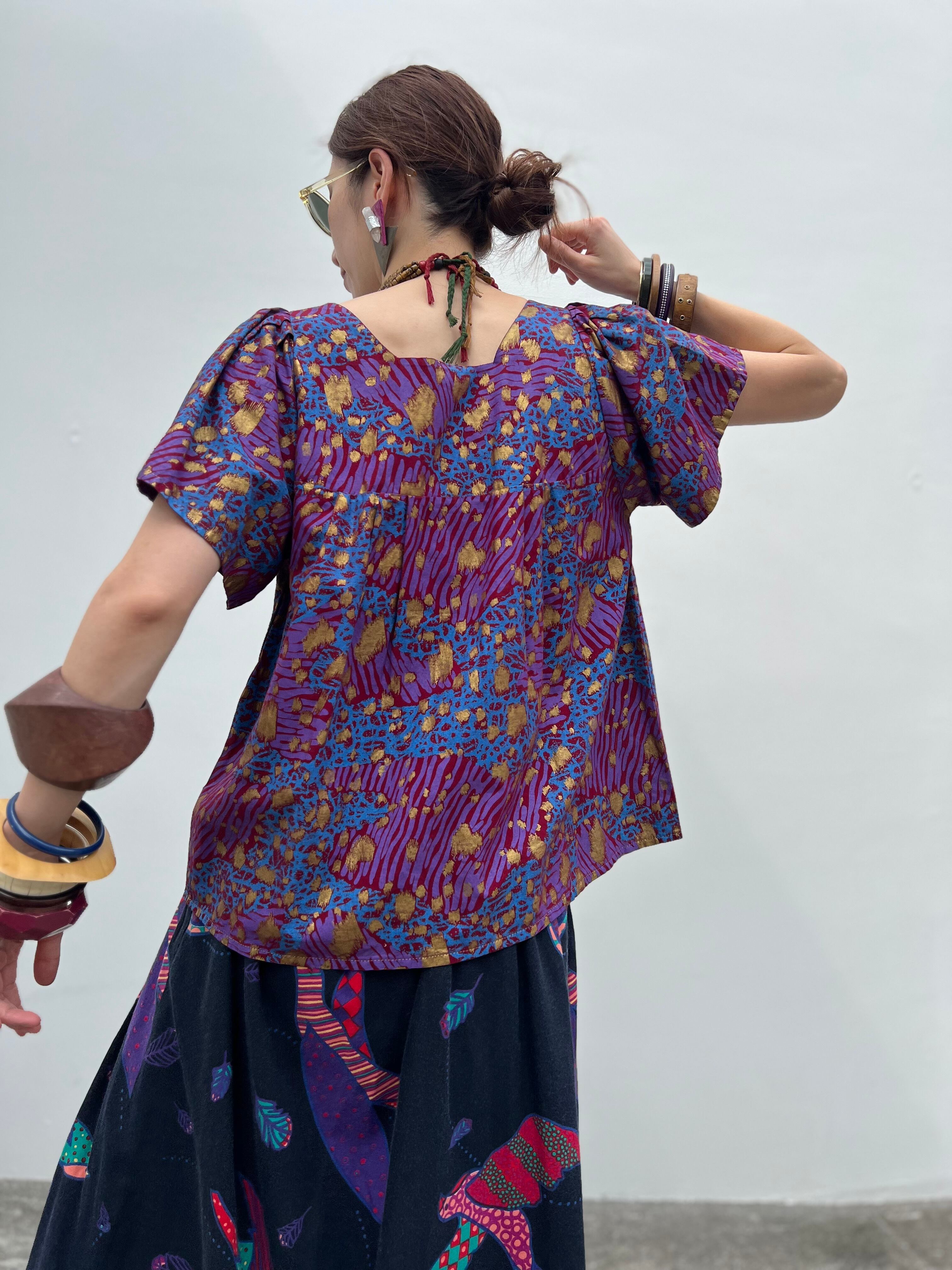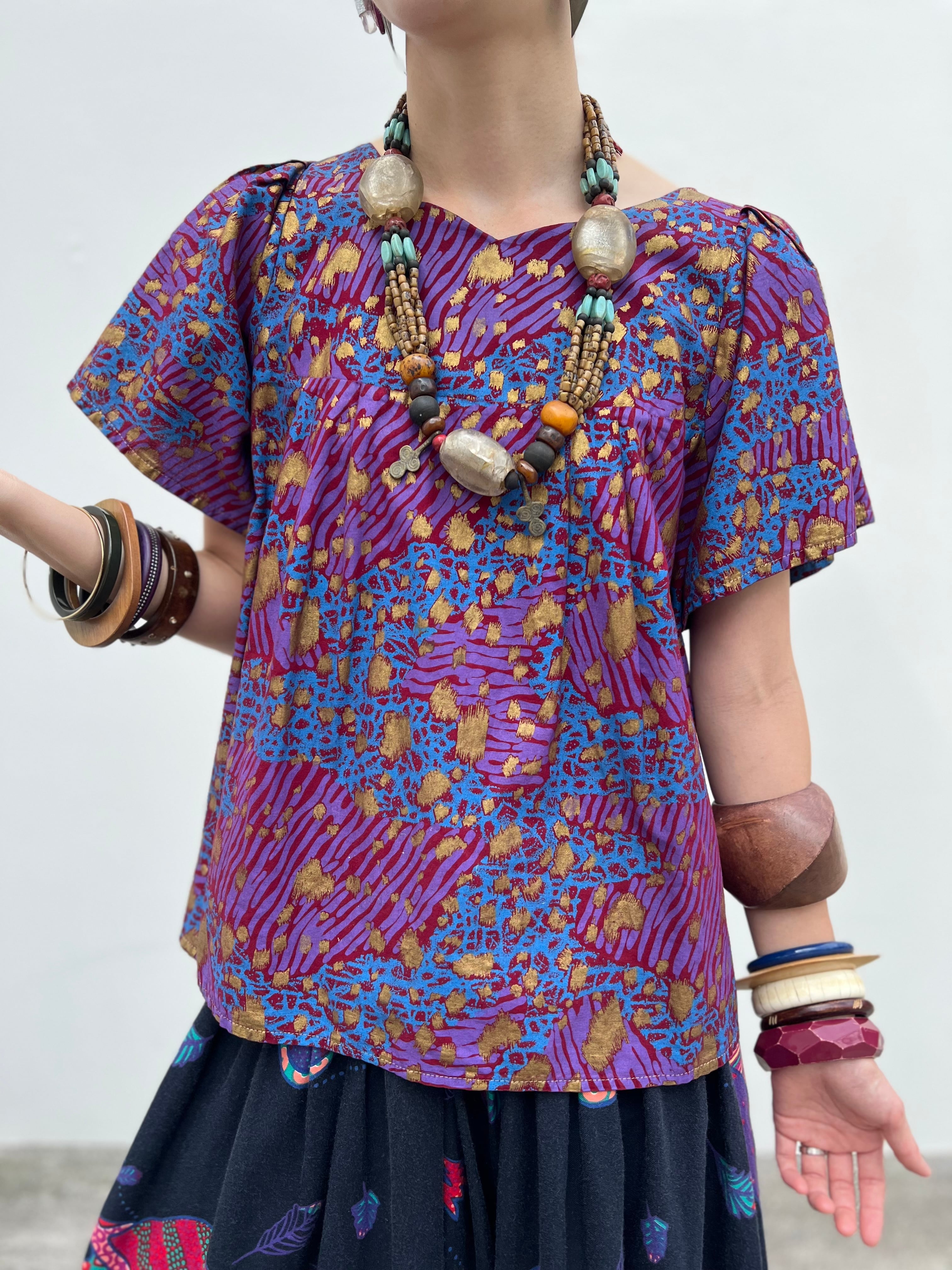Vintage african purple × animal print cotton tops ( ヴィンテージ パープル コットン トップス
