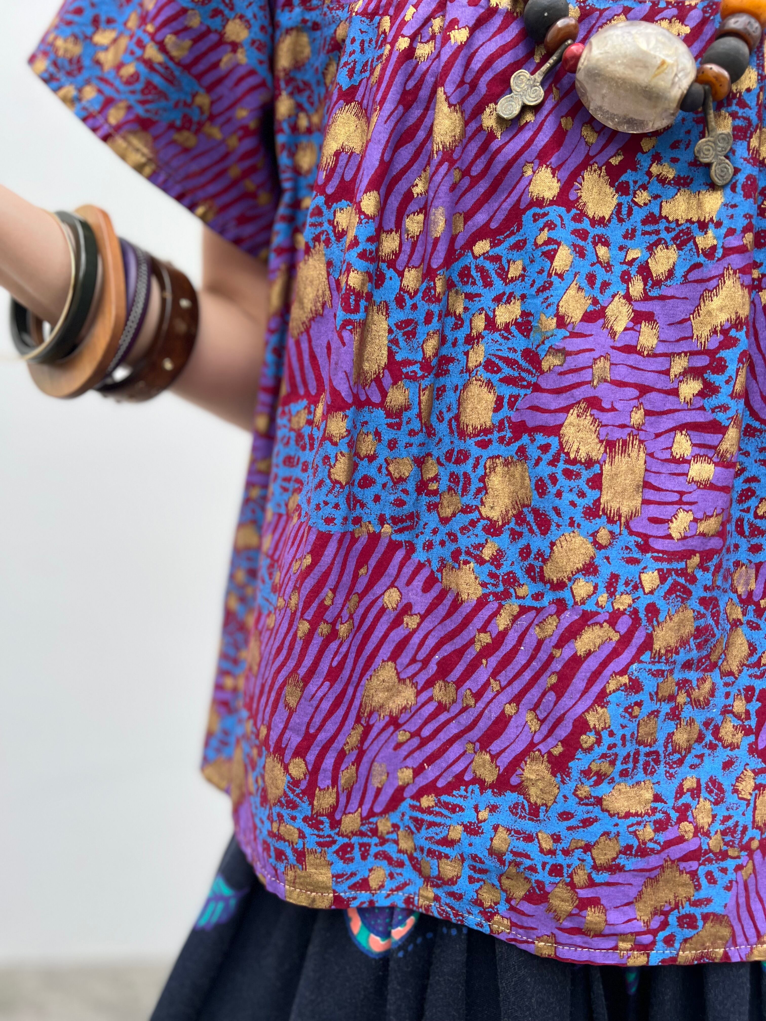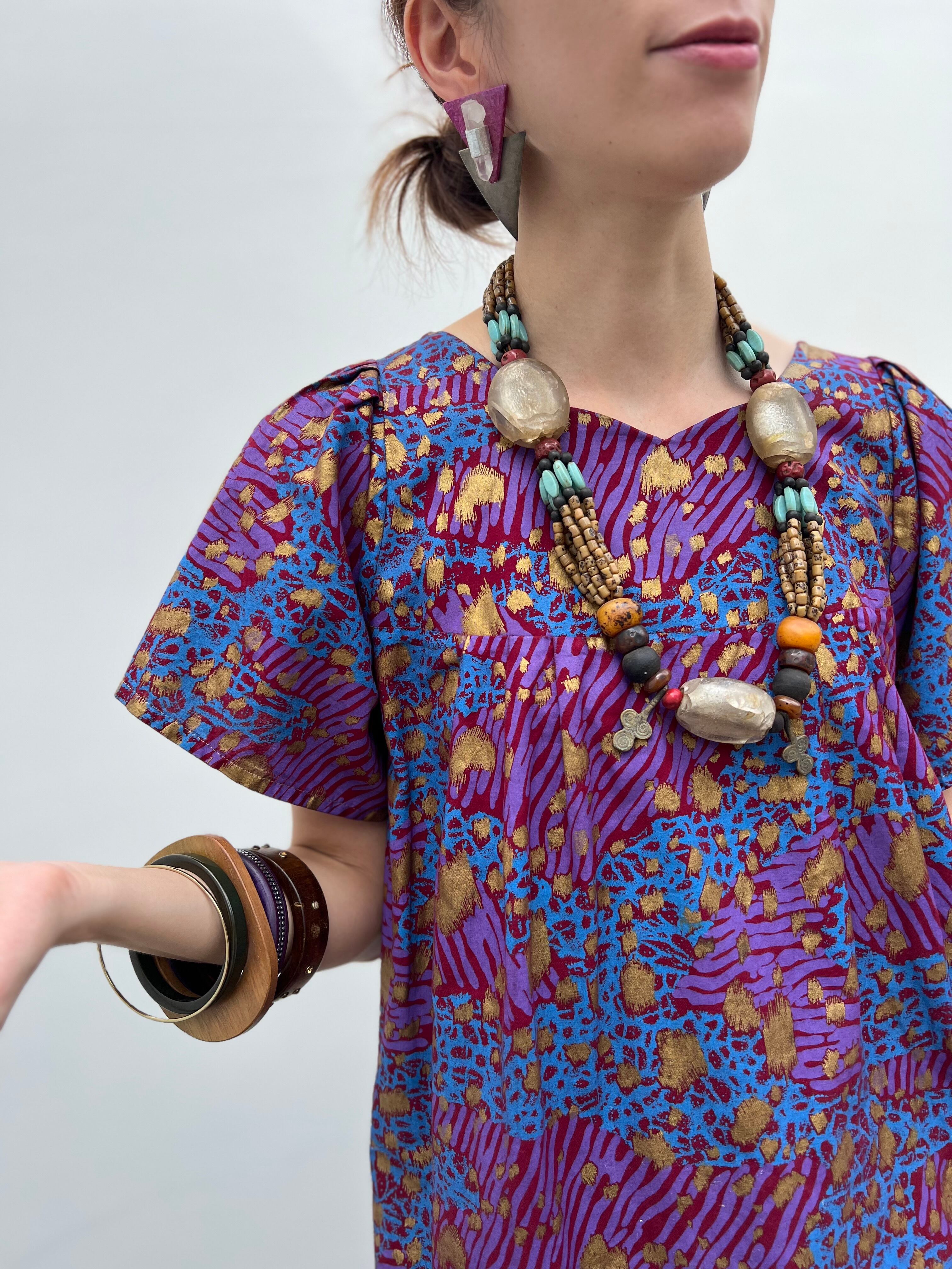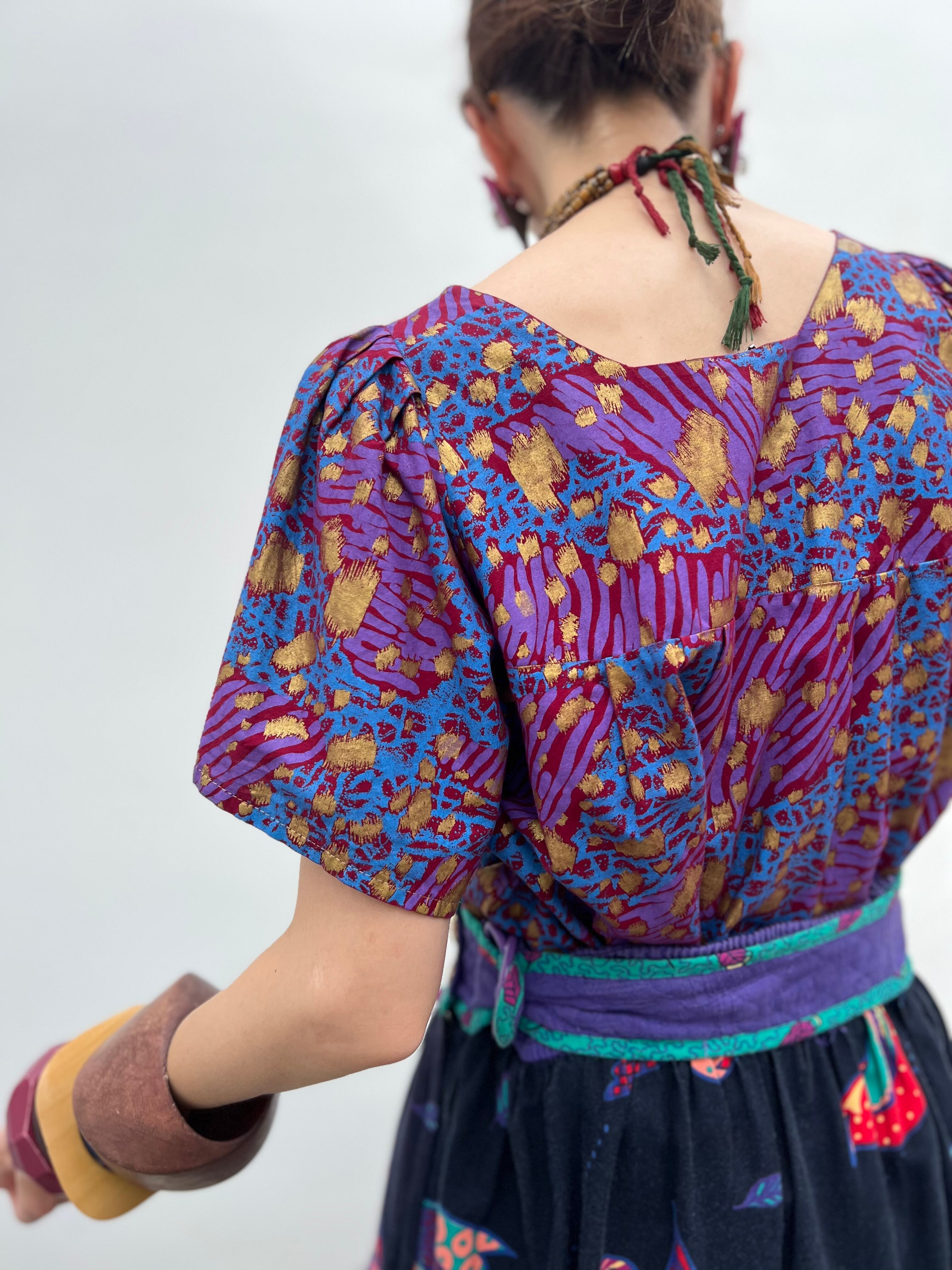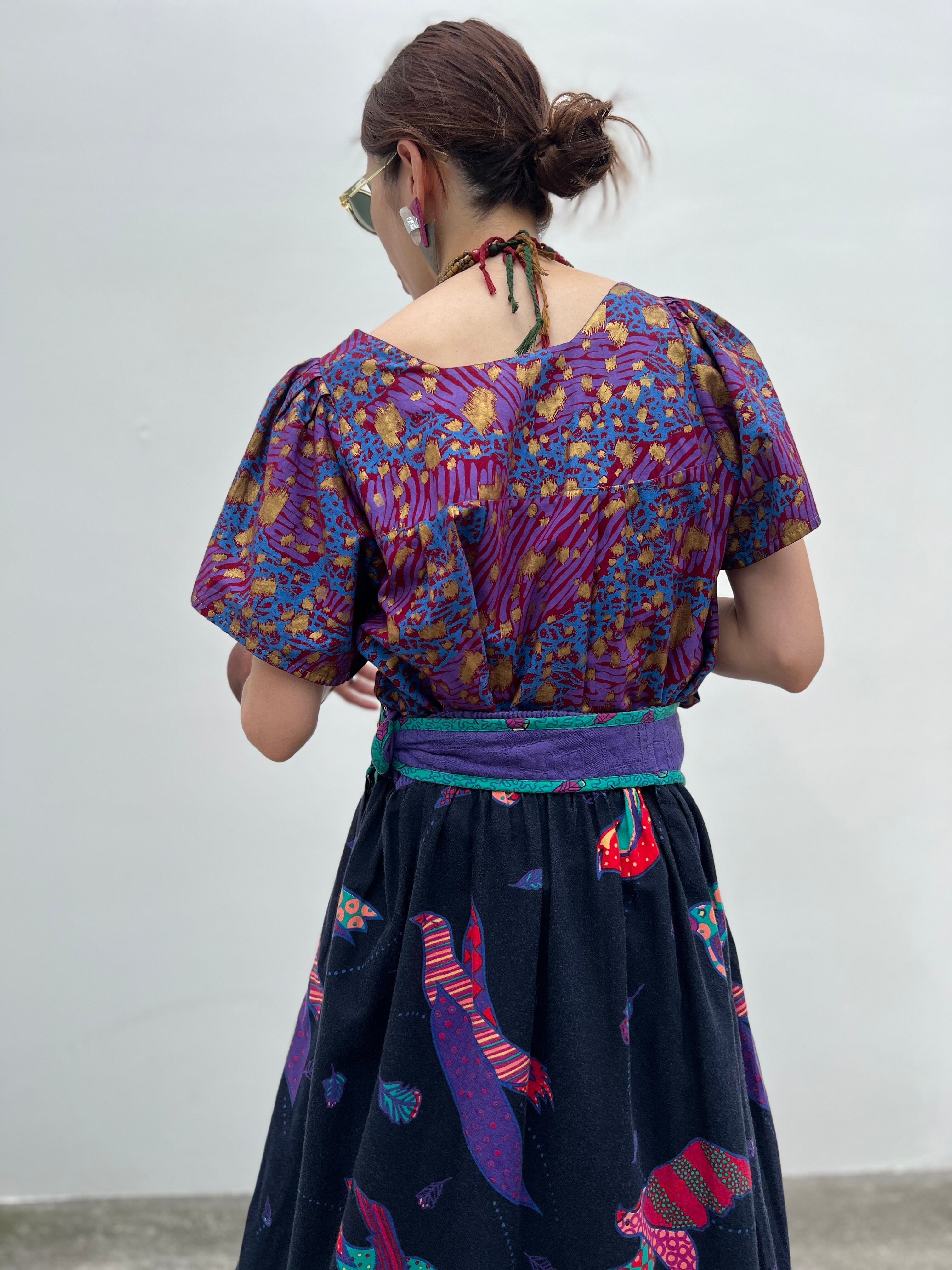 Vintage african purple × animal print cotton tops ( ヴィンテージ パープル コットン トップス