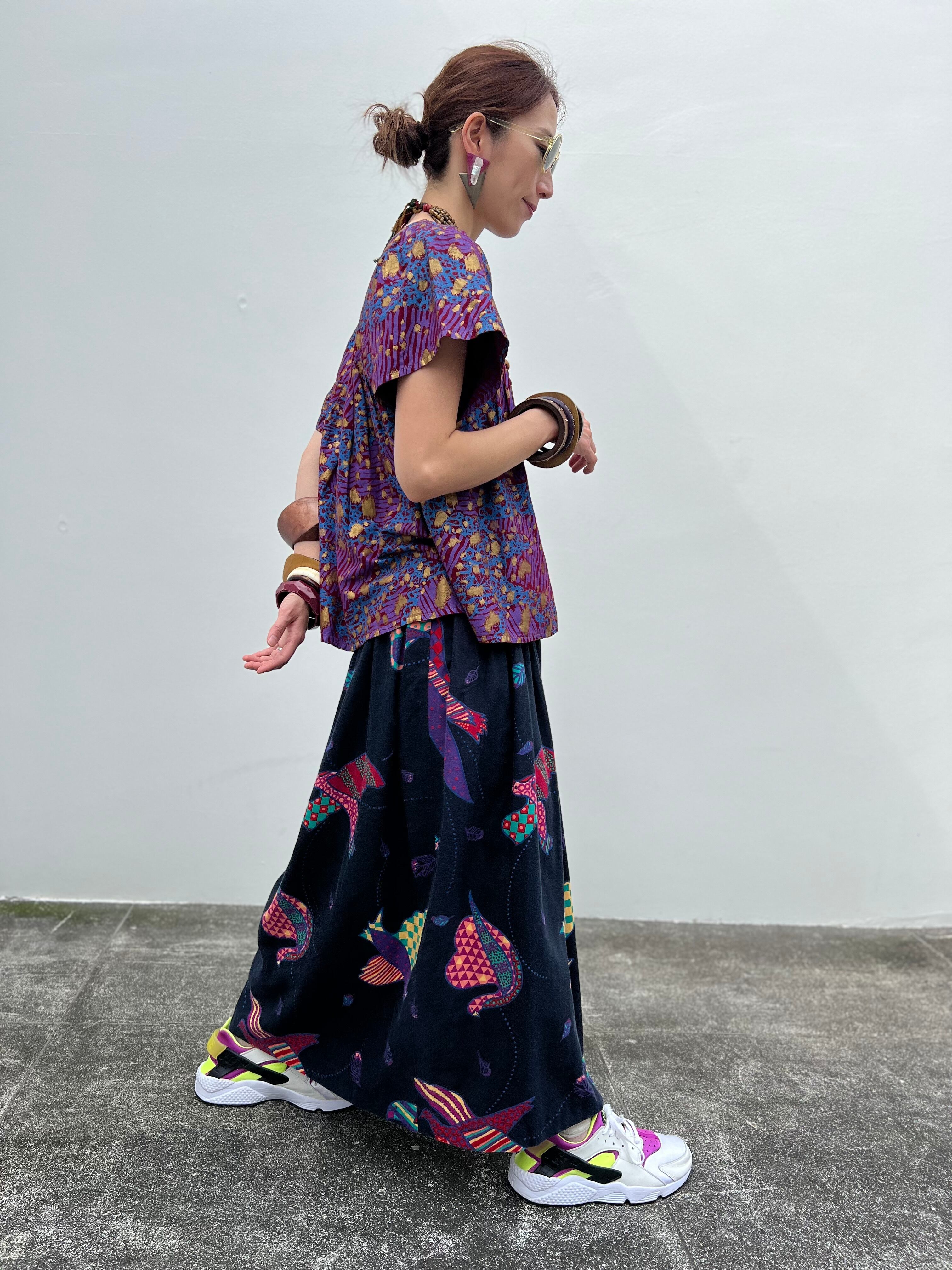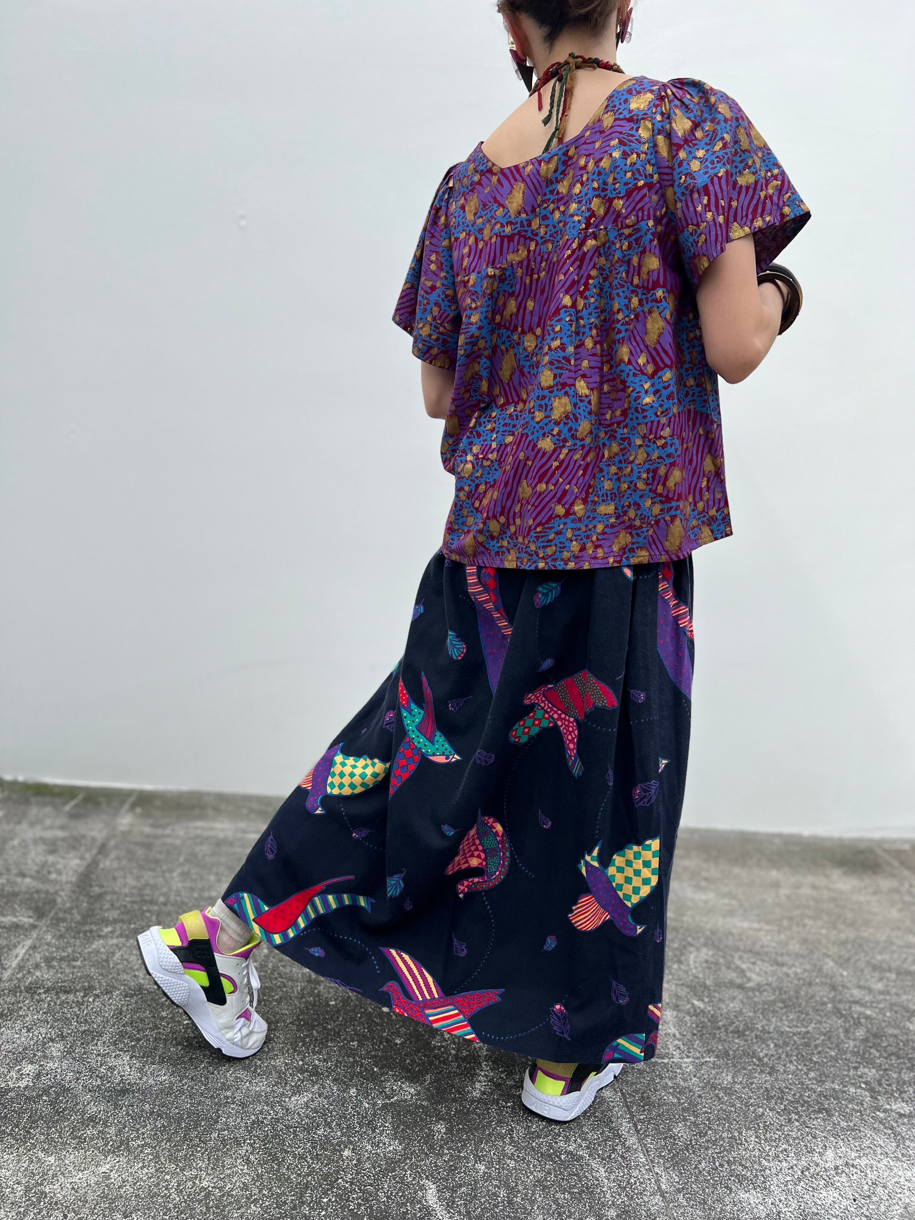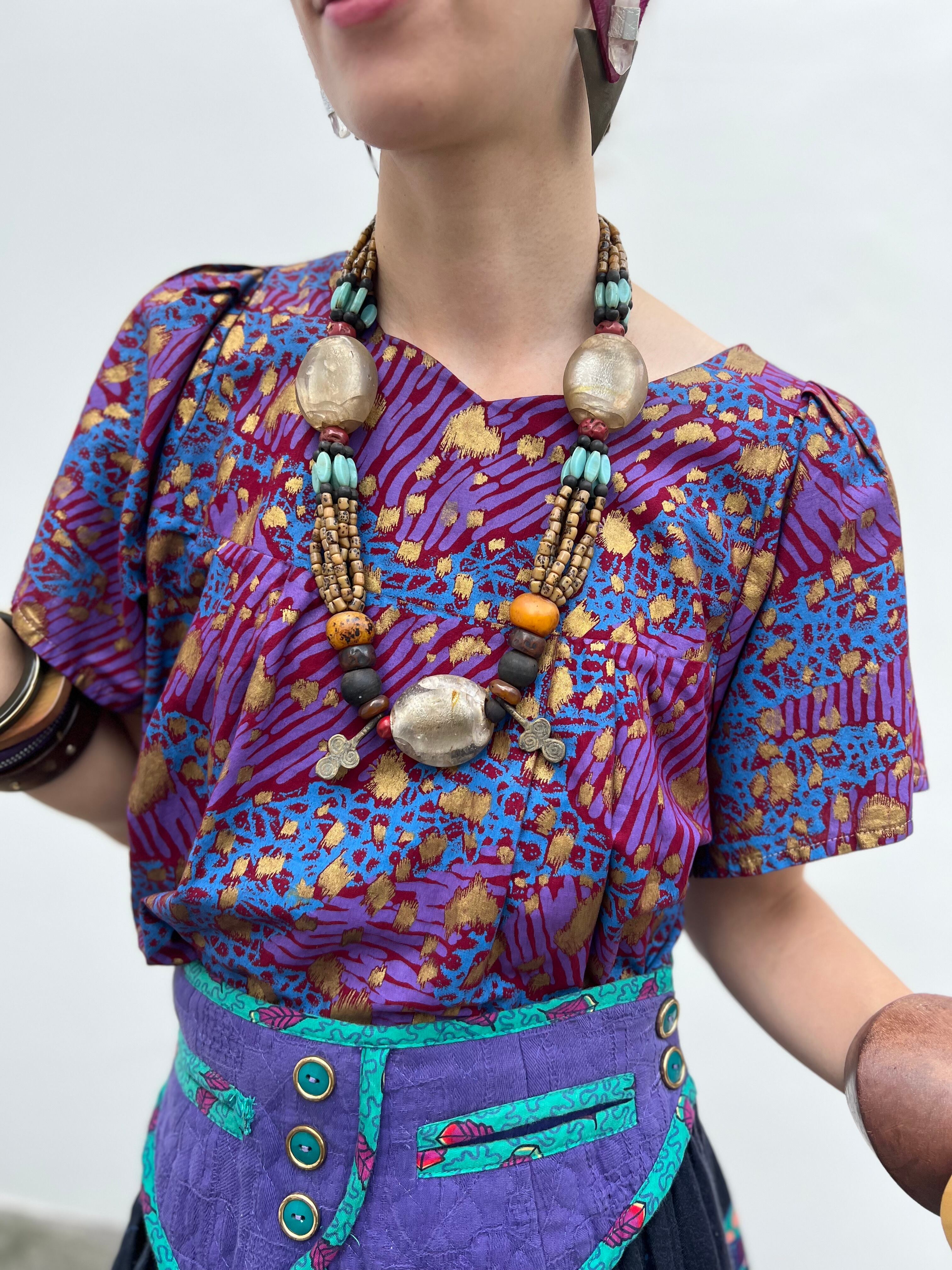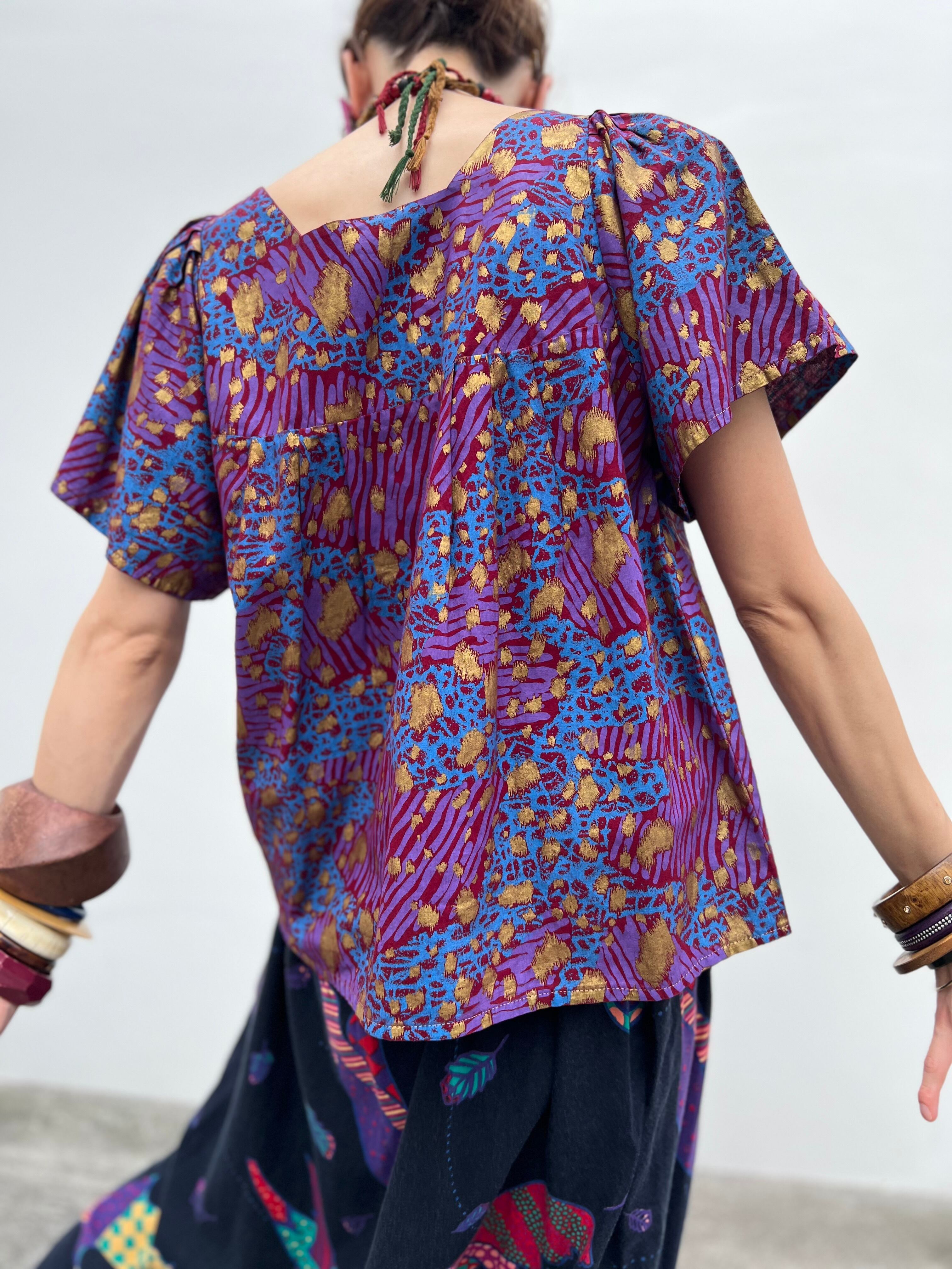 Vintage african purple × animal print cotton tops ( ヴィンテージ パープル コットン トップス