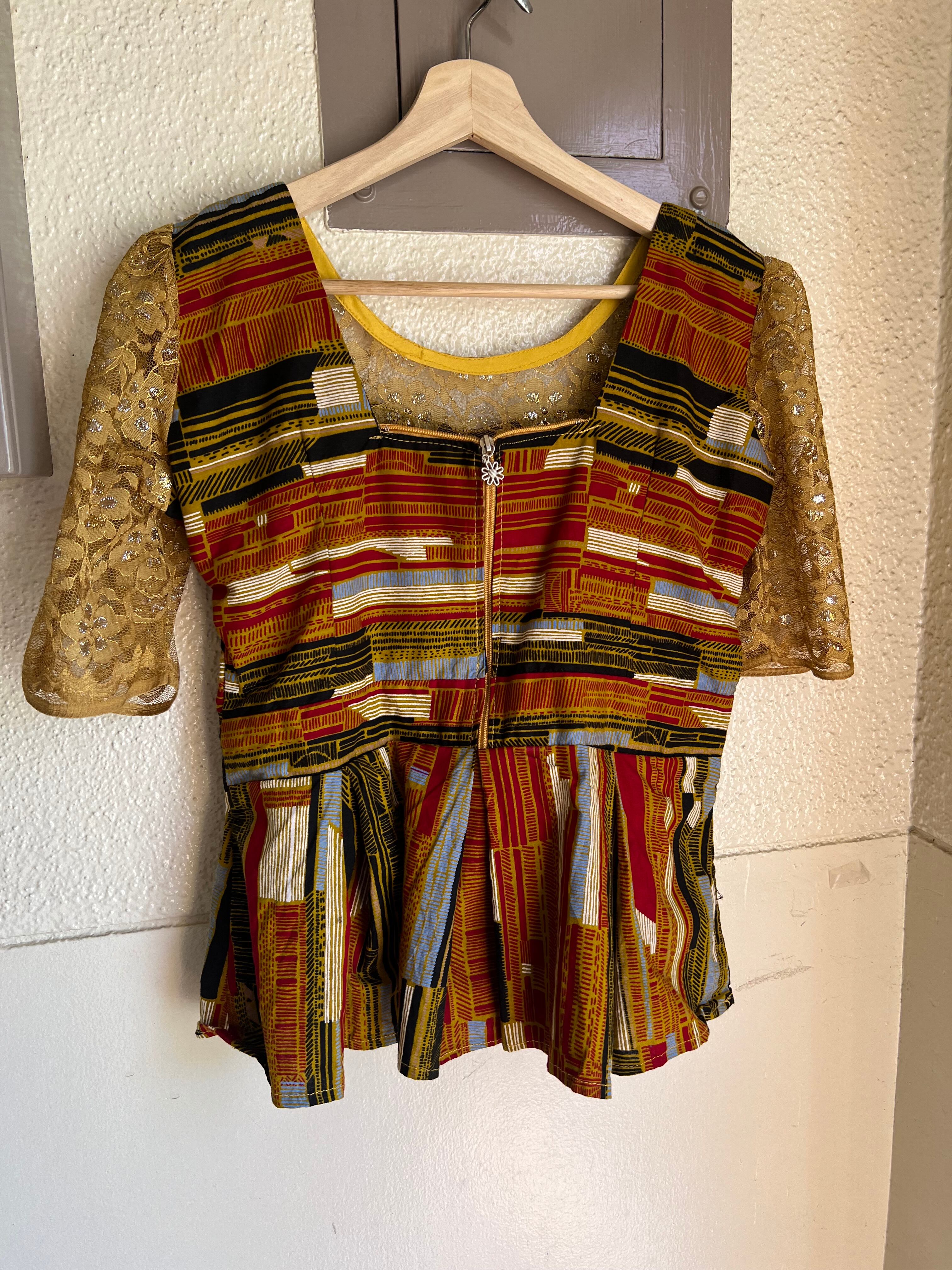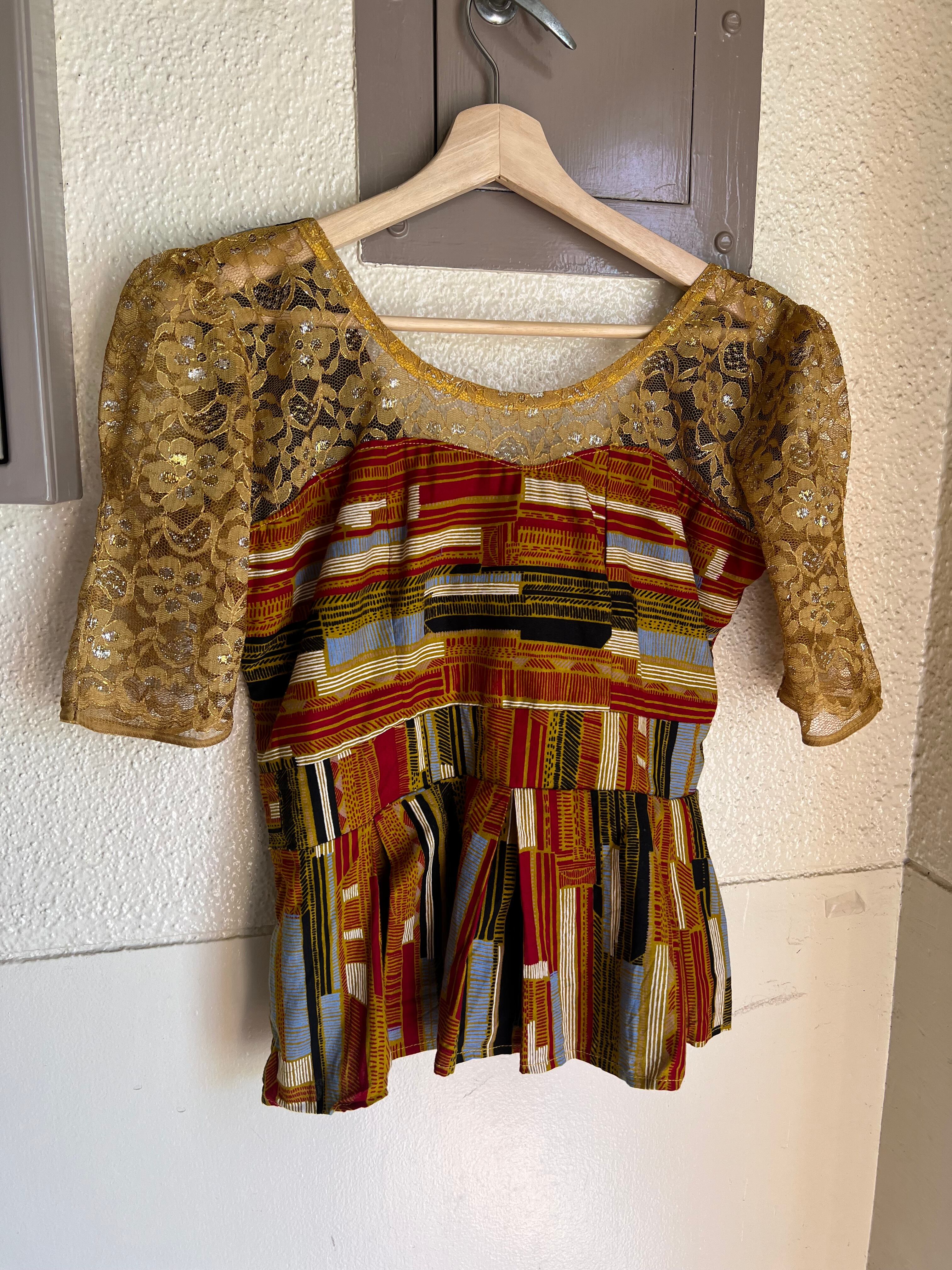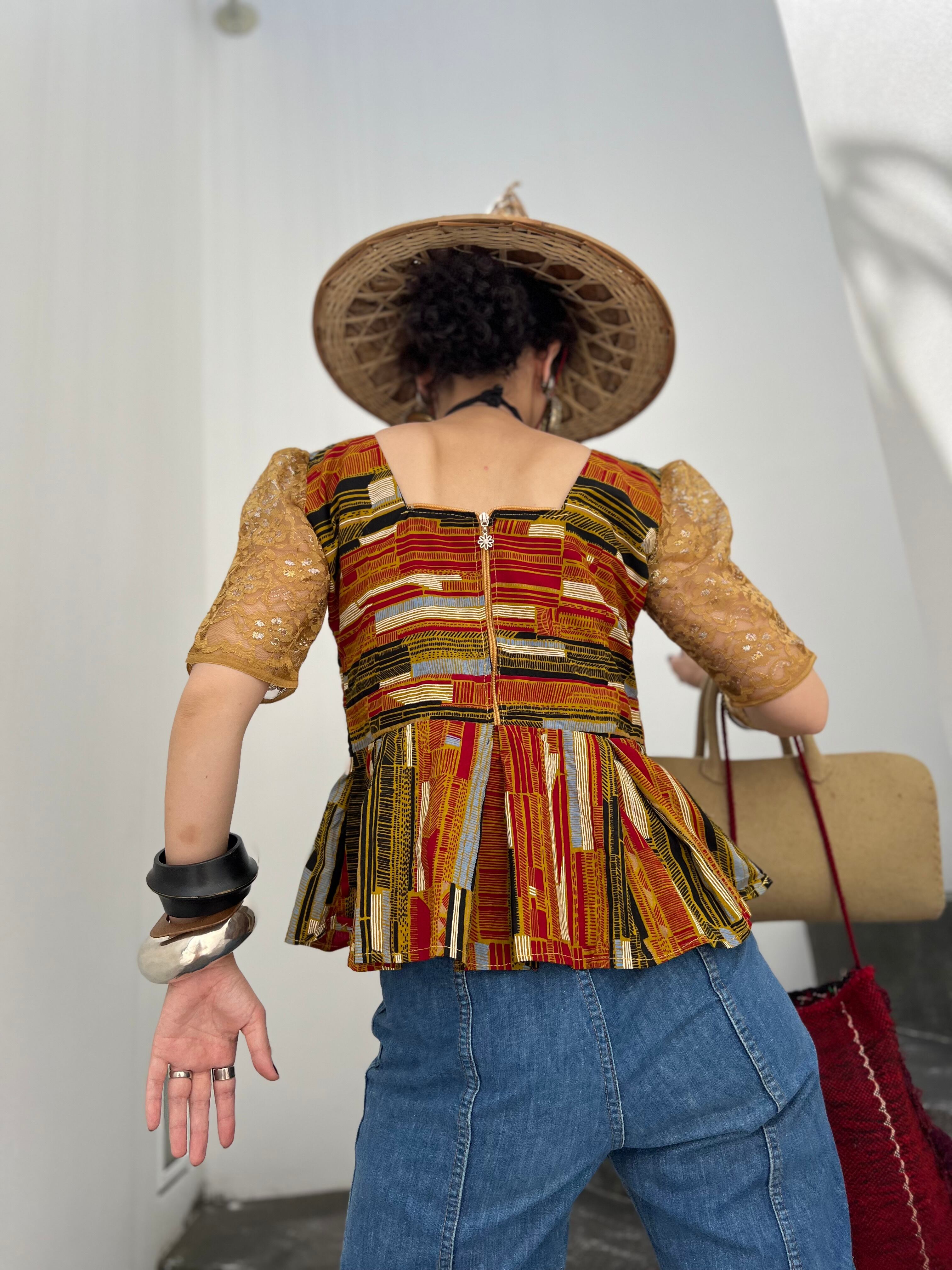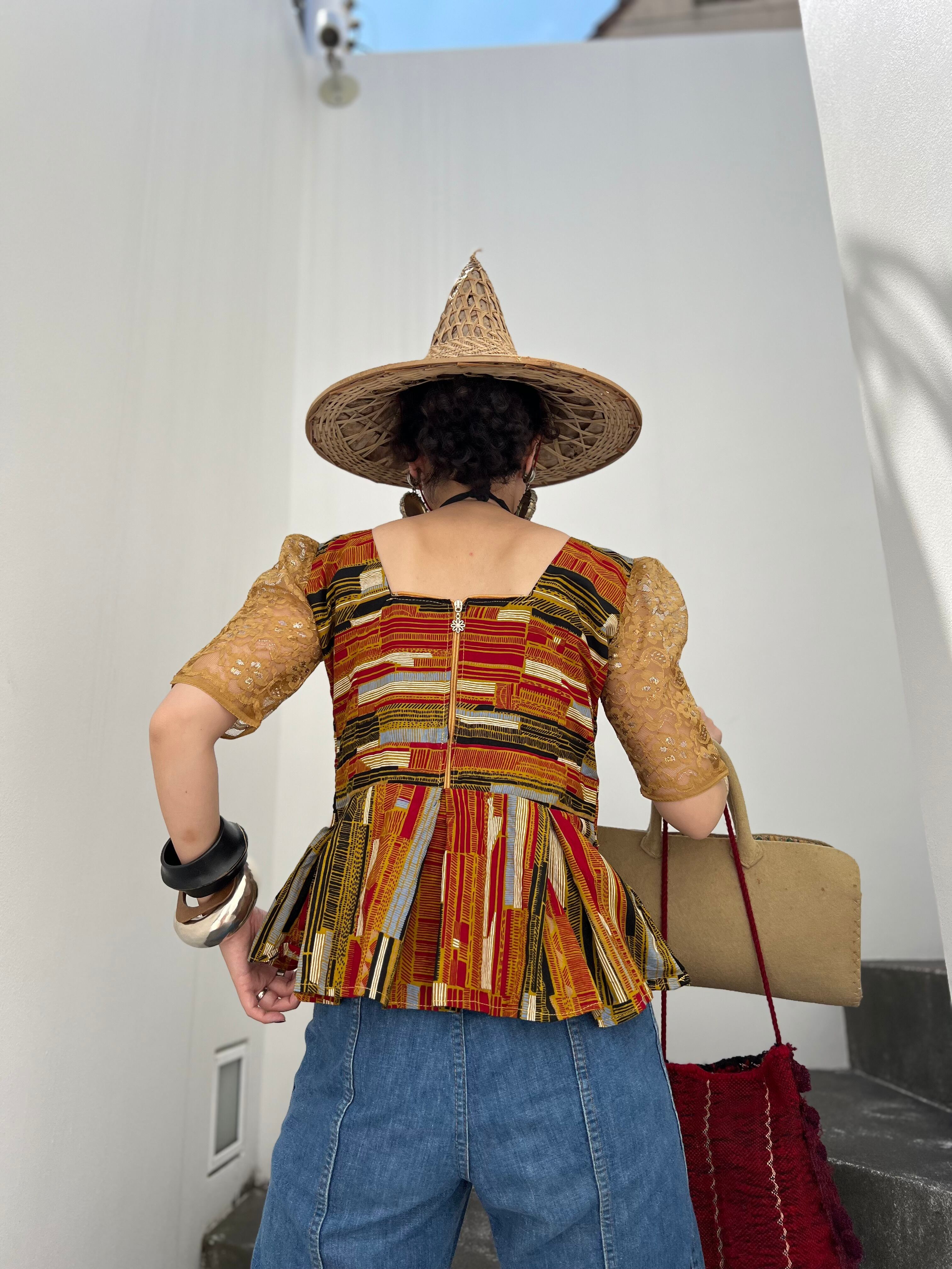 ヴィンテージアフリカンバティック コットン × レース ペプラムトップスになります。