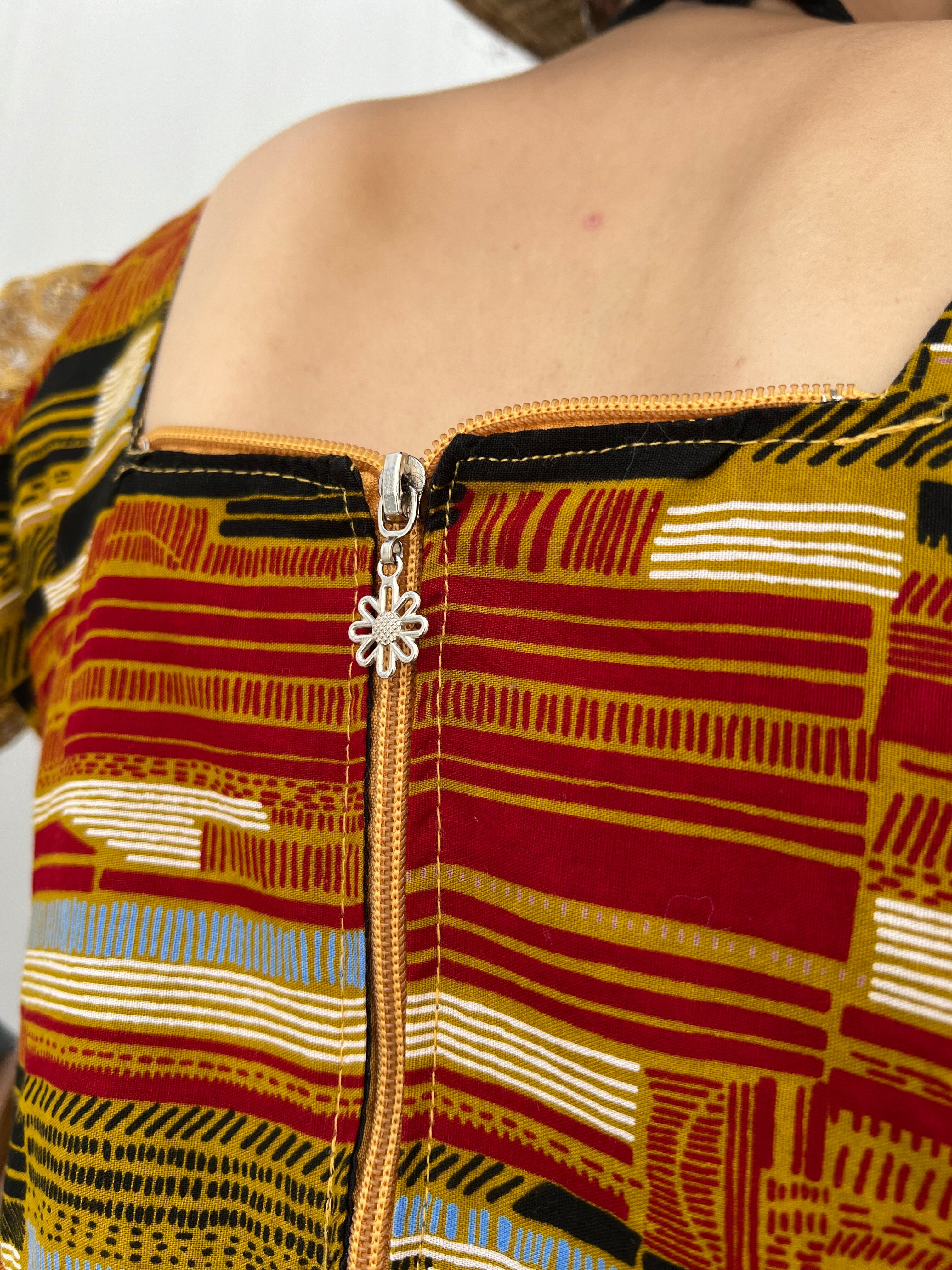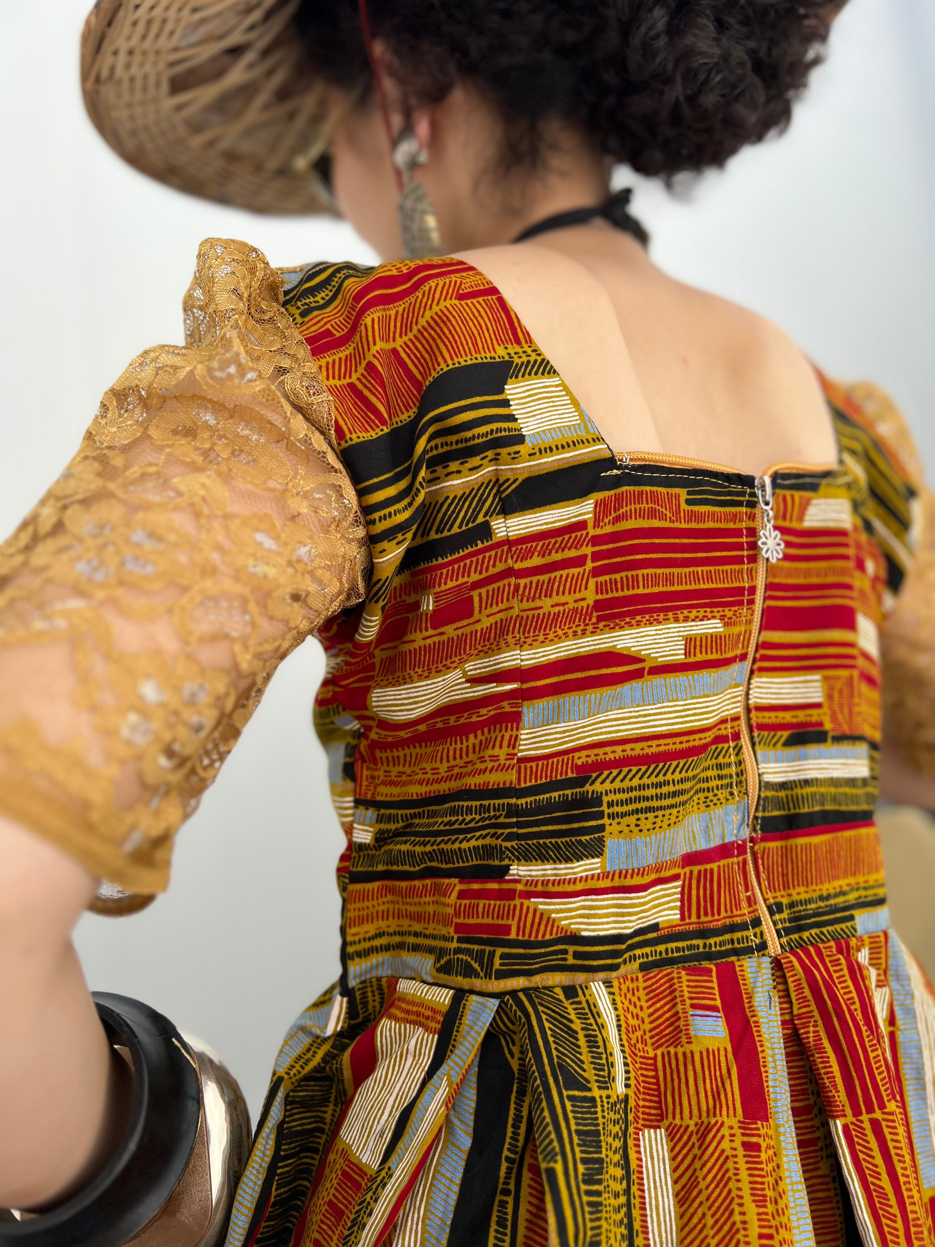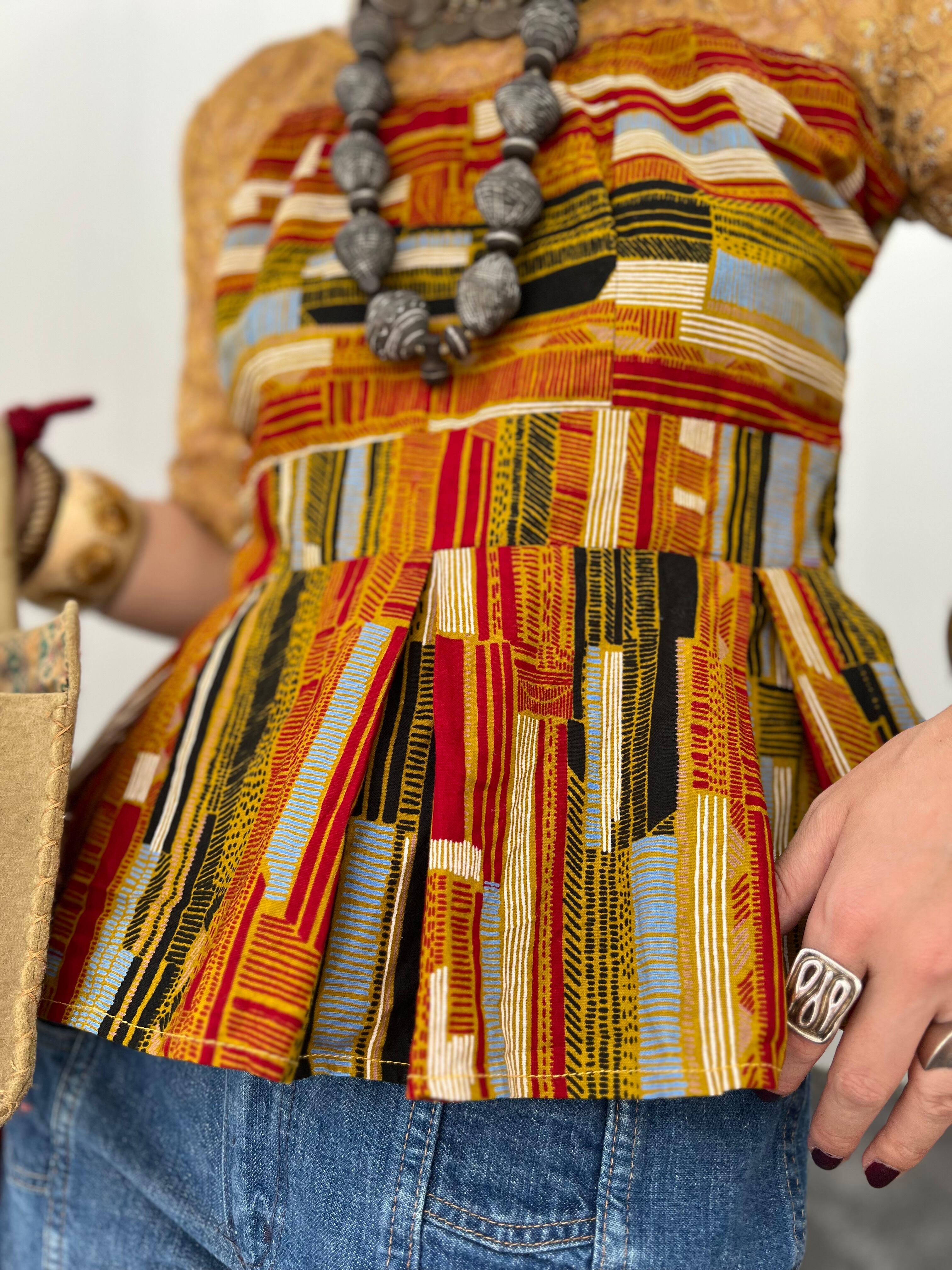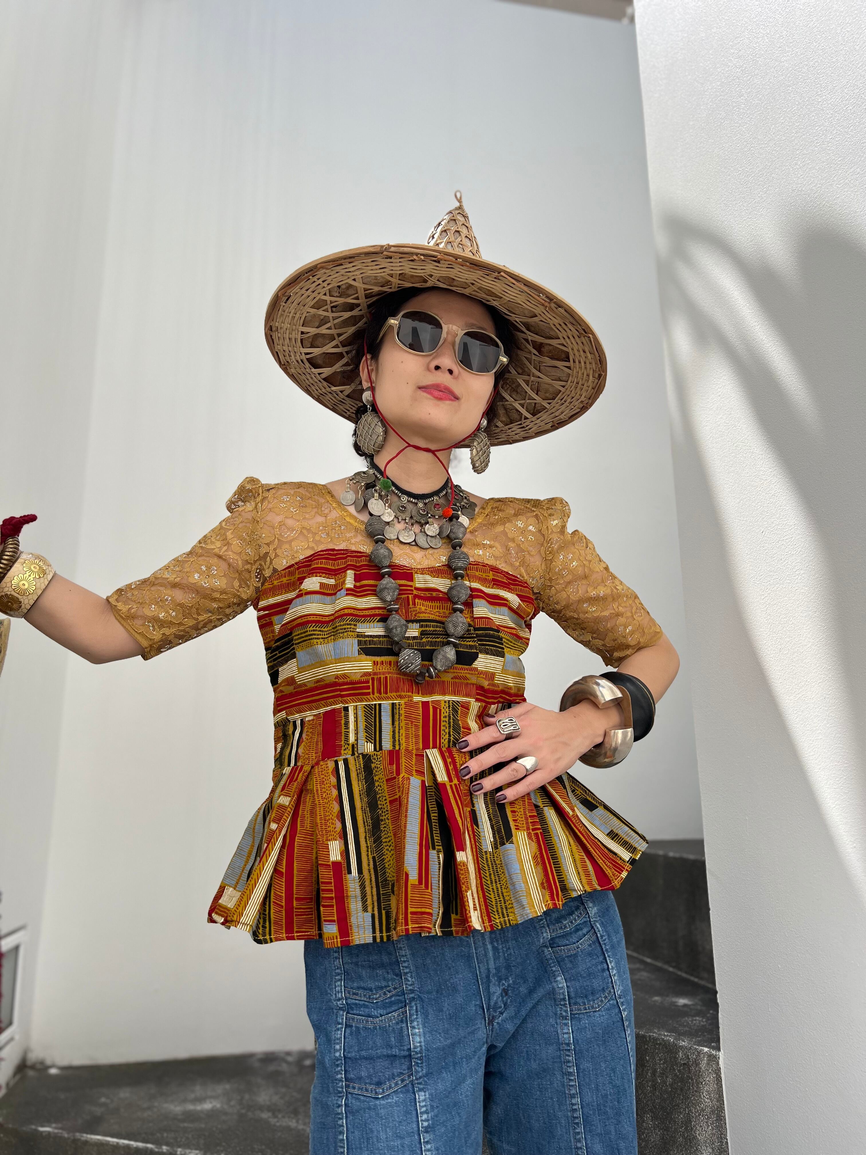 ヴィンテージアフリカンバティック コットン × レース ペプラムトップスになります。