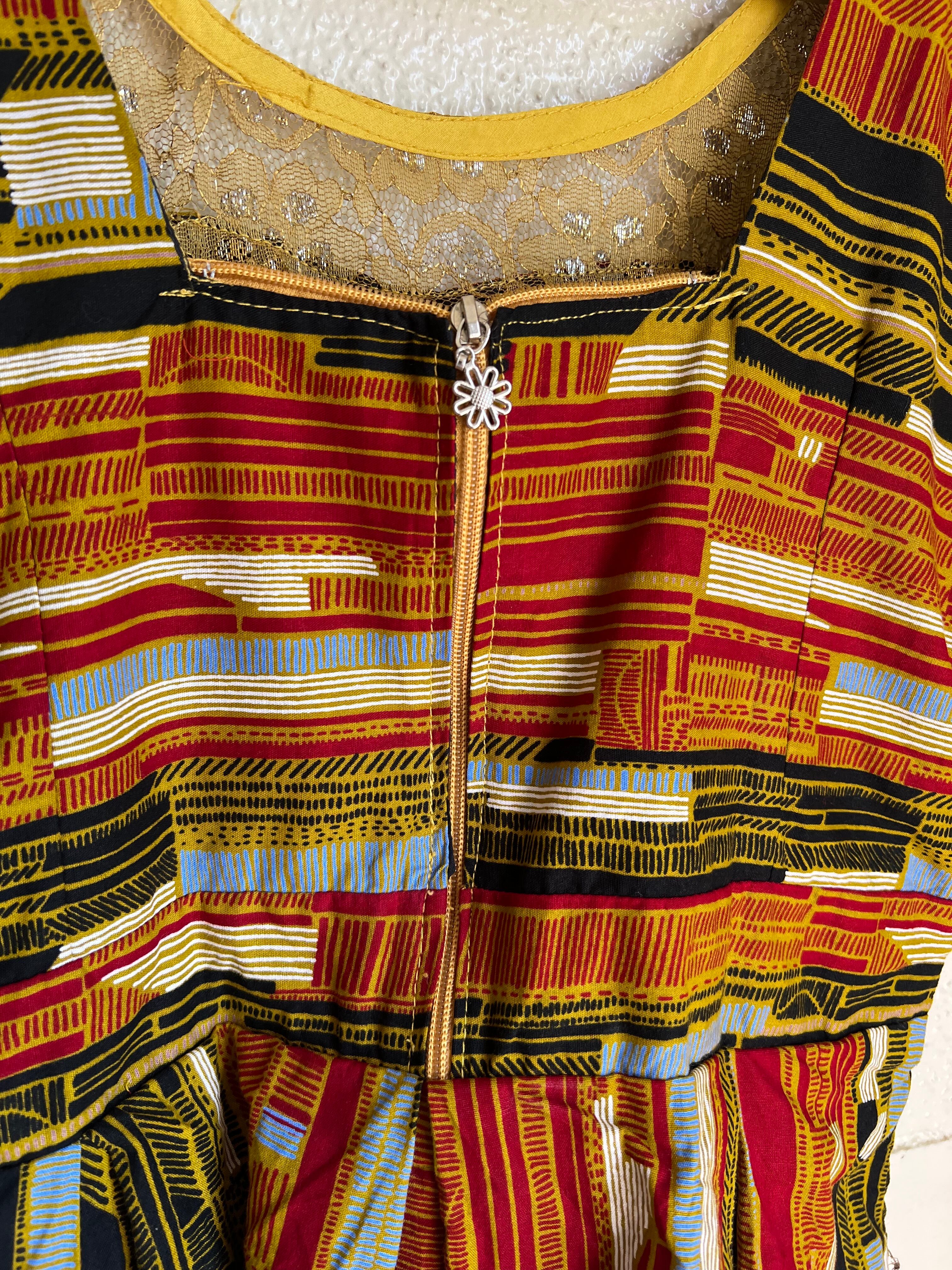 Vintage african batik cotton × lace tops ( ヴィンテージ アフリカンバティック コットン × レース トップス )