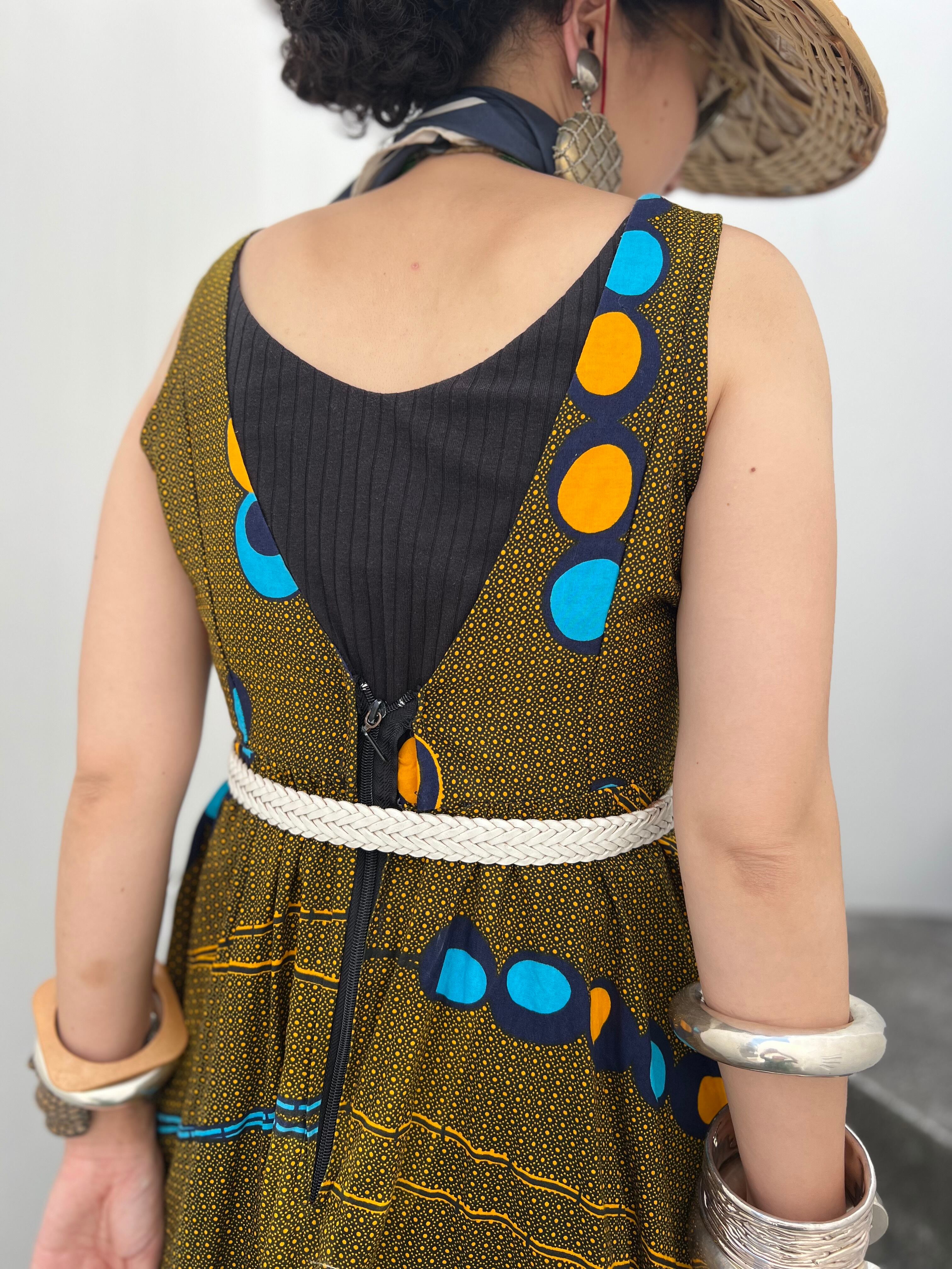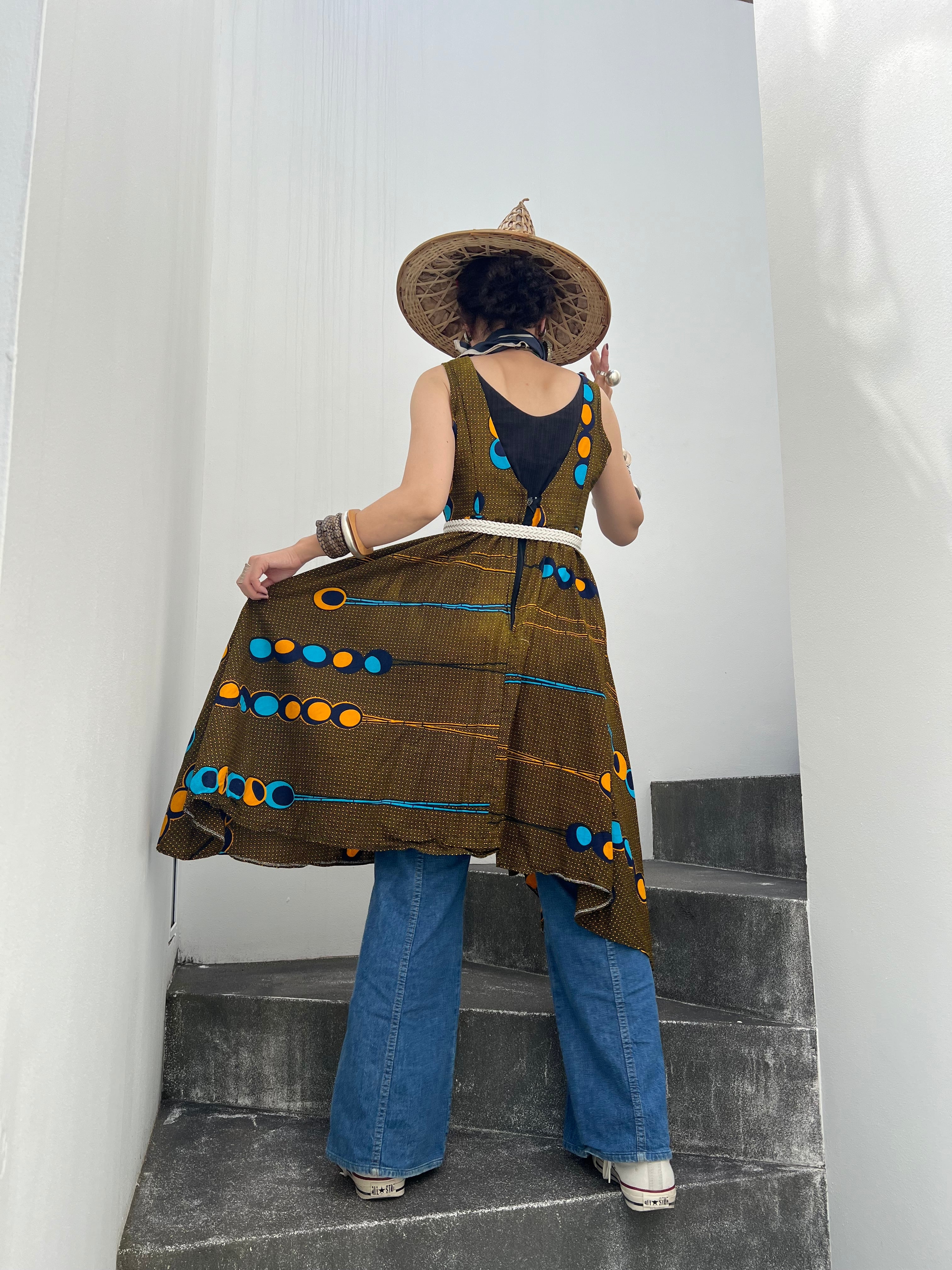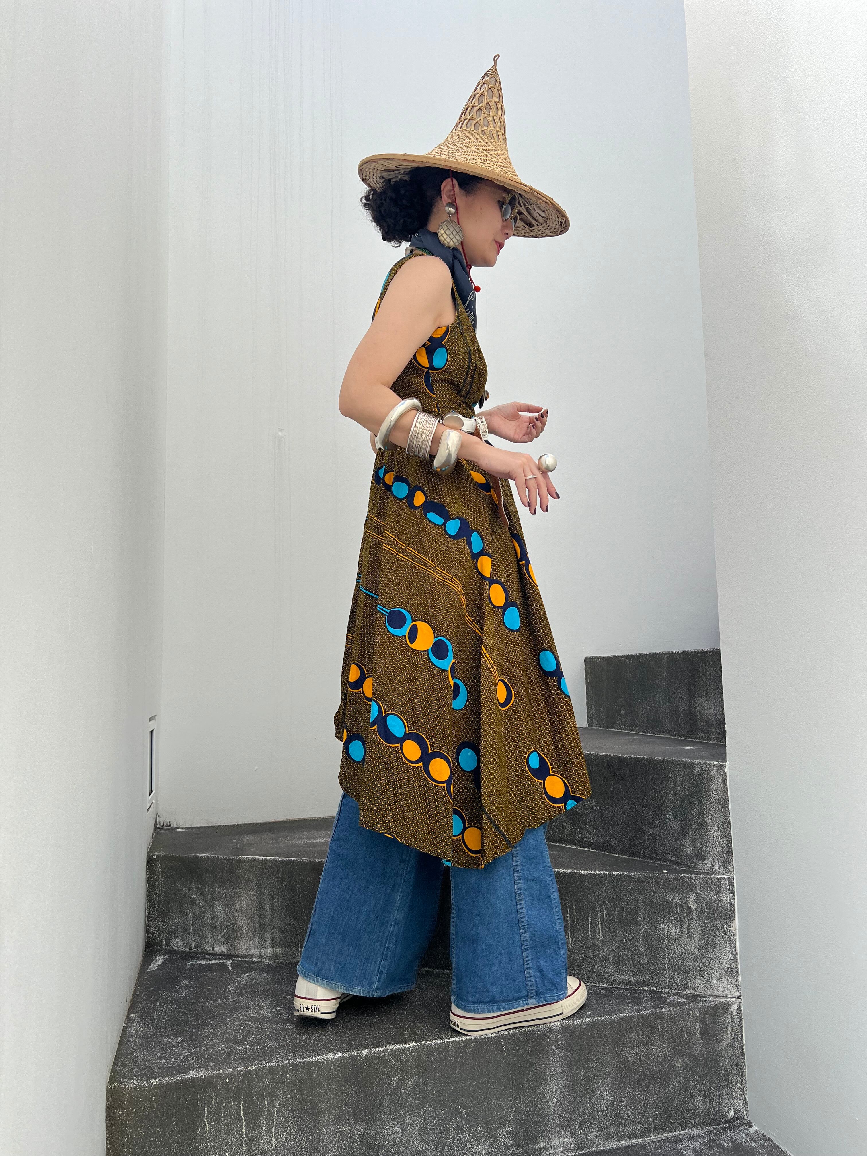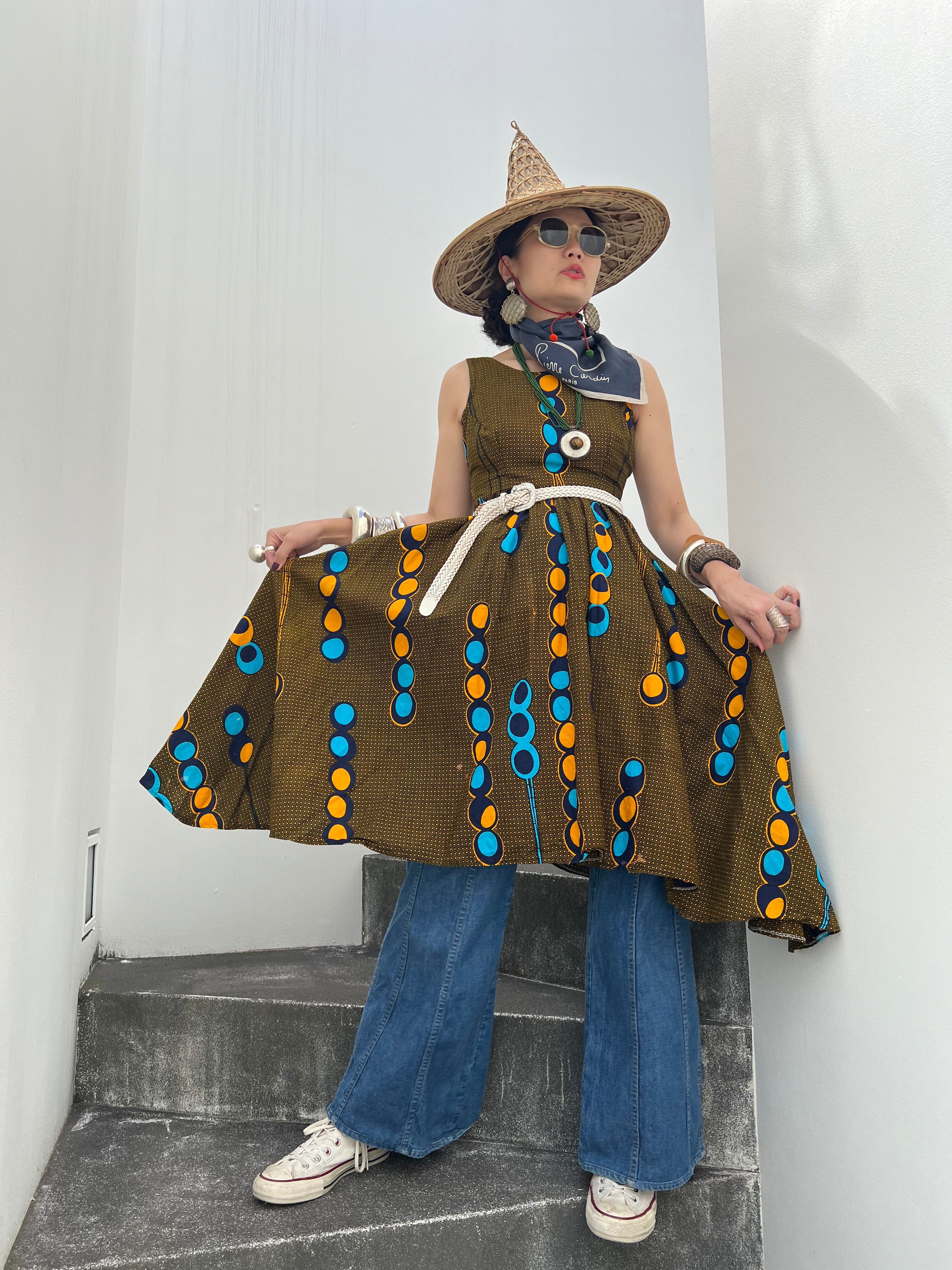 Vintage african batik cotton sleeveless dress ( ヴィンテージ アフリカンバティック ノースリーブ コットン ワンピース )