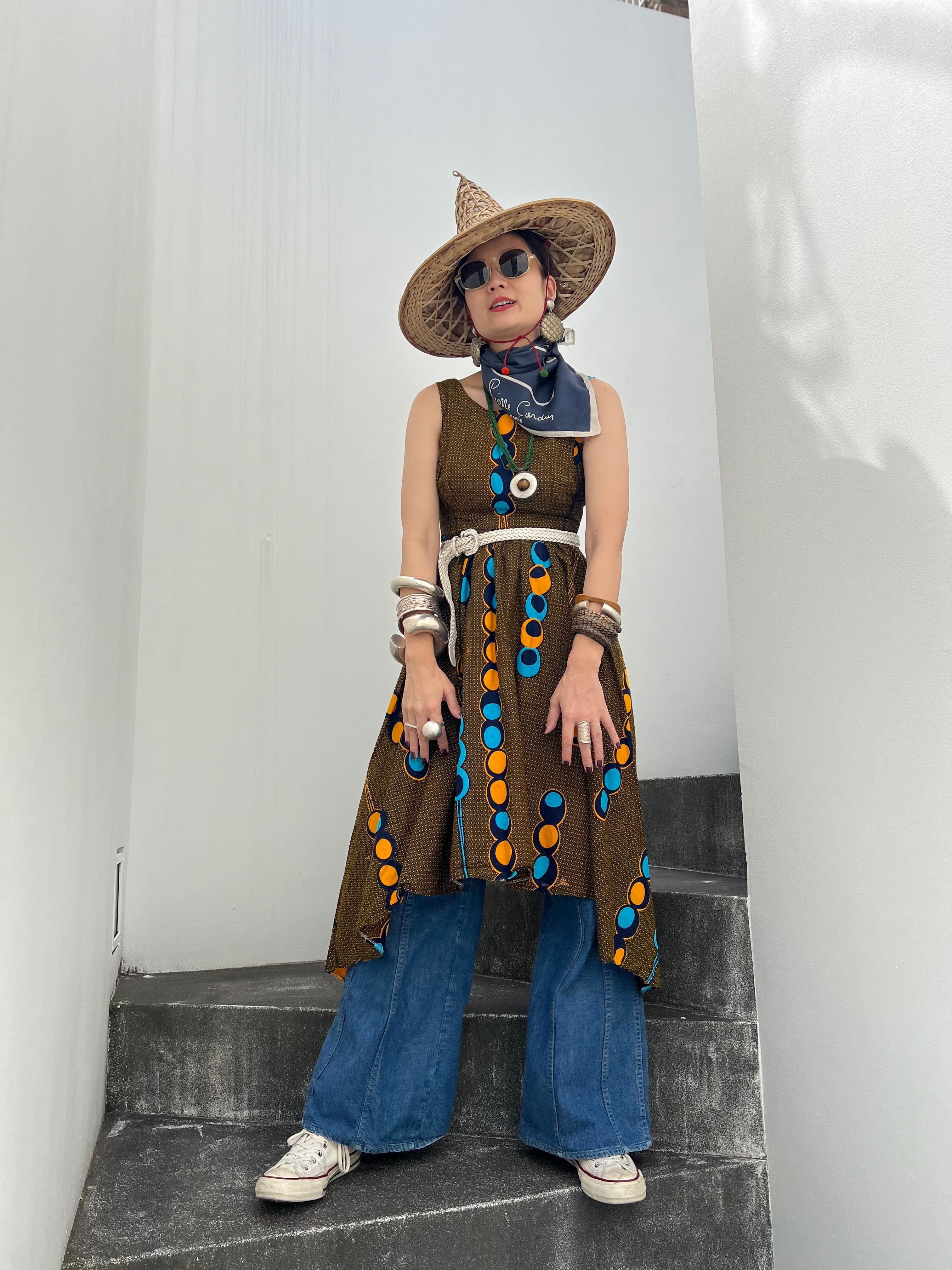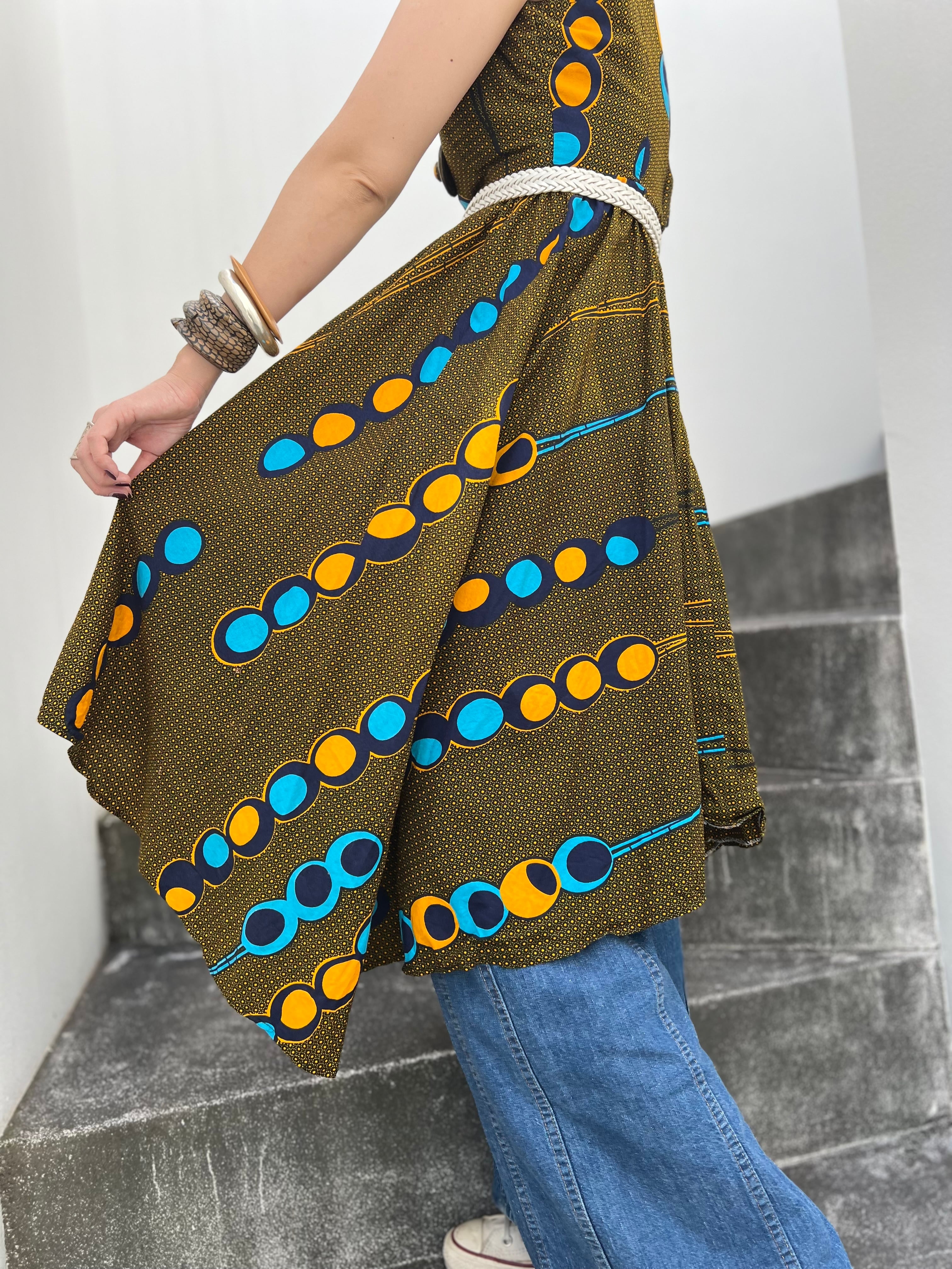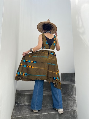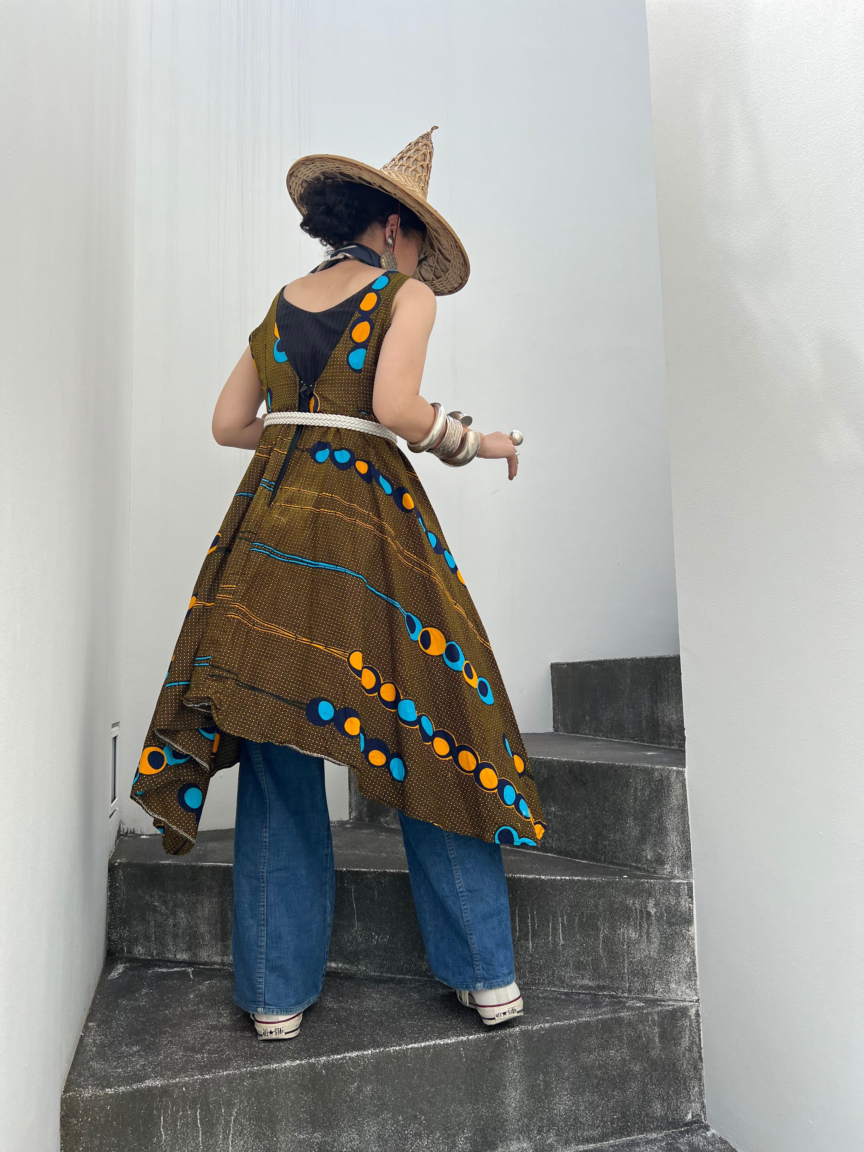 Vintage african batik cotton sleeveless dress ( ヴィンテージ アフリカンバティック ノースリーブ コットン ワンピース )