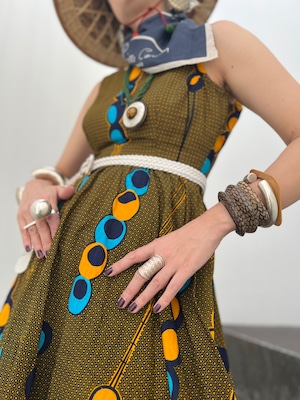 ヴィンテージアフリカンバティック コットンノースリーブワンピースになります。