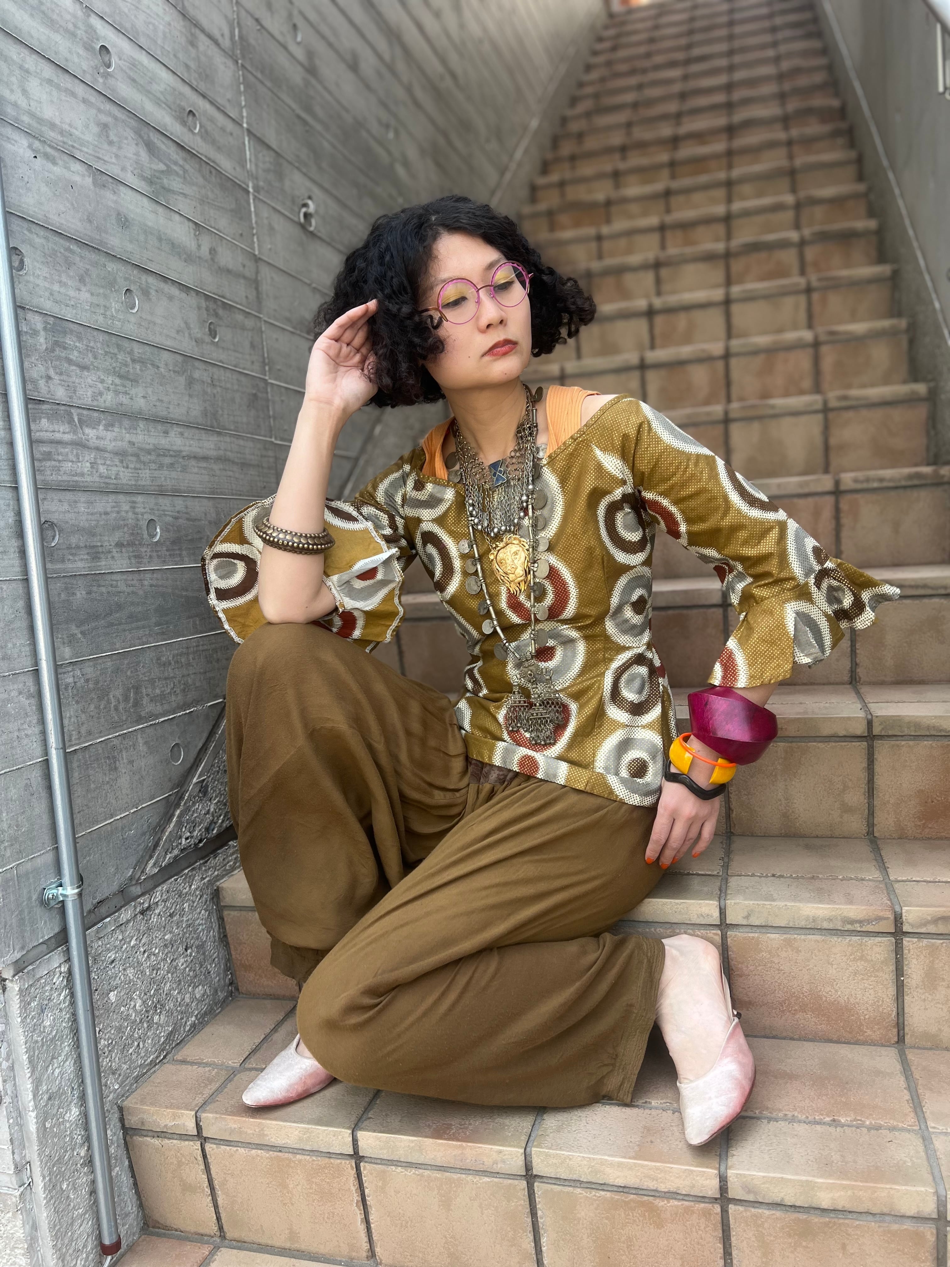 Vintage african batik gold tops (ヴィンテージ アフリカン バティック ゴールド トップス