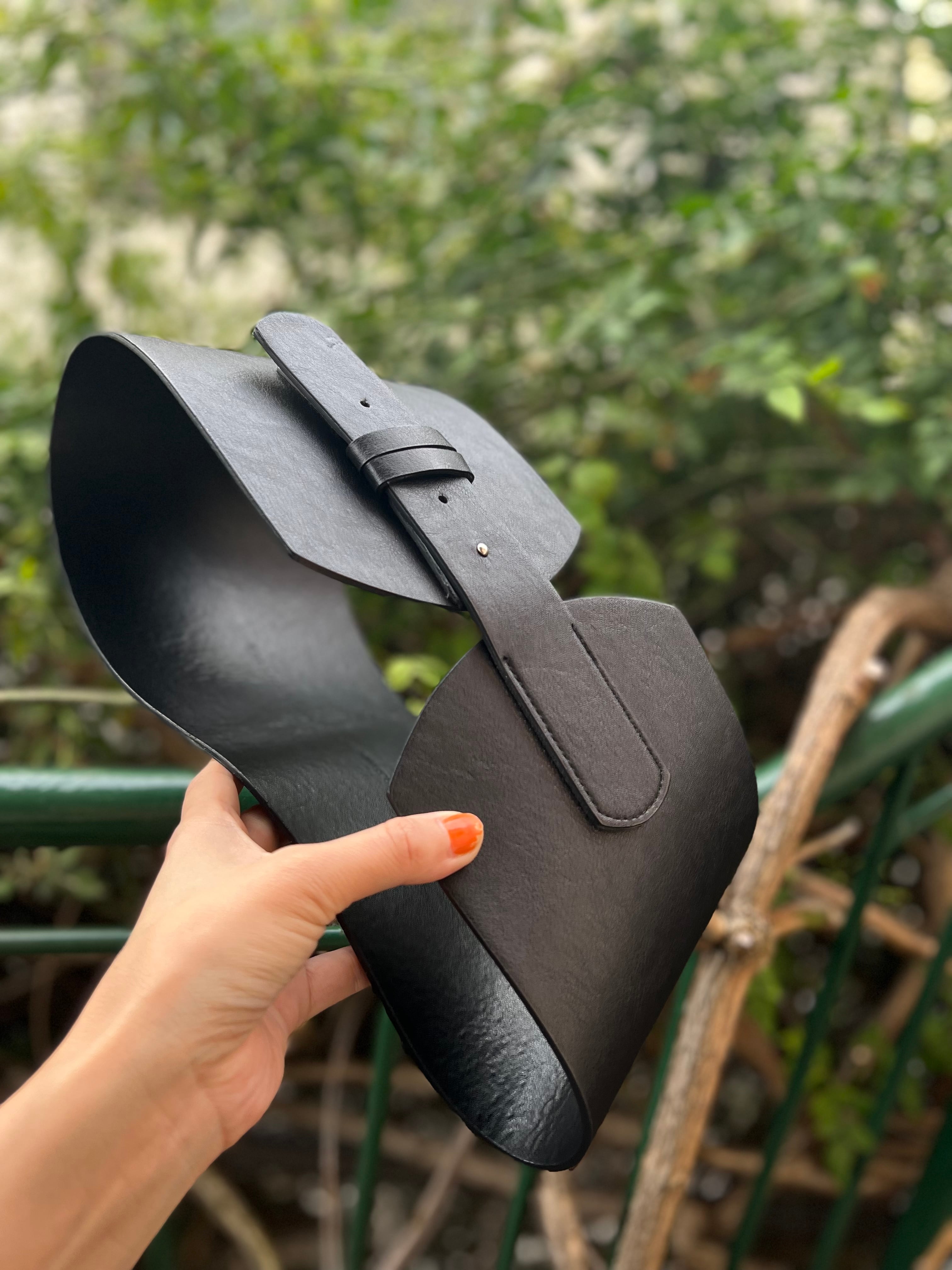 Black fake leather simple wide belt ( ブラック シンプル ワイド ベルト )