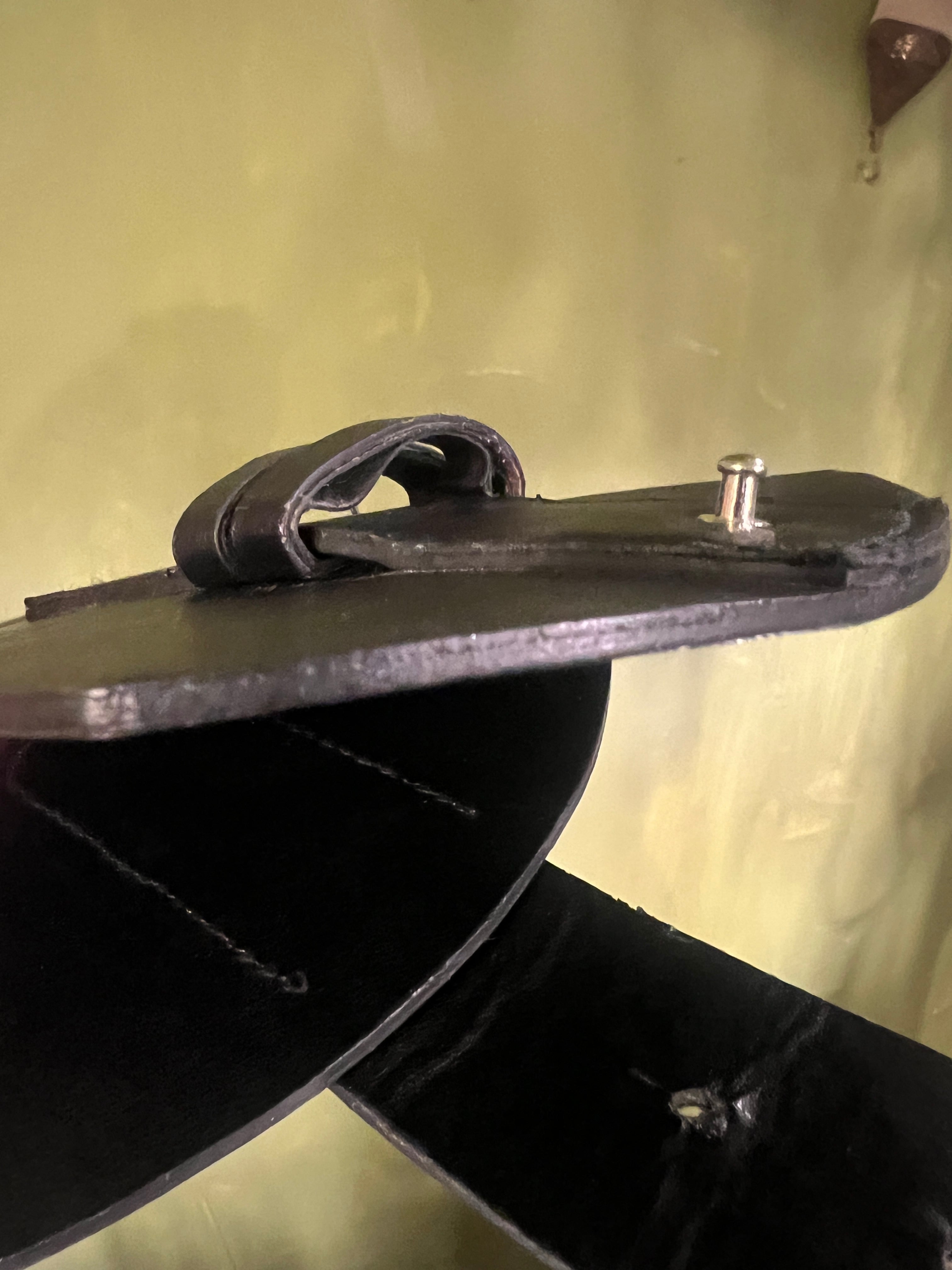 裏面真ん中に若干の折りジワのような跡がございます。(表面にはほぼ響いていません)一部傷、ベルトを通すループの内側に剥がれがございます。(着用時見えません)神経質な方はご遠慮ください。