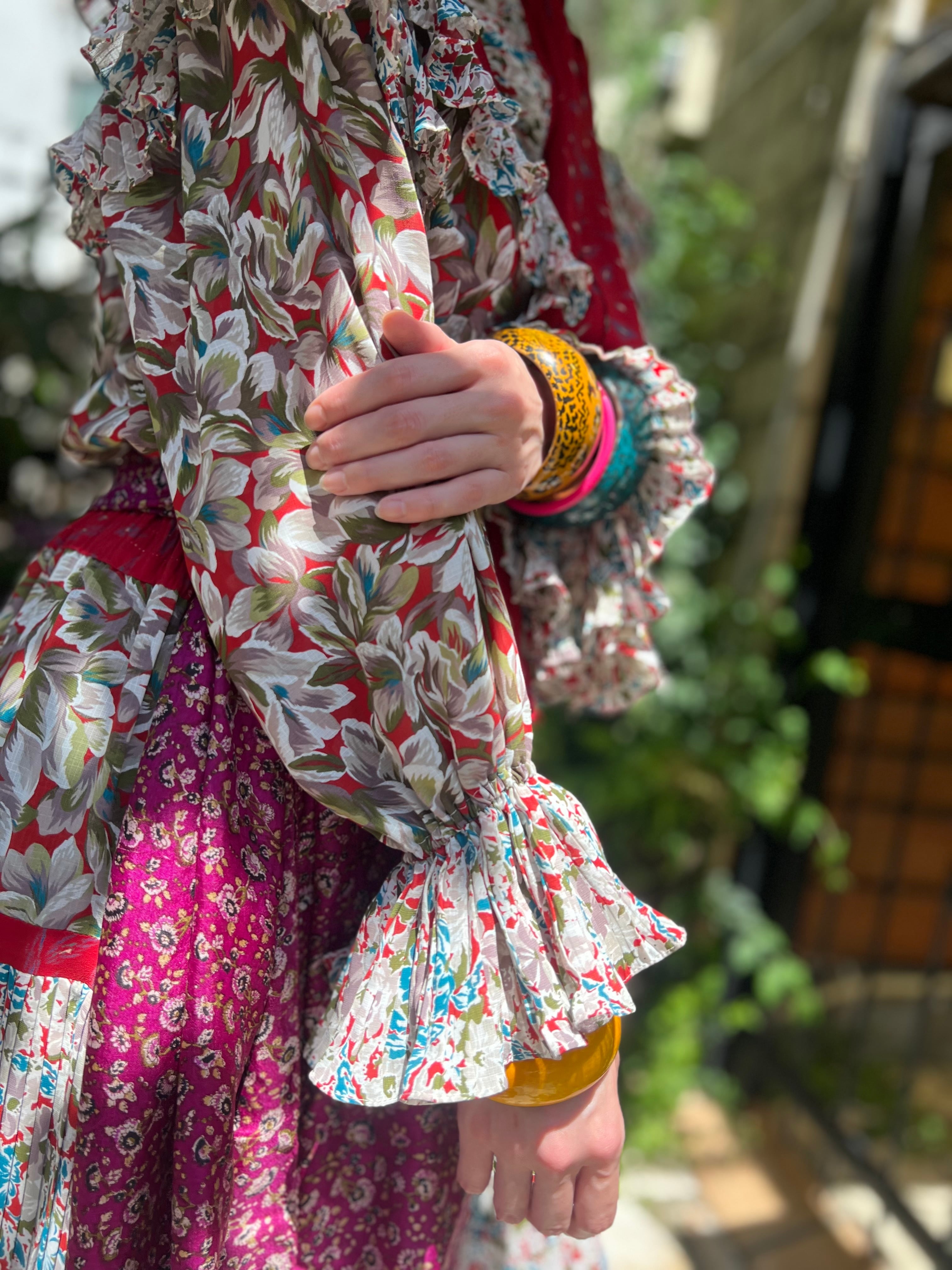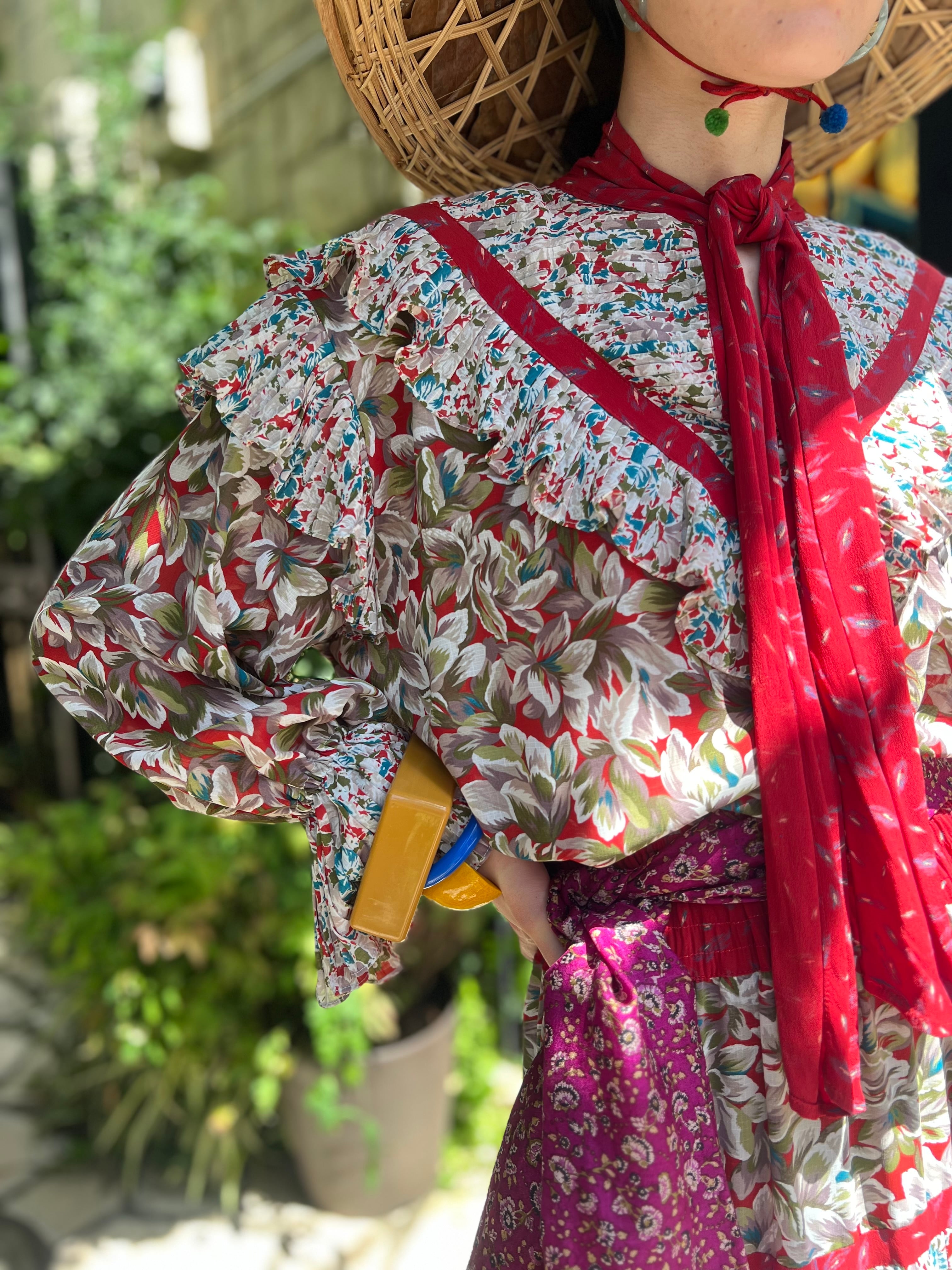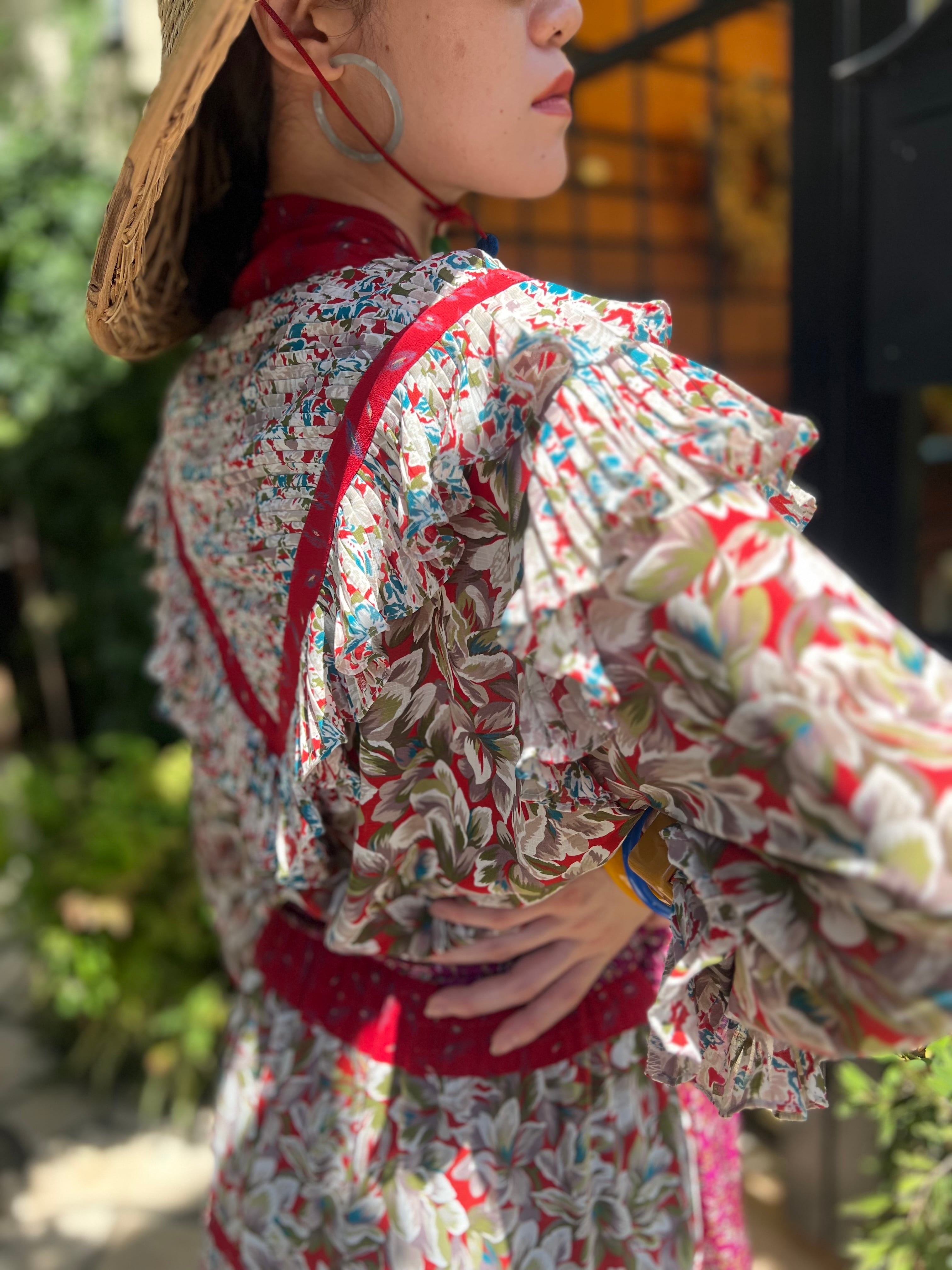 ふっくらしたお袖に袖先のプリーツのフェミニンさのバランスでまとまった洒落た一枚です。