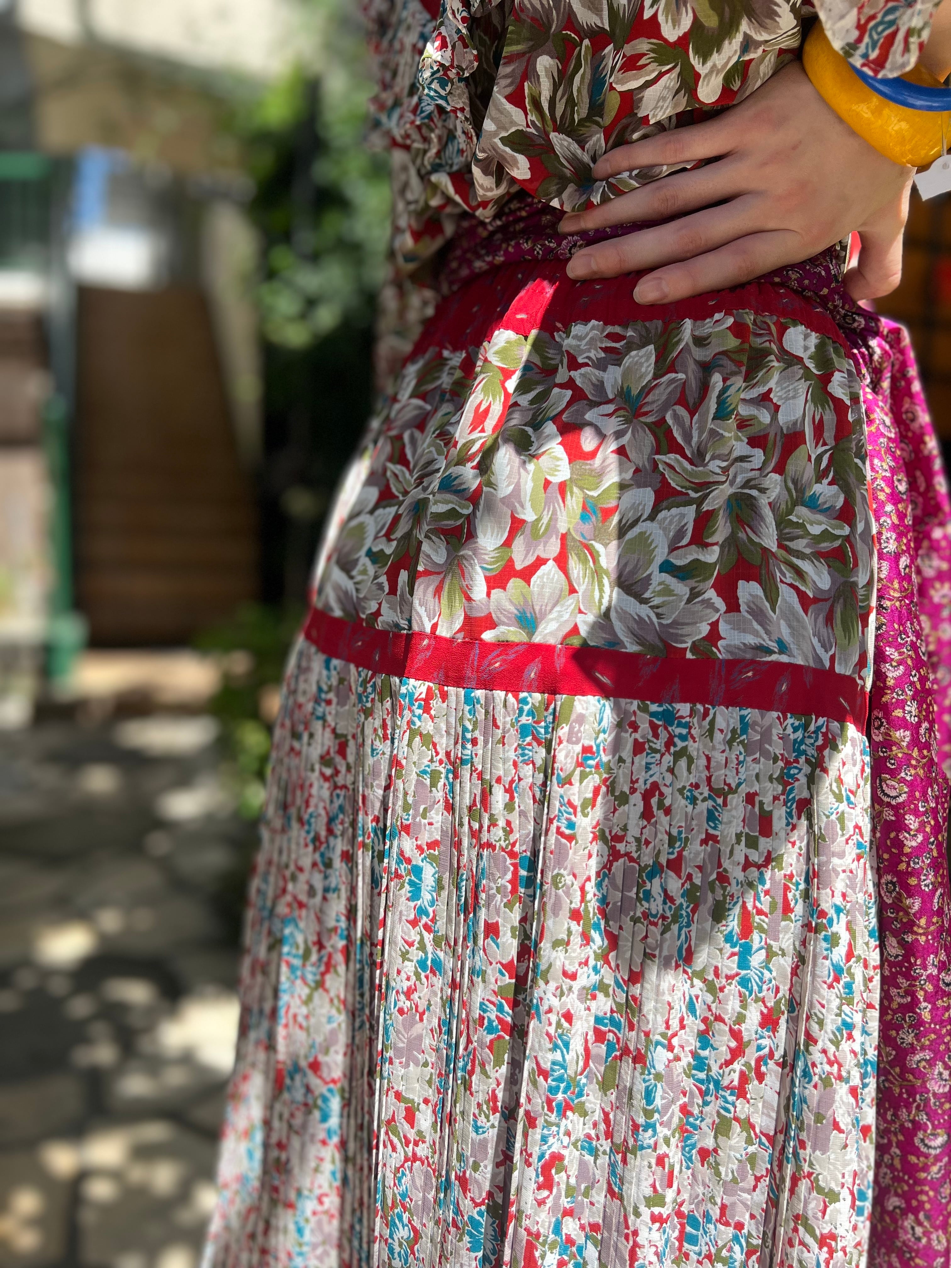 70年代 ダイアンのアッシュブラウン × レッド 花柄 ワンピースになります。
