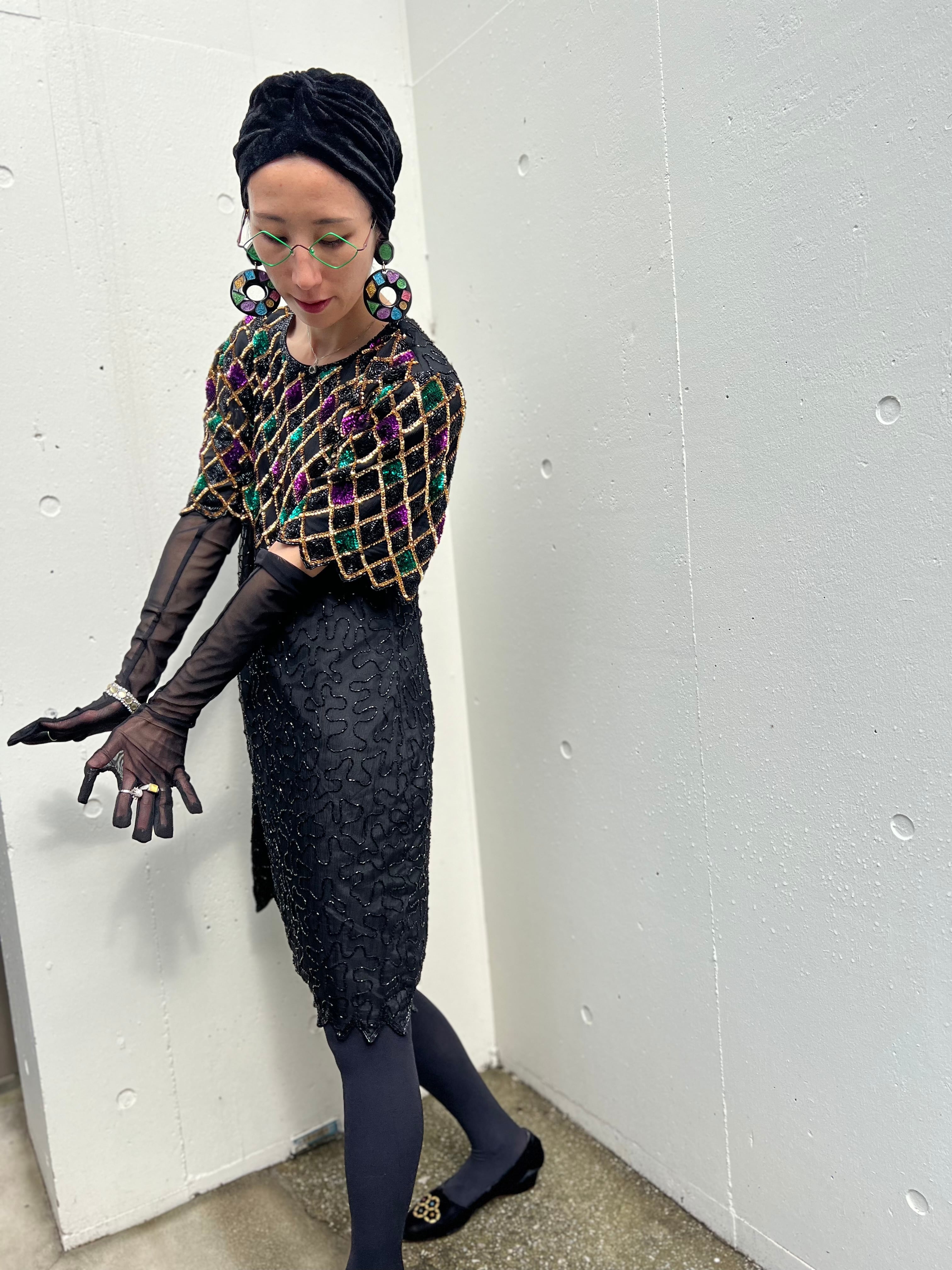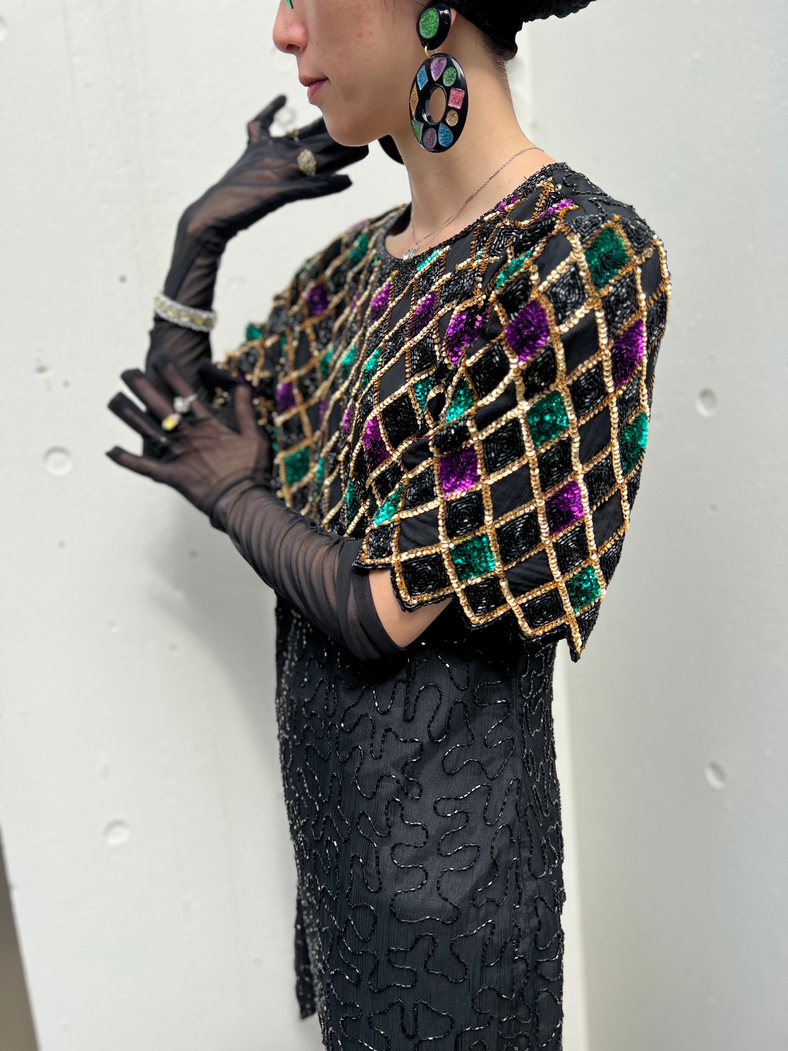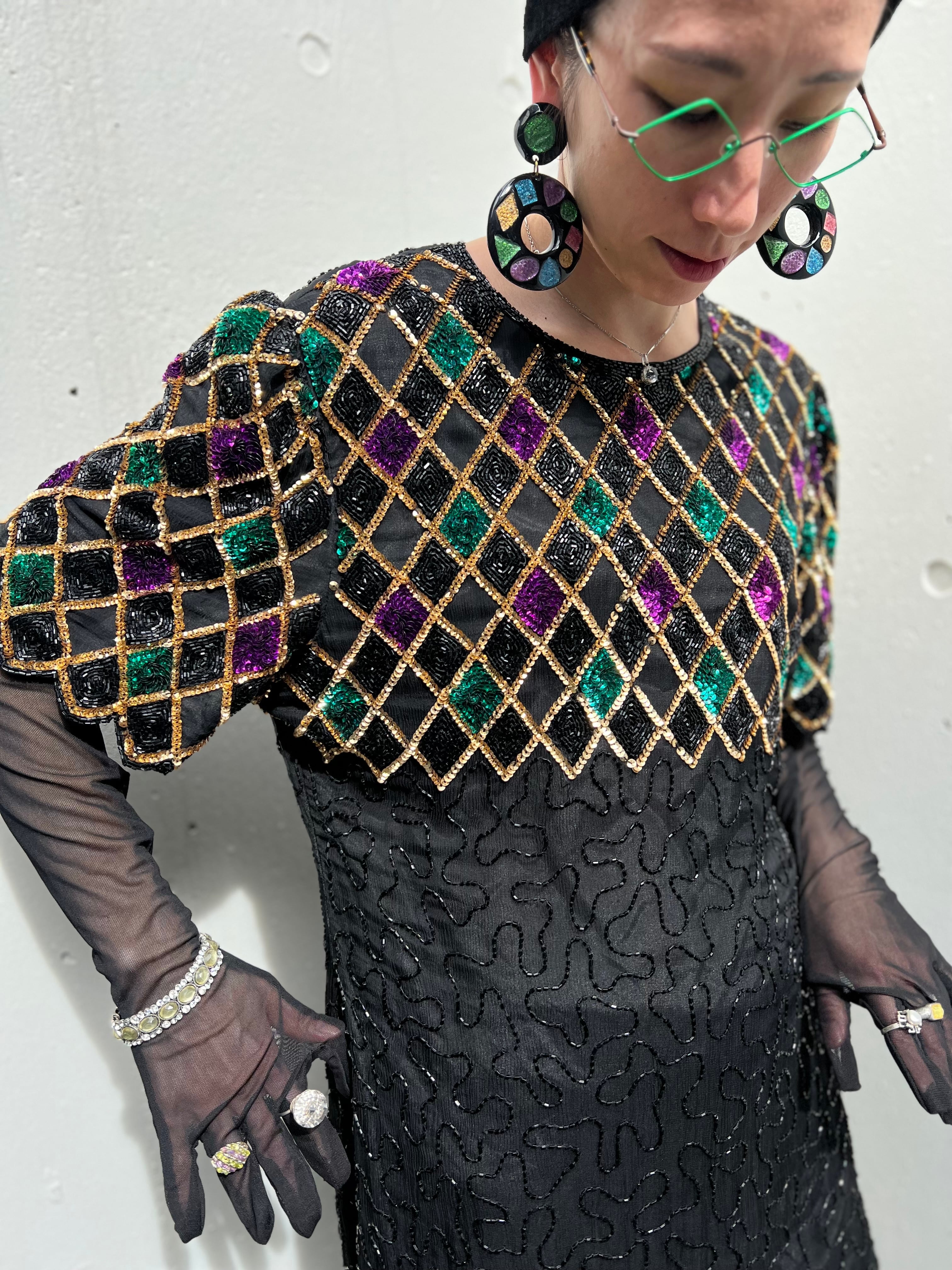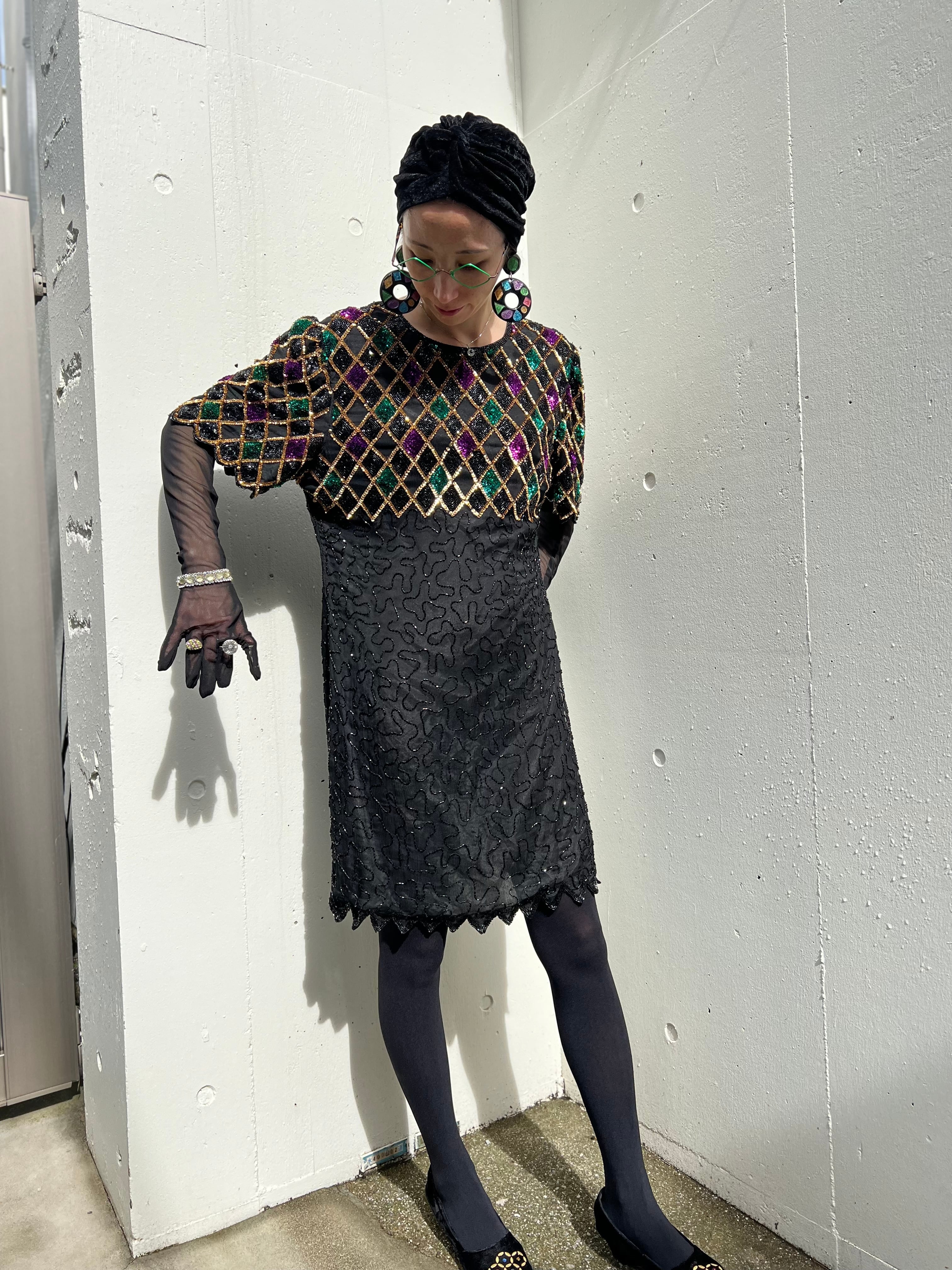 Vintage black × beads dress ( ヴィンテージ ブラック × ビーズ ワンピース ドレス )