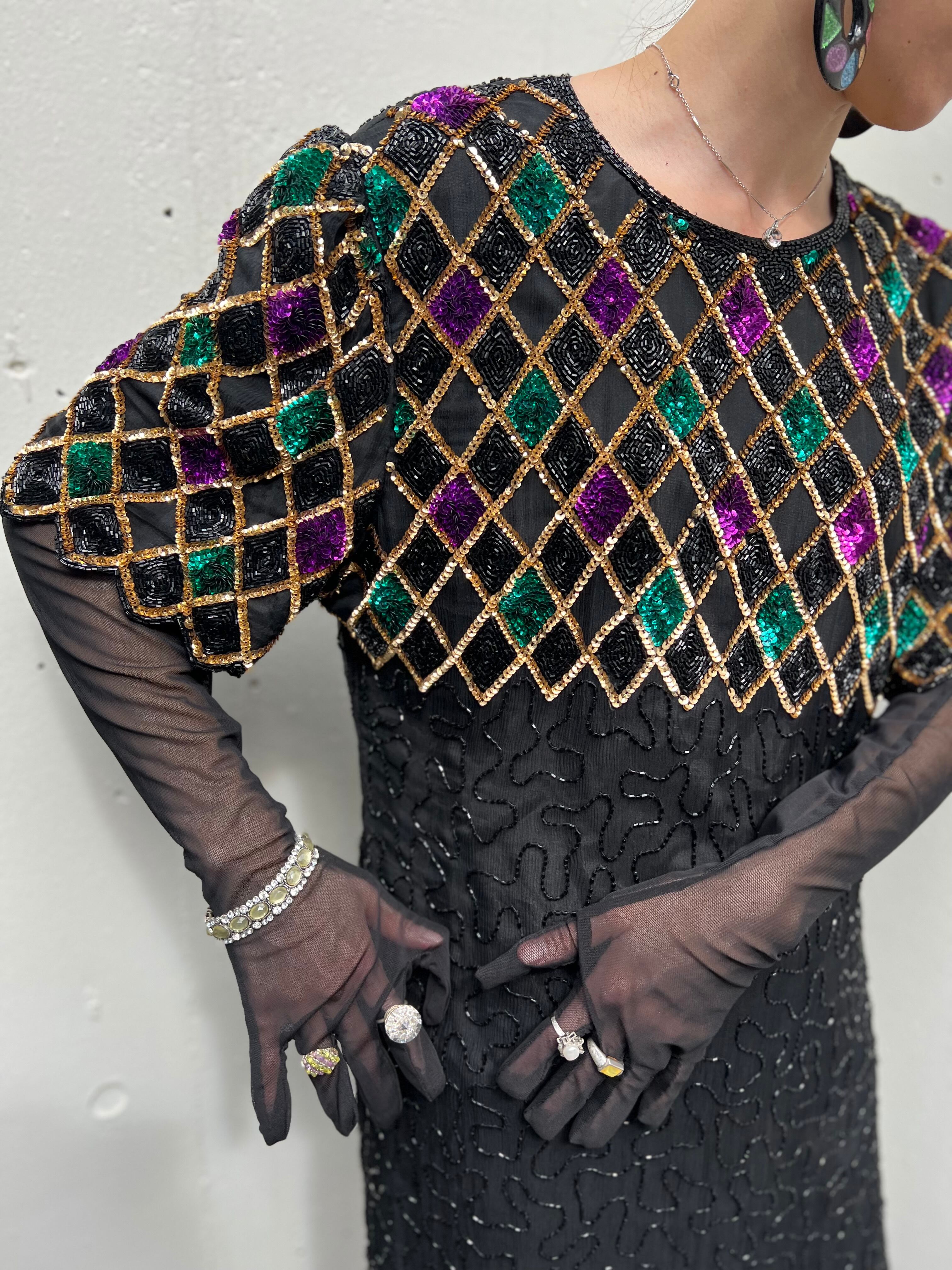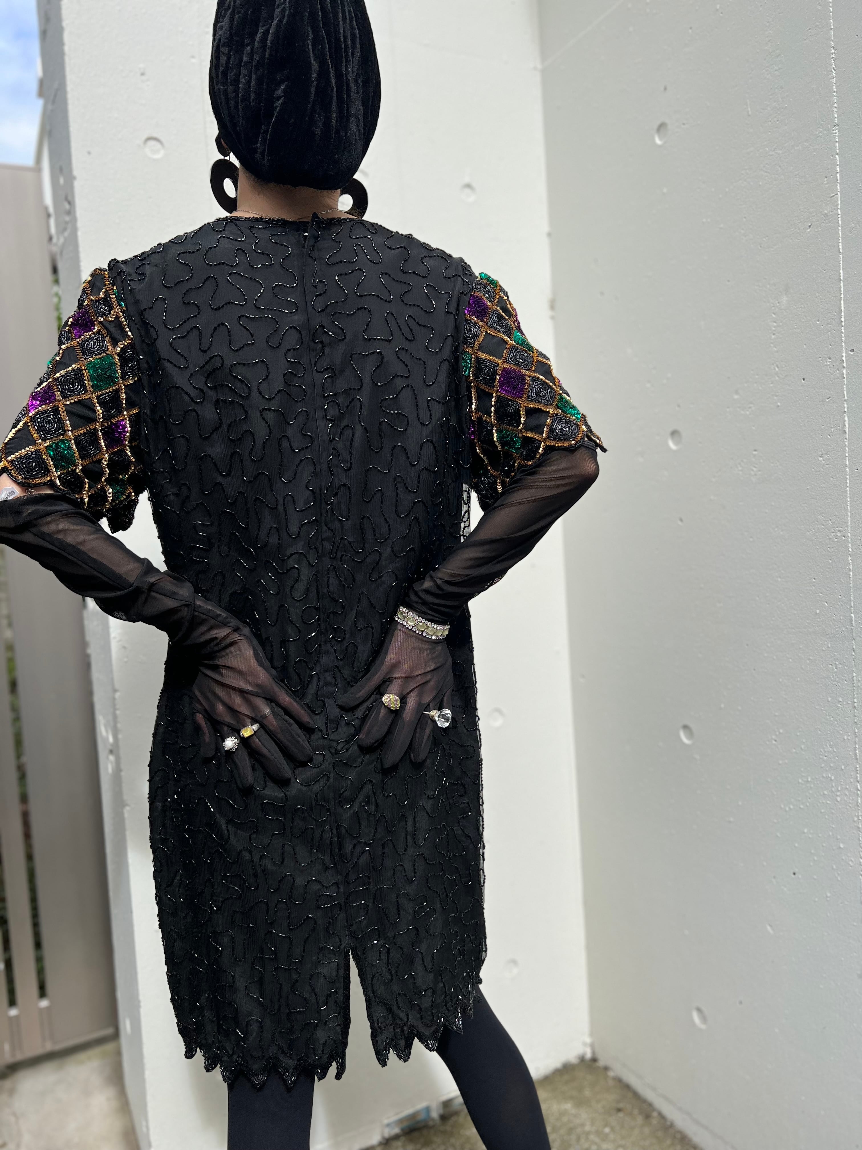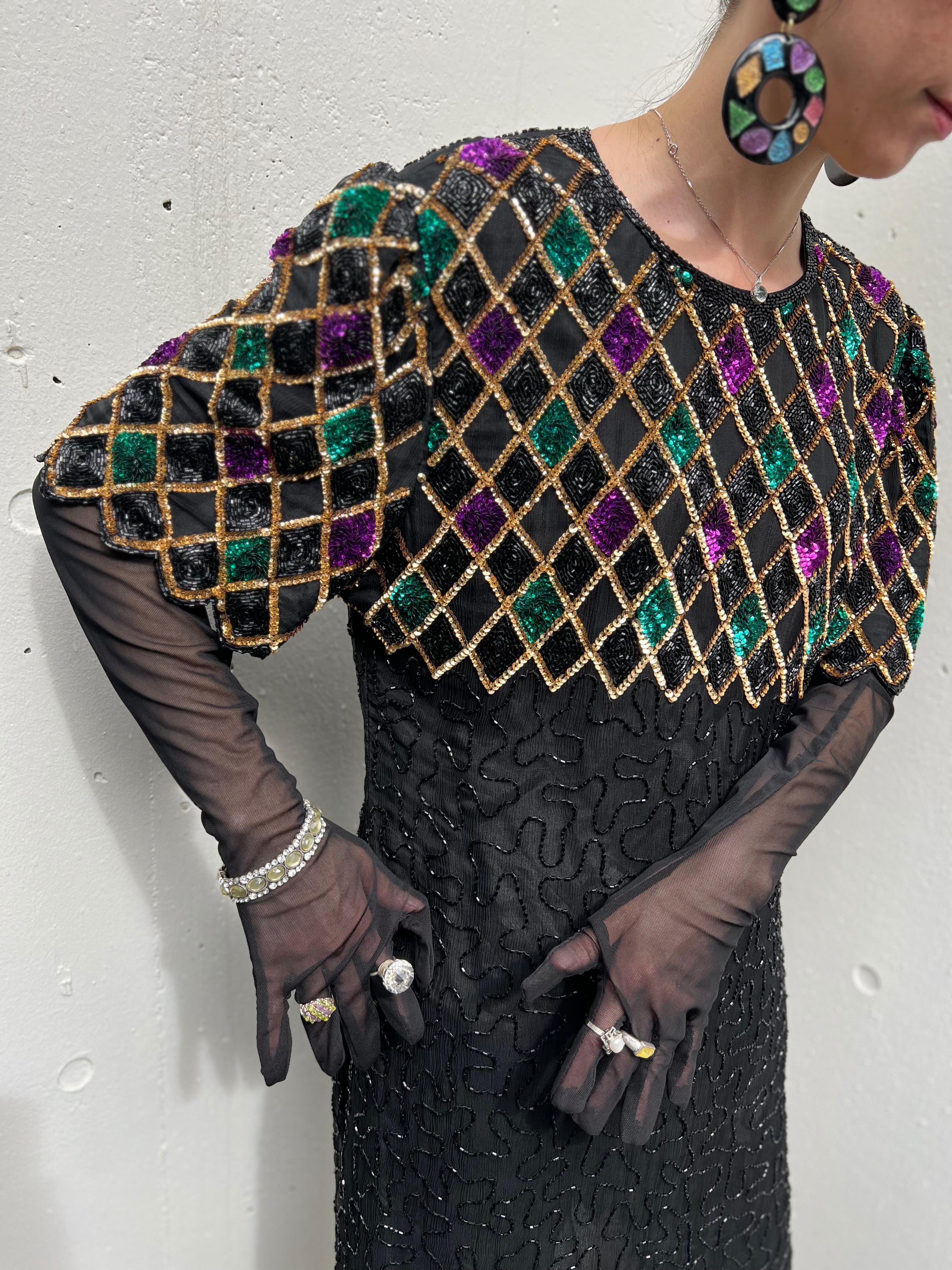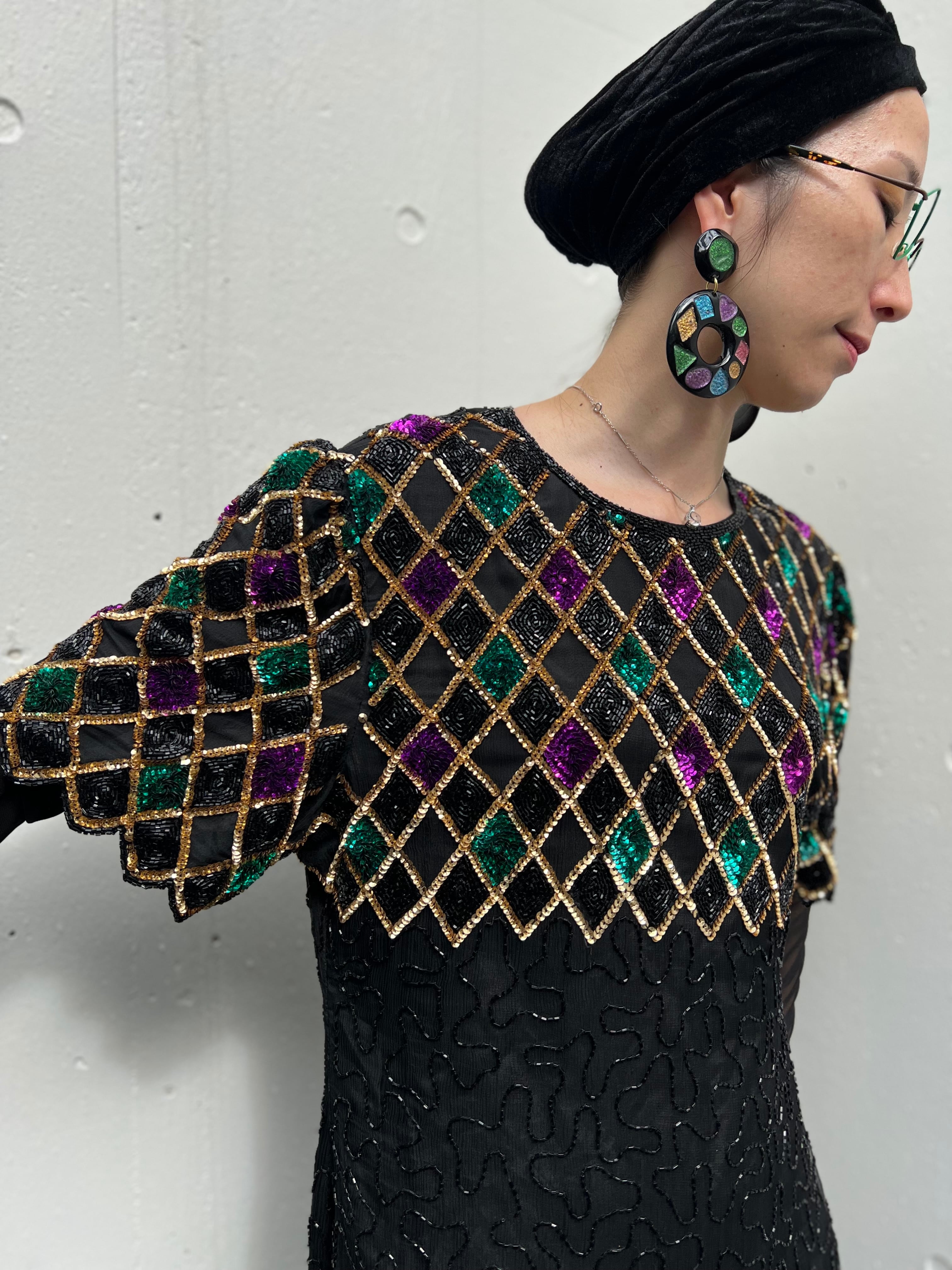 Vintage black × beads dress ( ヴィンテージ ブラック × ビーズ ワンピース ドレス )