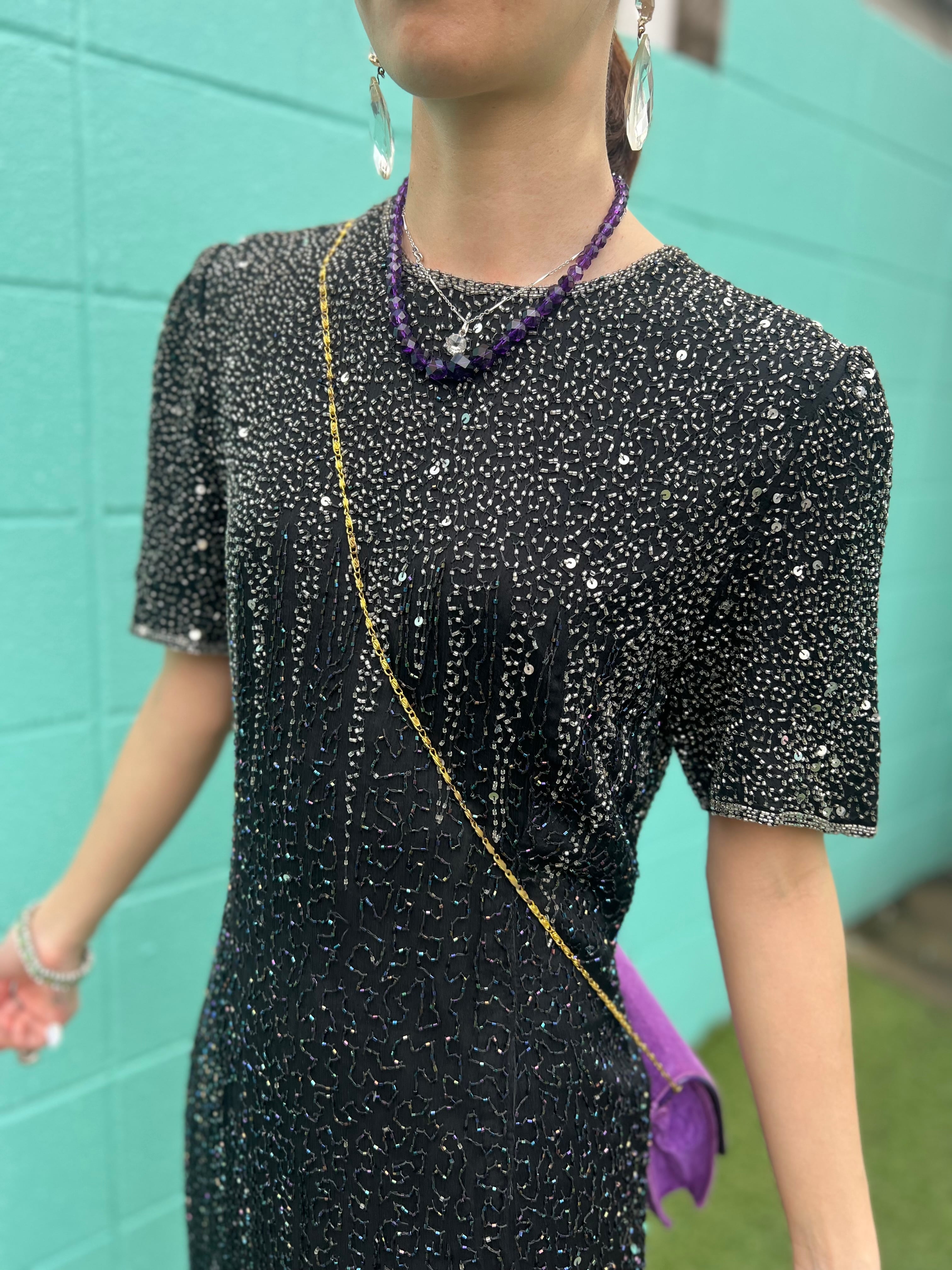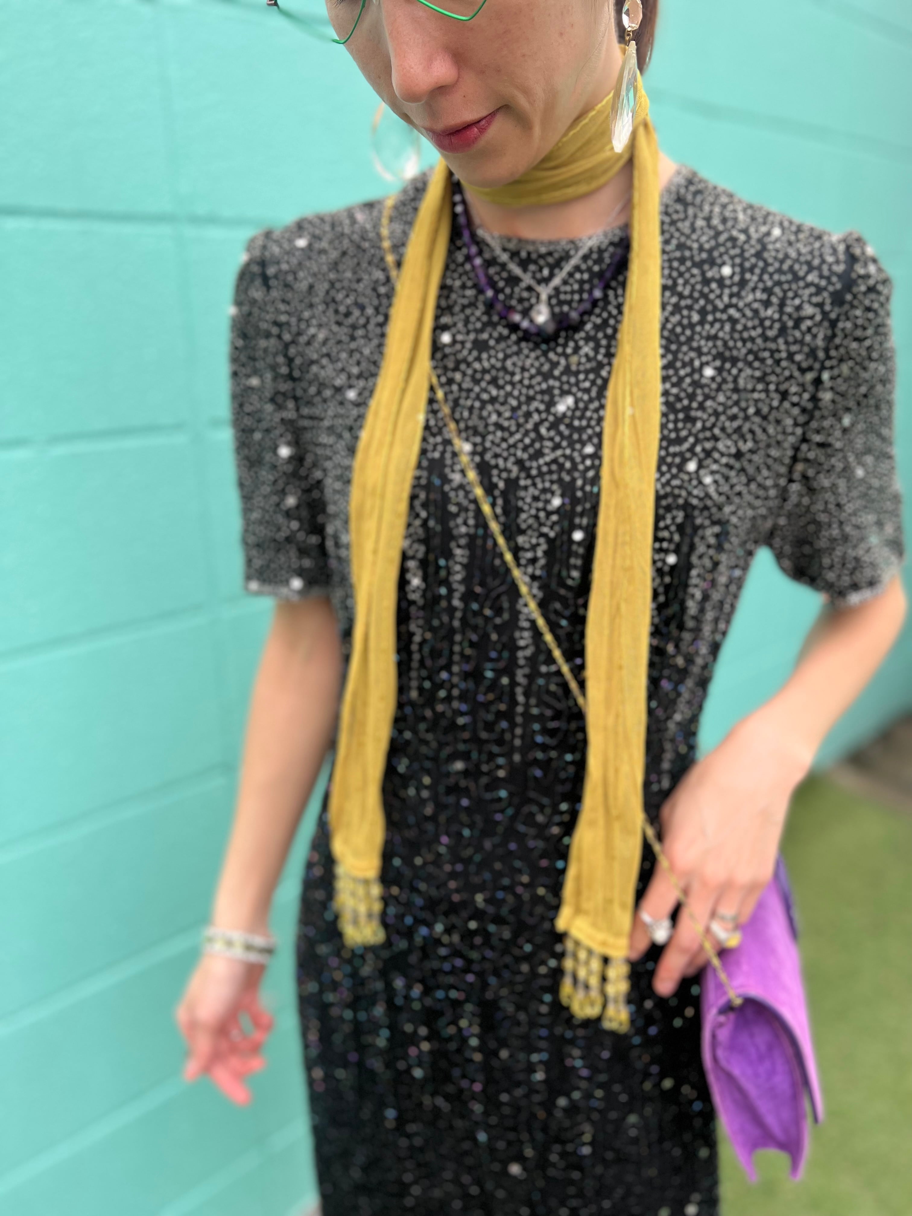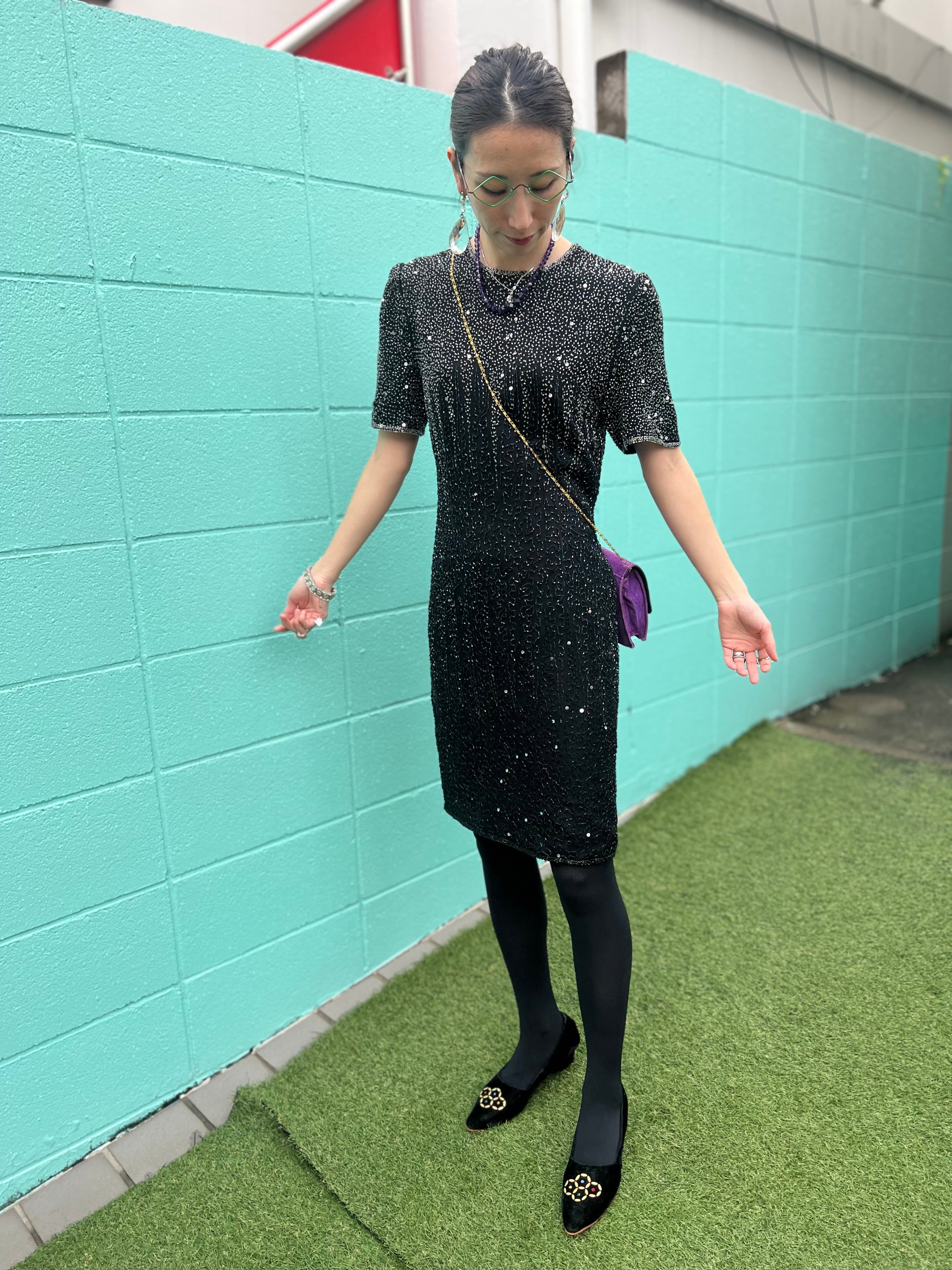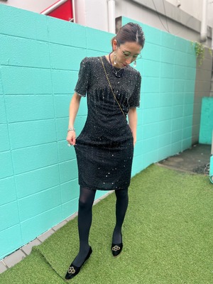 Vintage black × beads dress ( ヴィンテージ ブラック × ビーズ ワンピース ドレス )