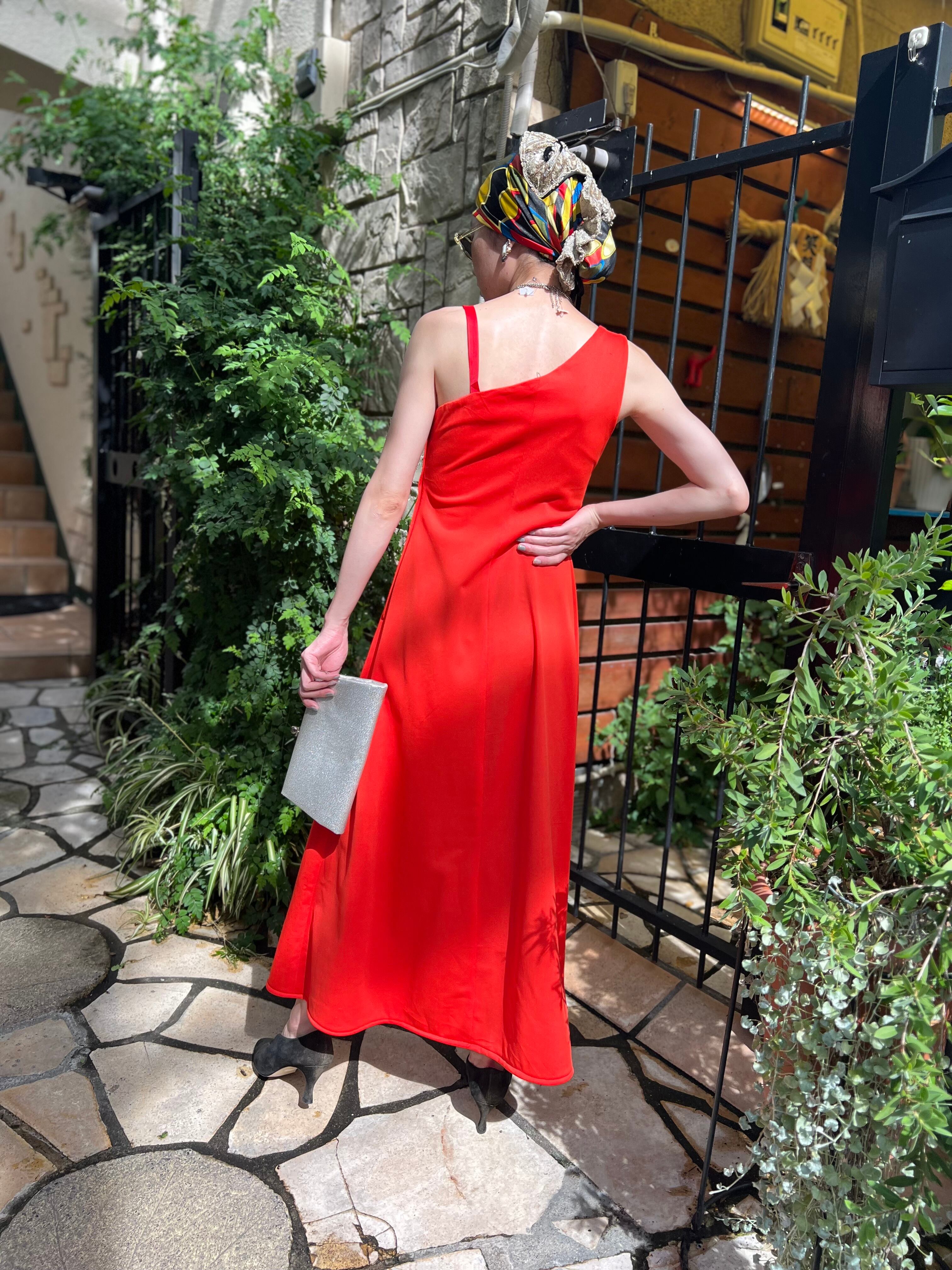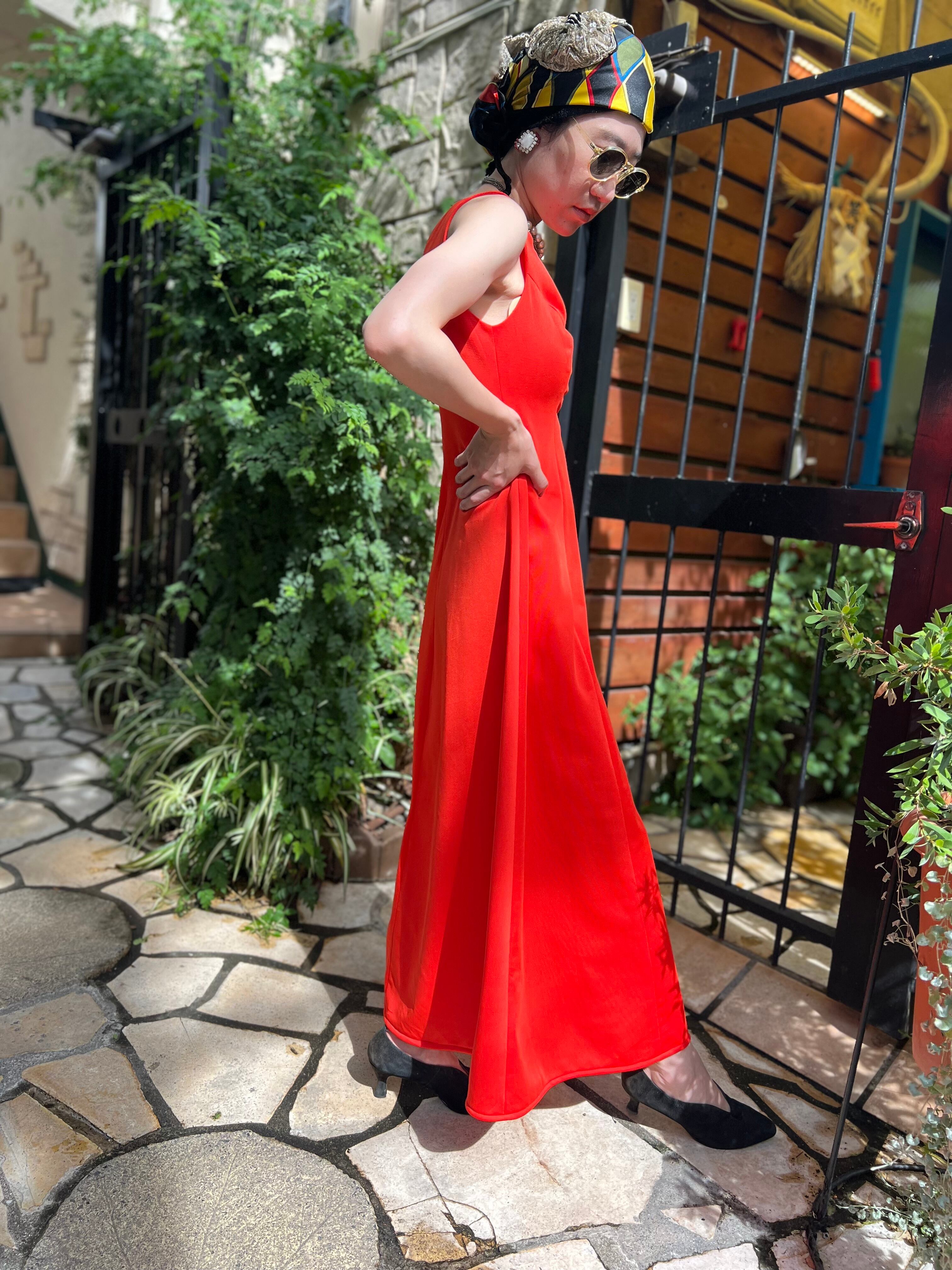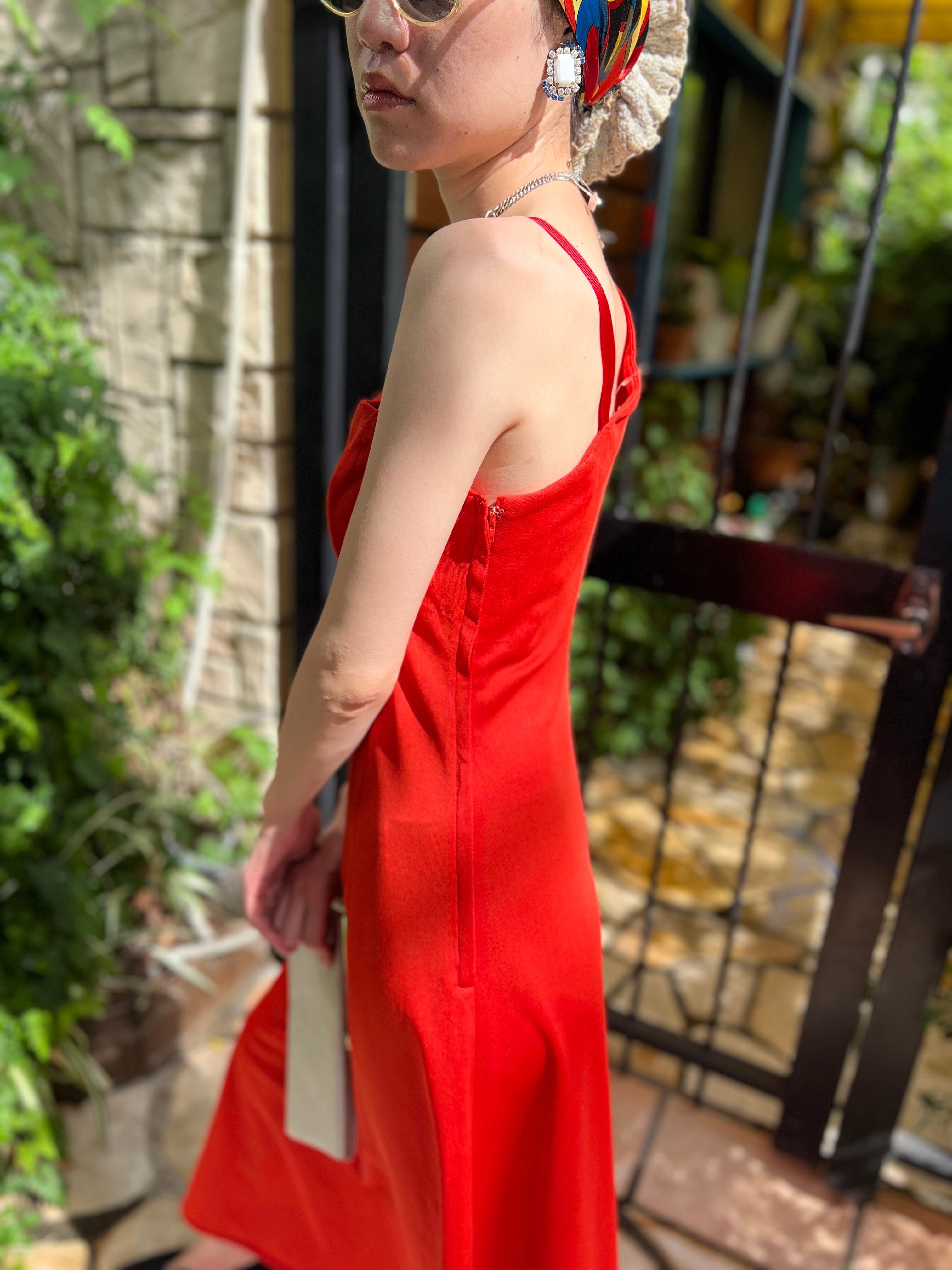 とても鮮やかで発色の綺麗な朱色と、気の利いたデザインのインナーとしても使いやすい意外と見つけにくいタイプのワンピース。
