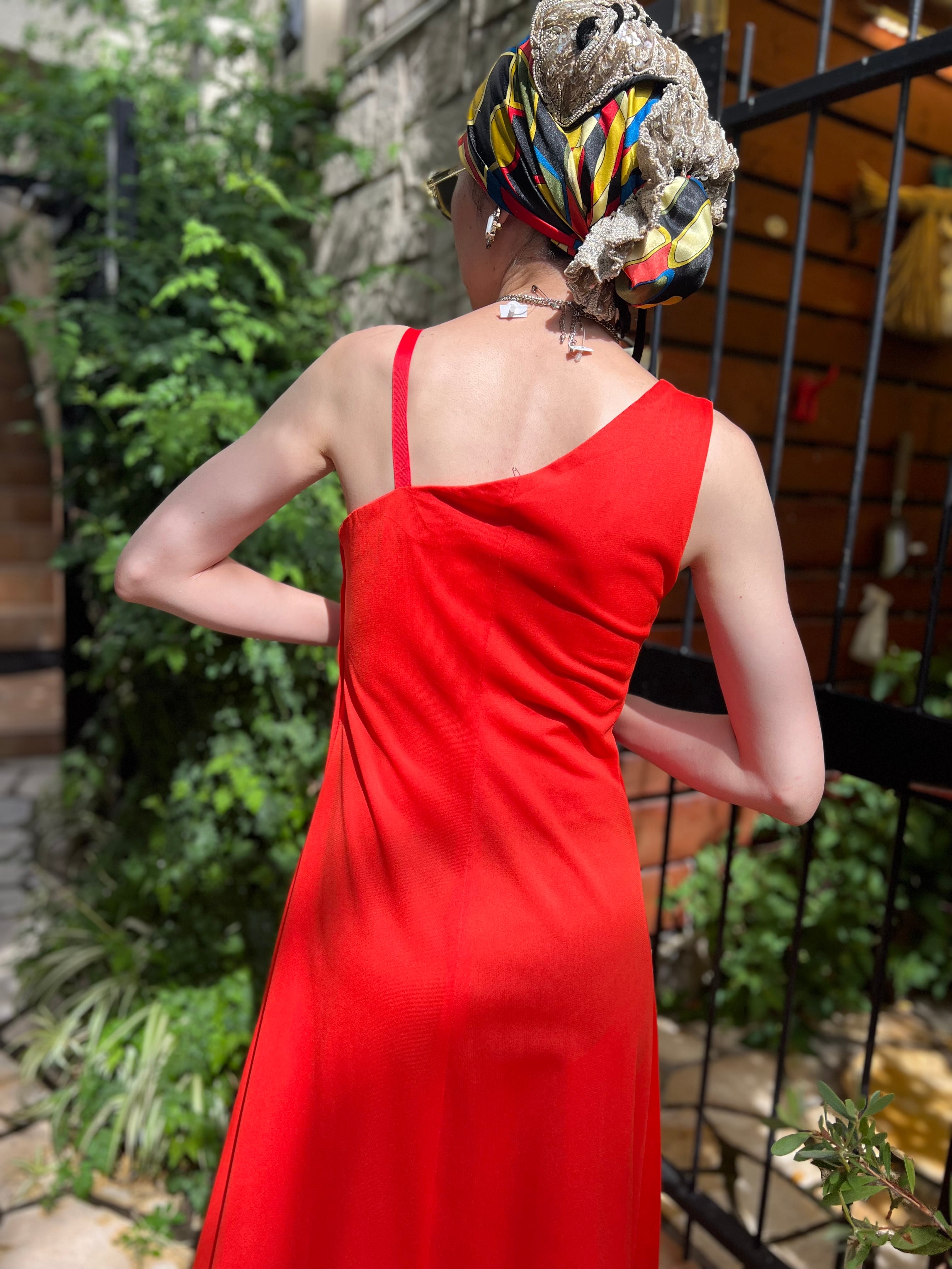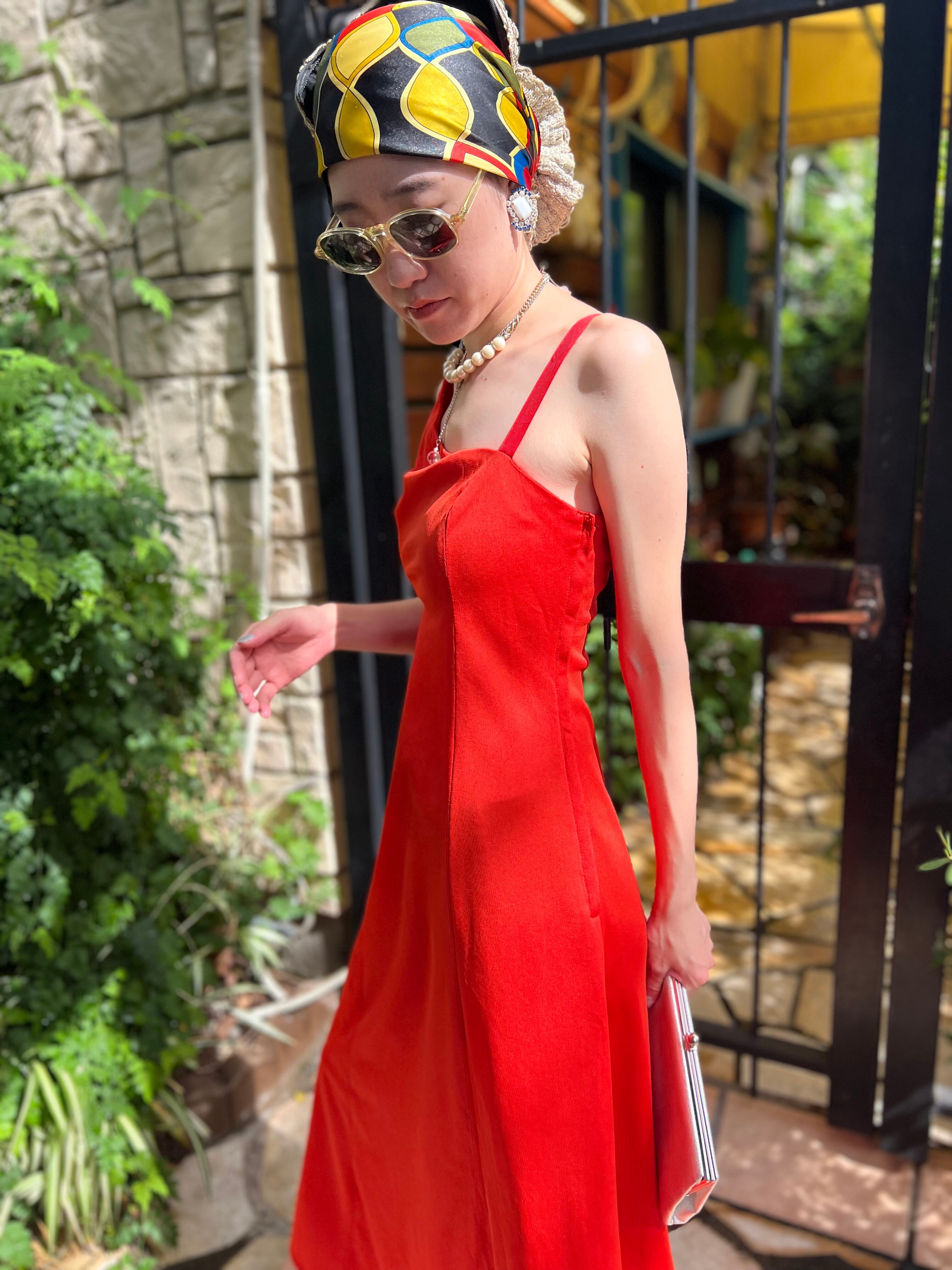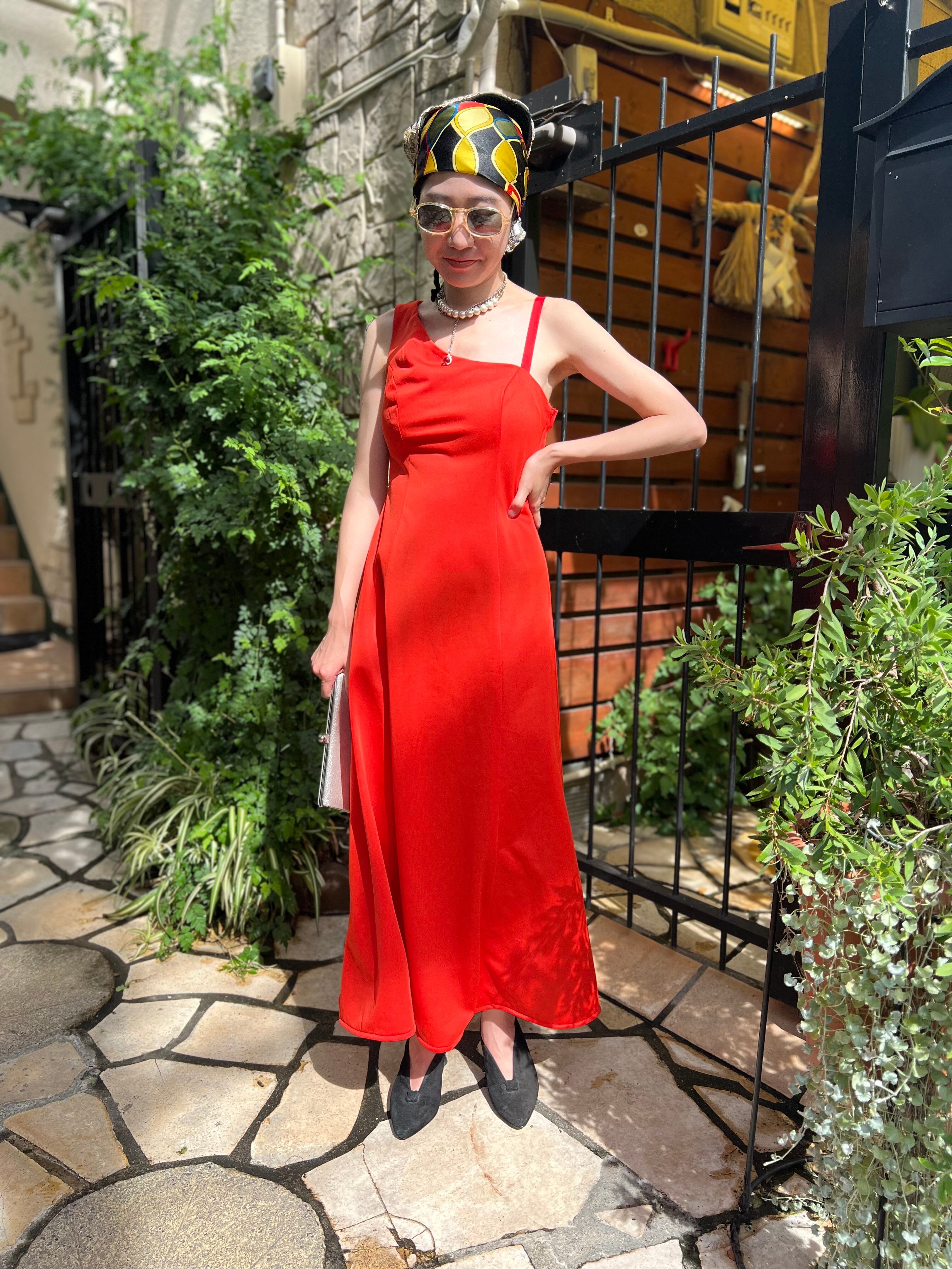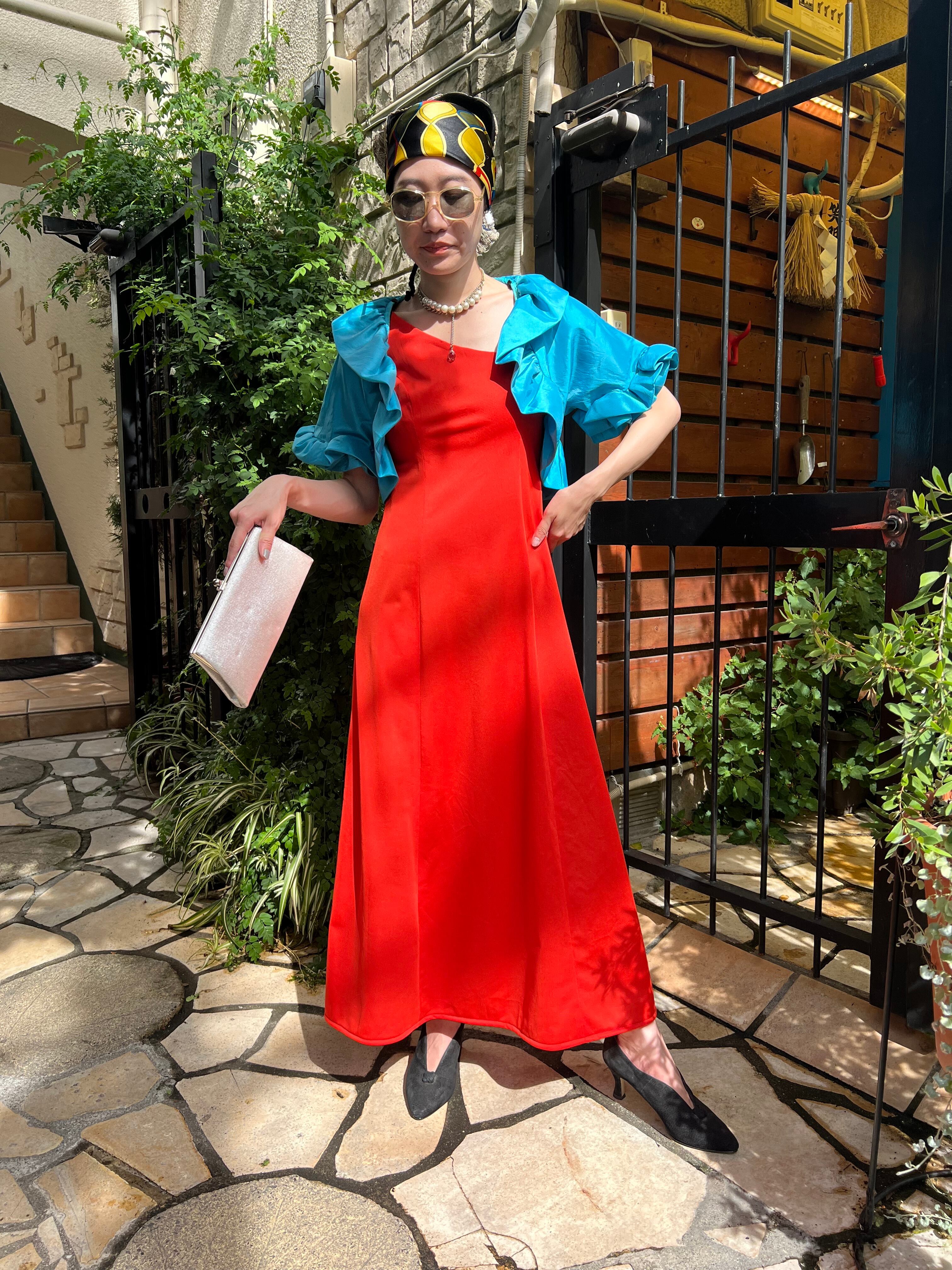 とても鮮やかで発色の綺麗な朱色と、気の利いたデザインのインナーとしても使いやすい意外と見つけにくいタイプのワンピース。