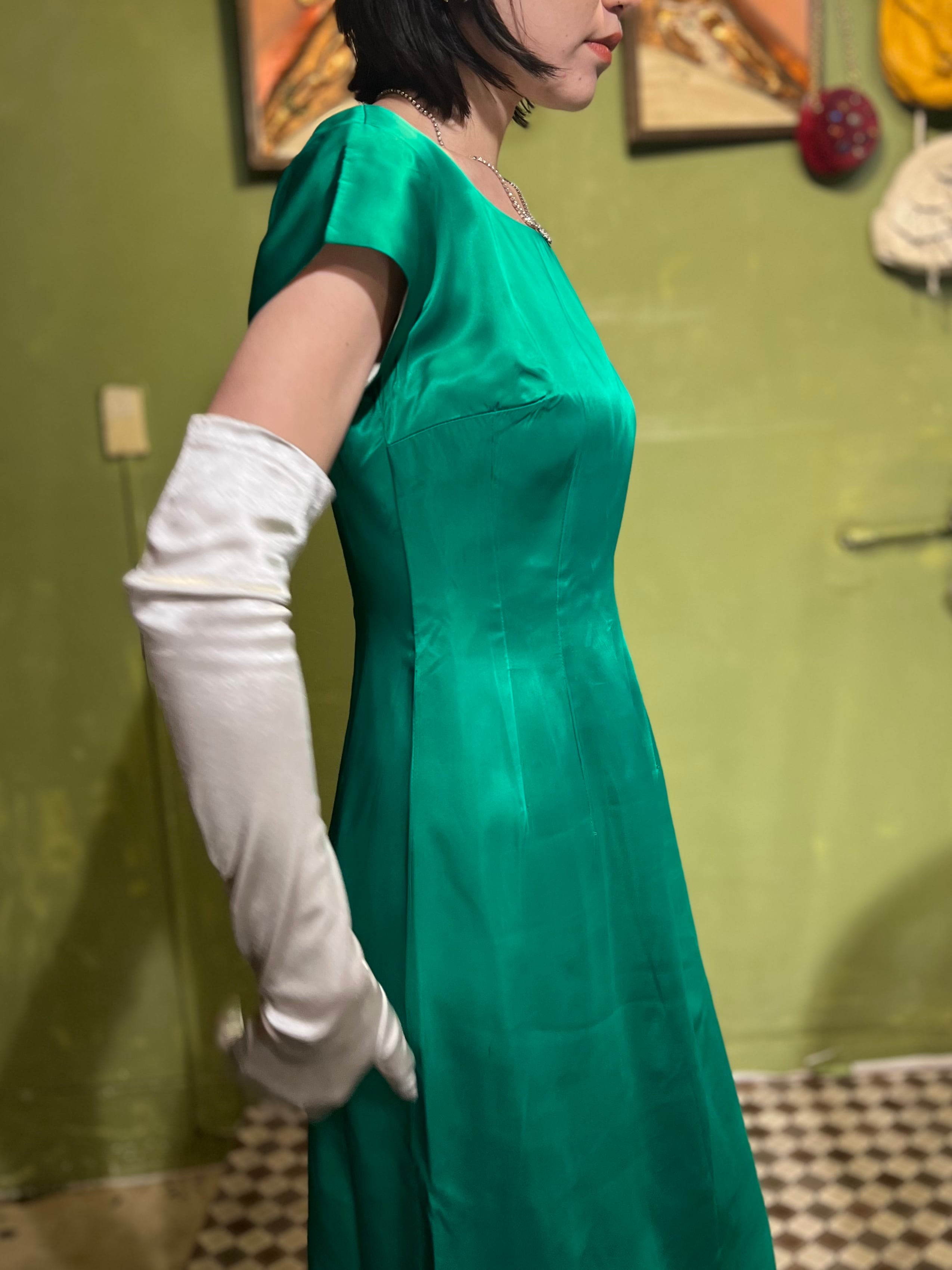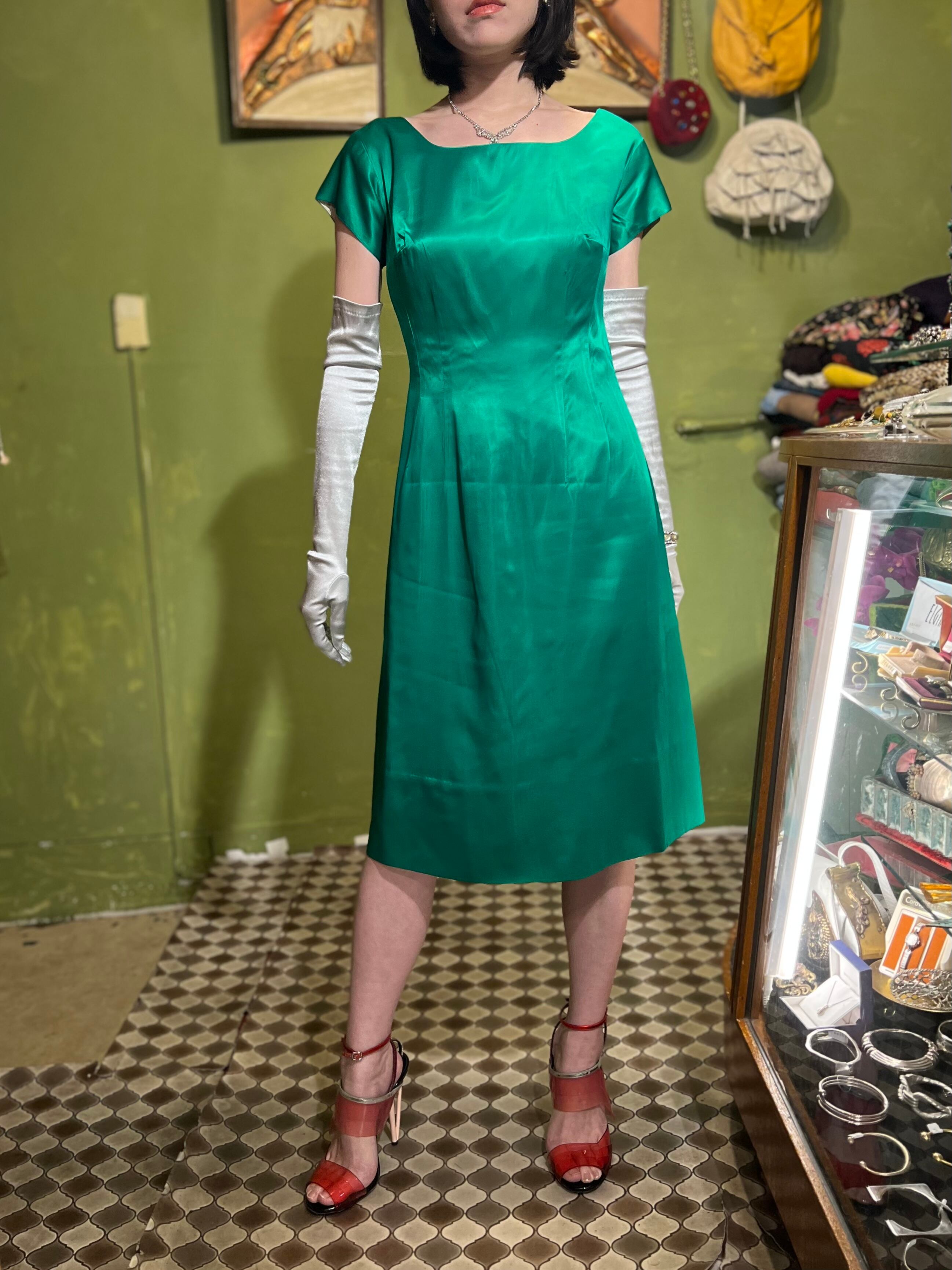 50年代から60年代ごろのハンドメイド グリーン ドレスになります。