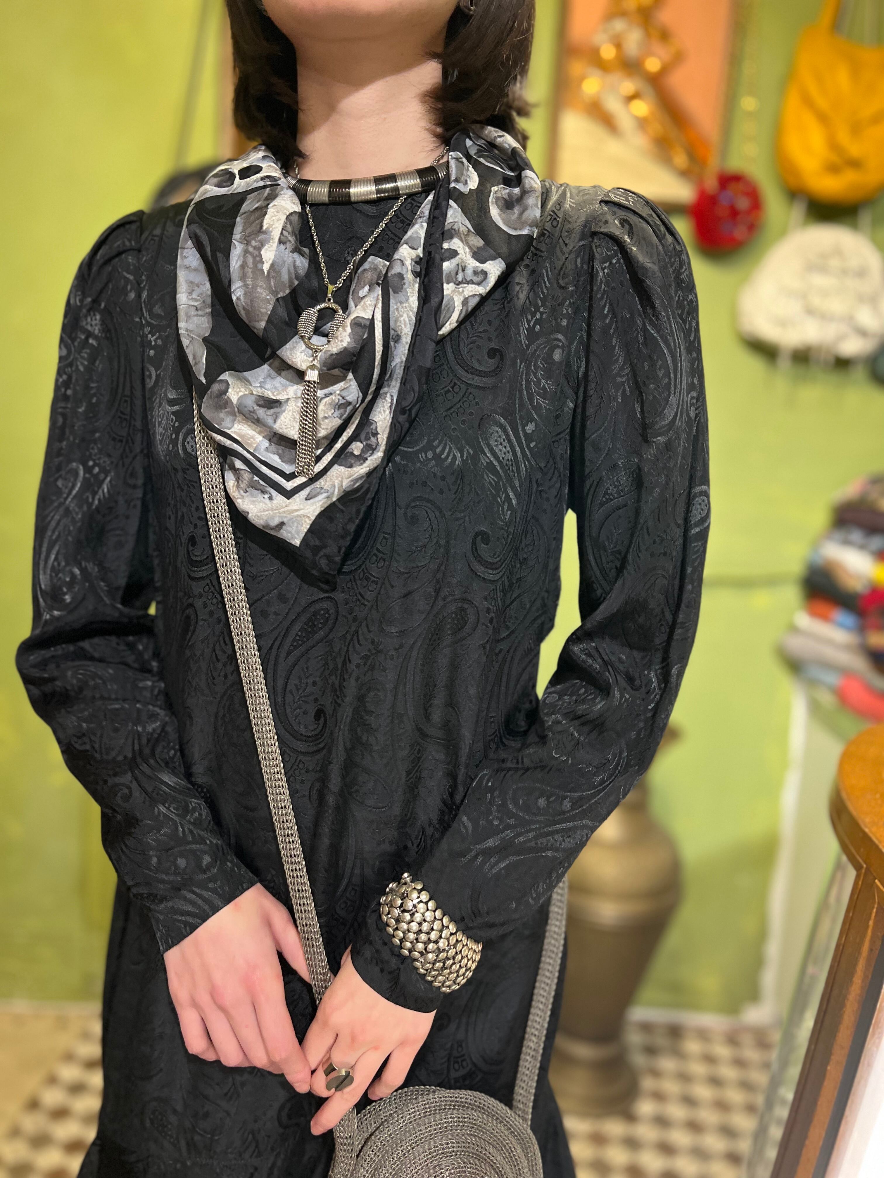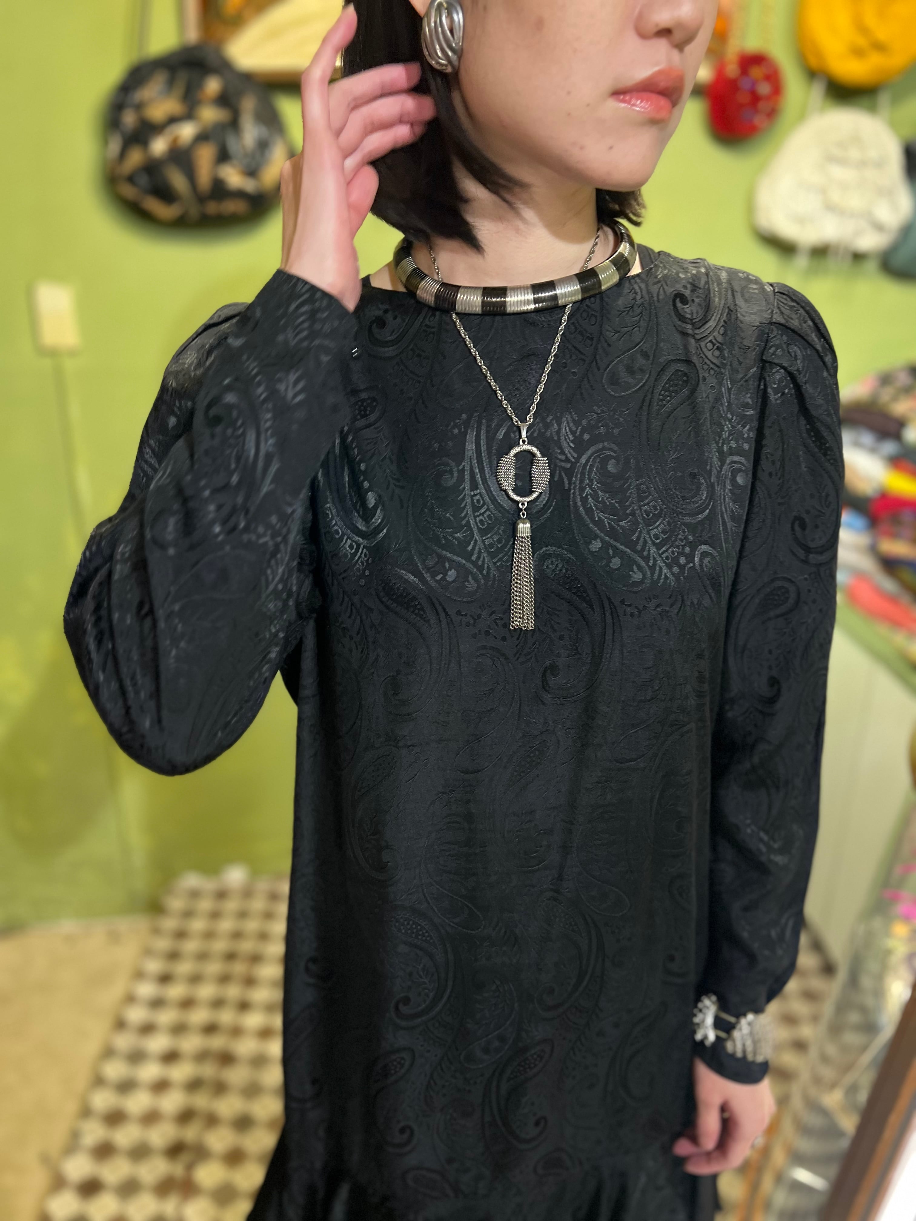 80年代ブラック × ブラックペイズリー フリル ワンピースになります。
