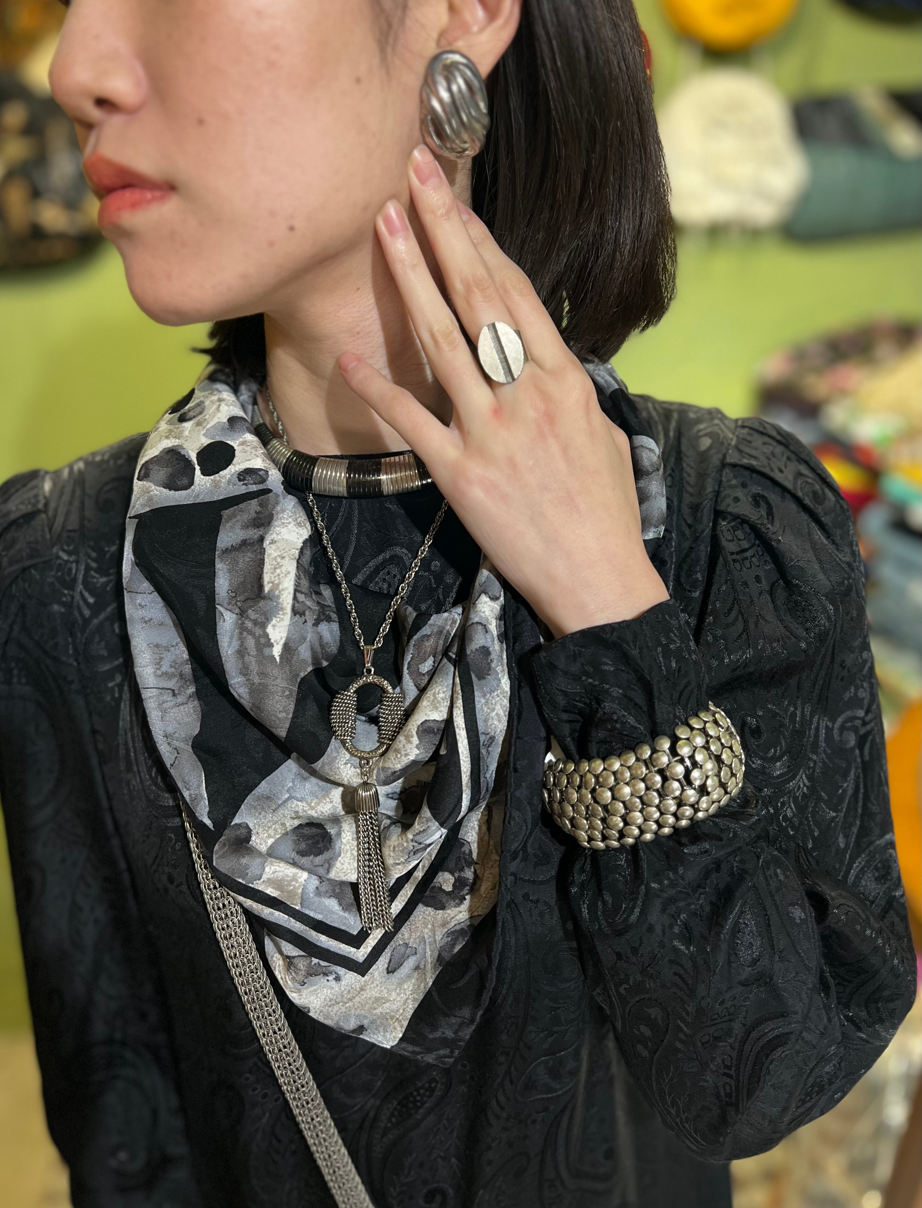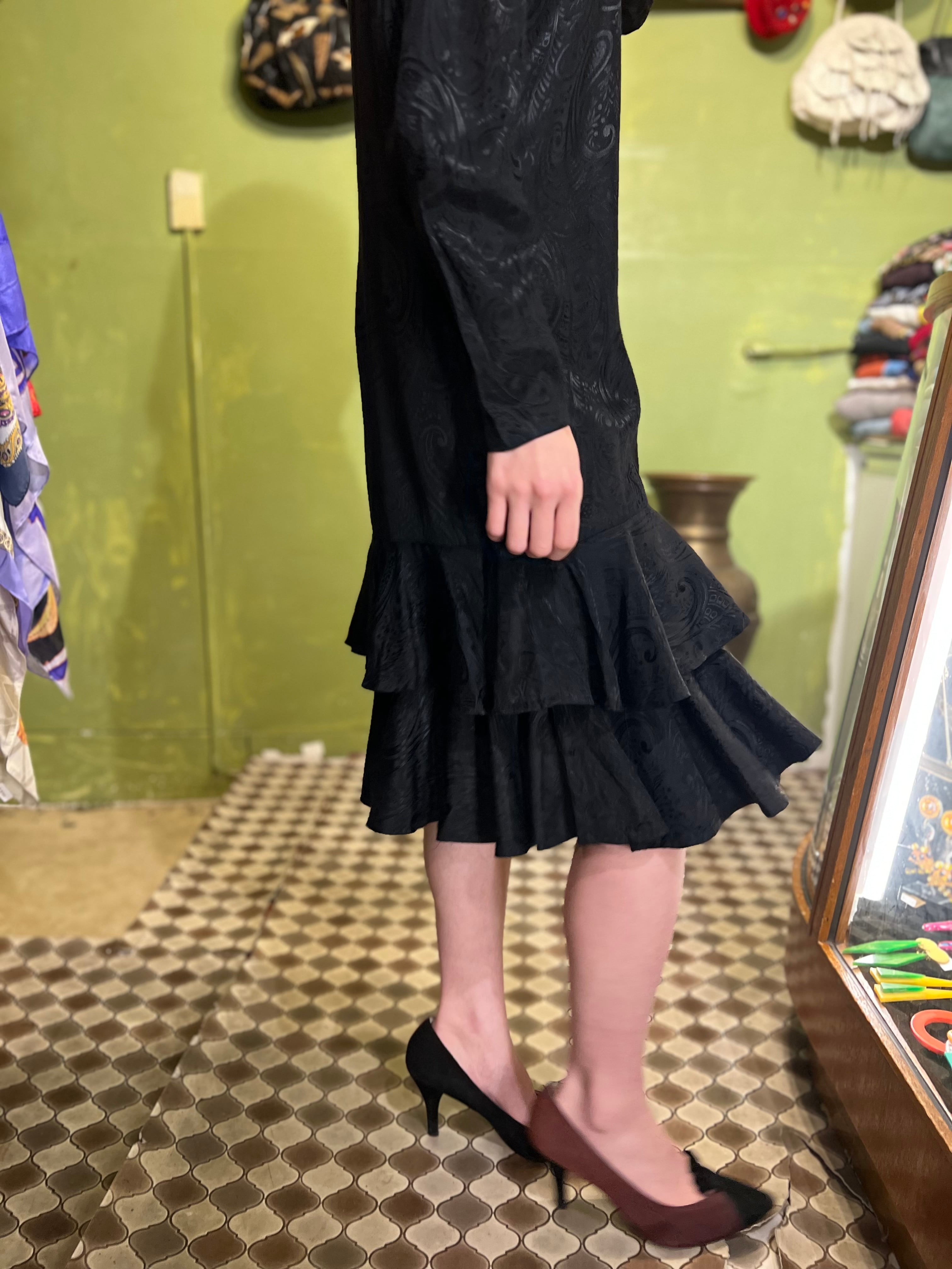 80s black × paisley frilled dress ( ヴィンテージ ブラック × ペイズリー フリル ワンピース )