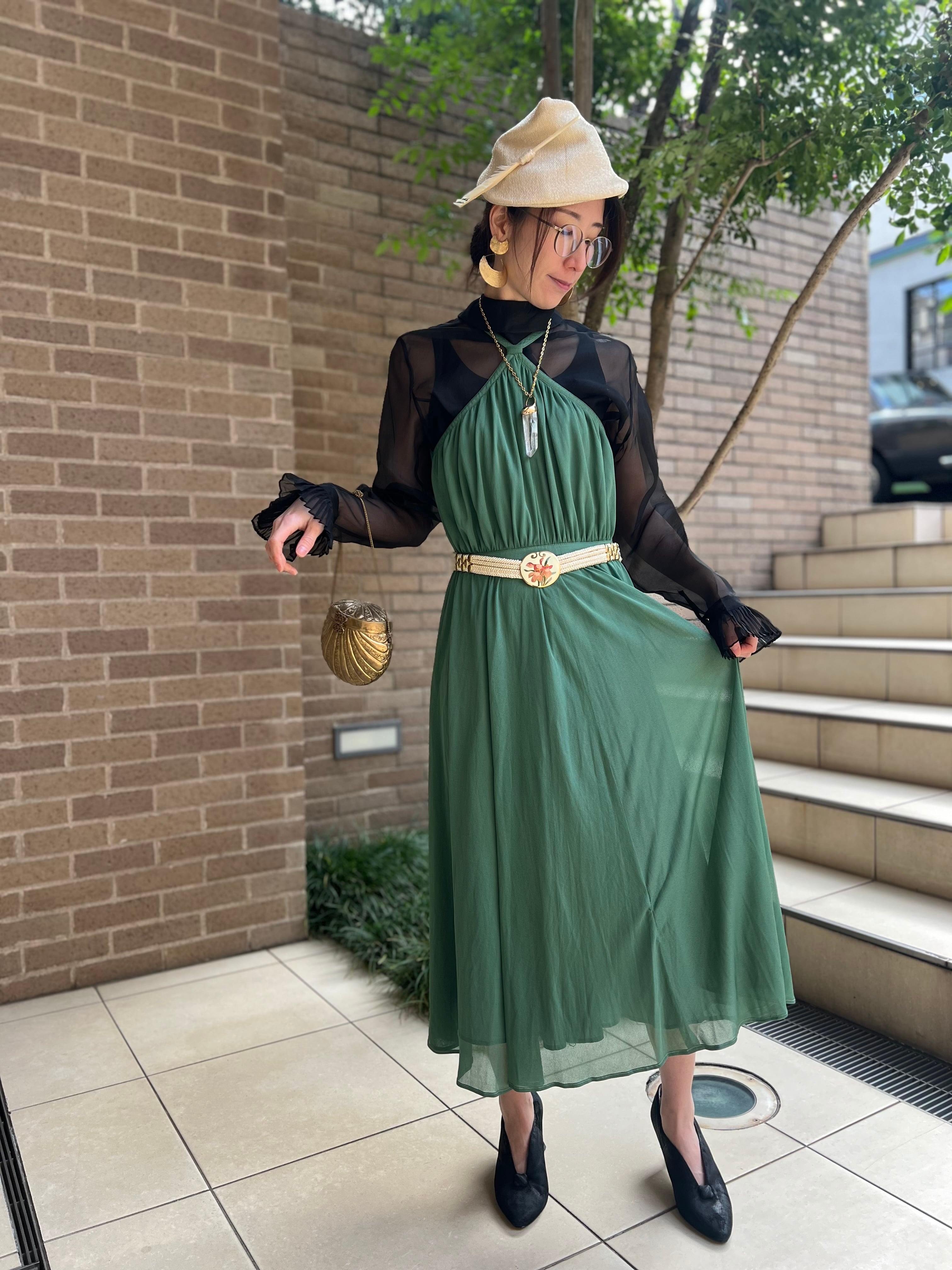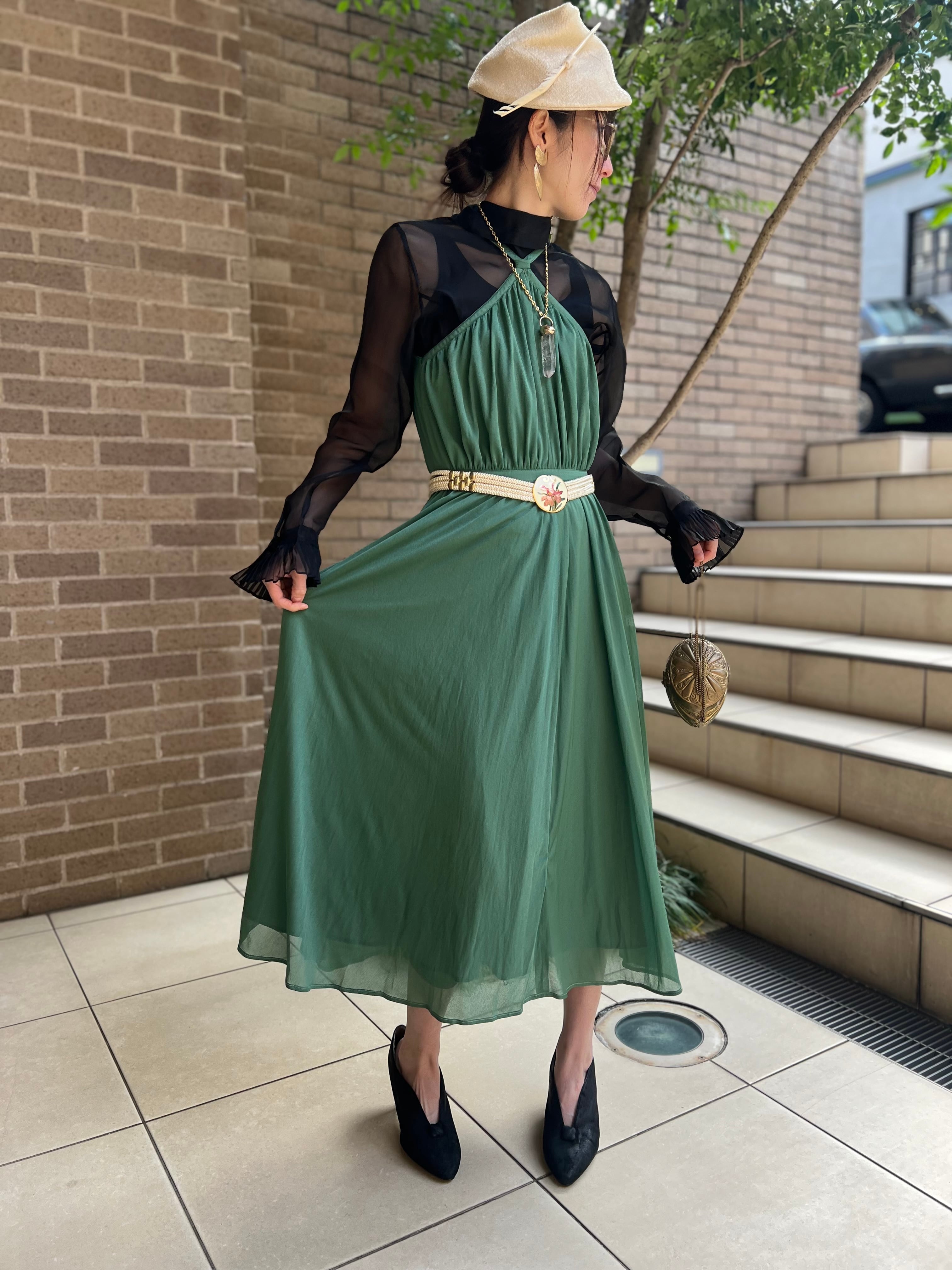 Vintage Euro moss green dress ( ヴィンテージ ヨーロッパ モスグリーン ドレス ワンピース )
