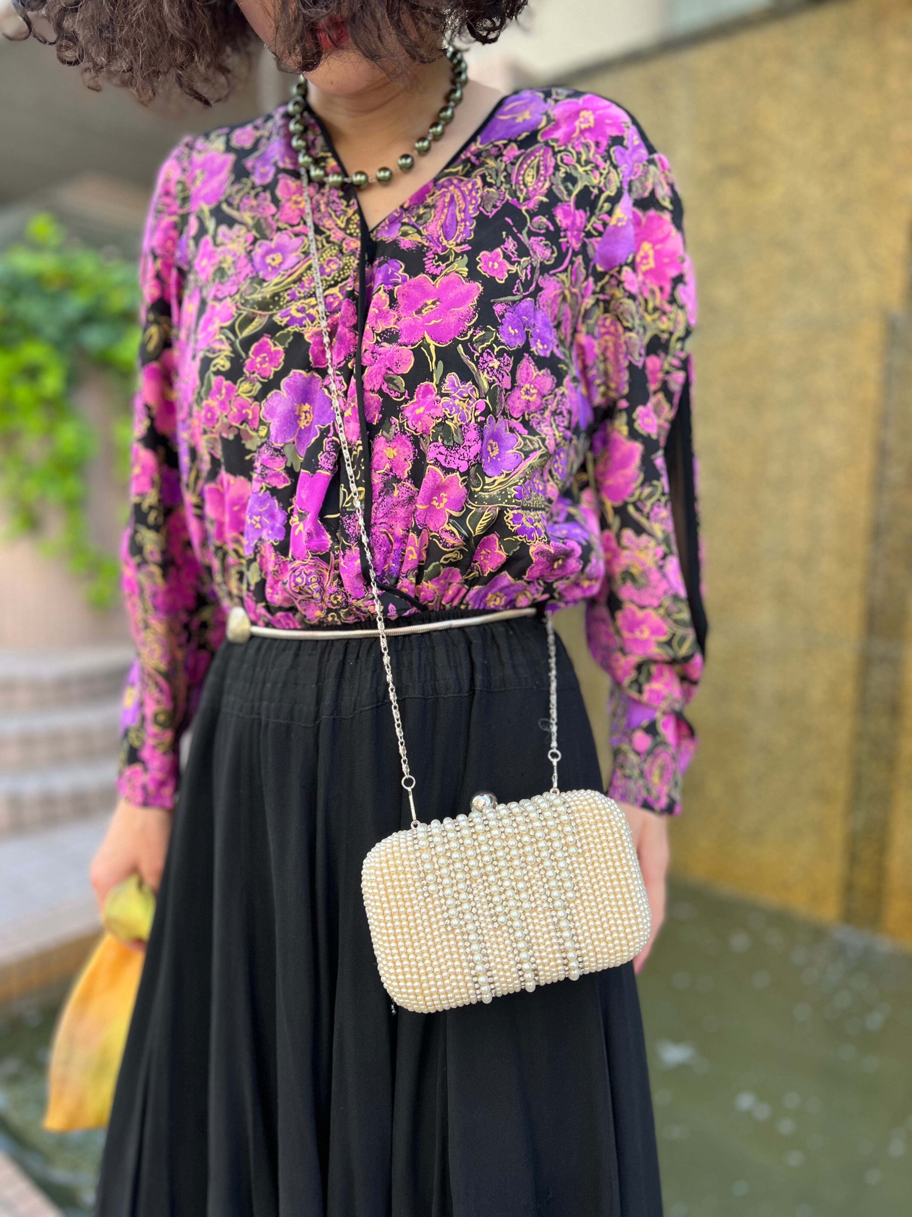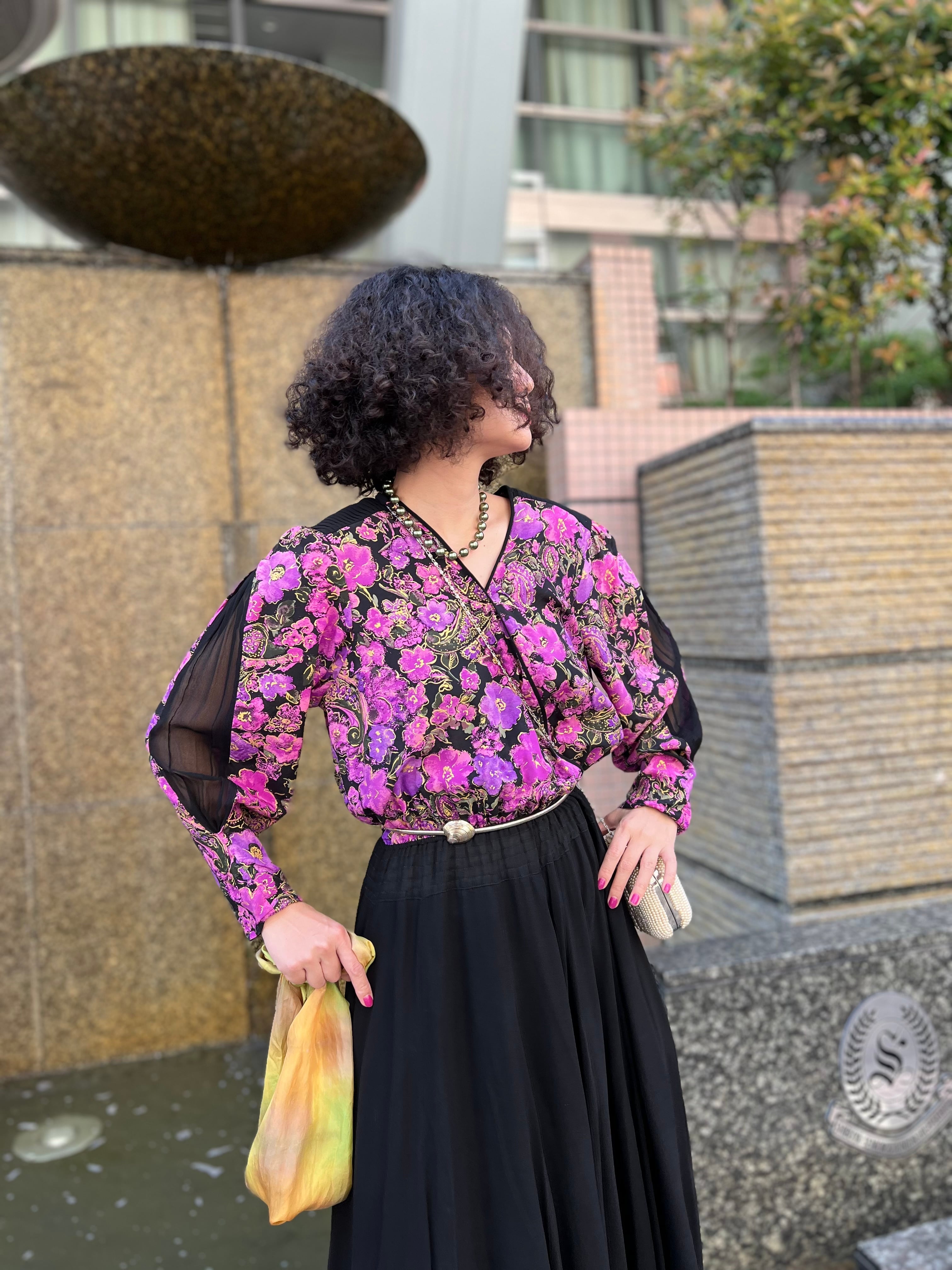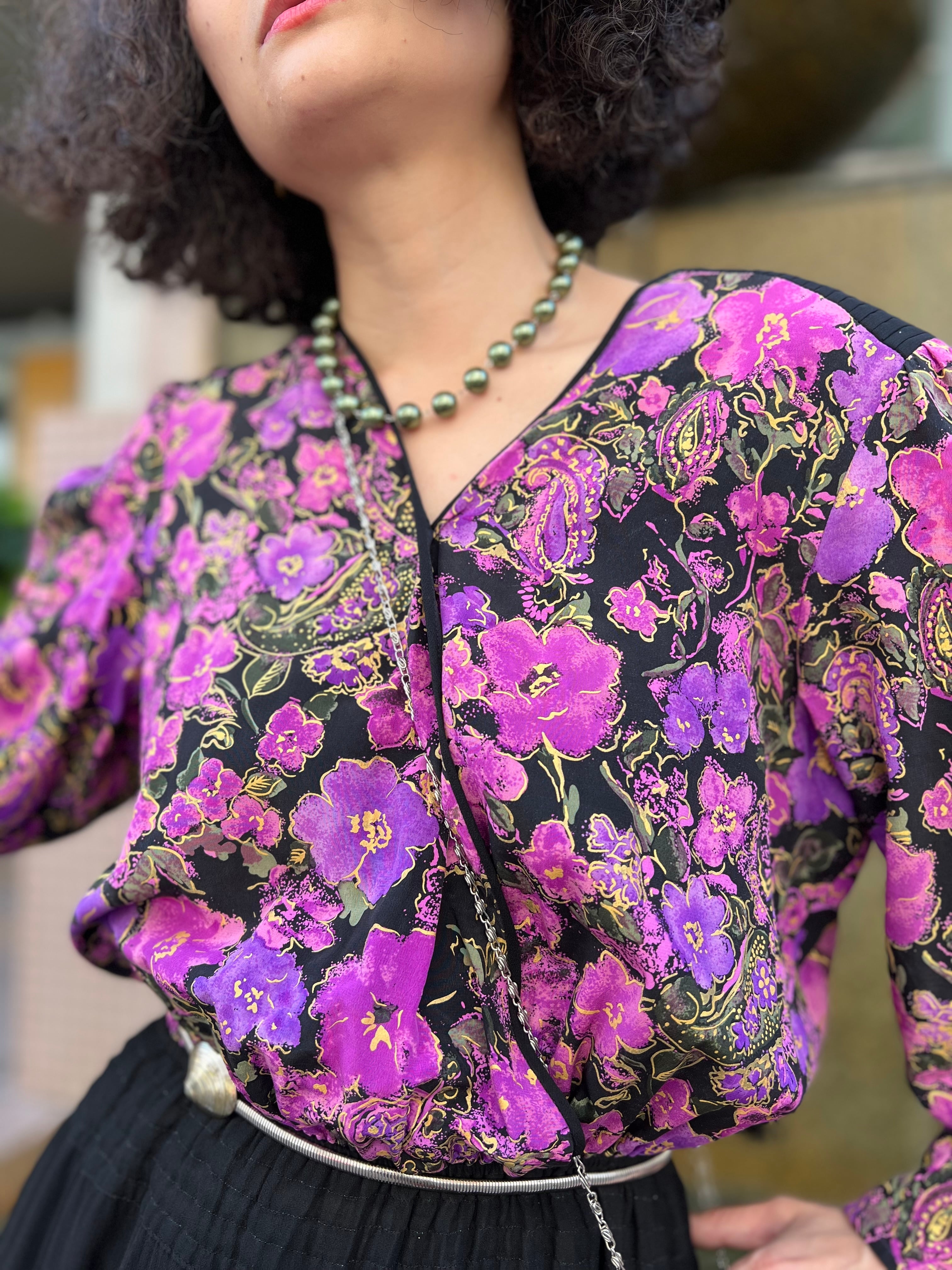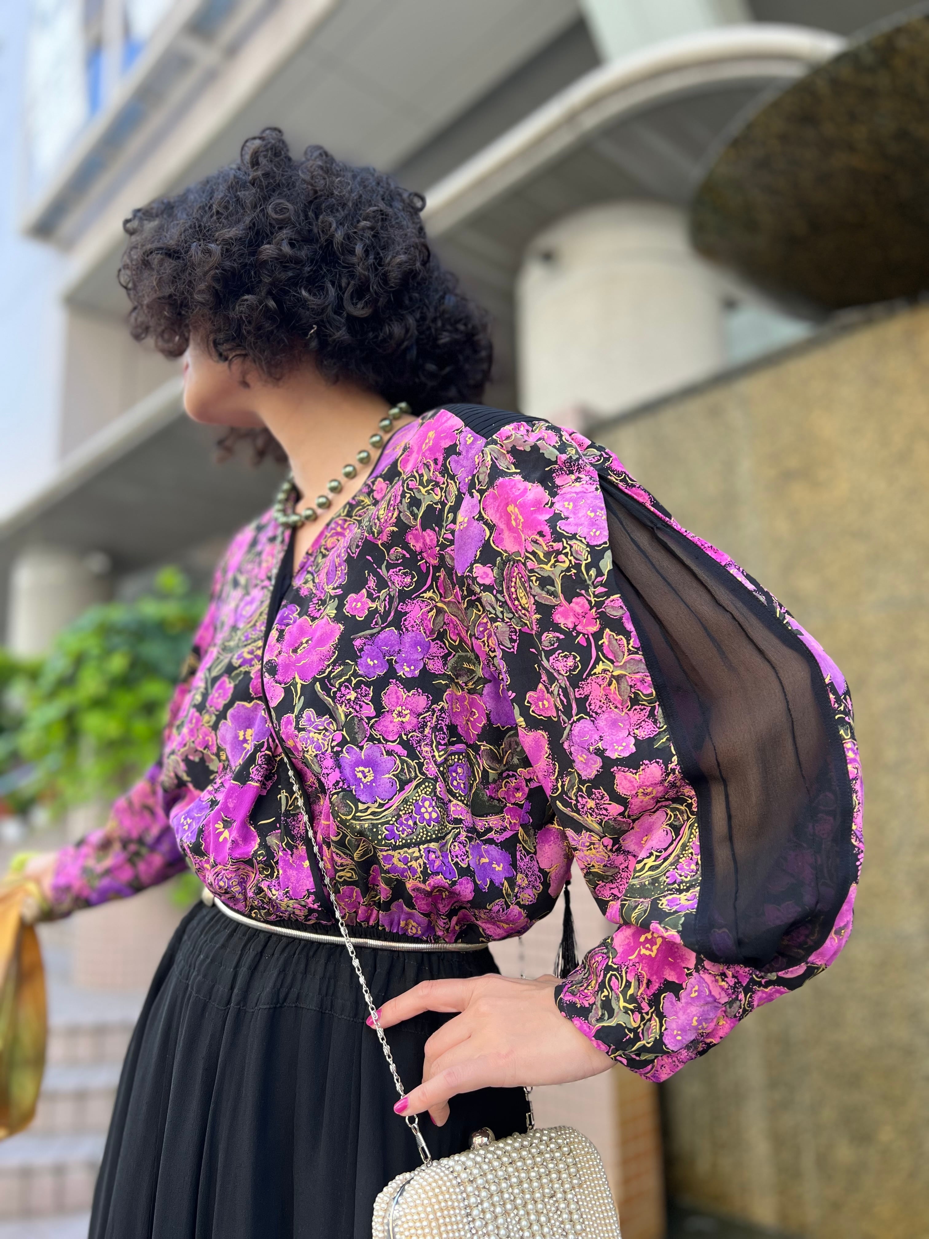 80年代ダイアンのブラック × パープル 花柄 シルクワンピースになります。