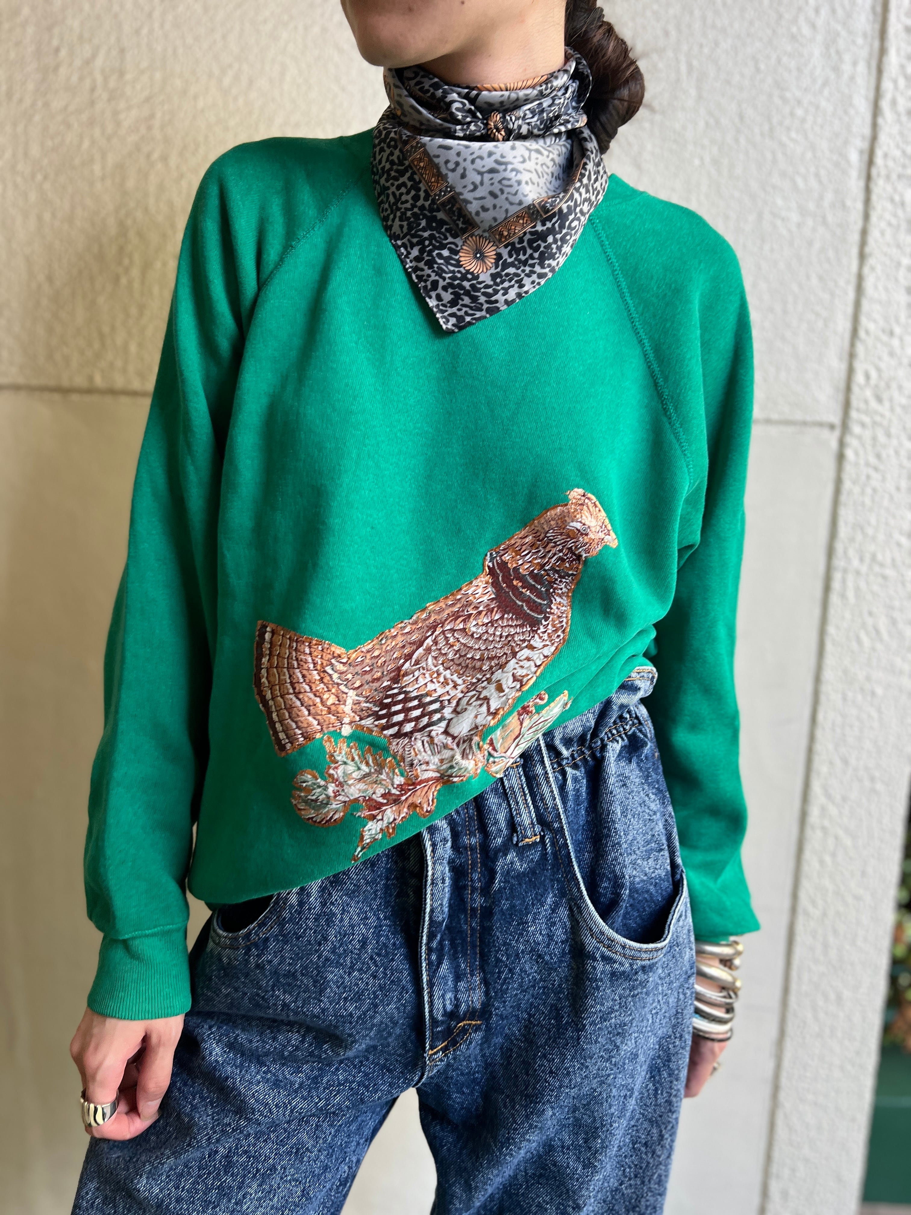 ヴィンテージ グリーン ハンドペイントニワトリ スウェットになります。
