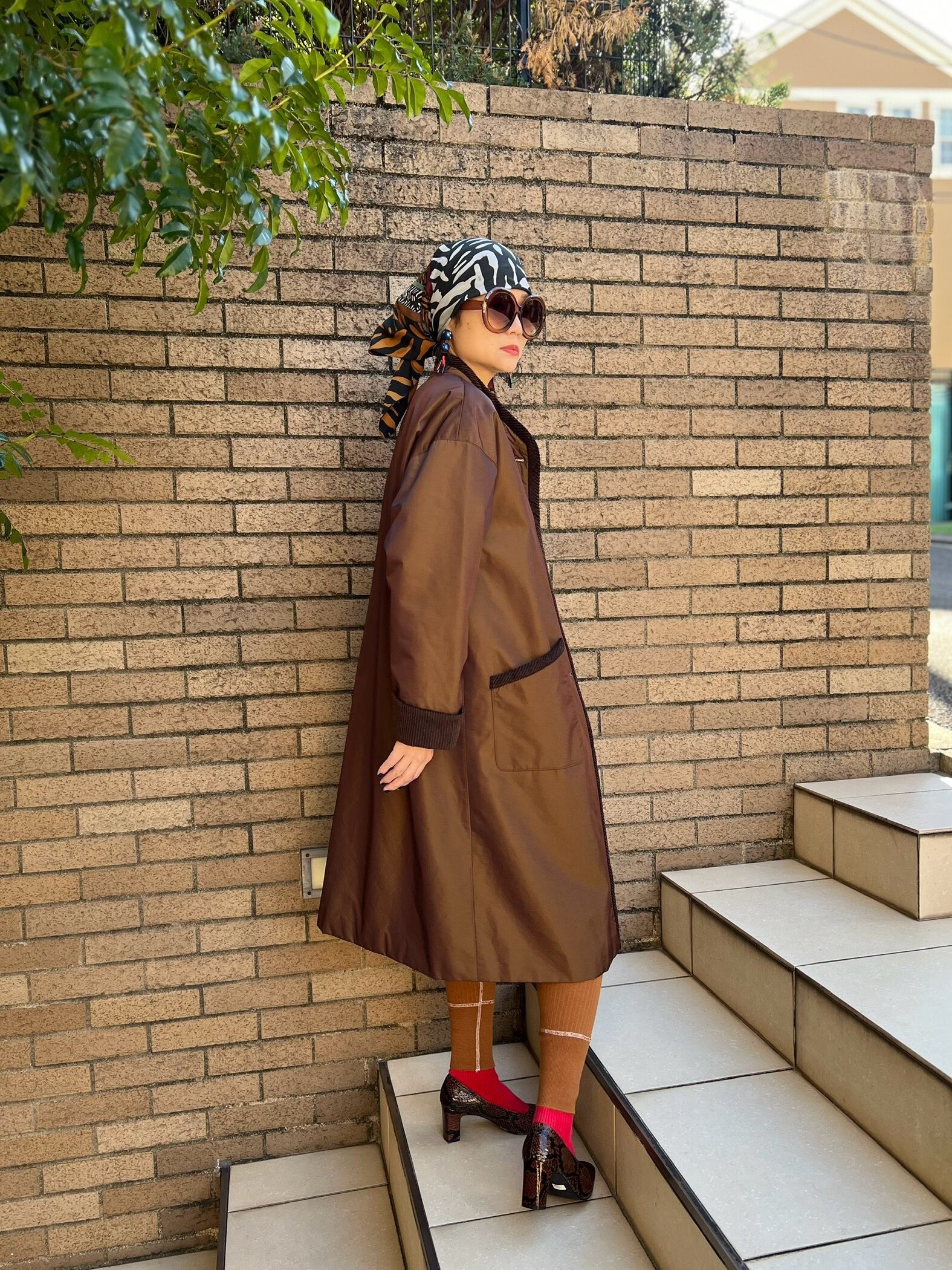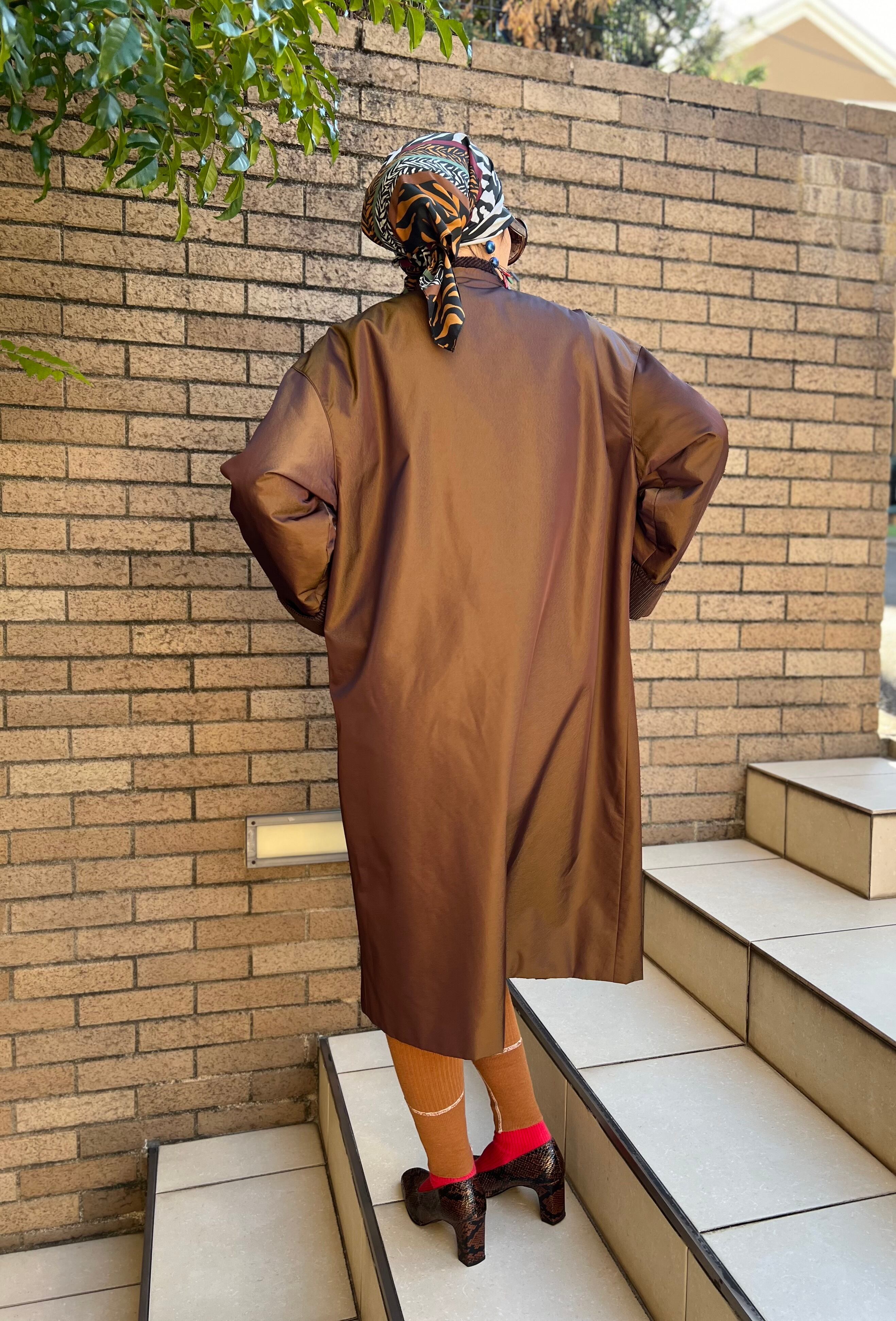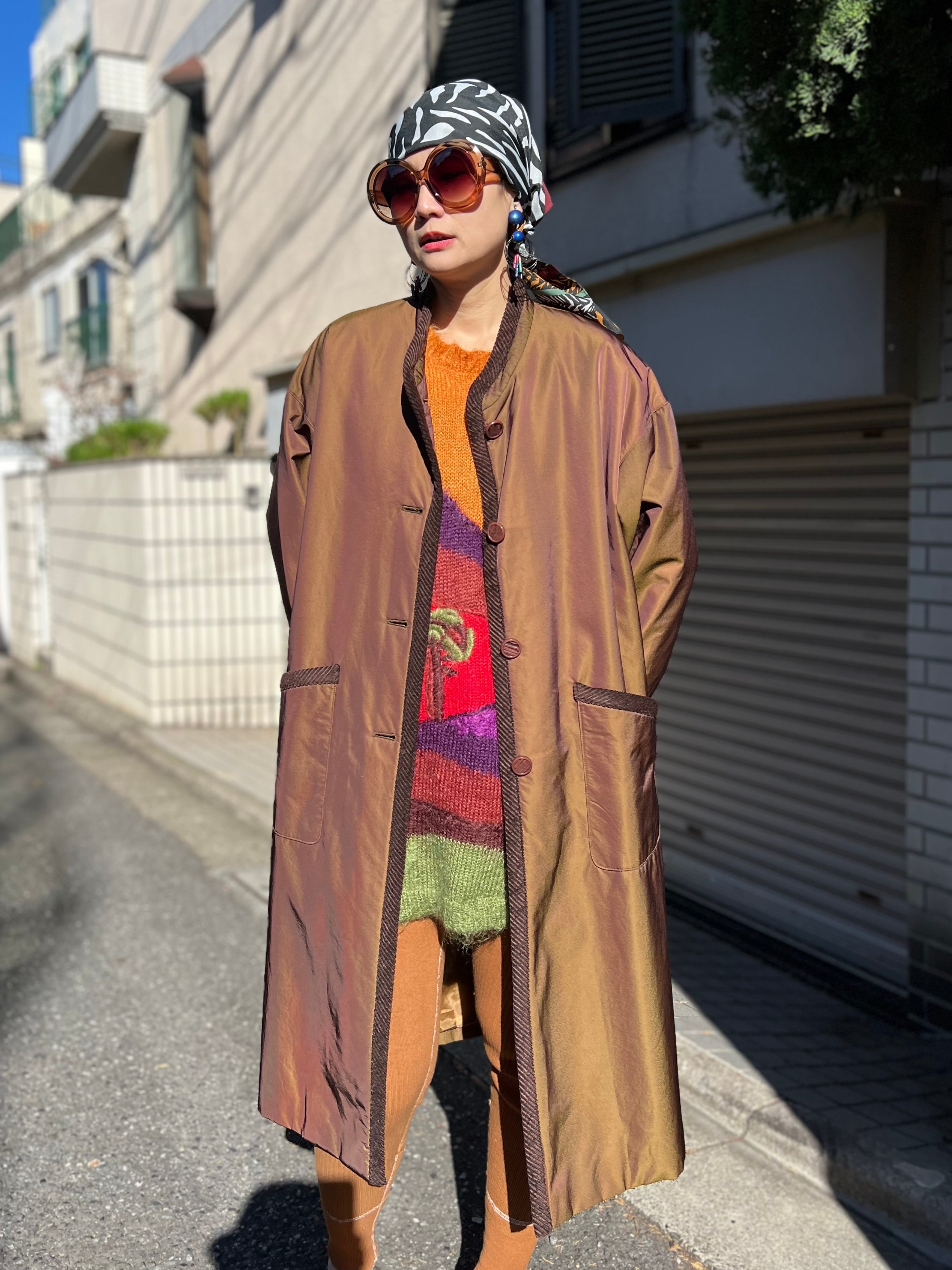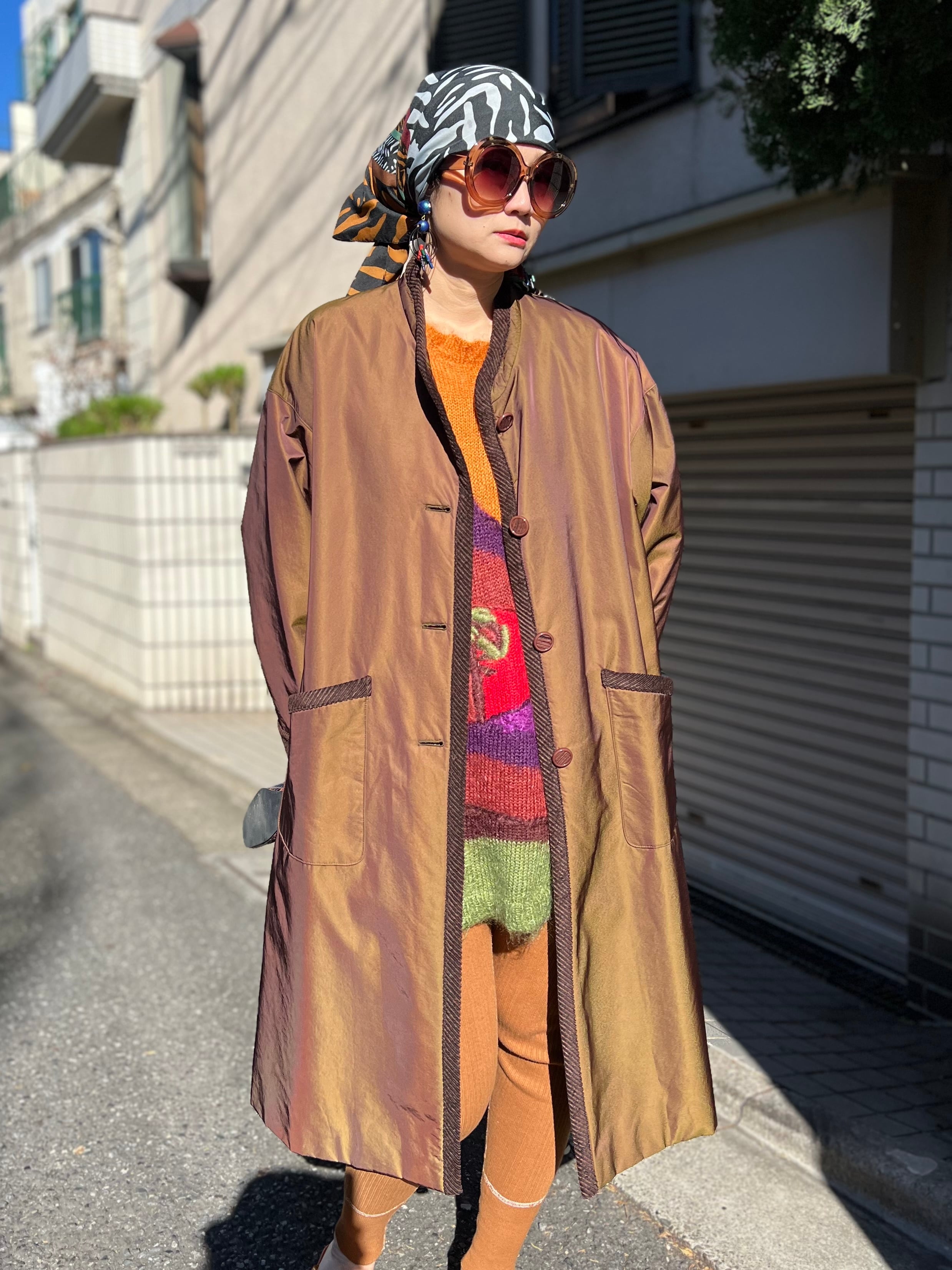 ヴィンテージ メタリックブラウン × コーデュロイ パイピング コートになります。