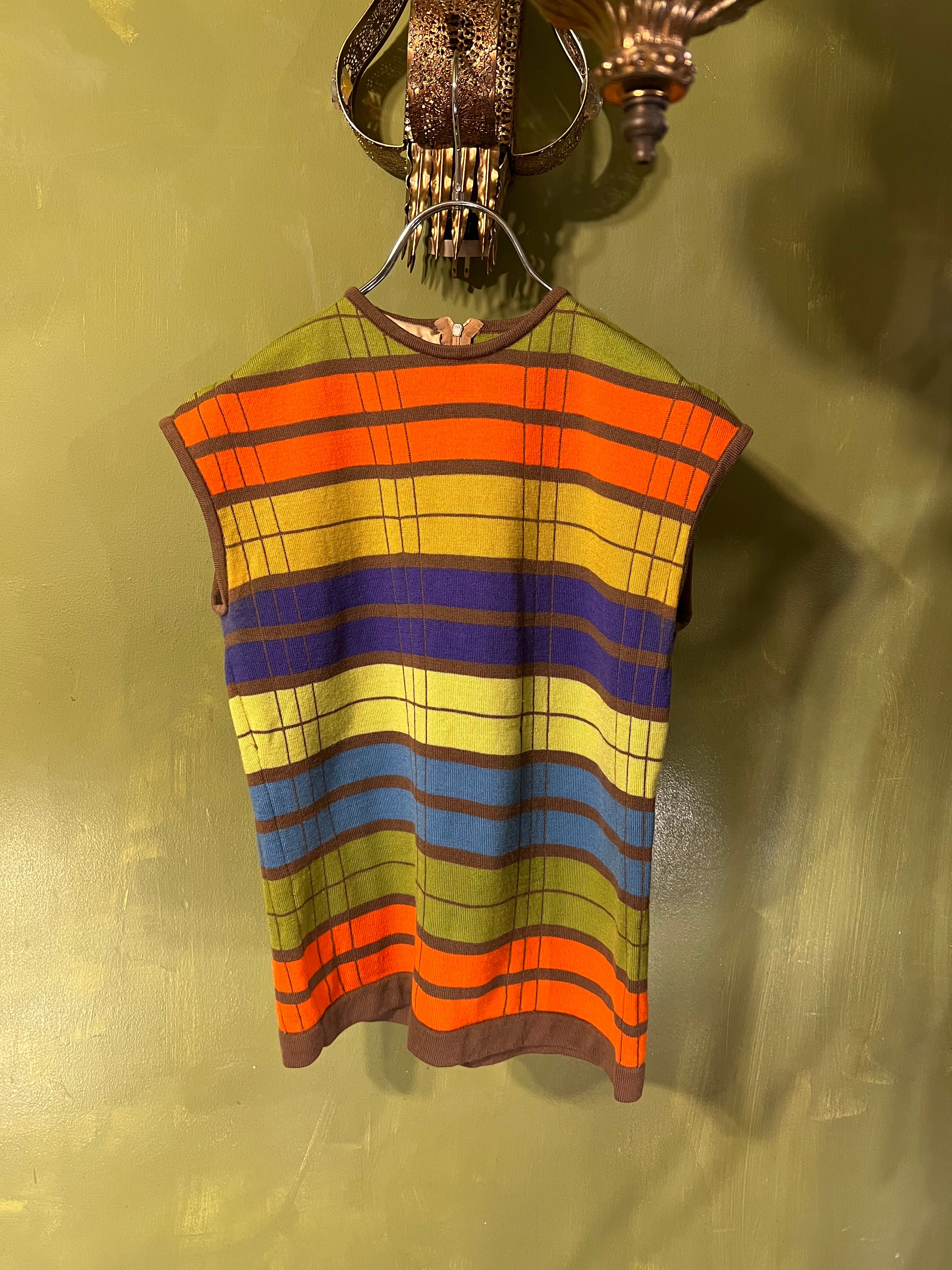 60年代マルチカラー チェック柄 ウール ニットベストになります。