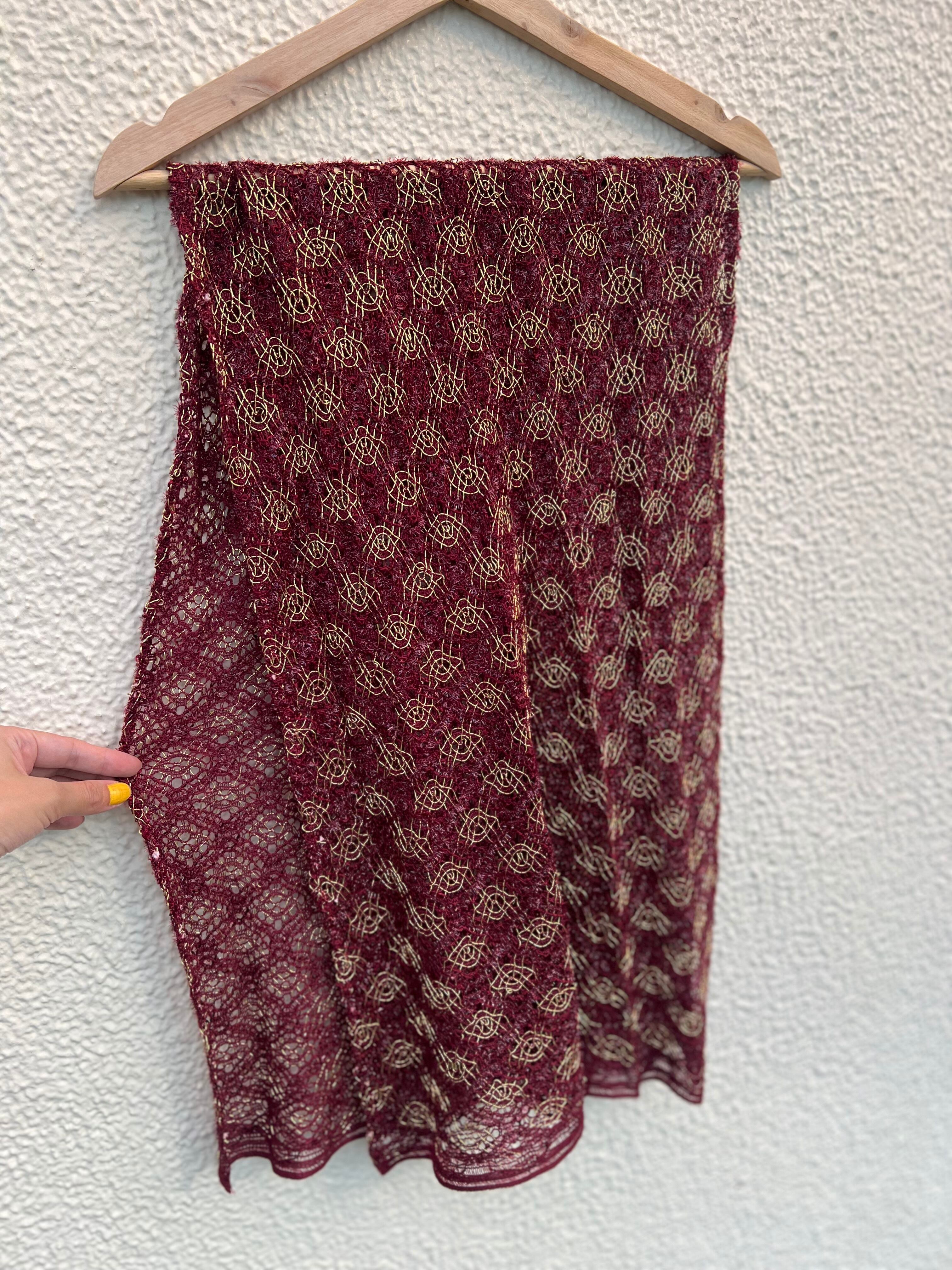 Vintage wine red × gold lace scarf ( ヴィンテージ ワインレッド × ゴールド レース スカーフ )