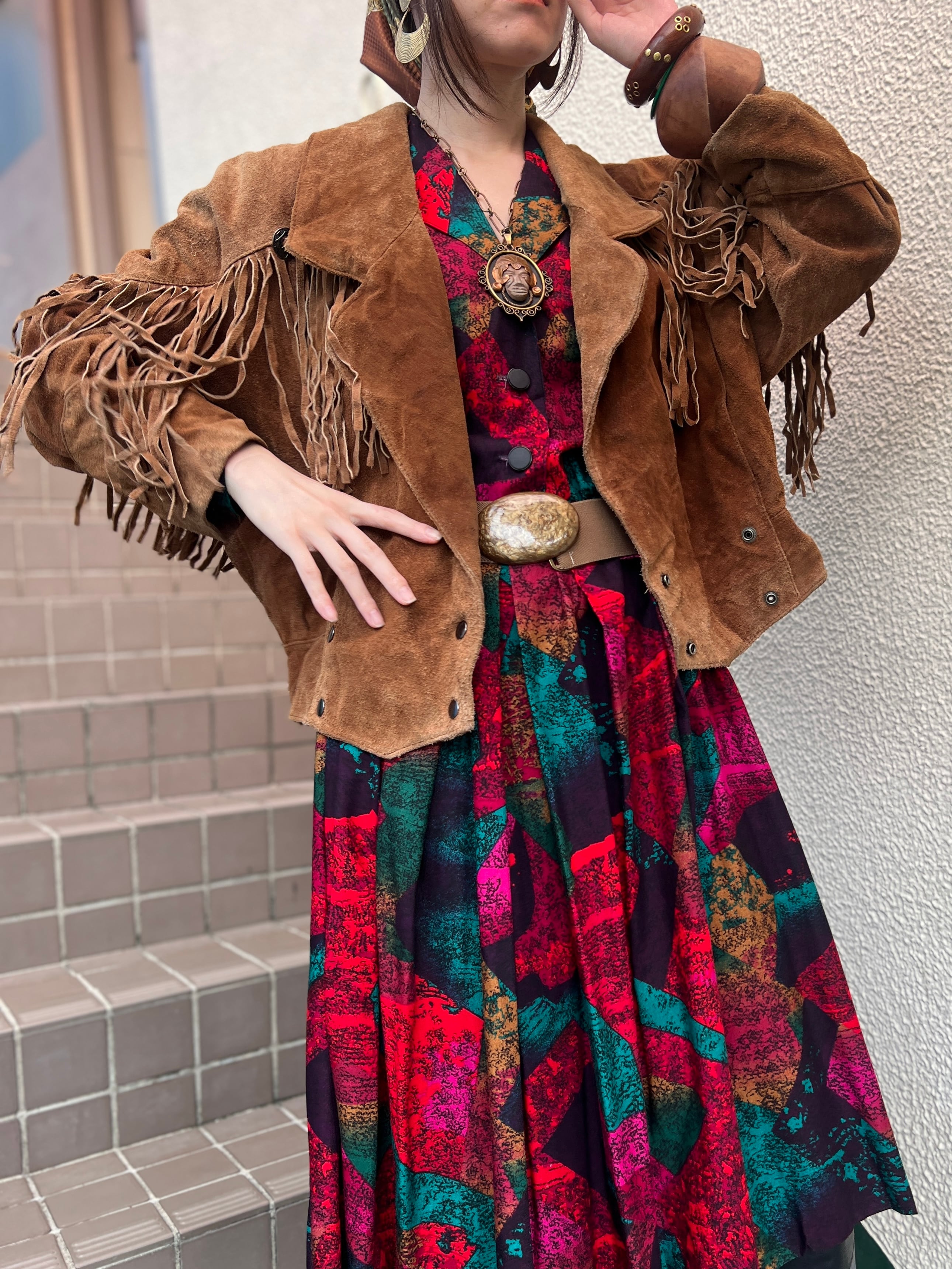 Vintage camel brown suede fringe Jacket ( ヴィンテージ ブラウン スウェード フリンジ ジャケット )