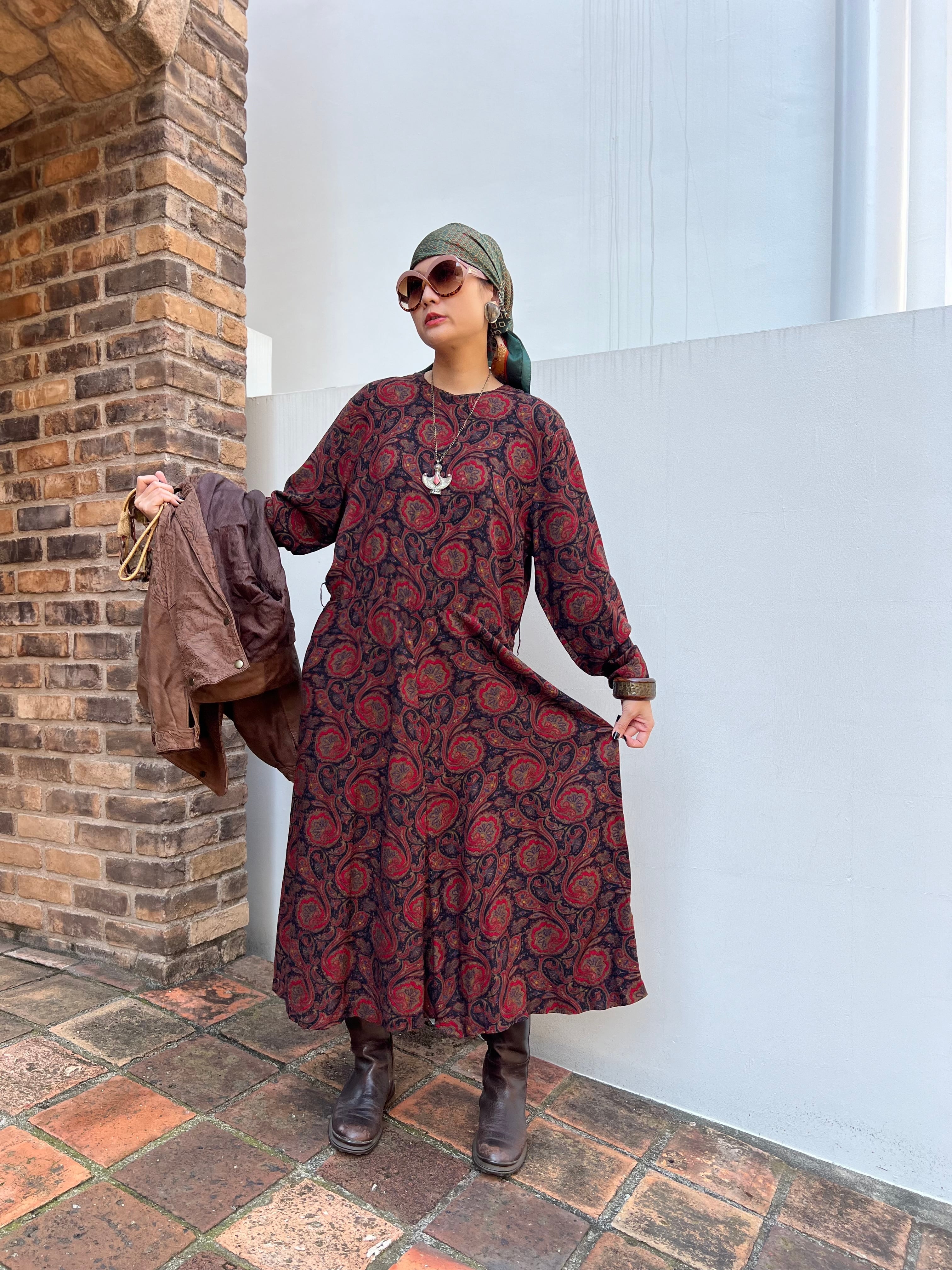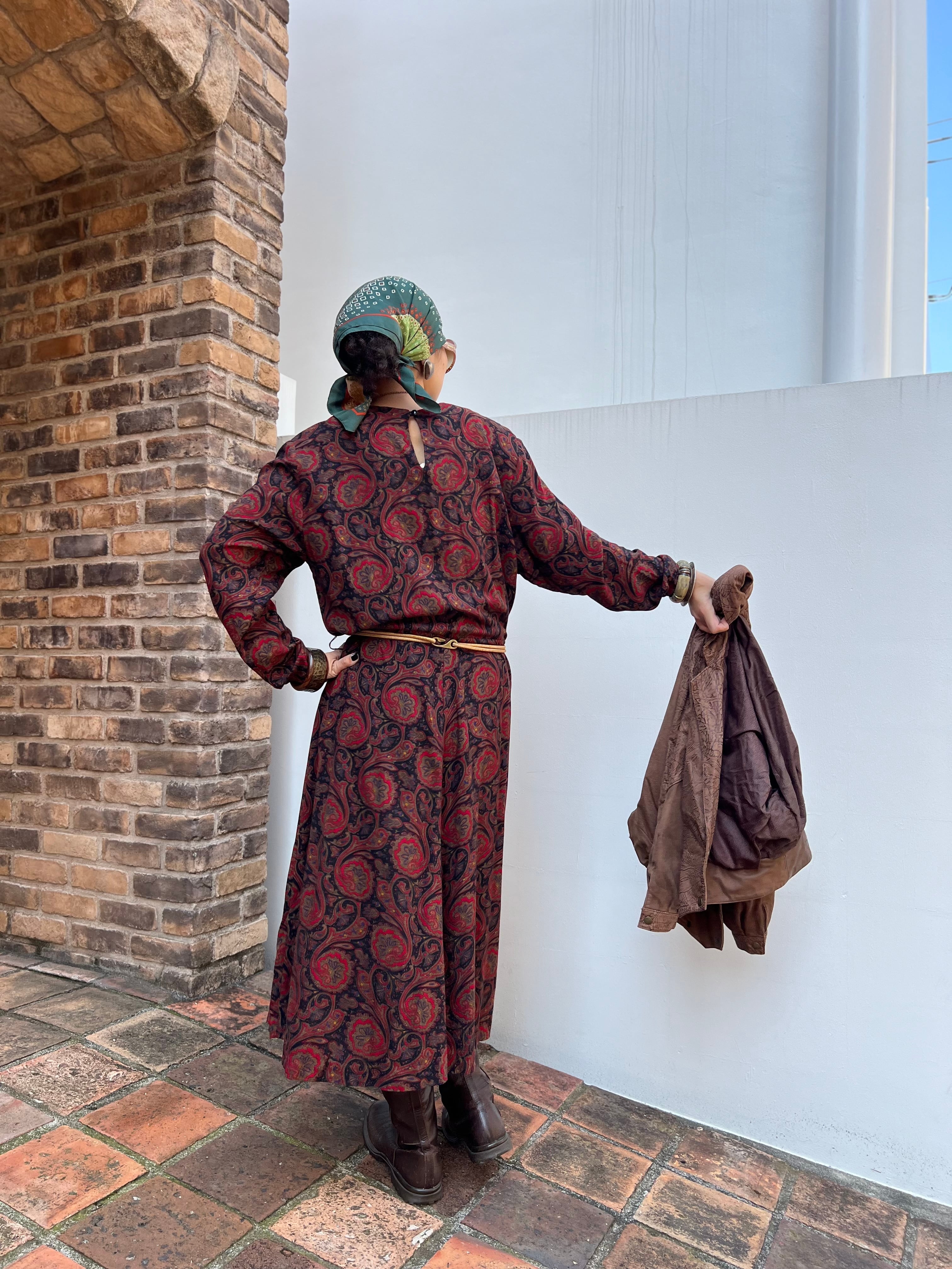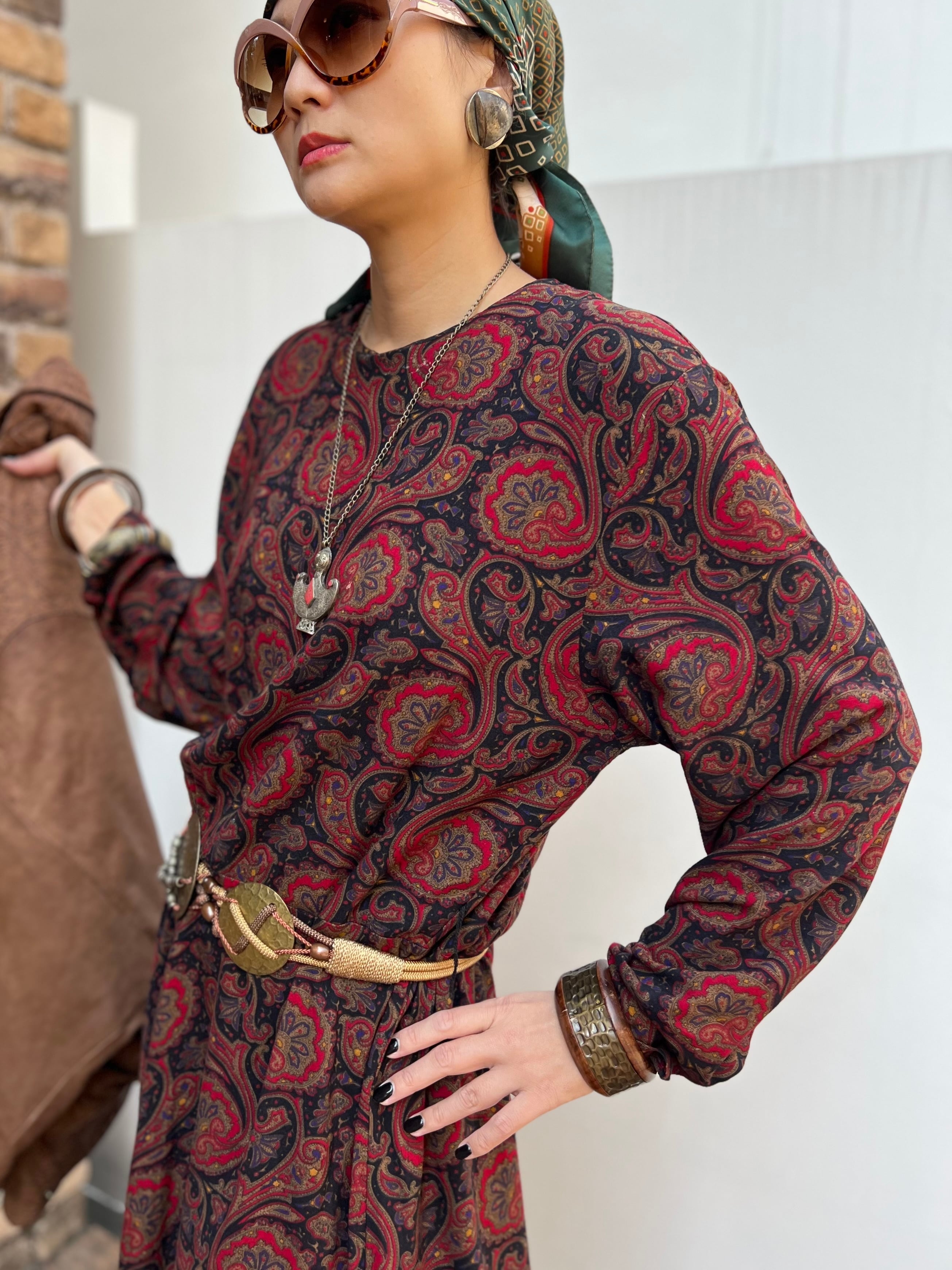 80s paisley rayon dress ( ヴィンテージ ペイズリー柄 レーヨン ワンピース )