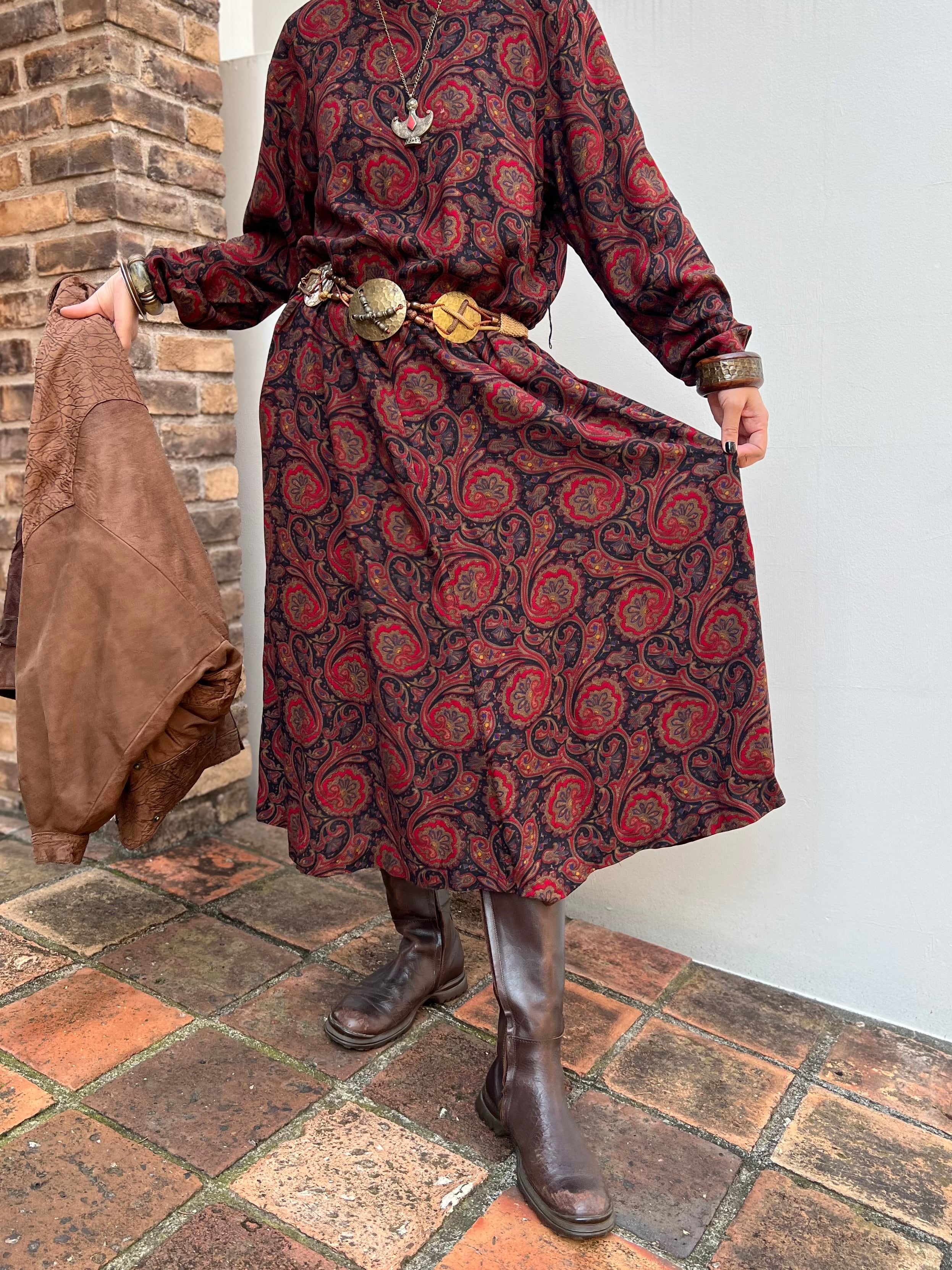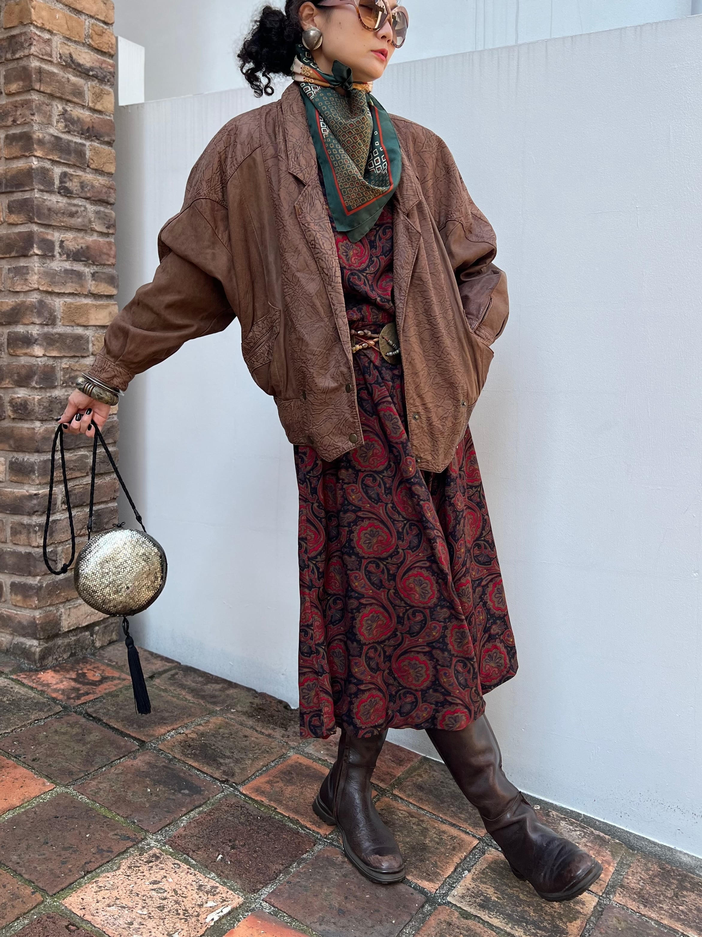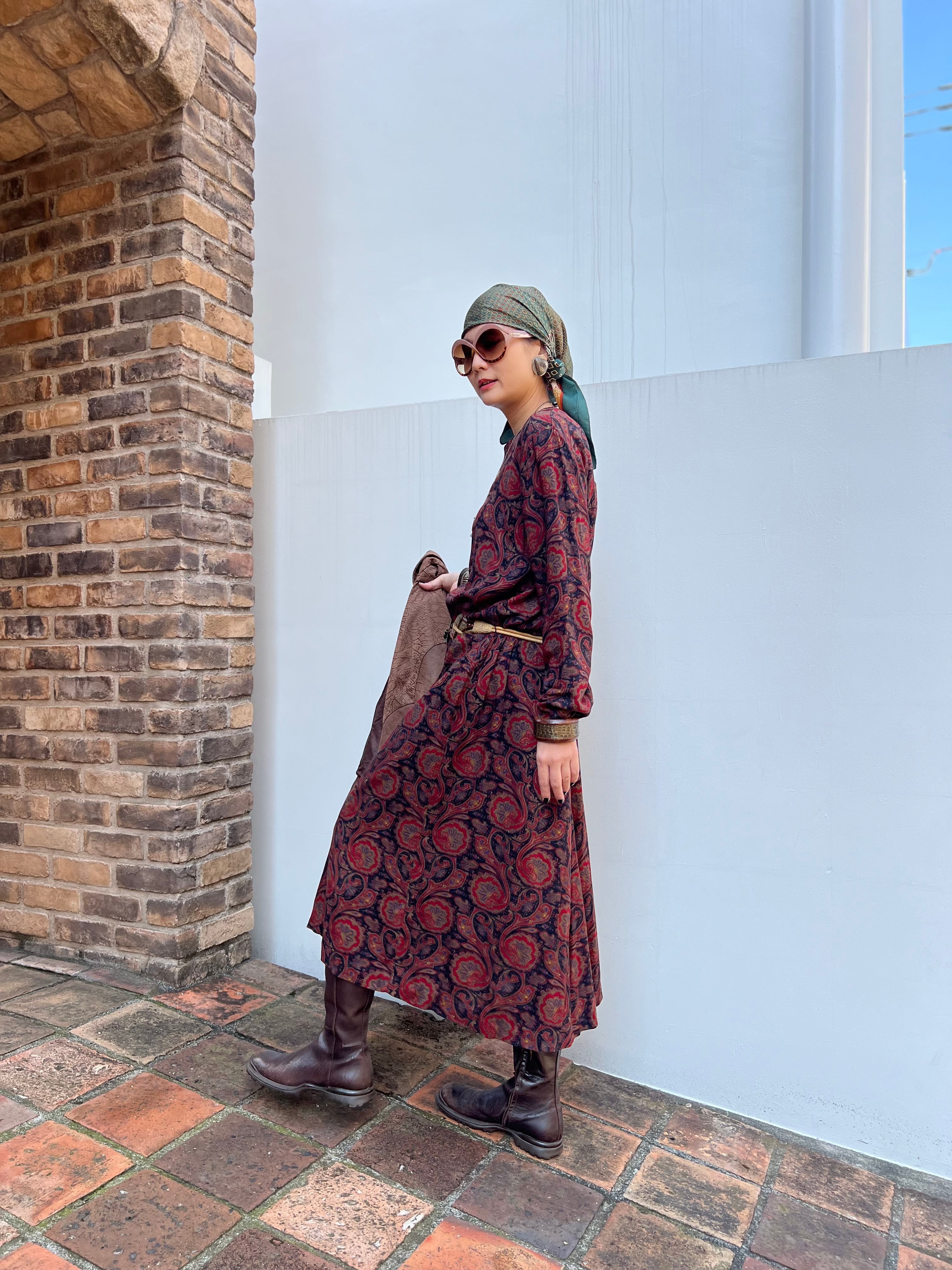 80s paisley rayon dress ( ヴィンテージ ペイズリー柄 レーヨン ワンピース )