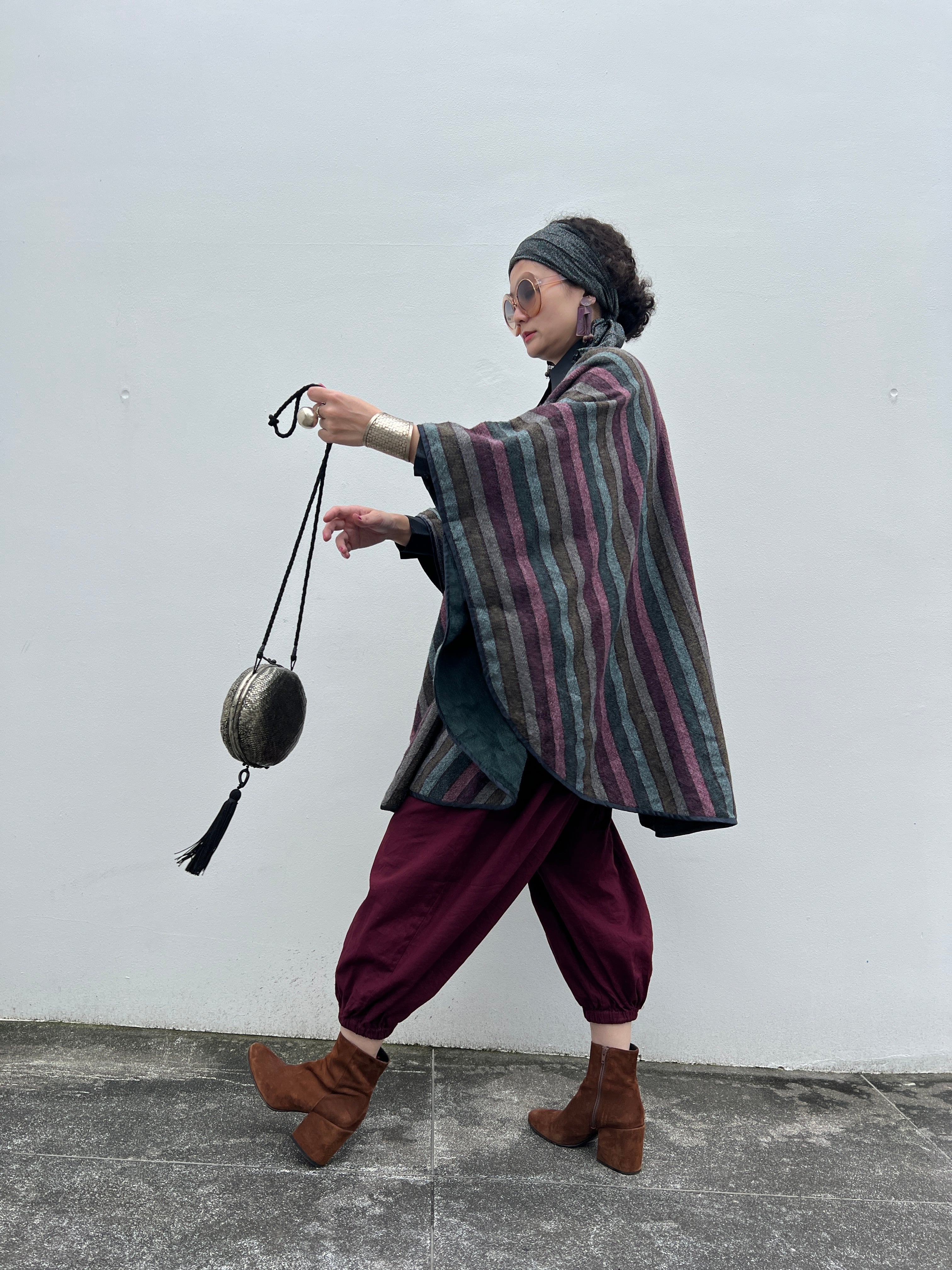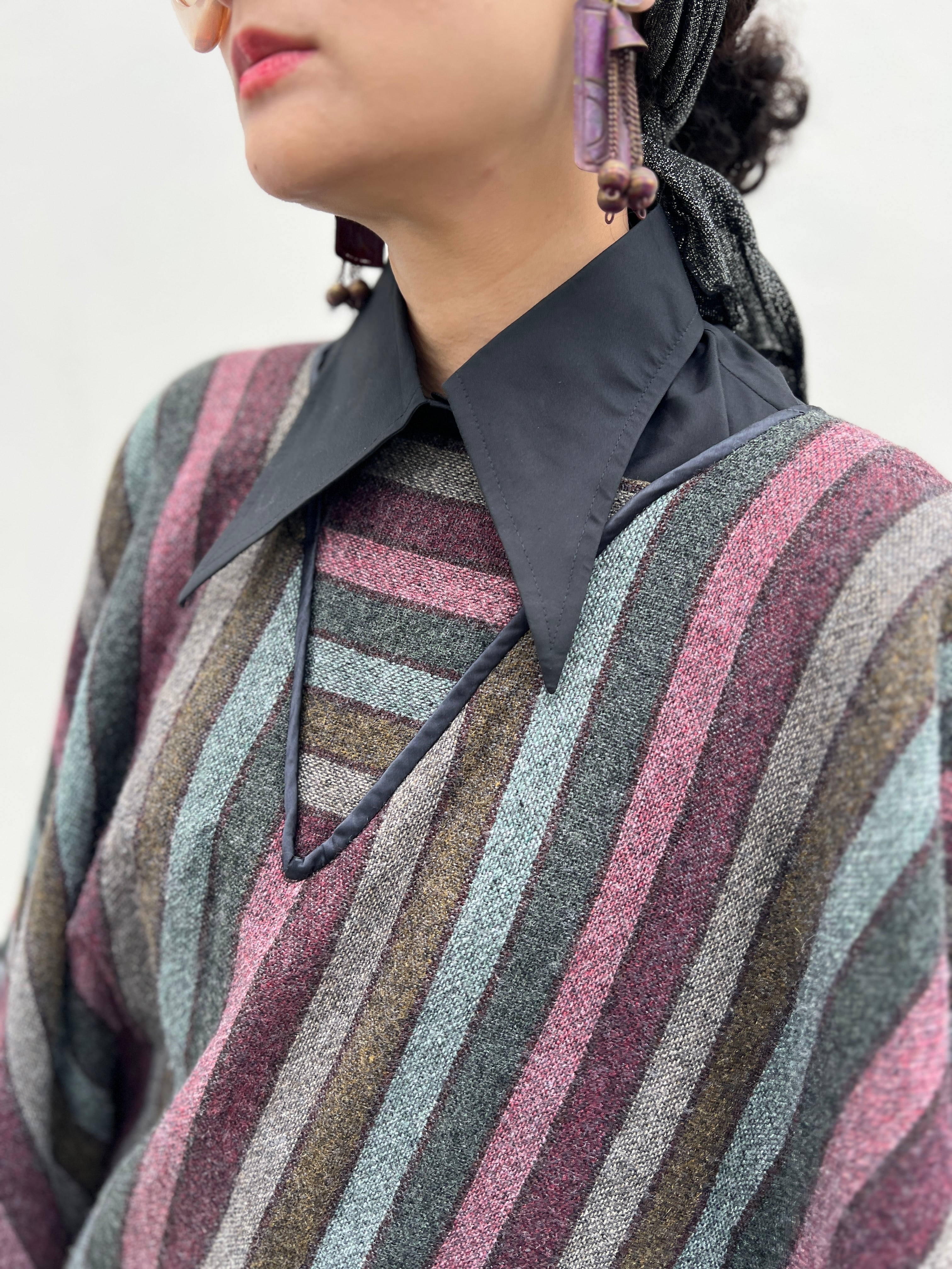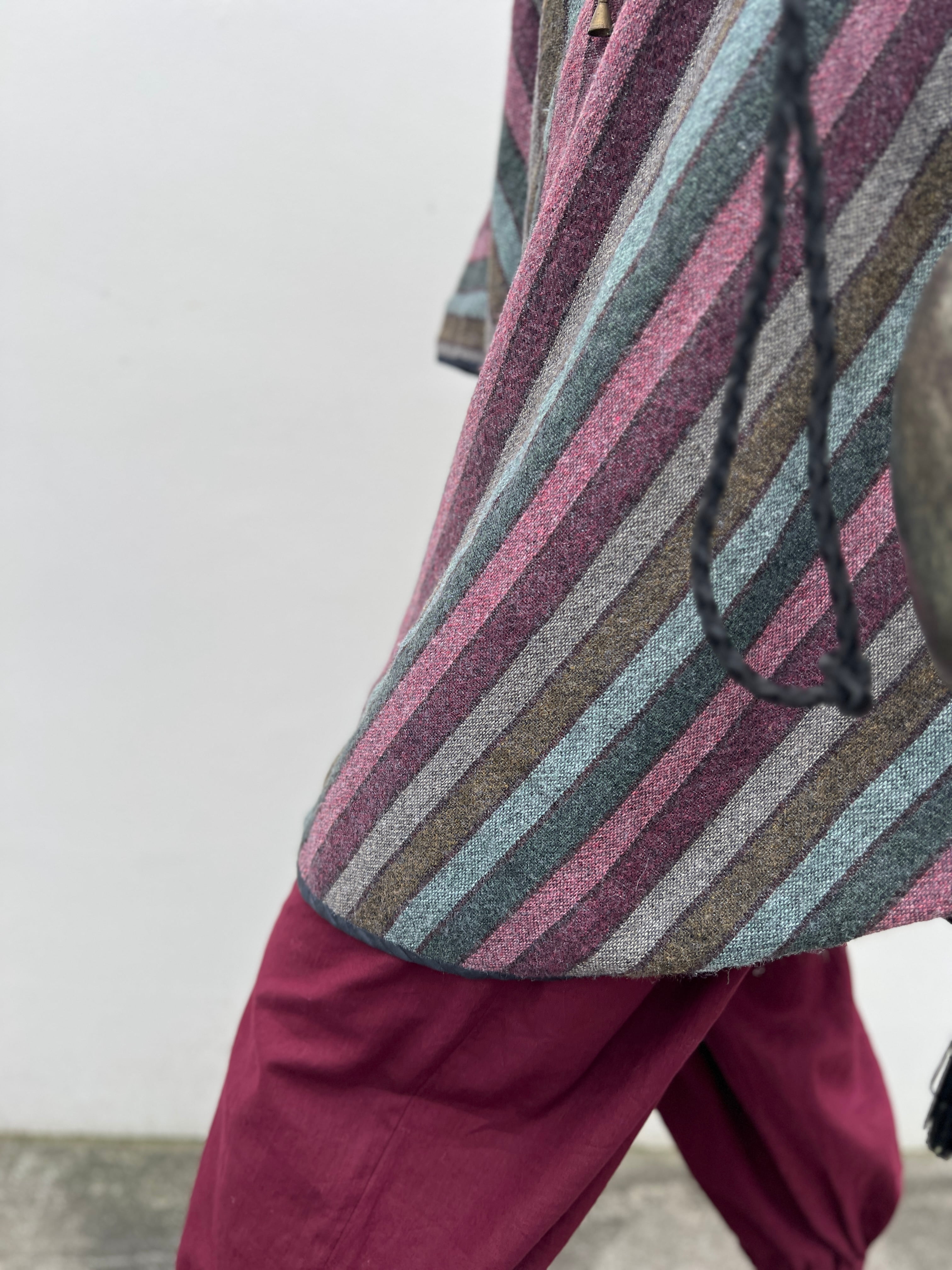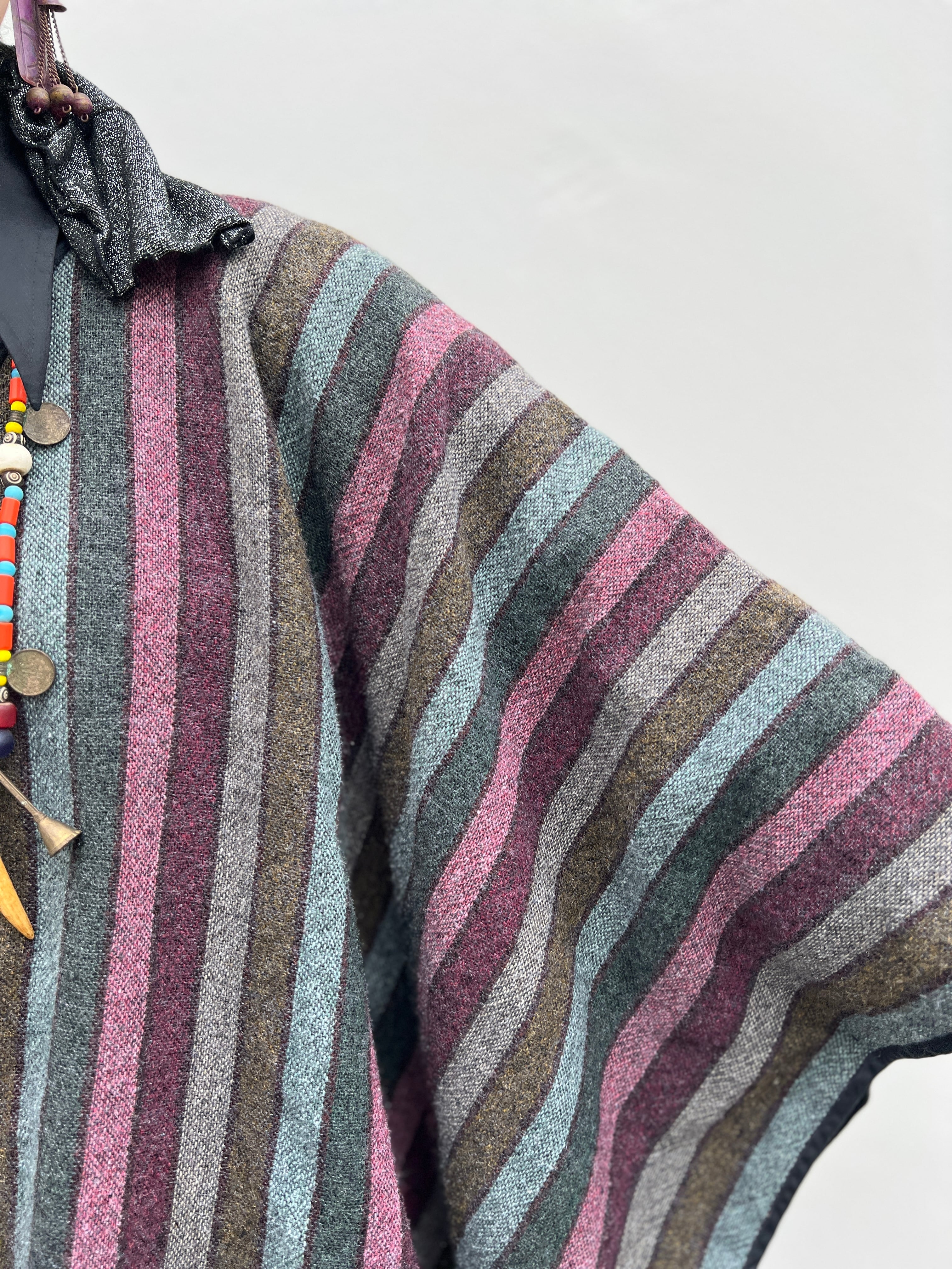 Vintage stripe wool poncho