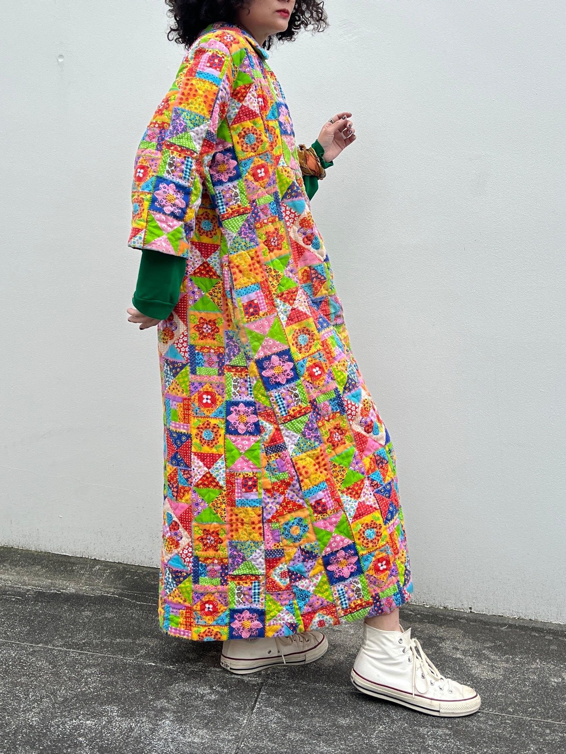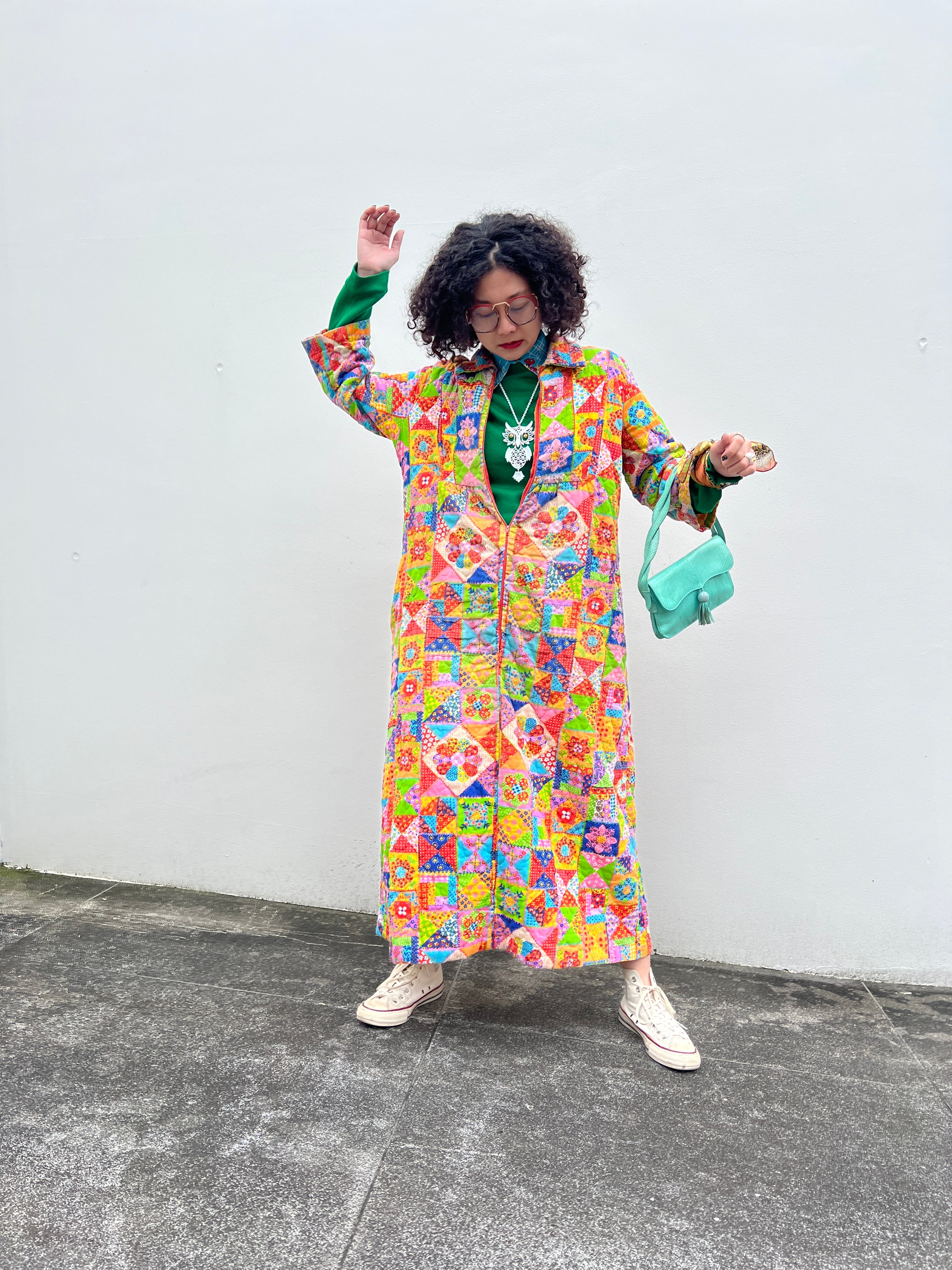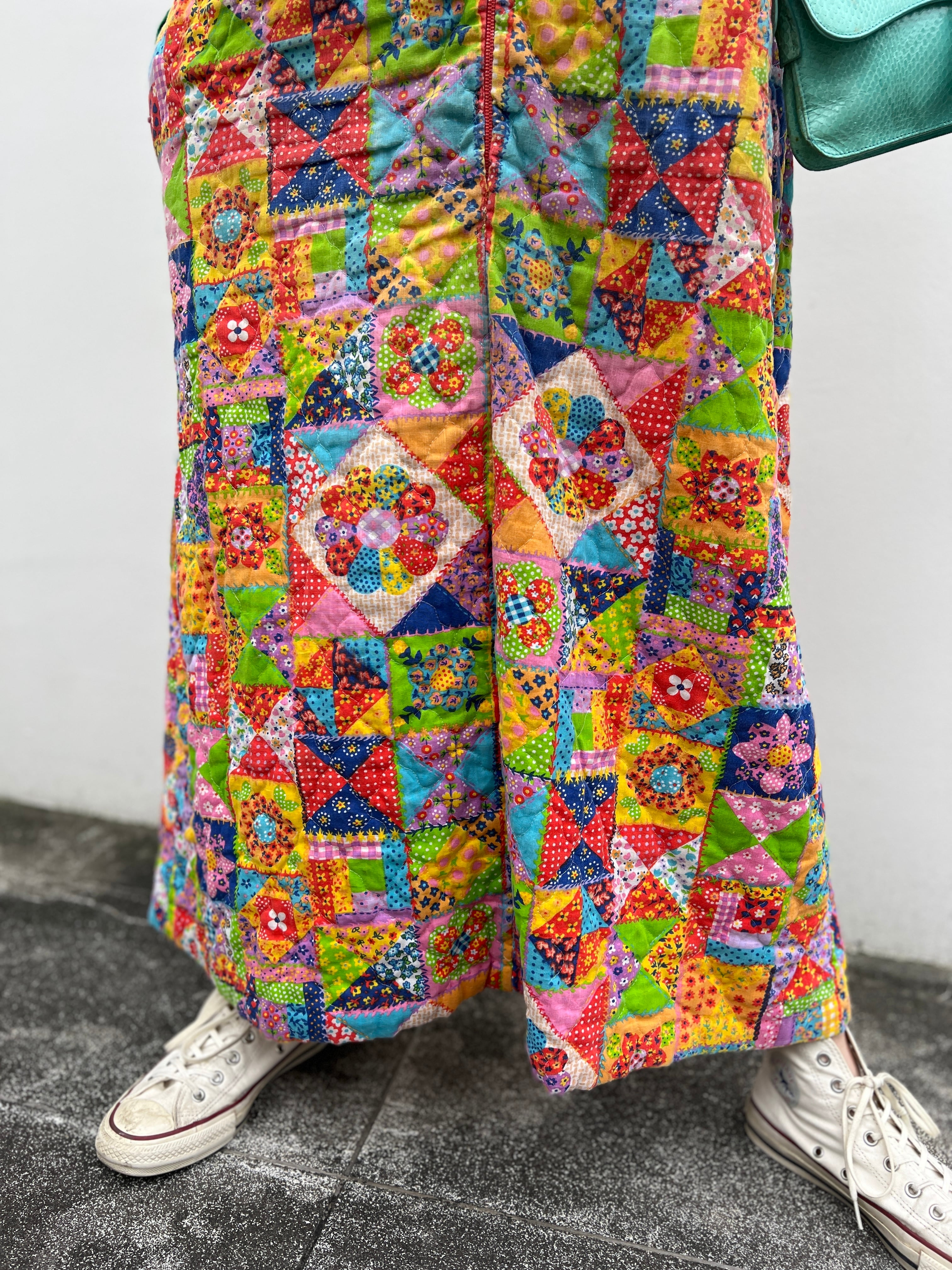 70s handmade quilting zip up dress