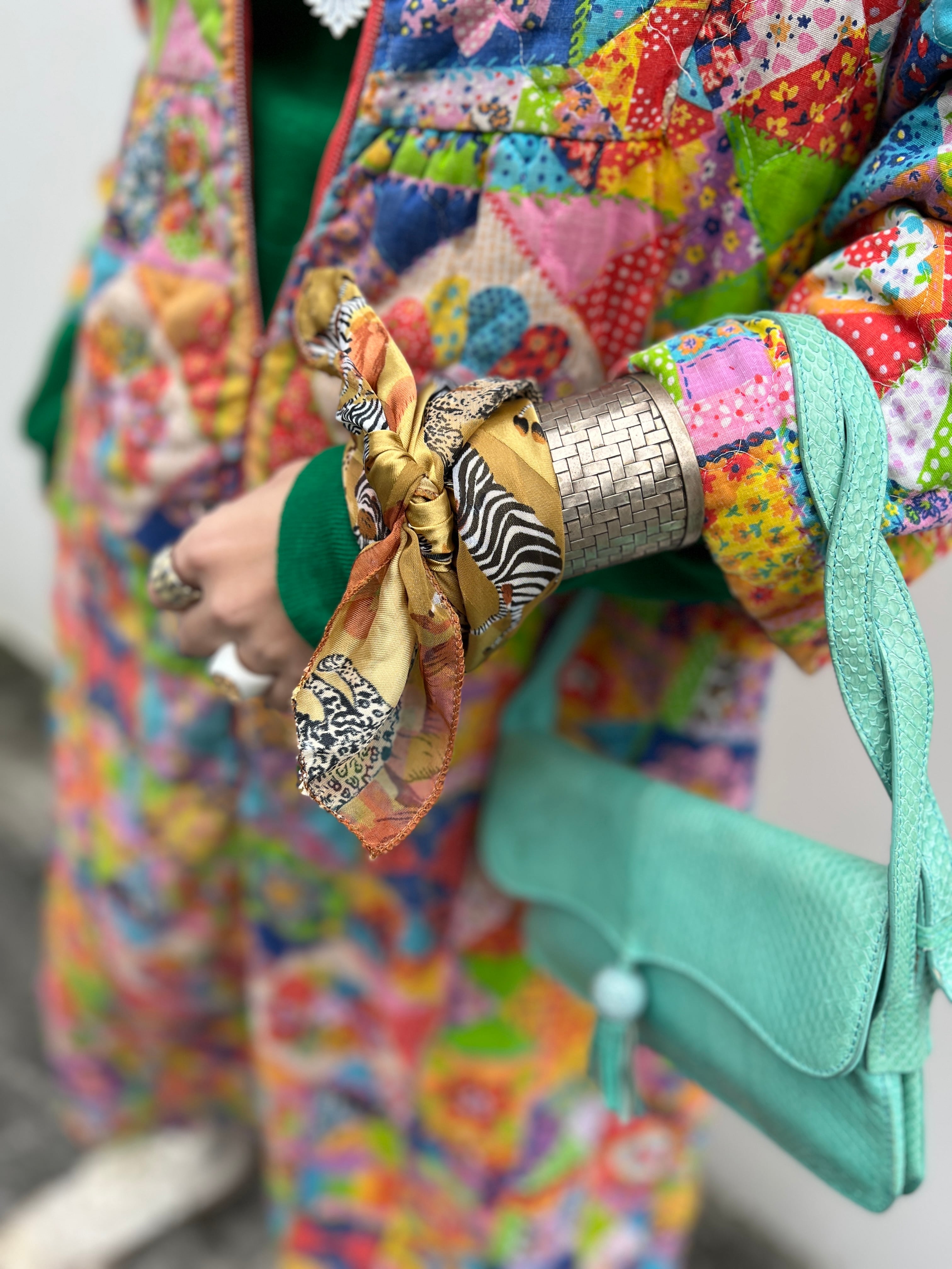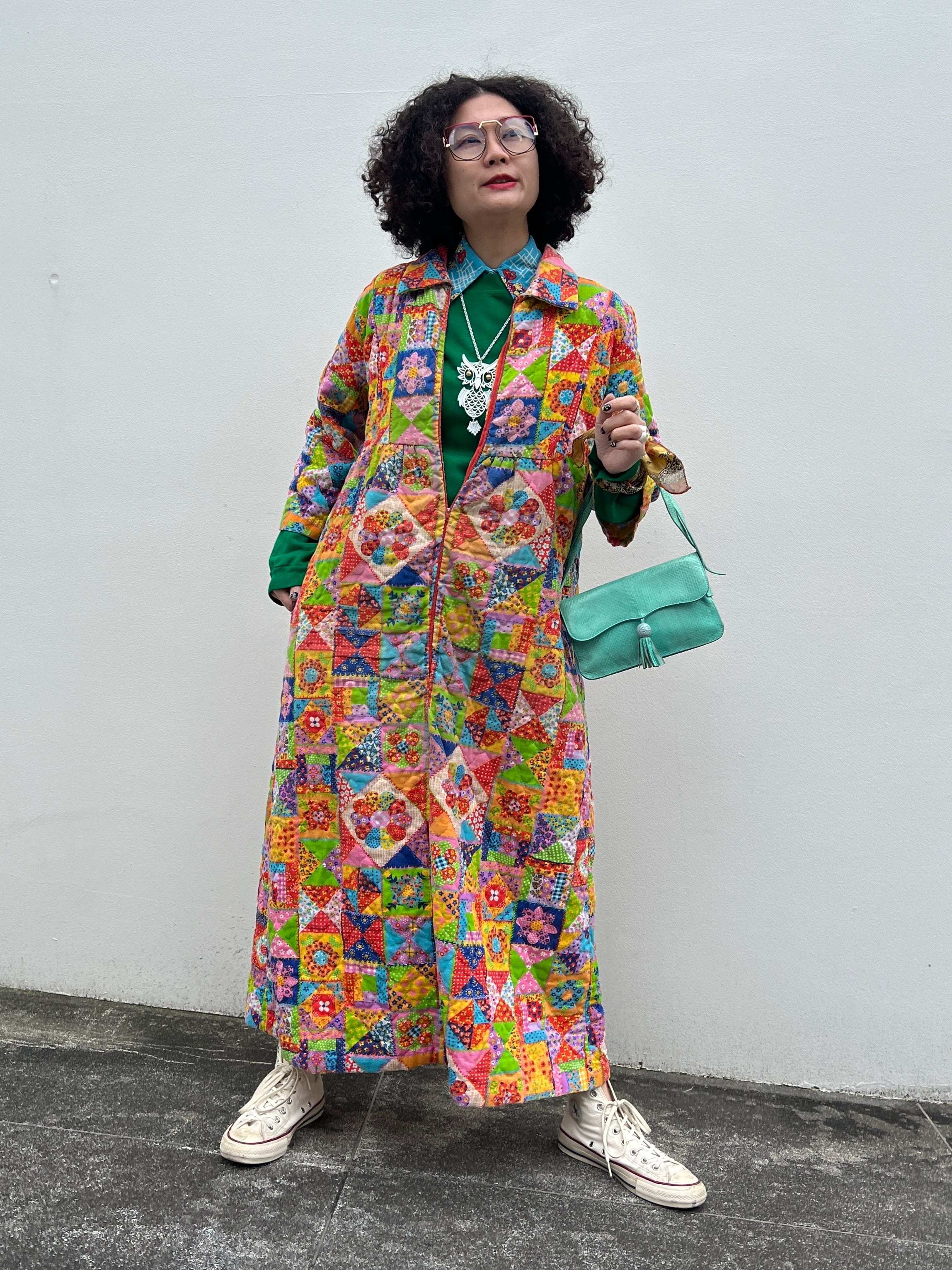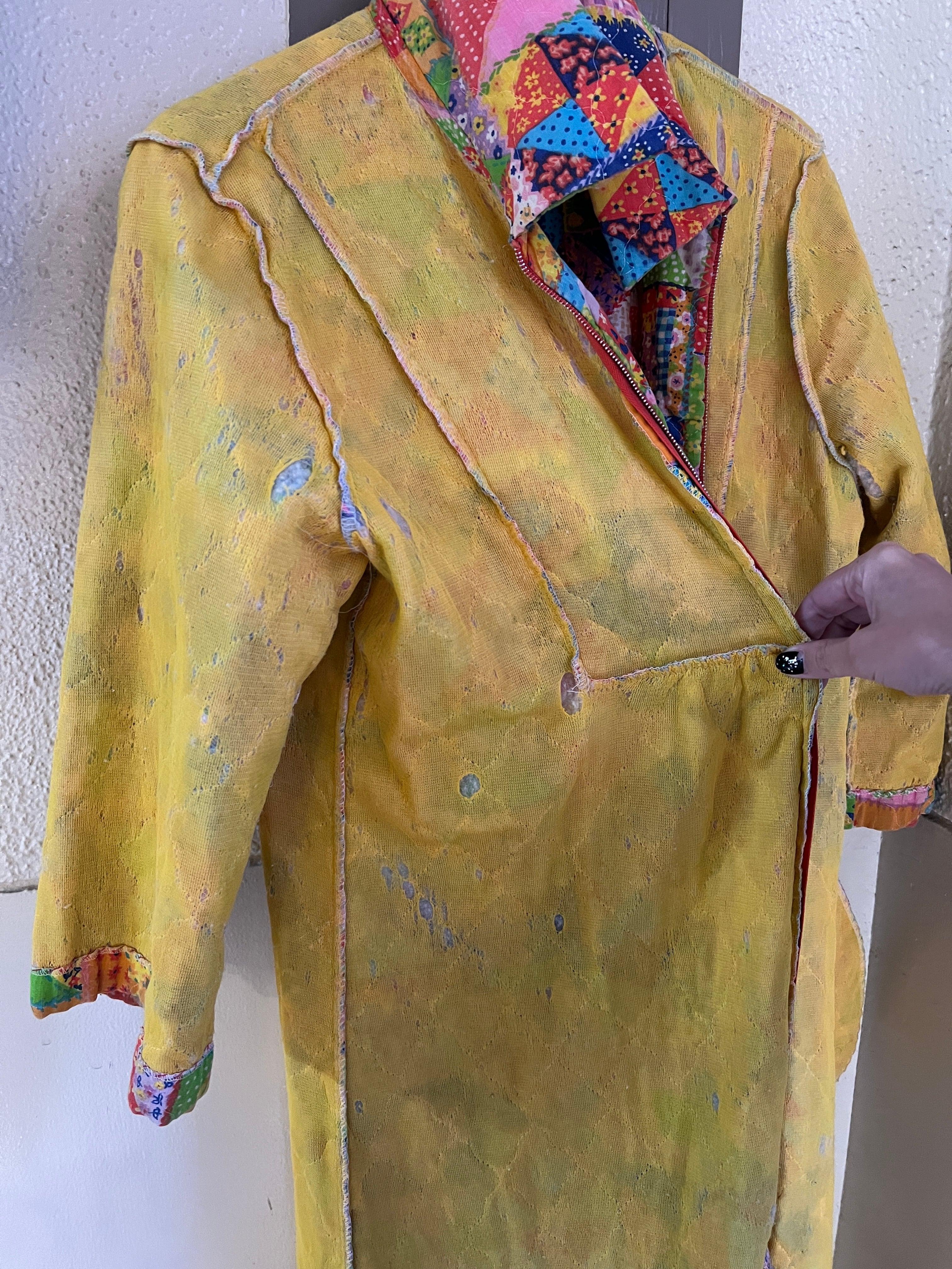 70s handmade quilting zip up dress