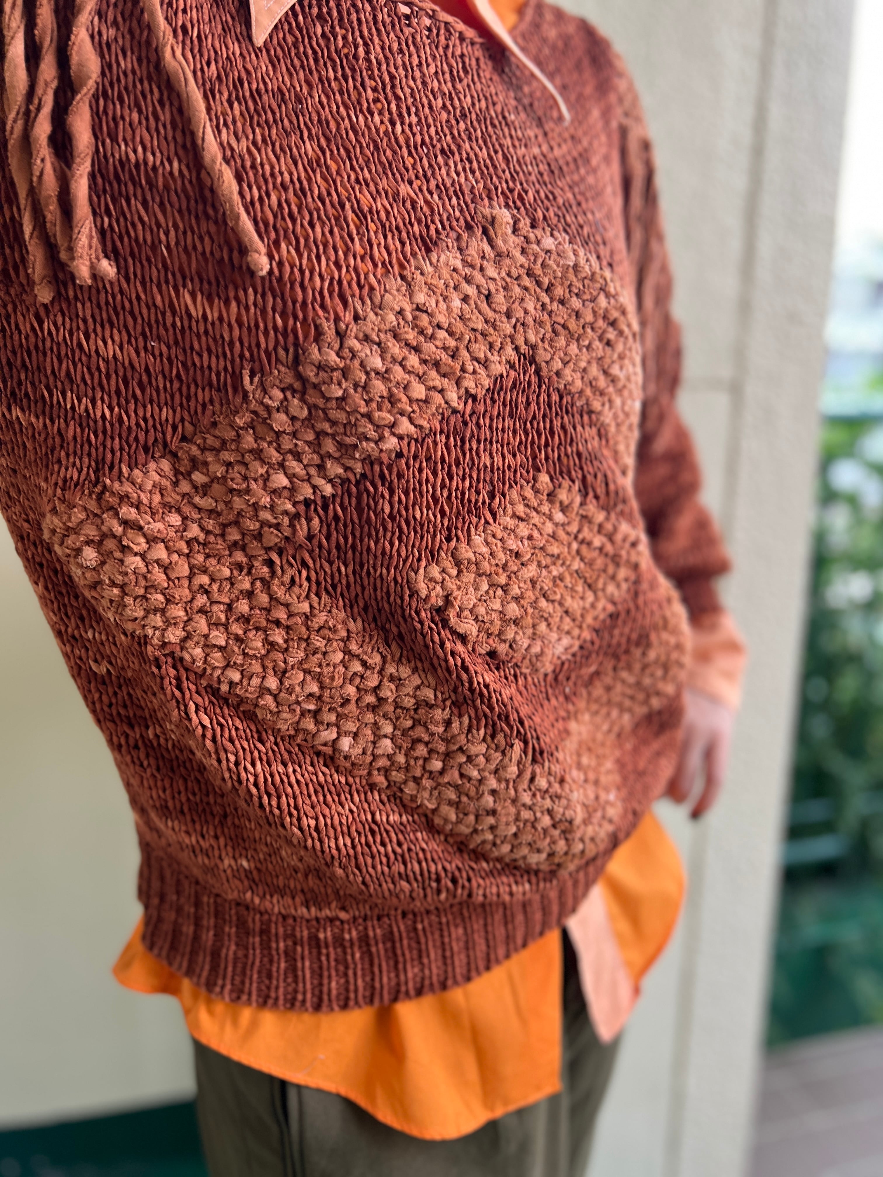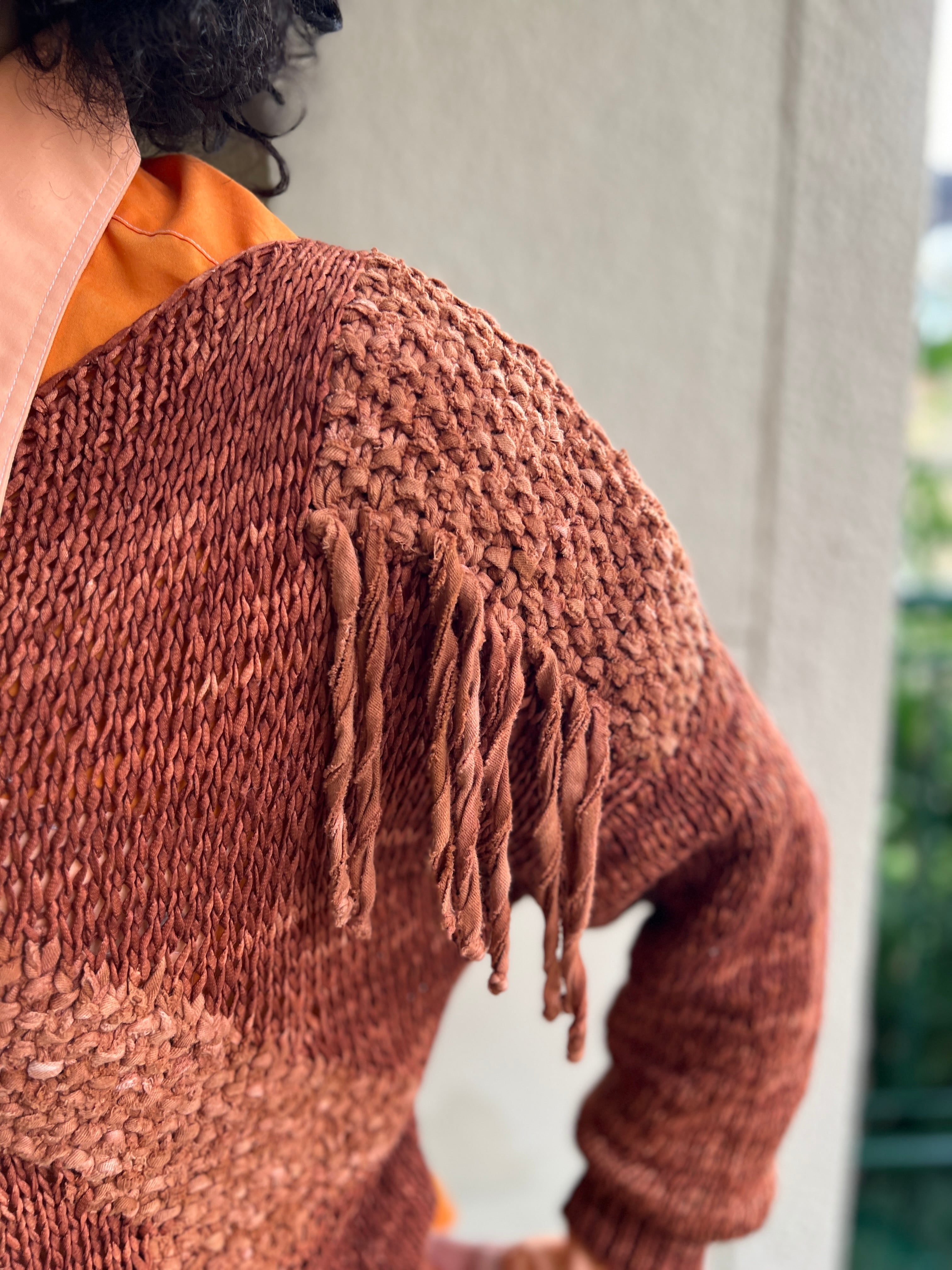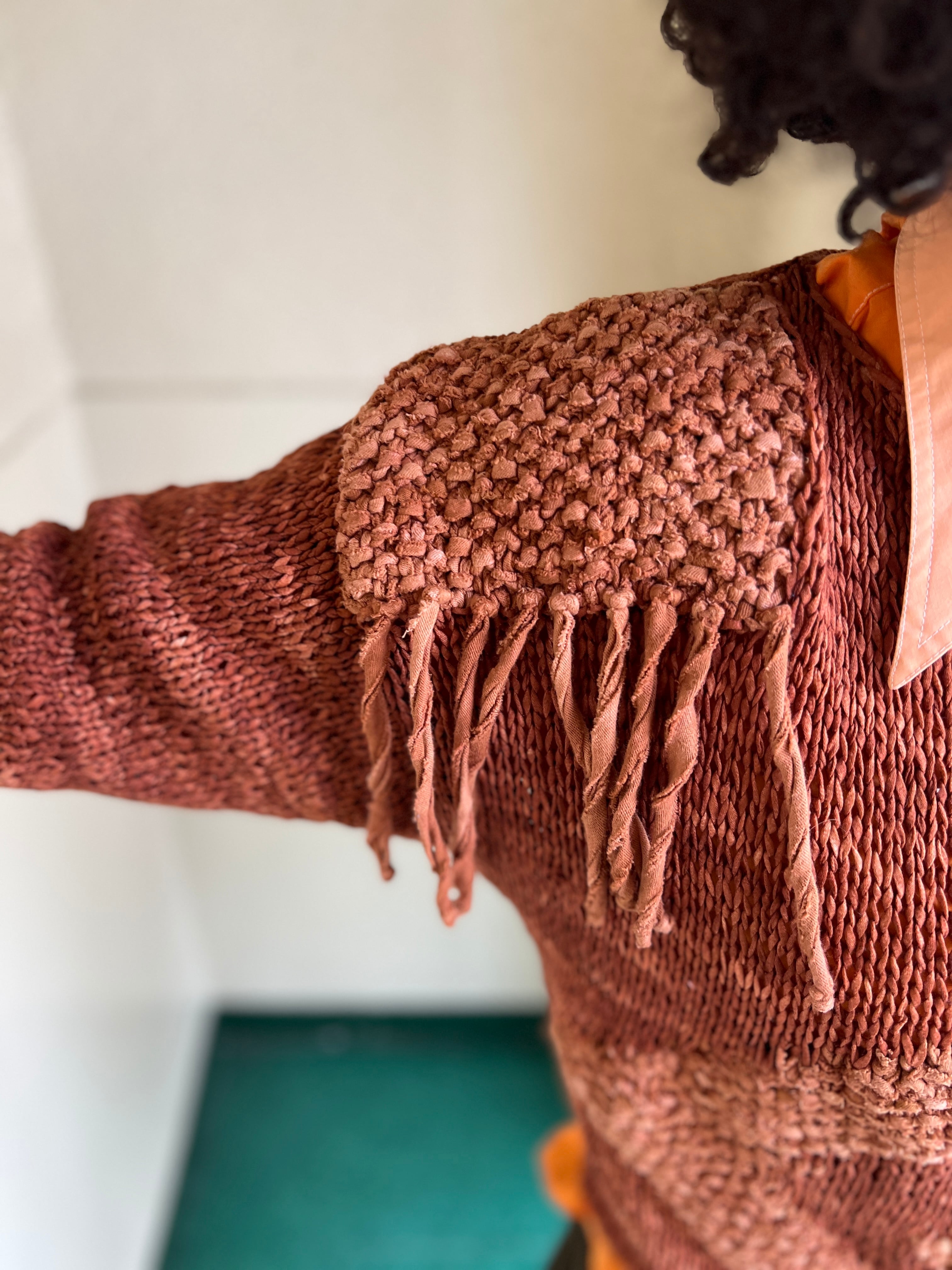 80年代イタリア製の、存在感たっぷりなテラコッタカラーのフリンジコットンニット。