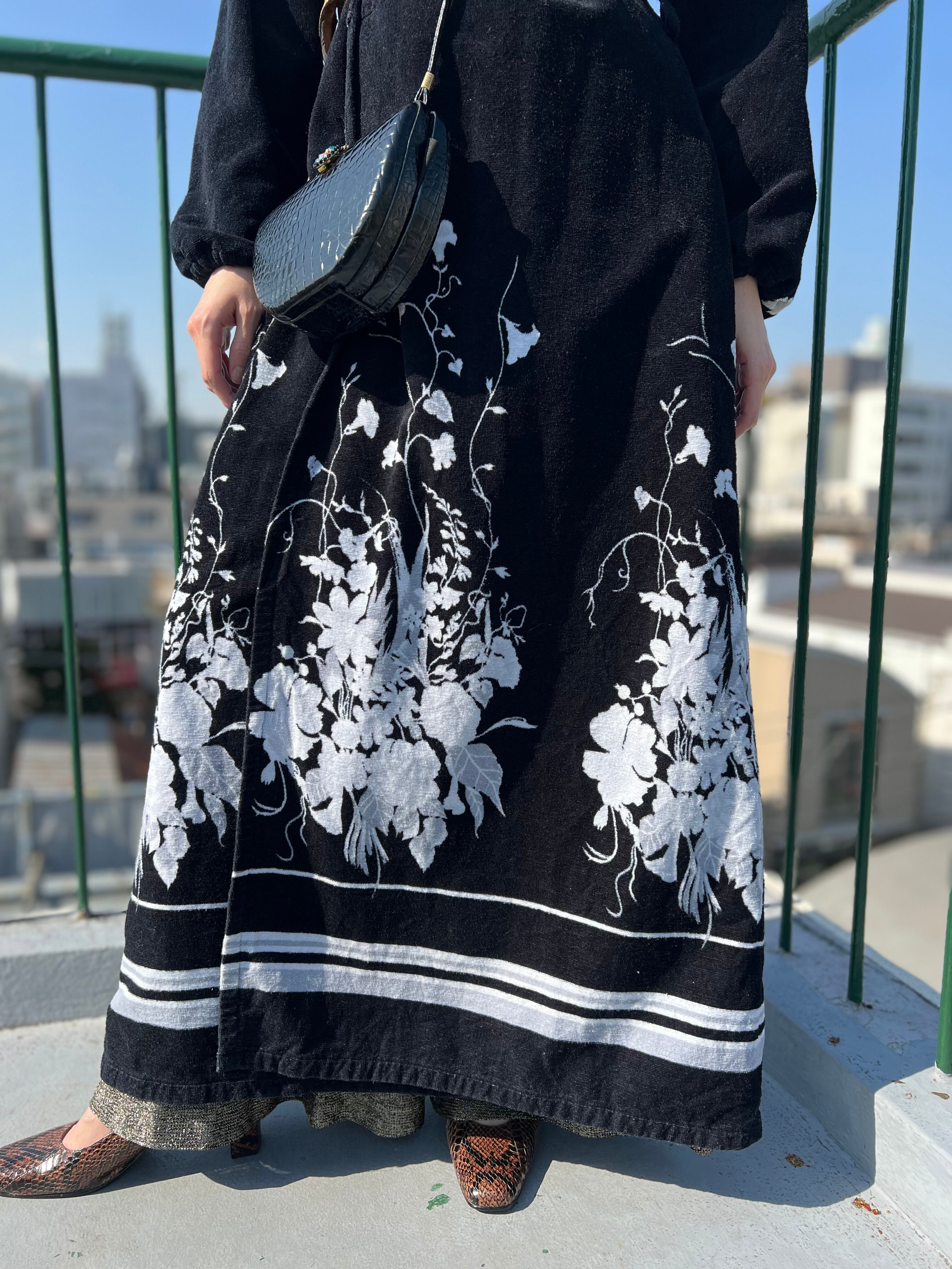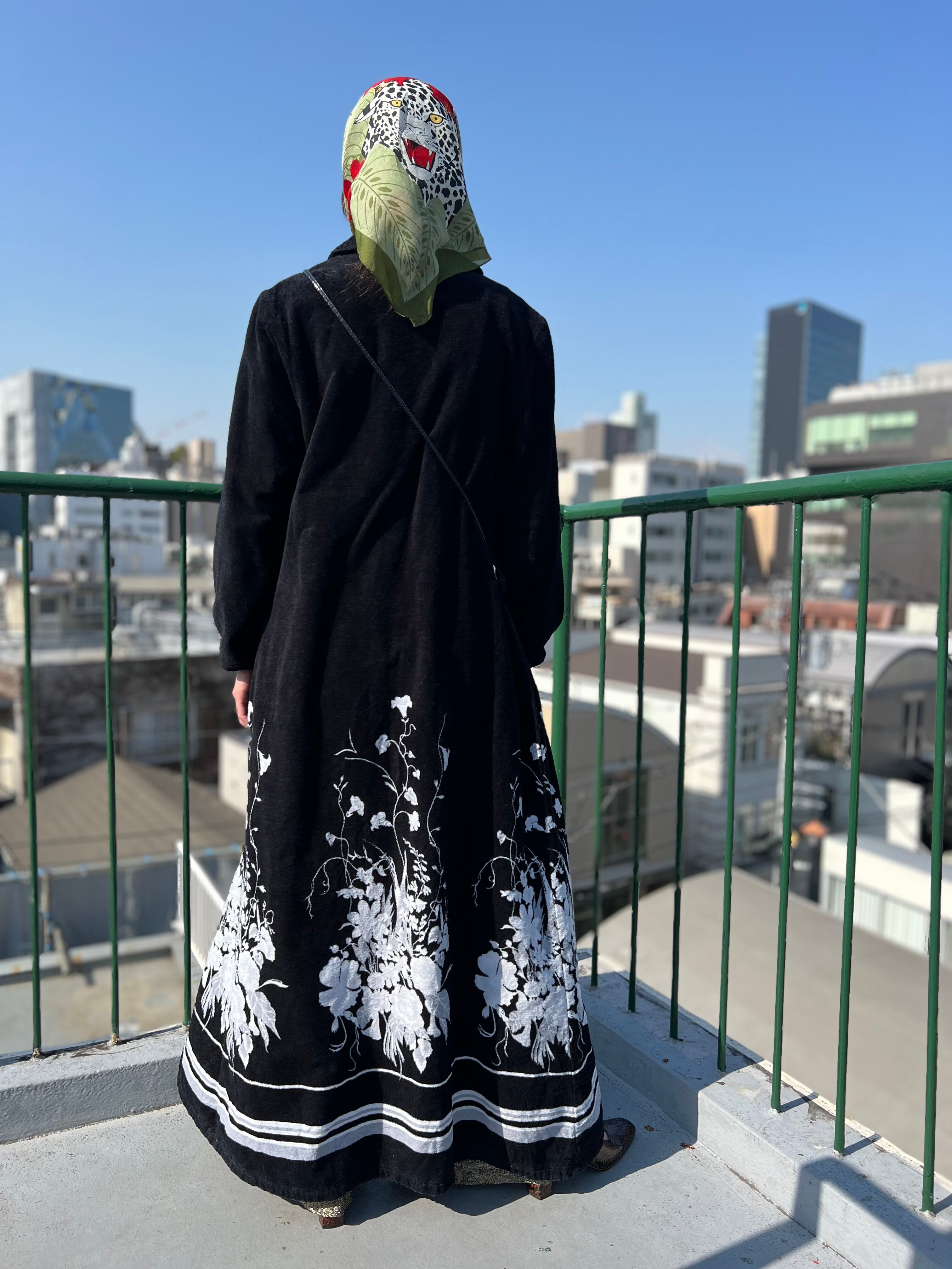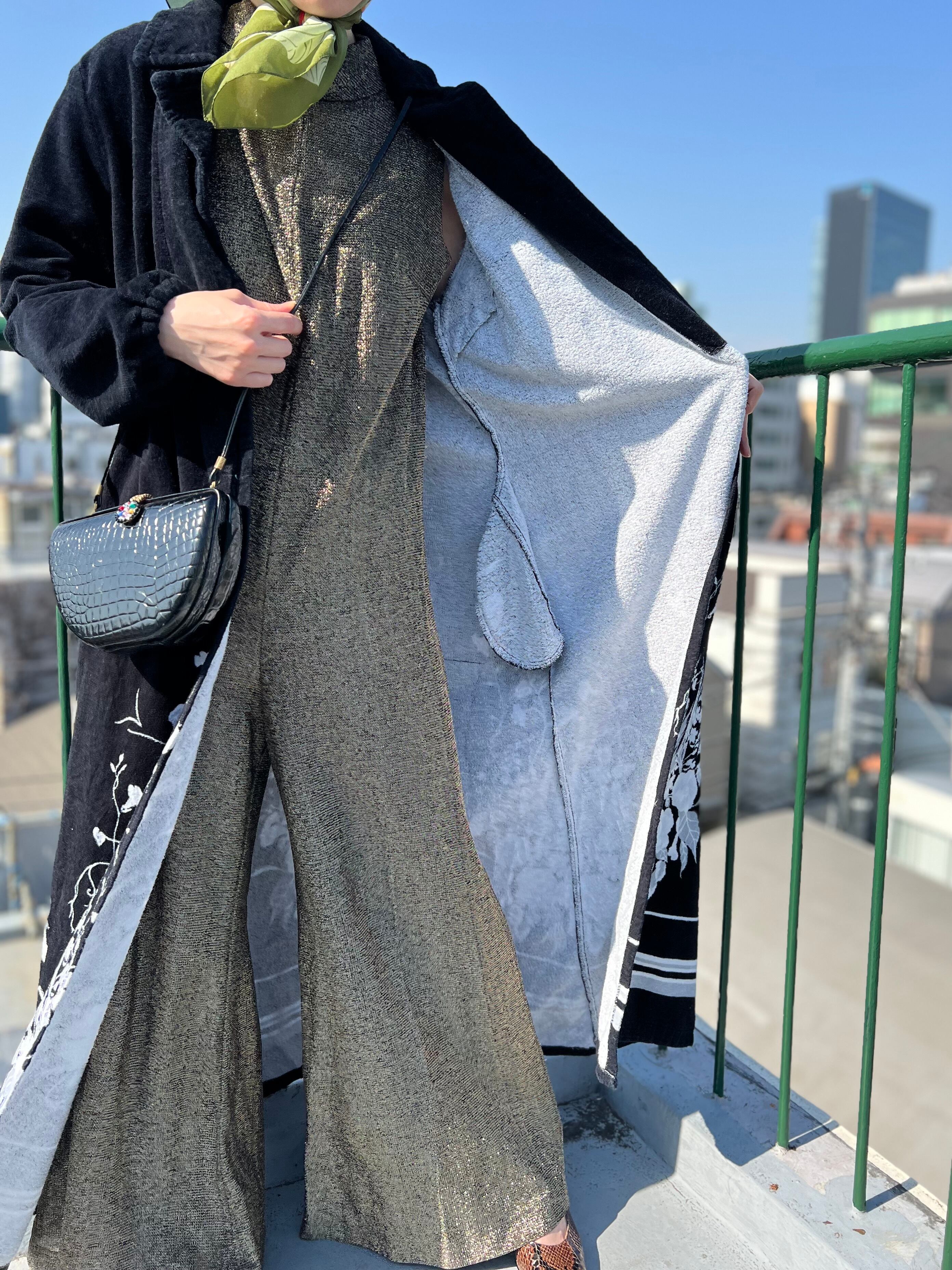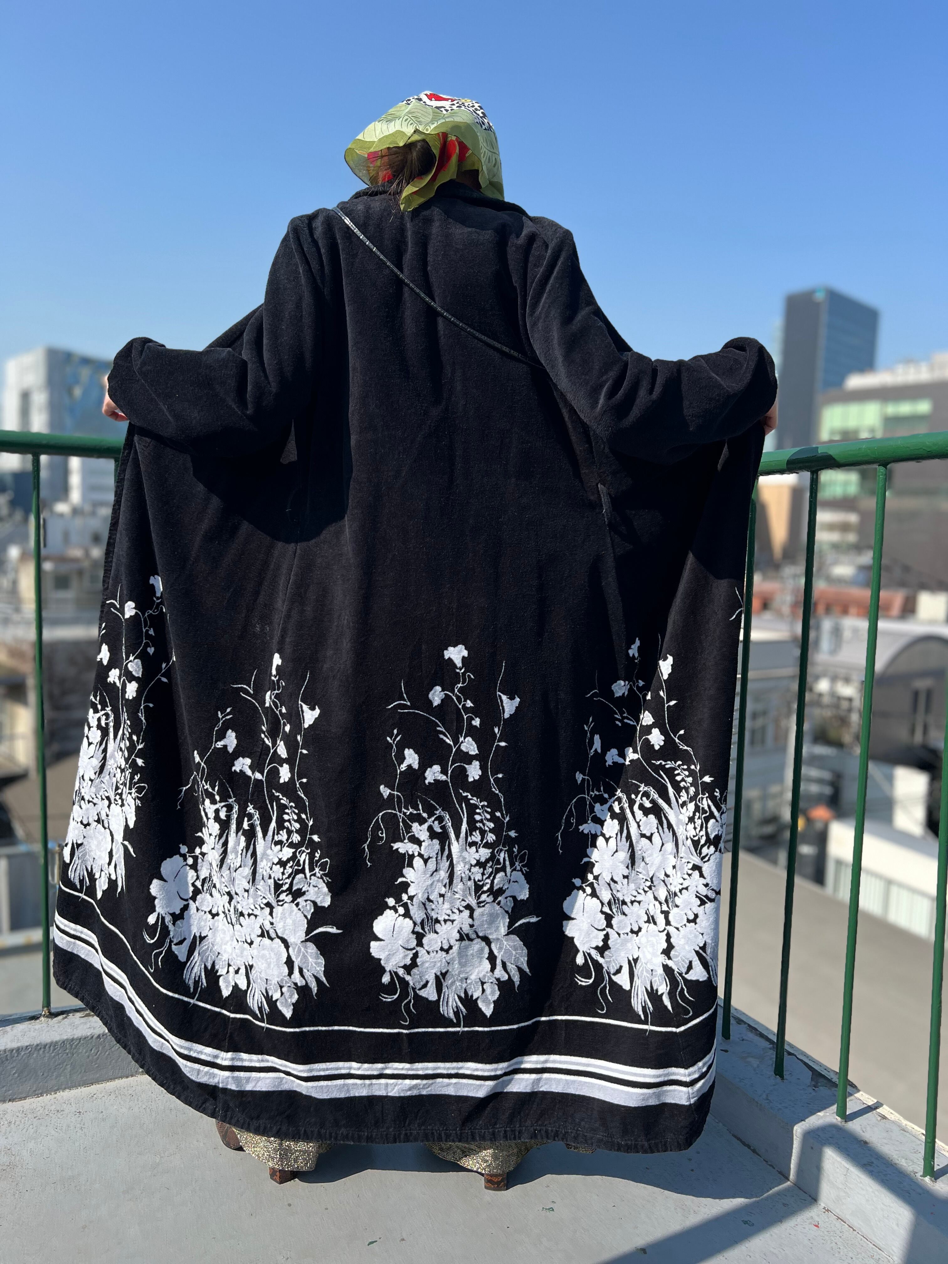 Vintage Euro black floral pile coat