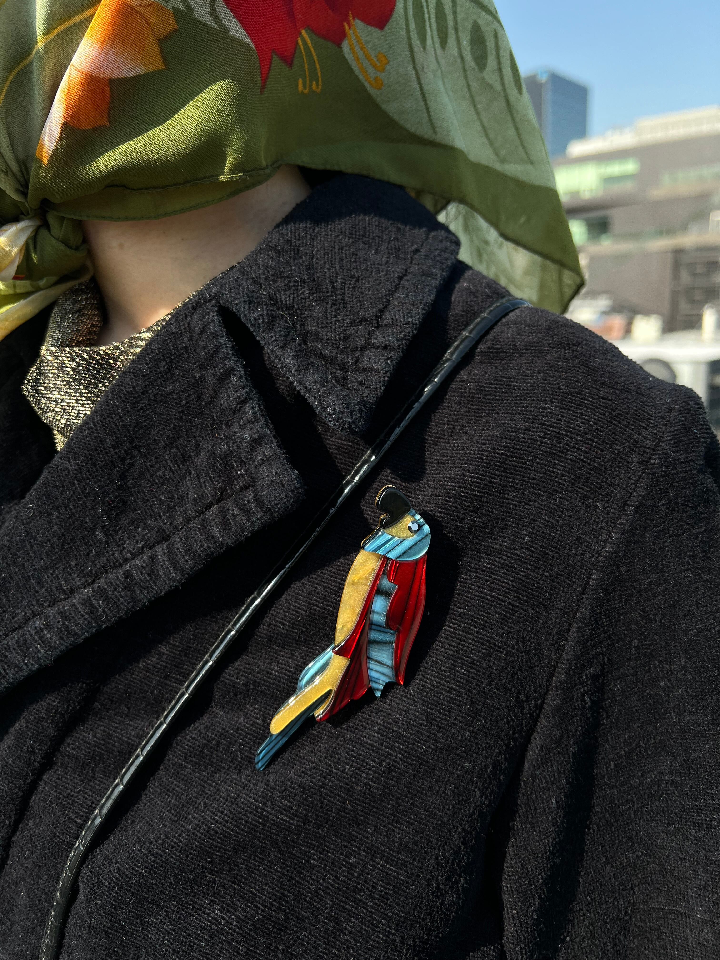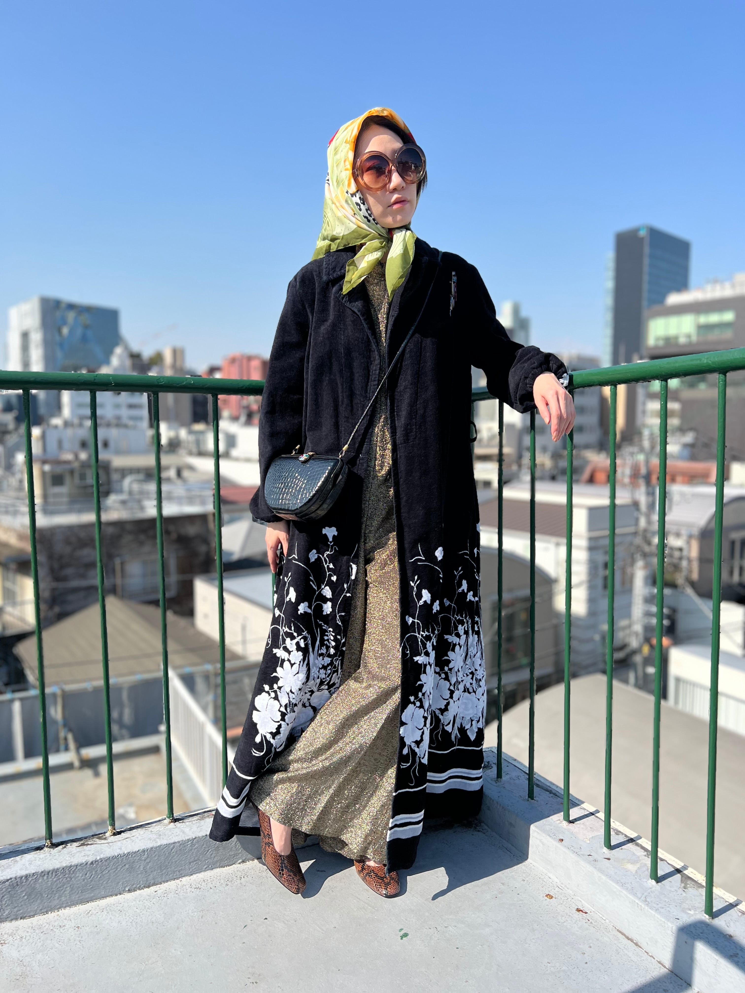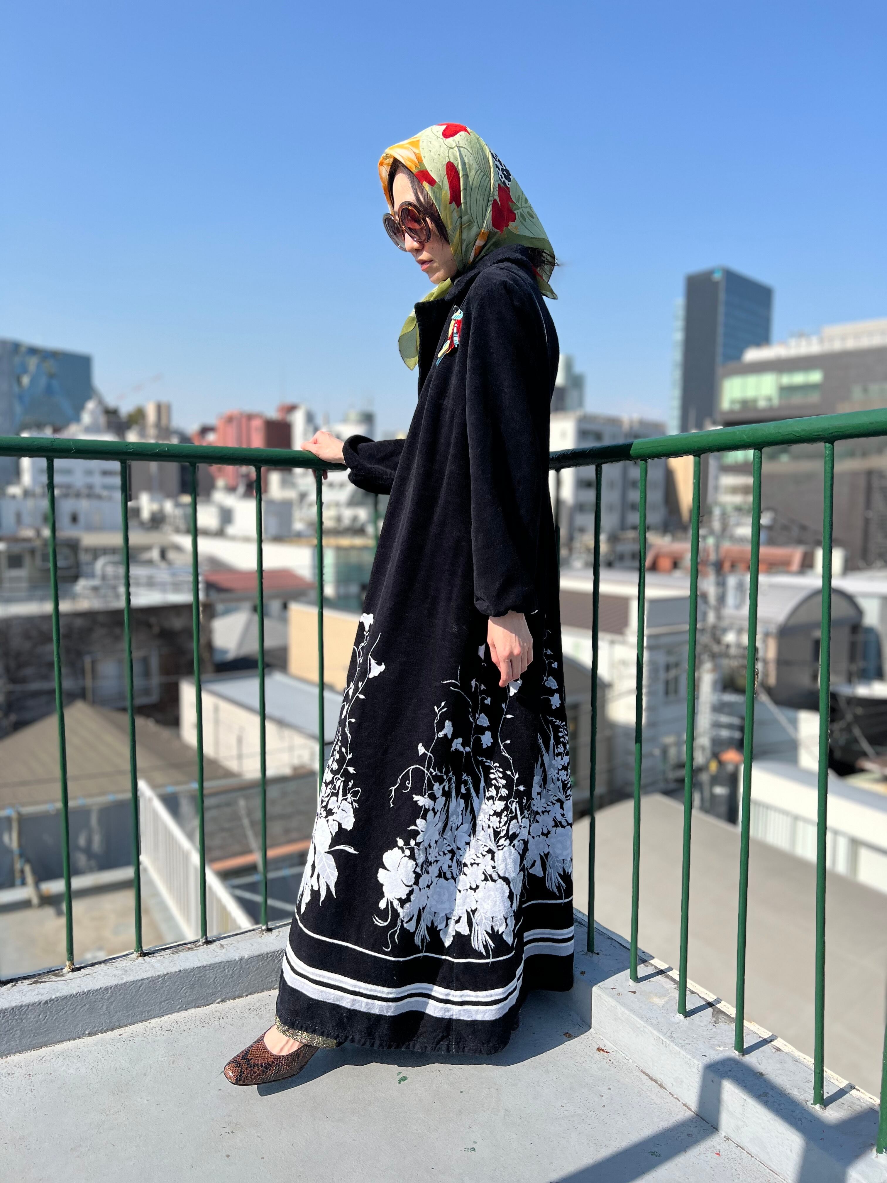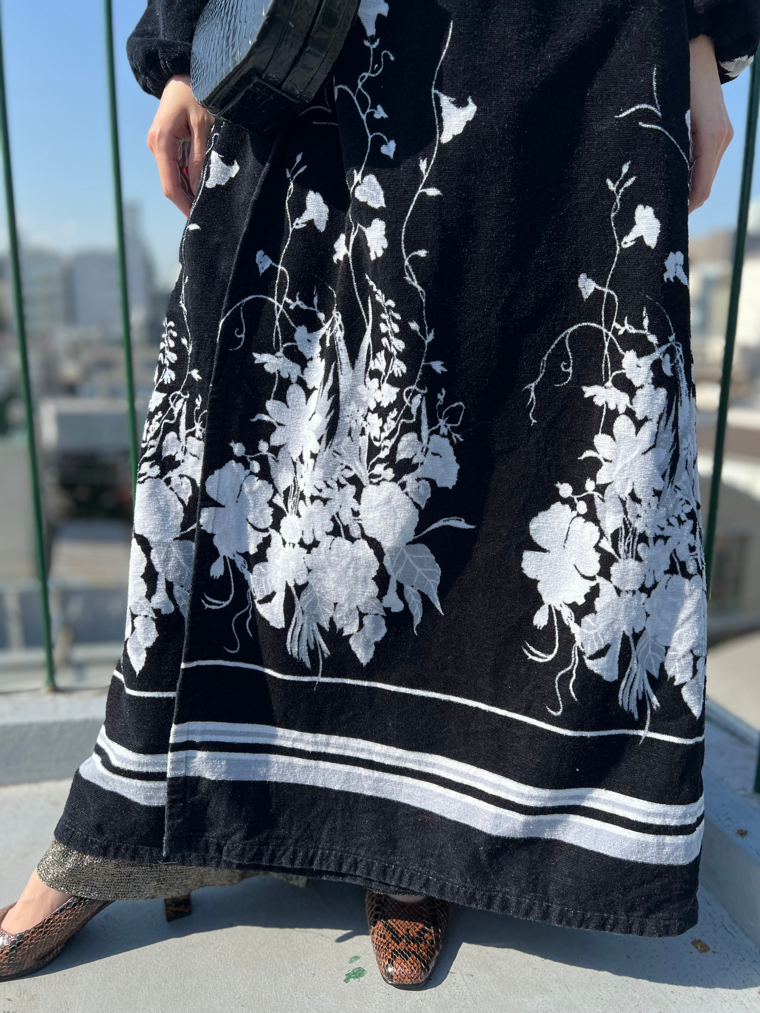 Vintage Euro black floral pile coat