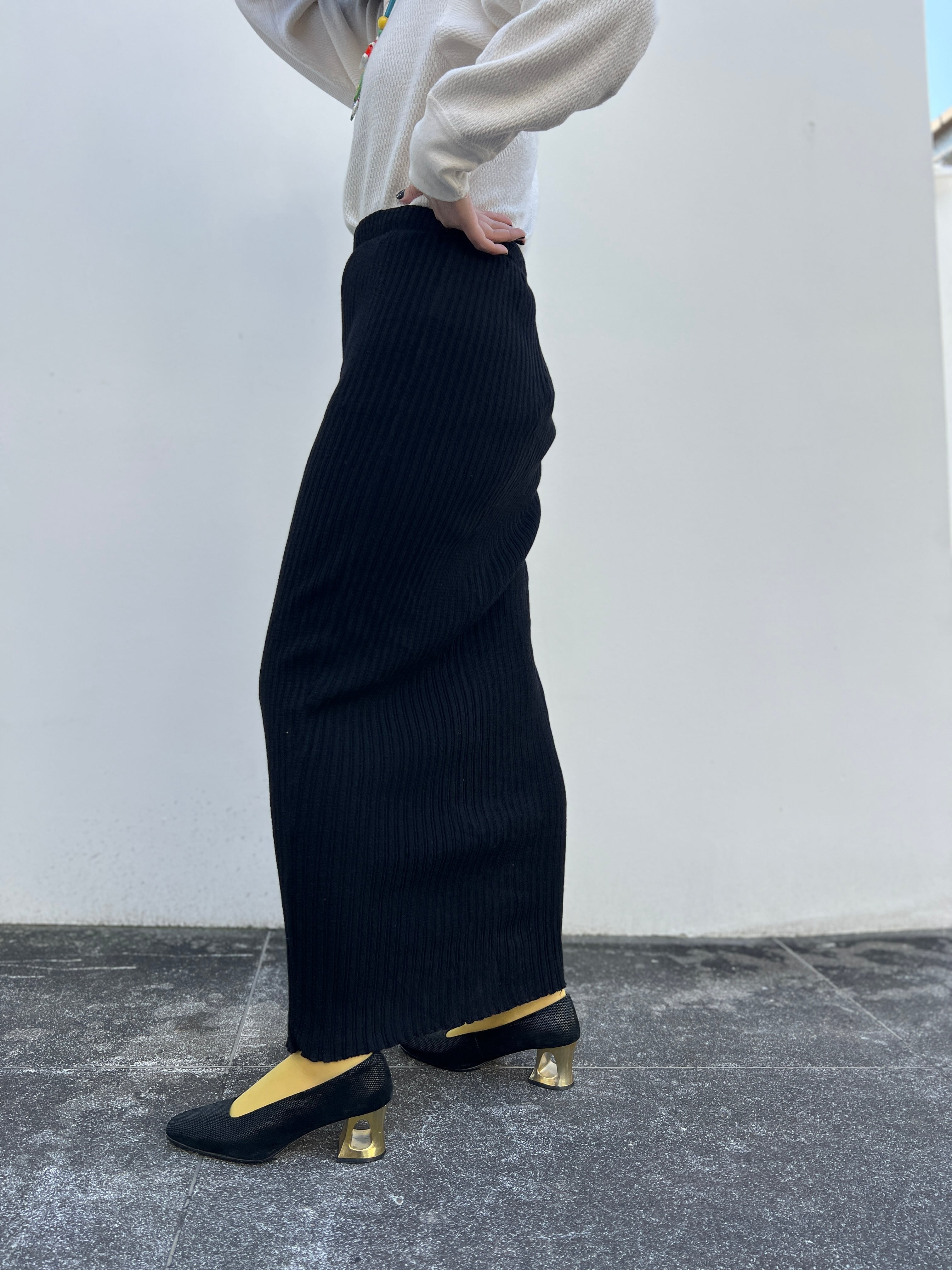 リブのニット地で伸縮性のある着心地の良いスカートです。