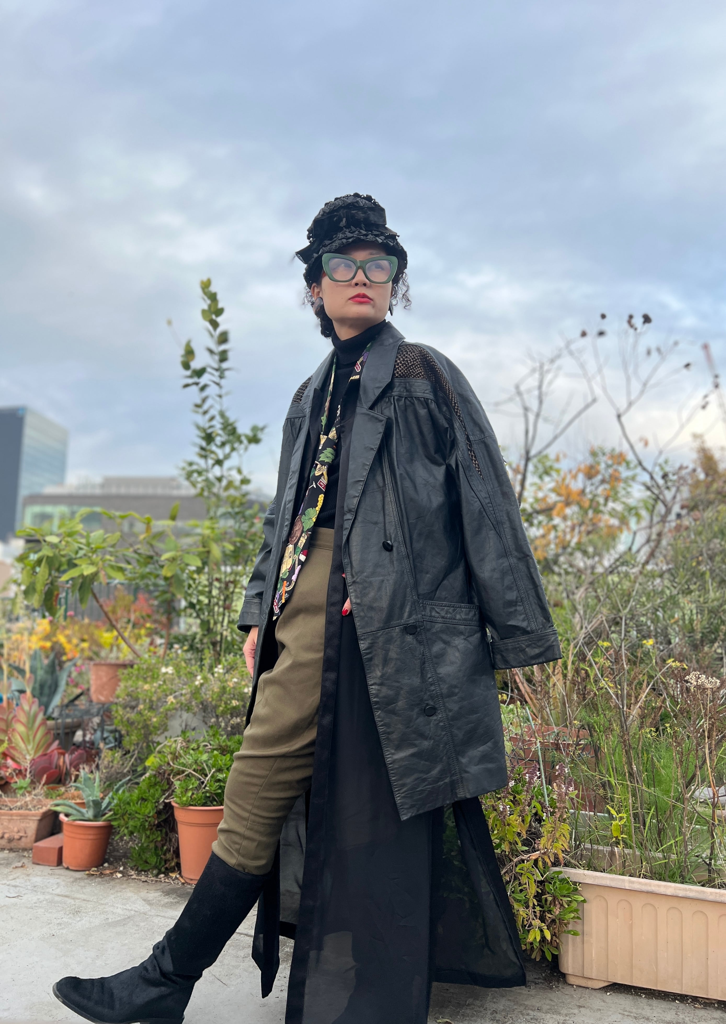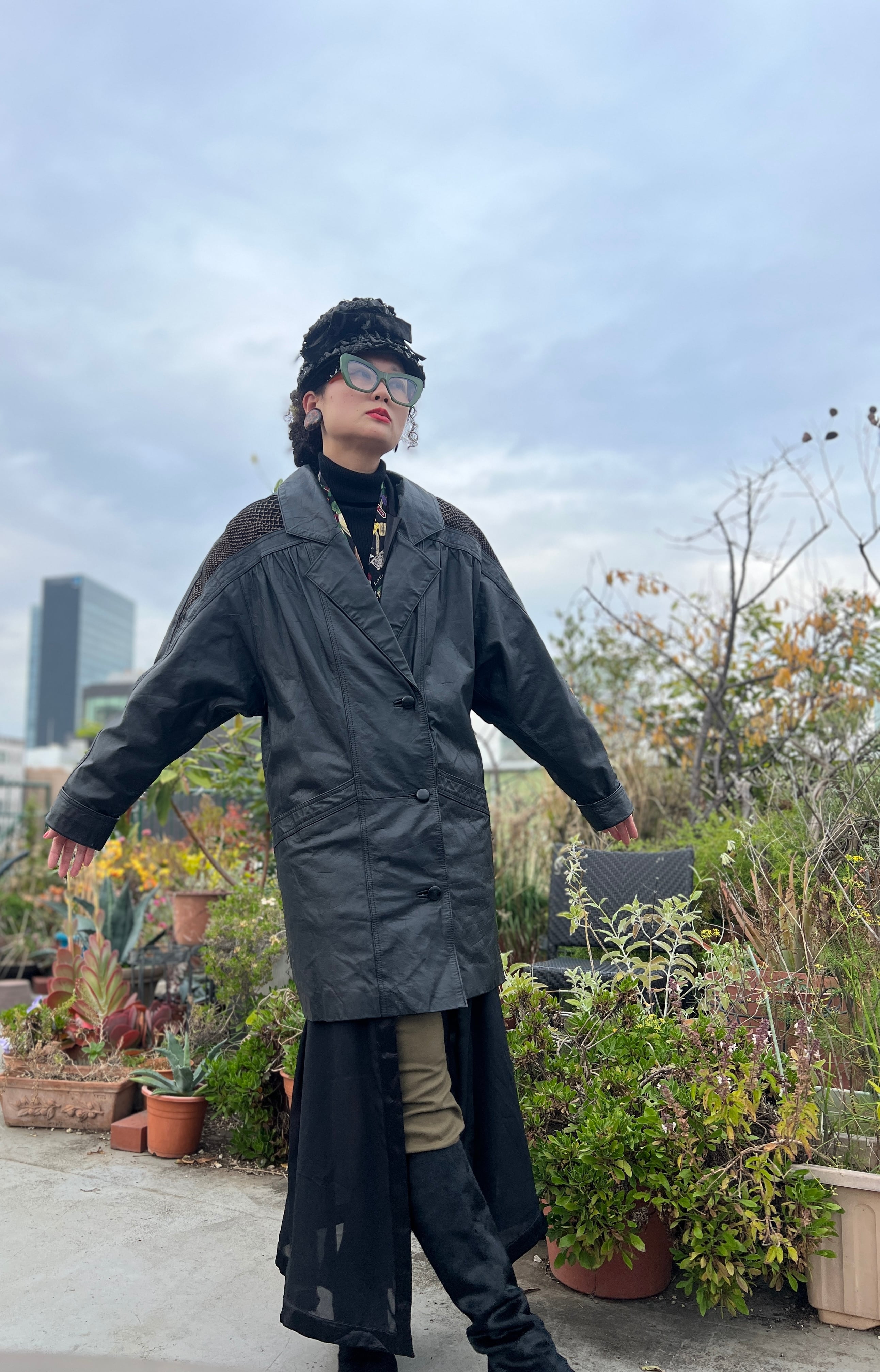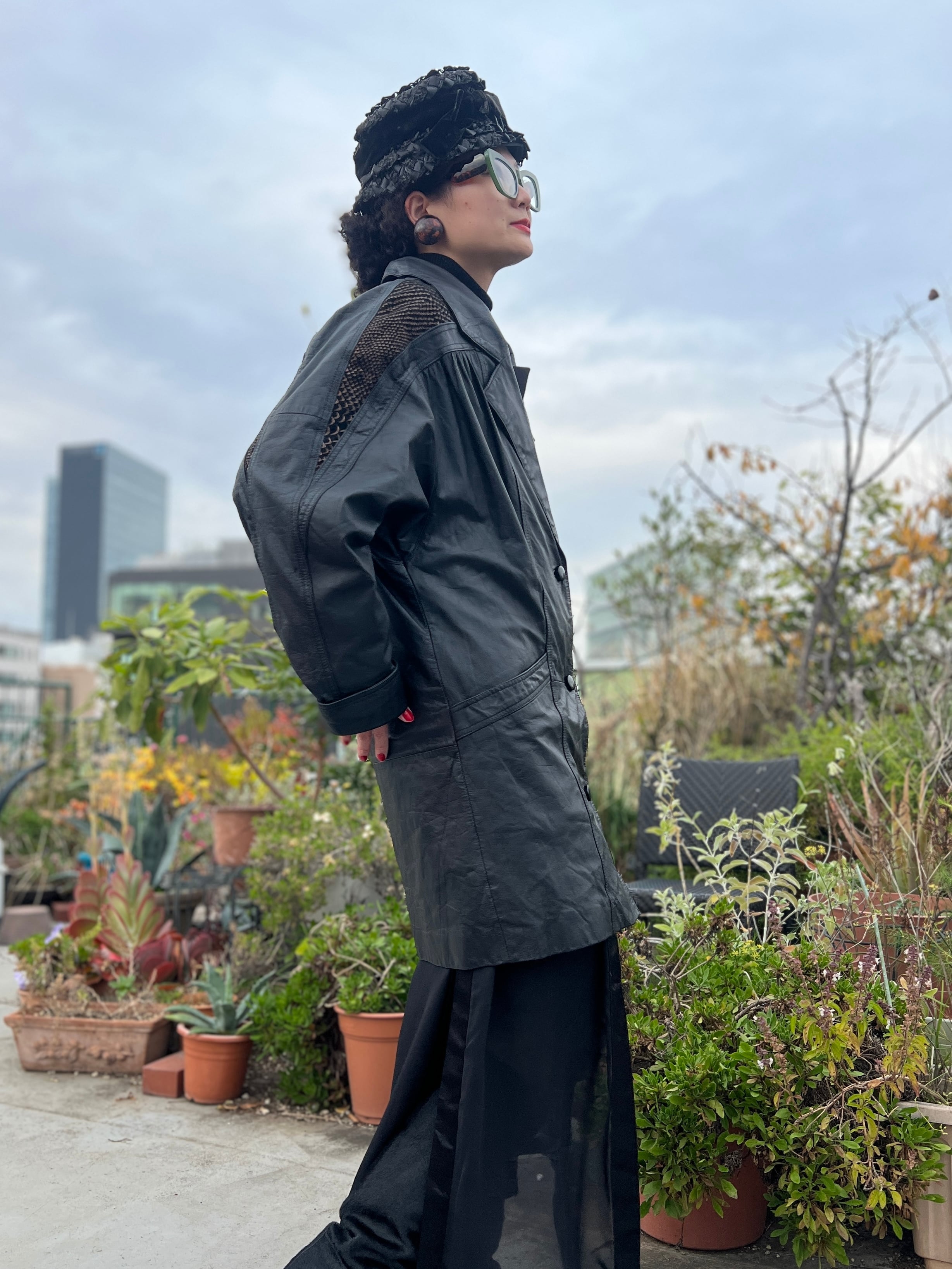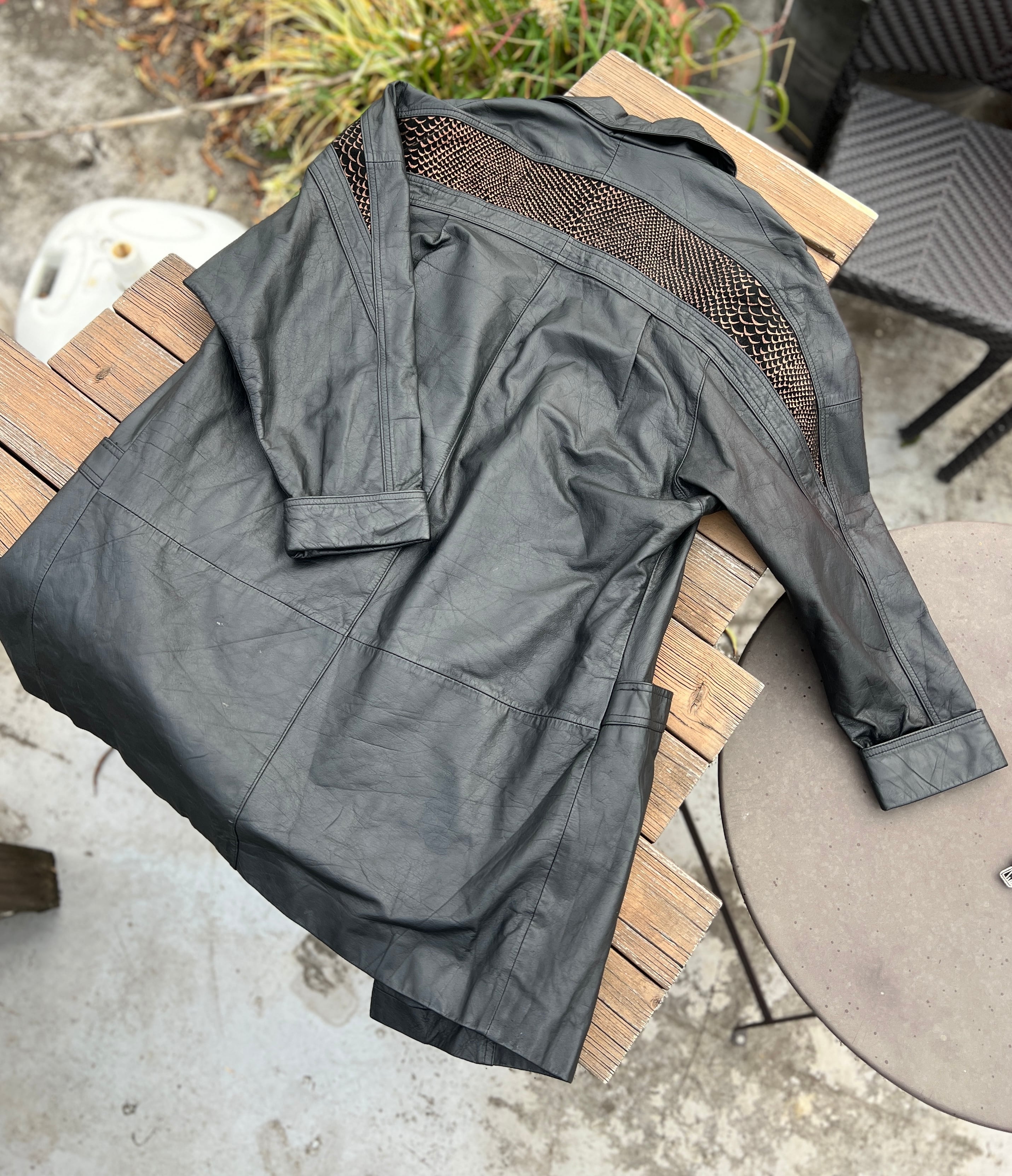 80’s ブラックレザー × メタリックブラウンのパイソン柄。