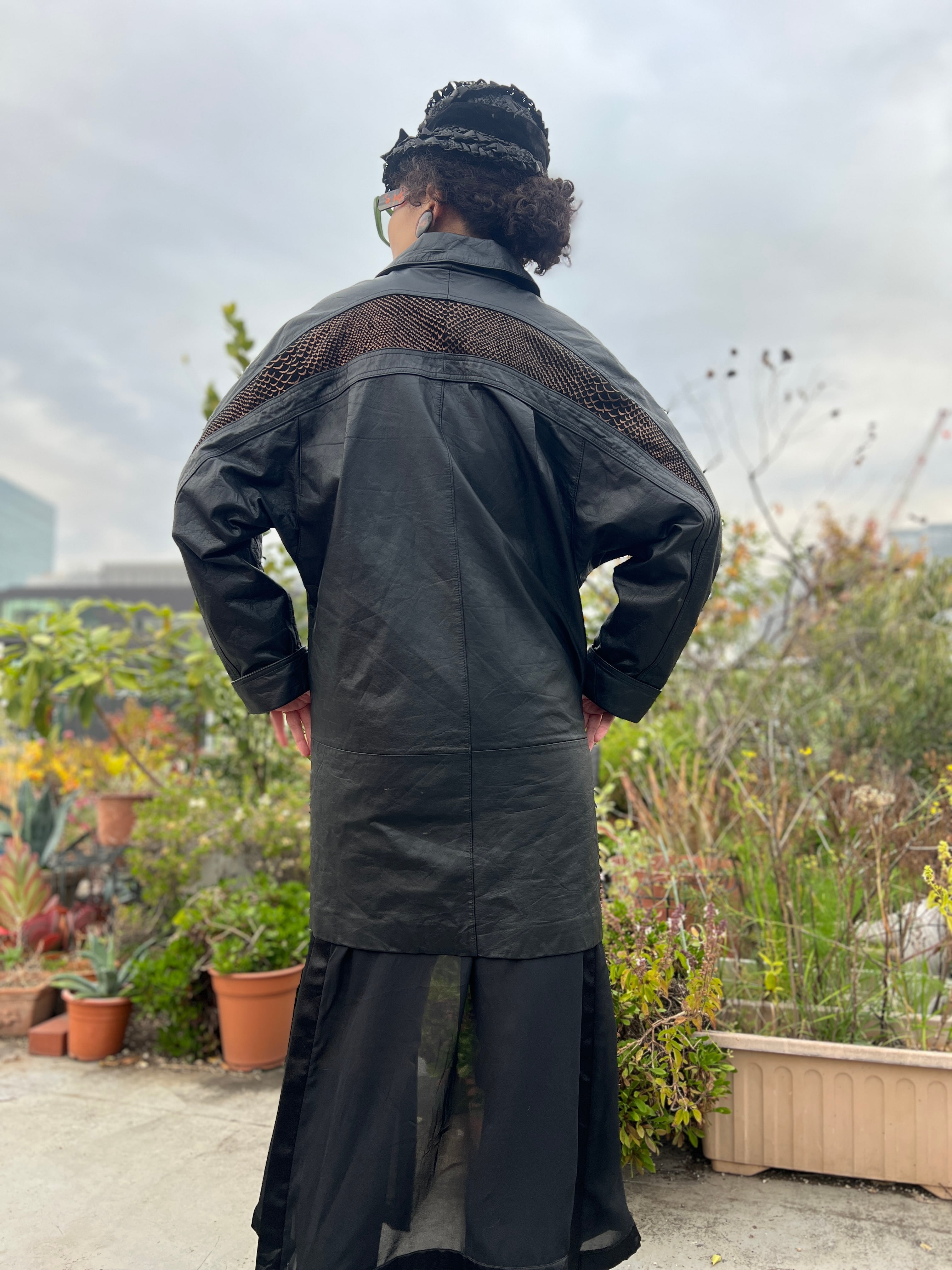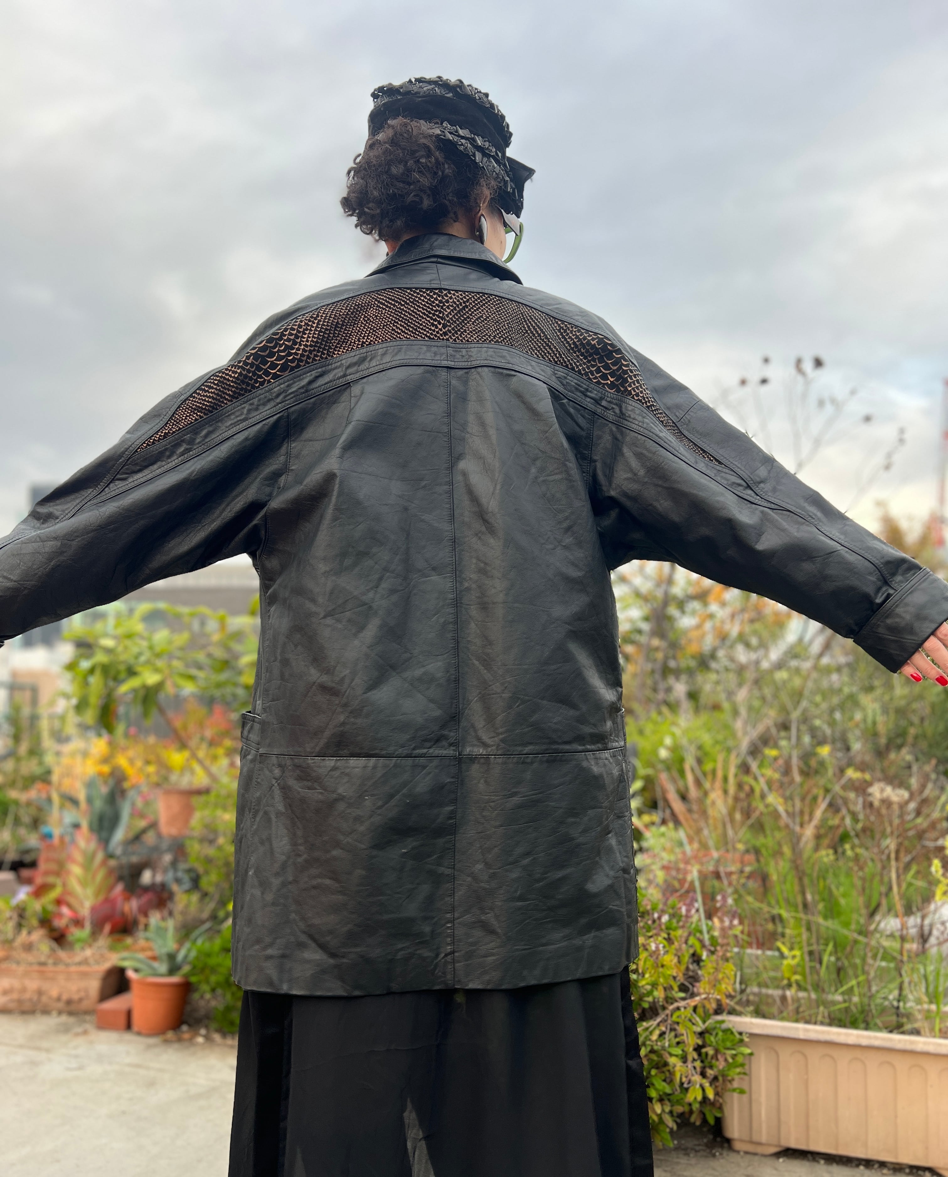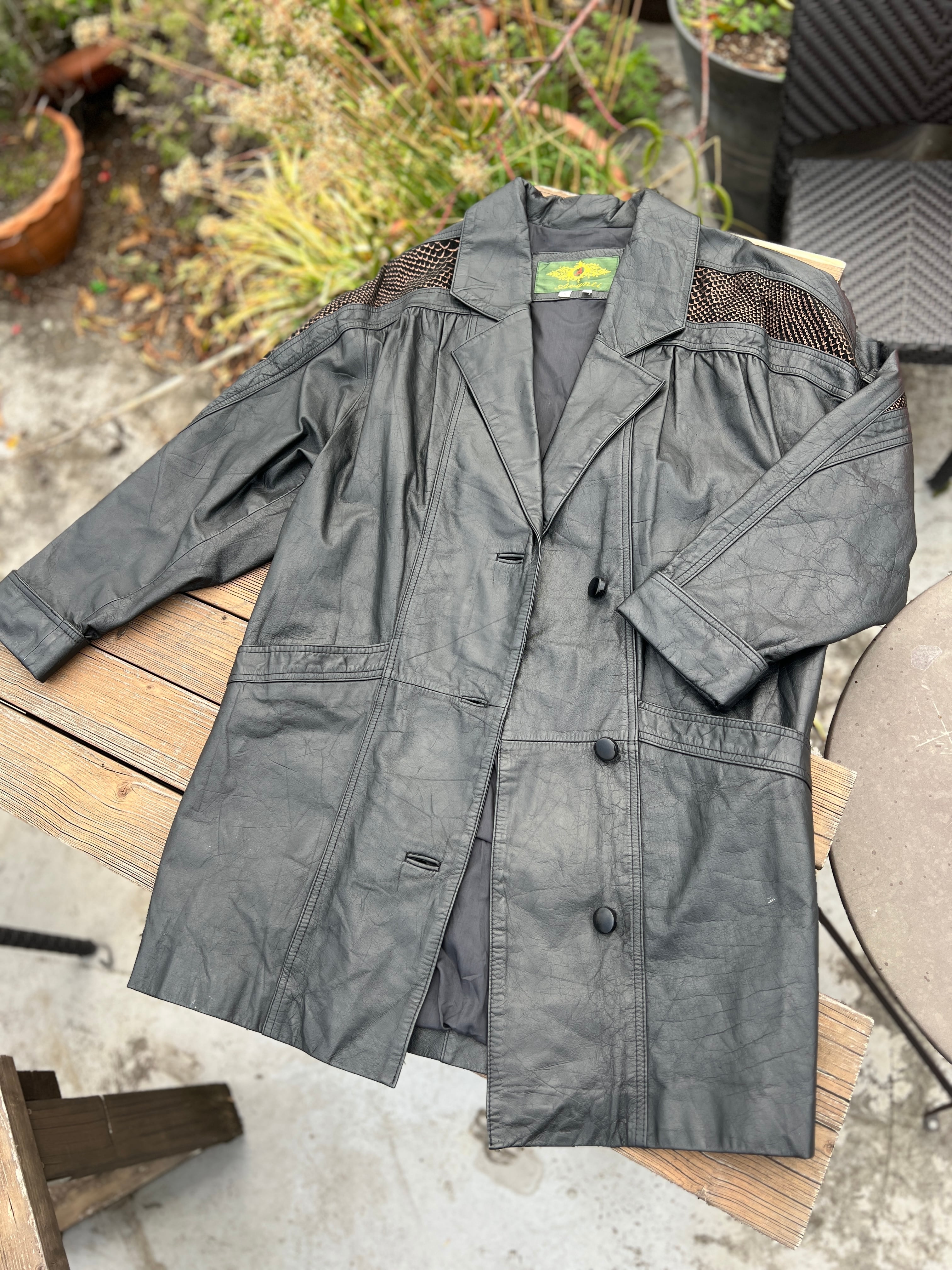 80s metallic Python handpaint × black leather jacket ( ヴィンテージ ブラックレザー × パイソン メタリック ハンドペイント レザー ジャケット )