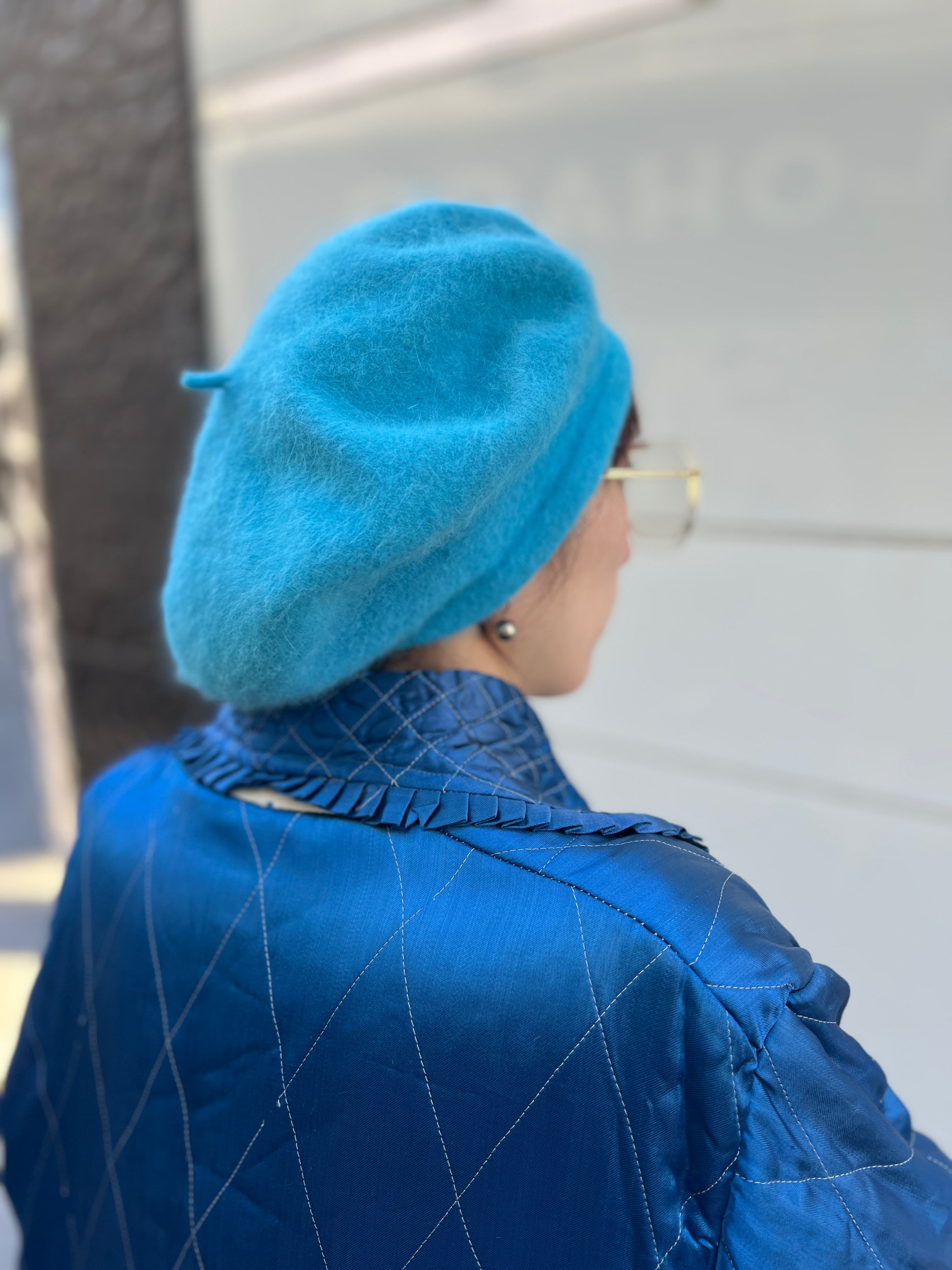 メタリックブルーの上品な光沢と、丁寧な刺繍はヴィンテージならではの特別感。
