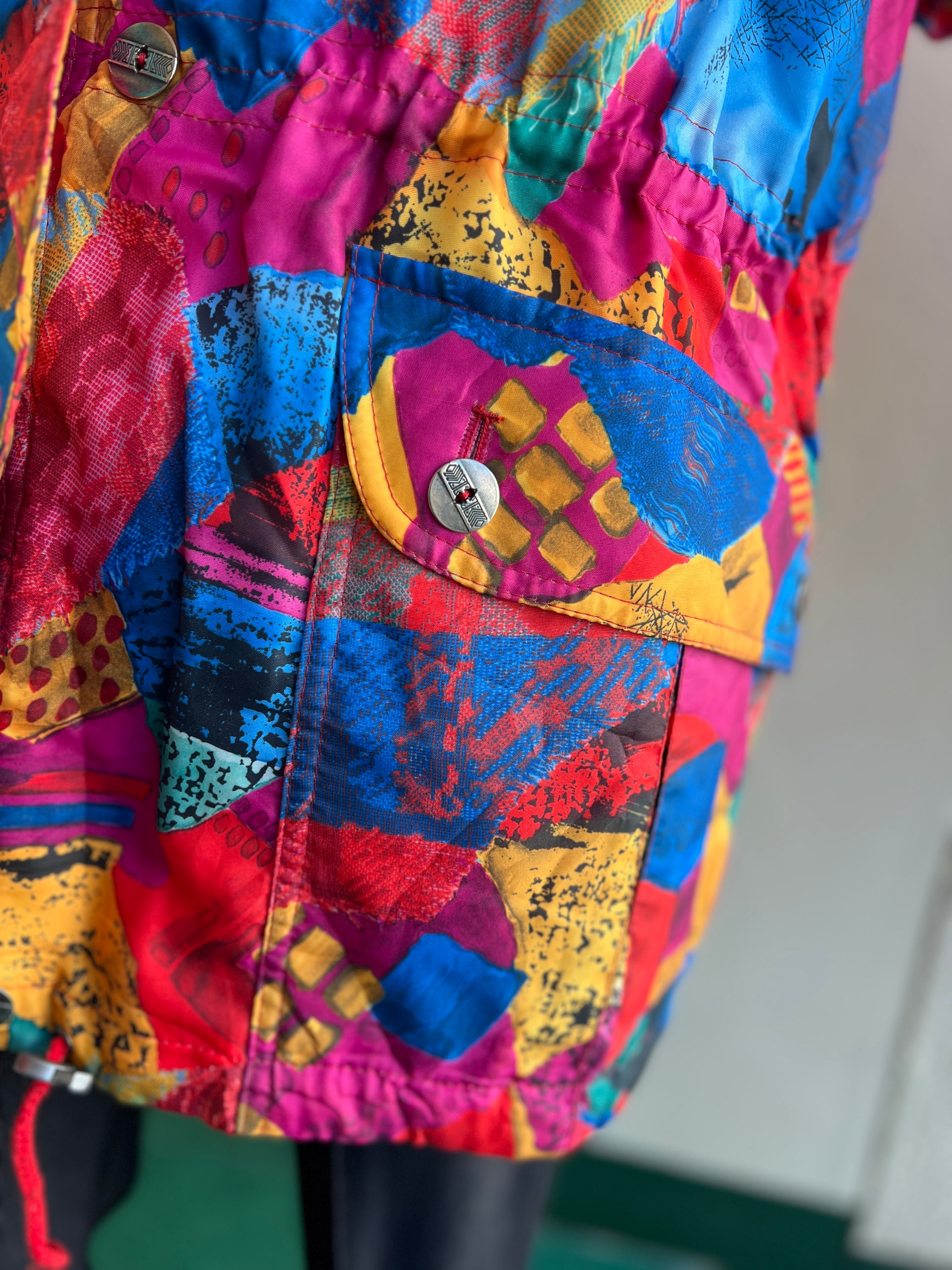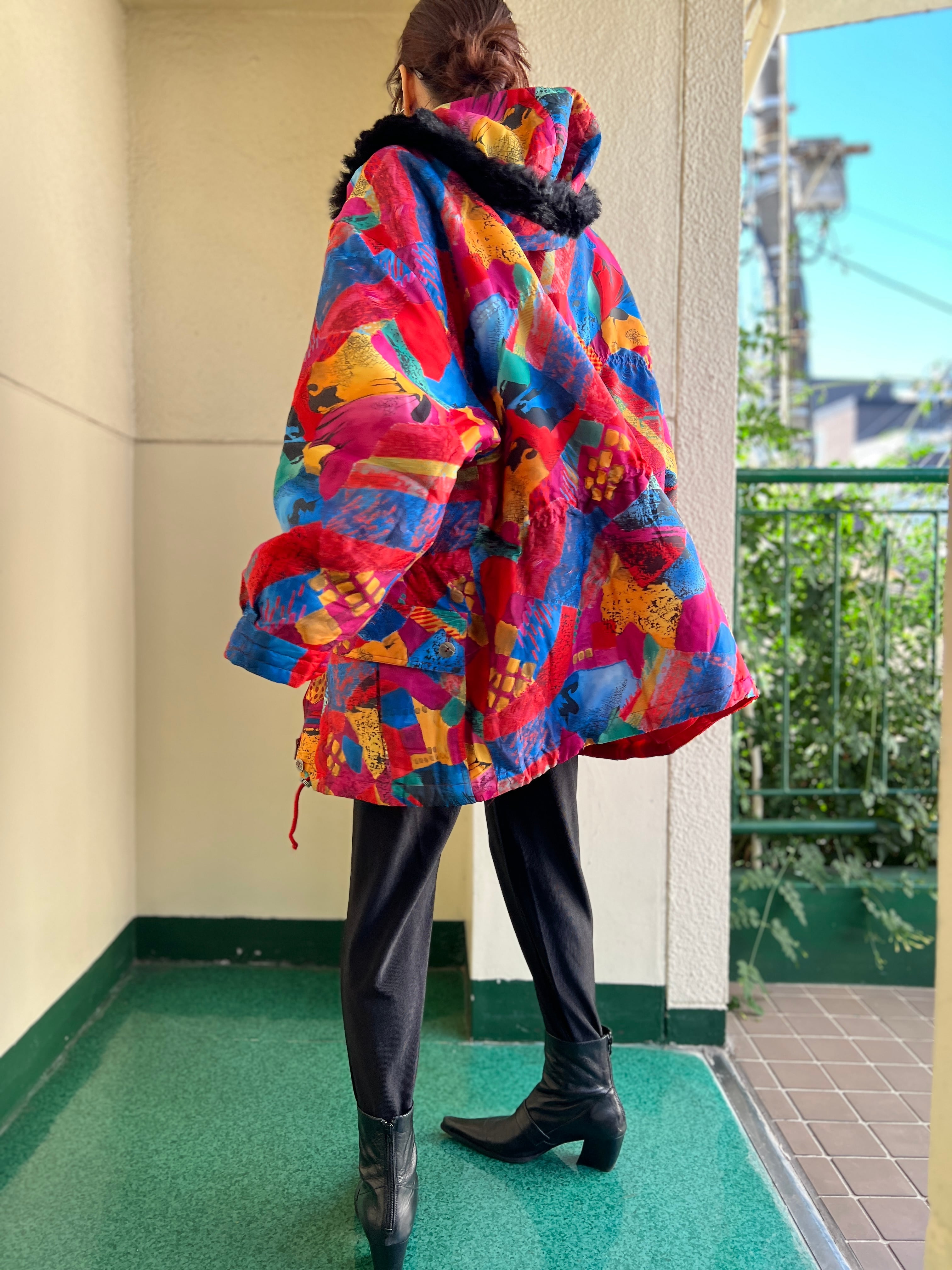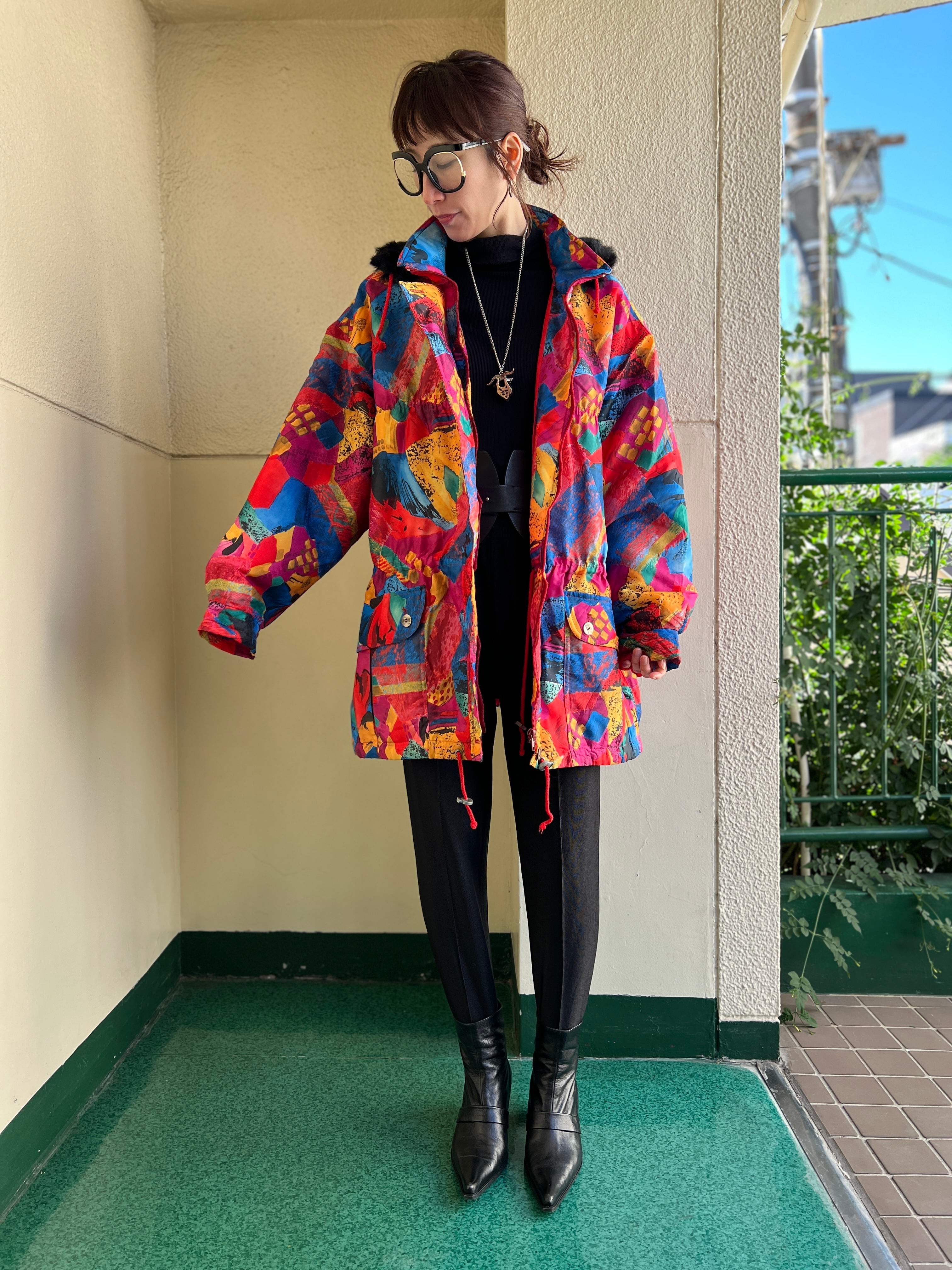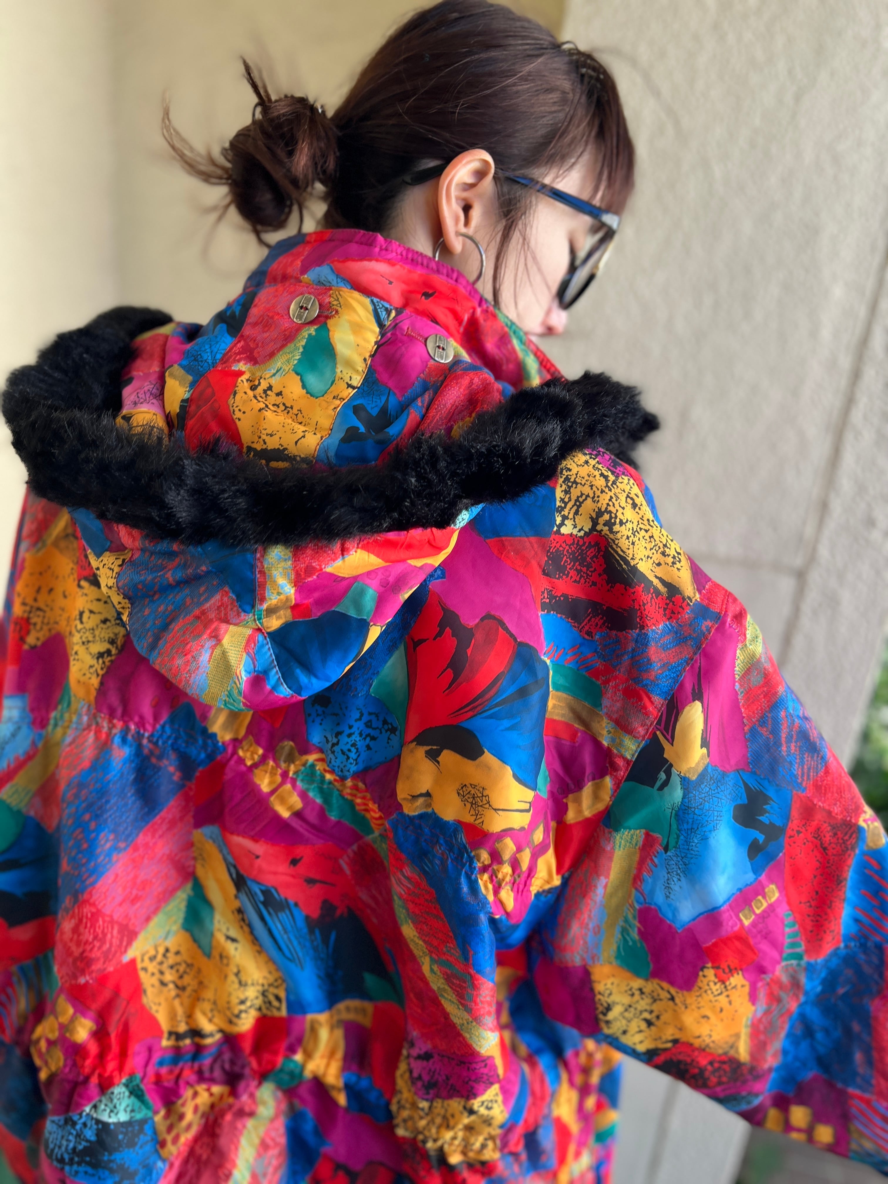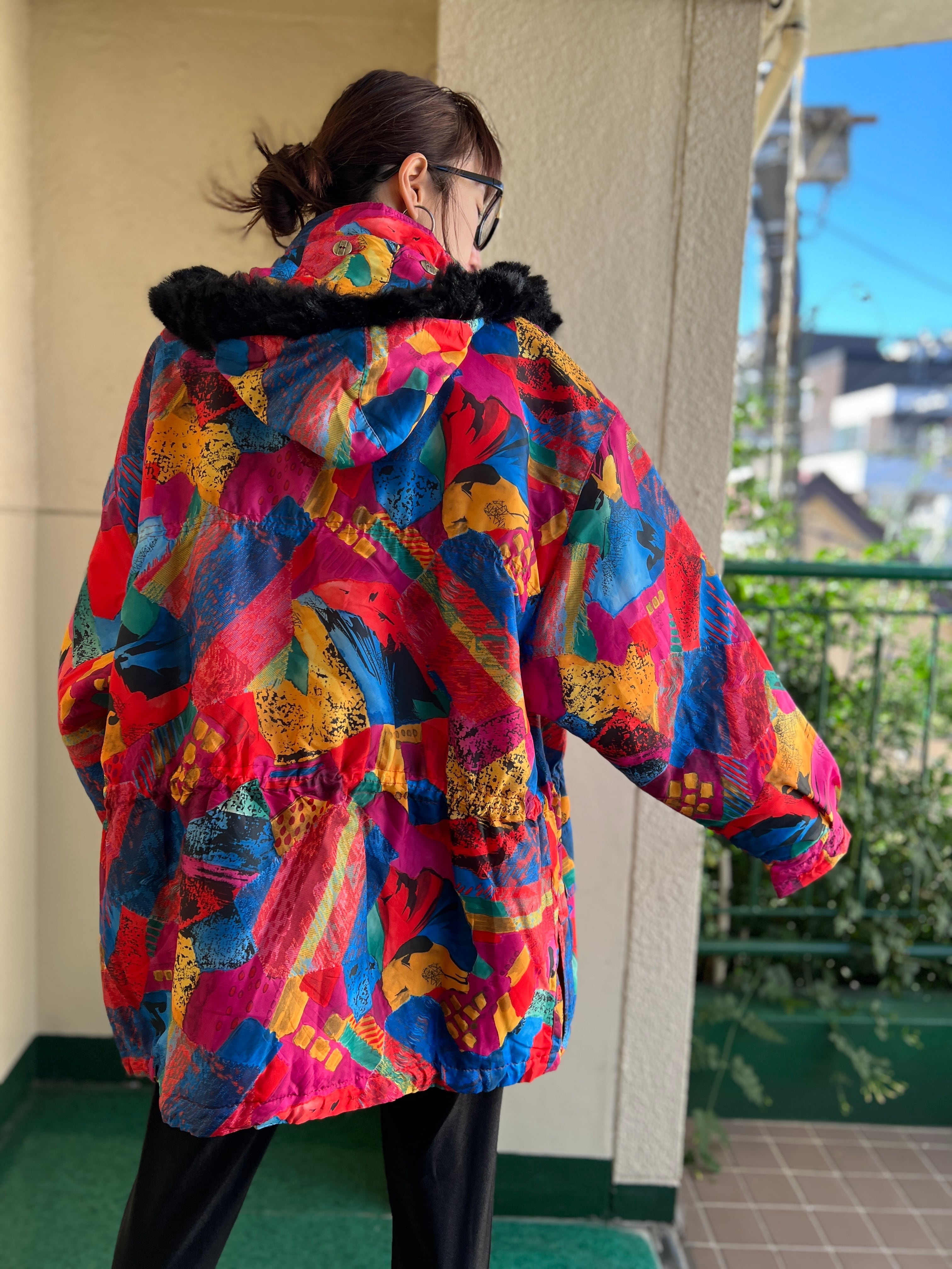 Vintage EUR multicolored foodie blouson ( ヴィンテージ ヨーロッパ マルチカラー フード つき 中綿入り ブルゾン )