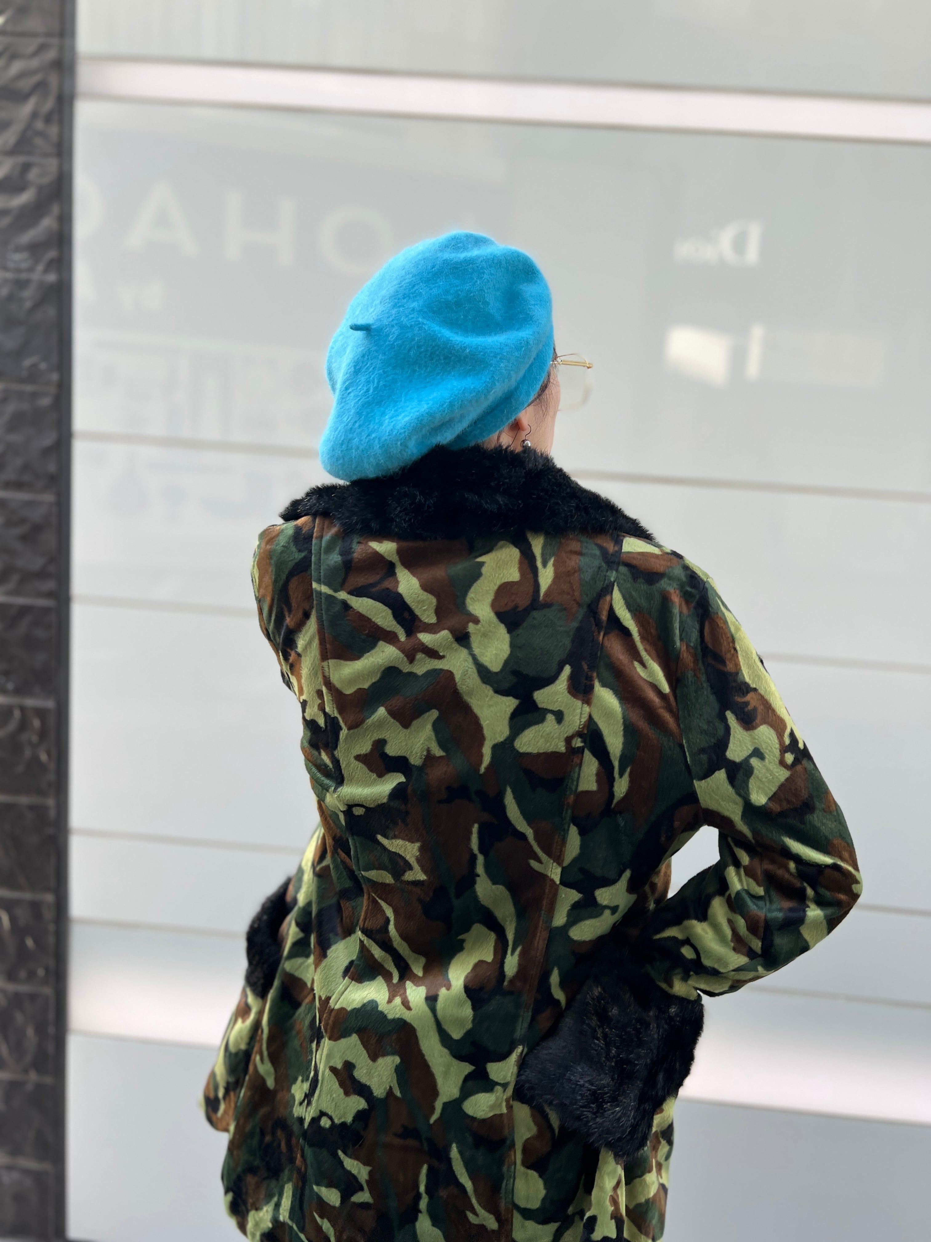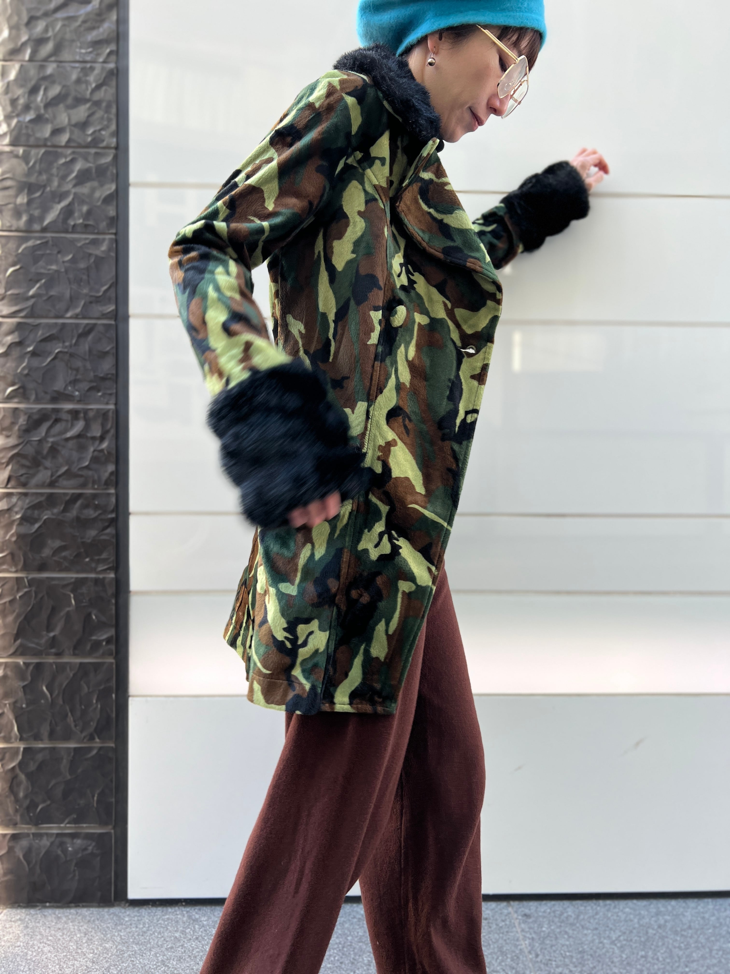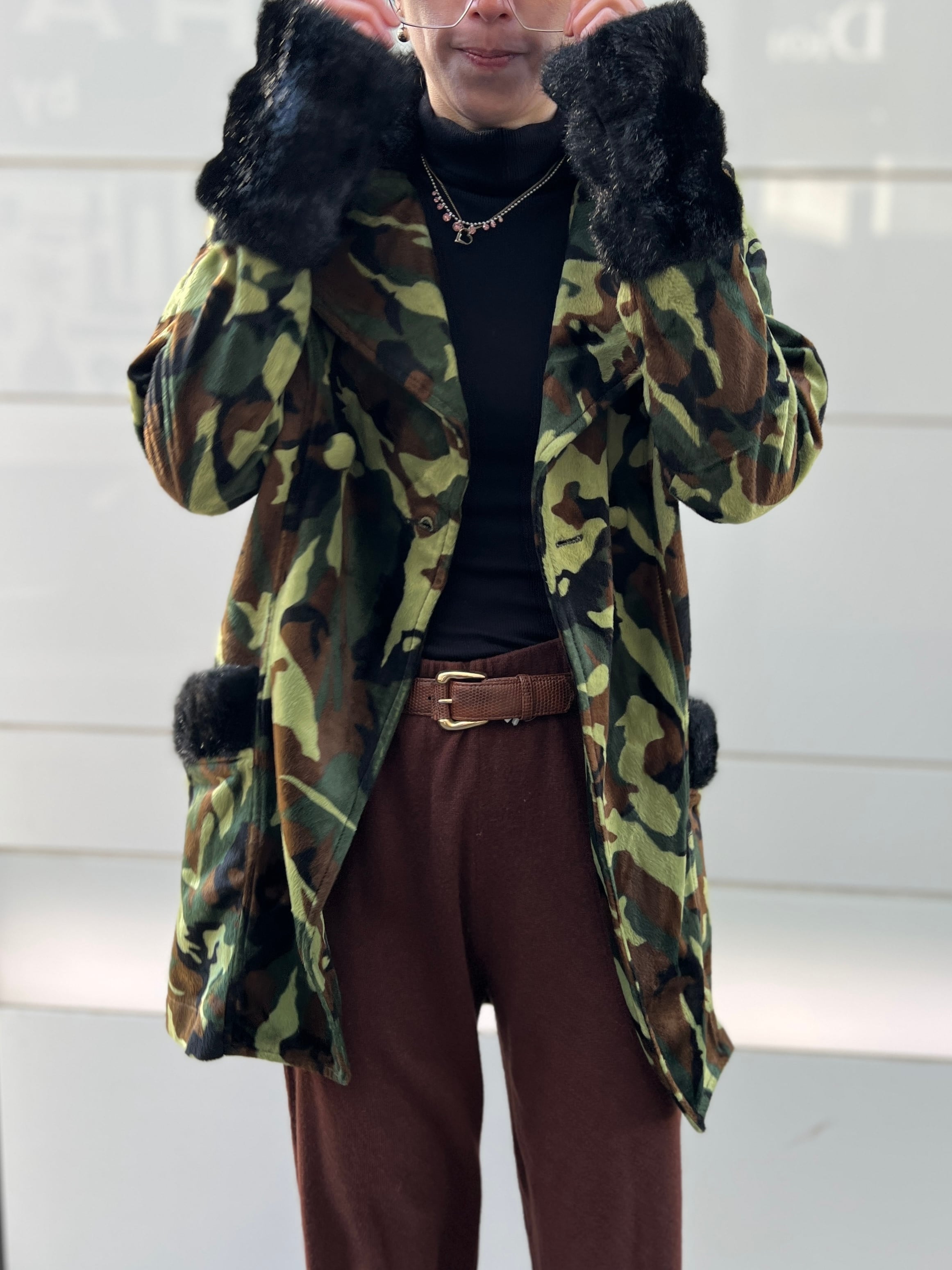 ヴィンテージアメリカの、カモフラ×フェイクファーが主役のライトコート。
