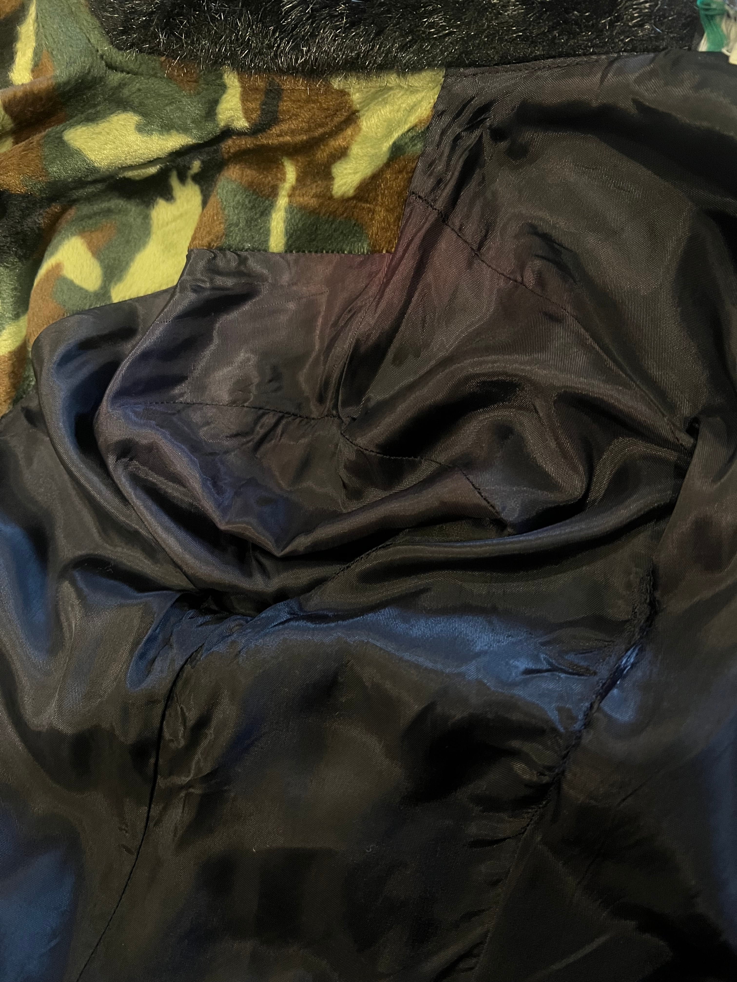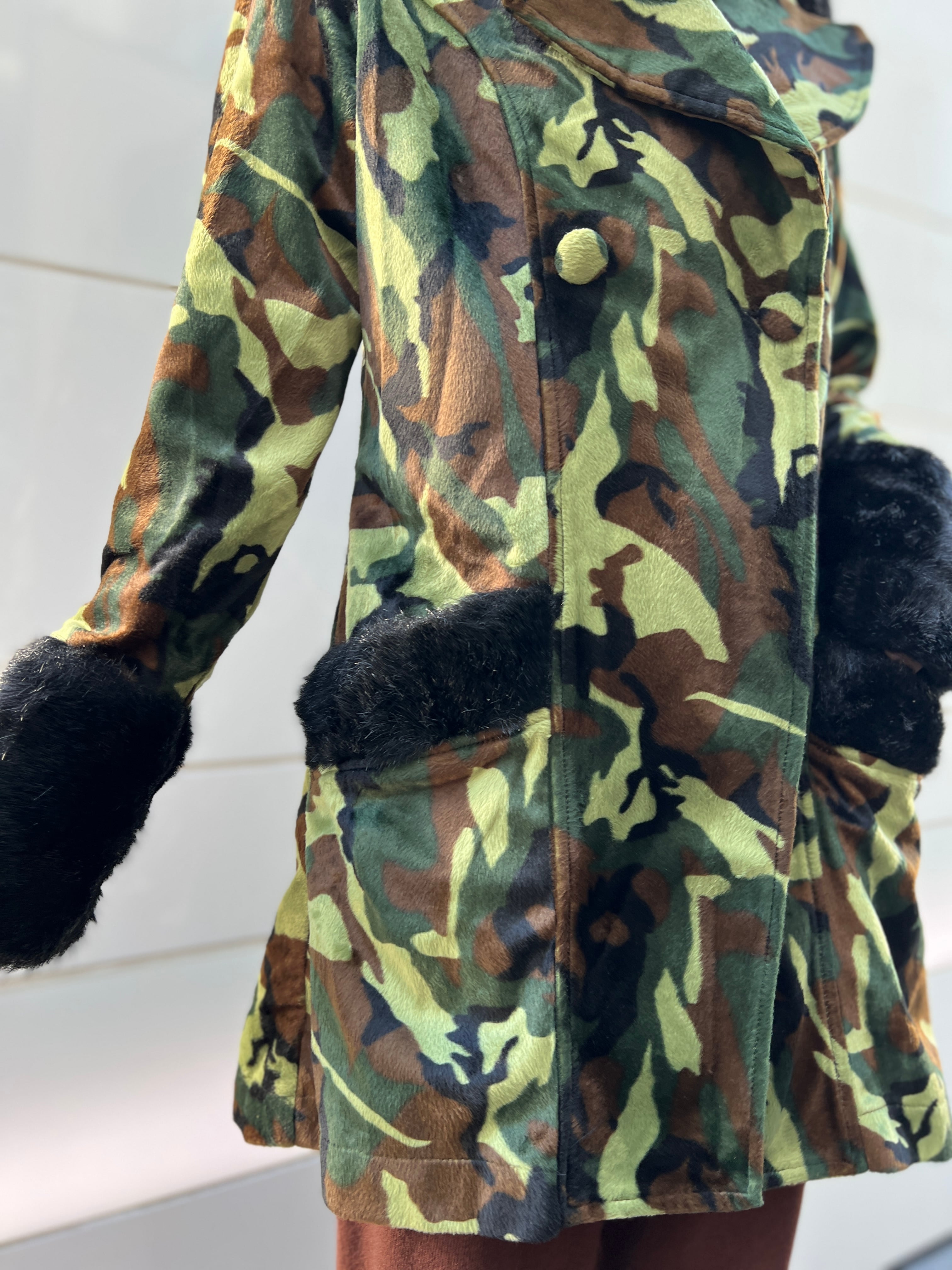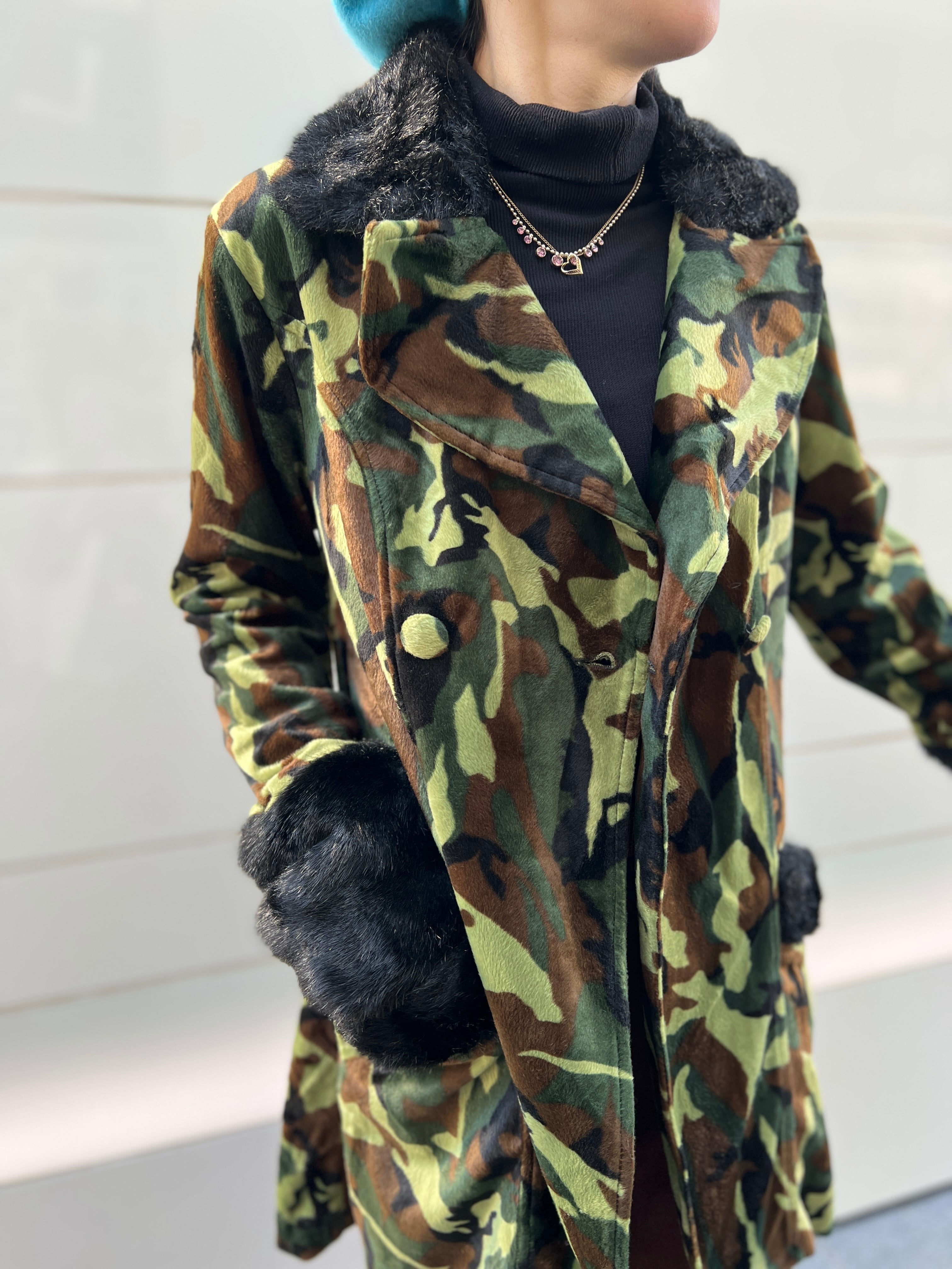 ヴィンテージアメリカの、カモフラ×フェイクファーが主役のライトコート。