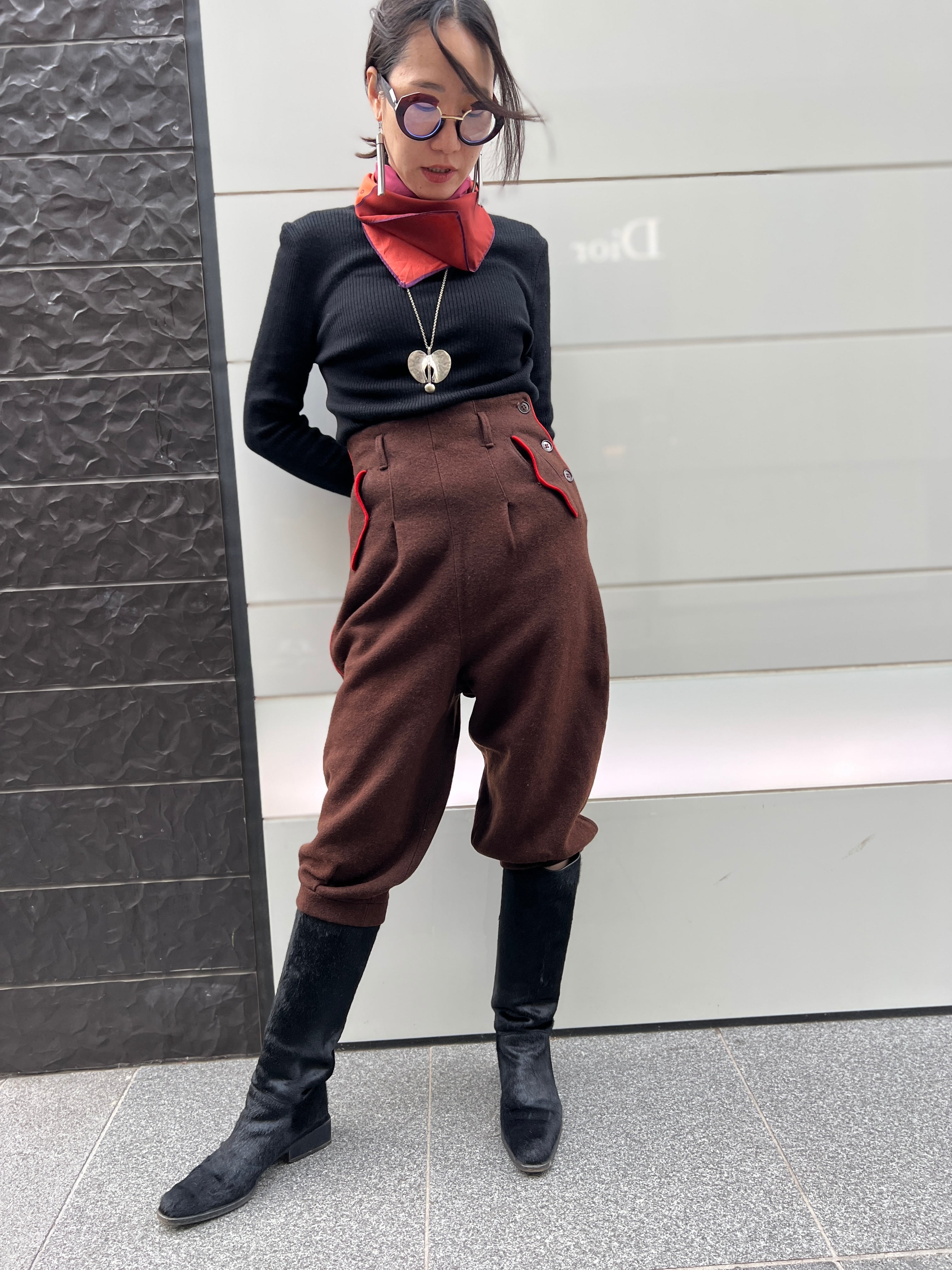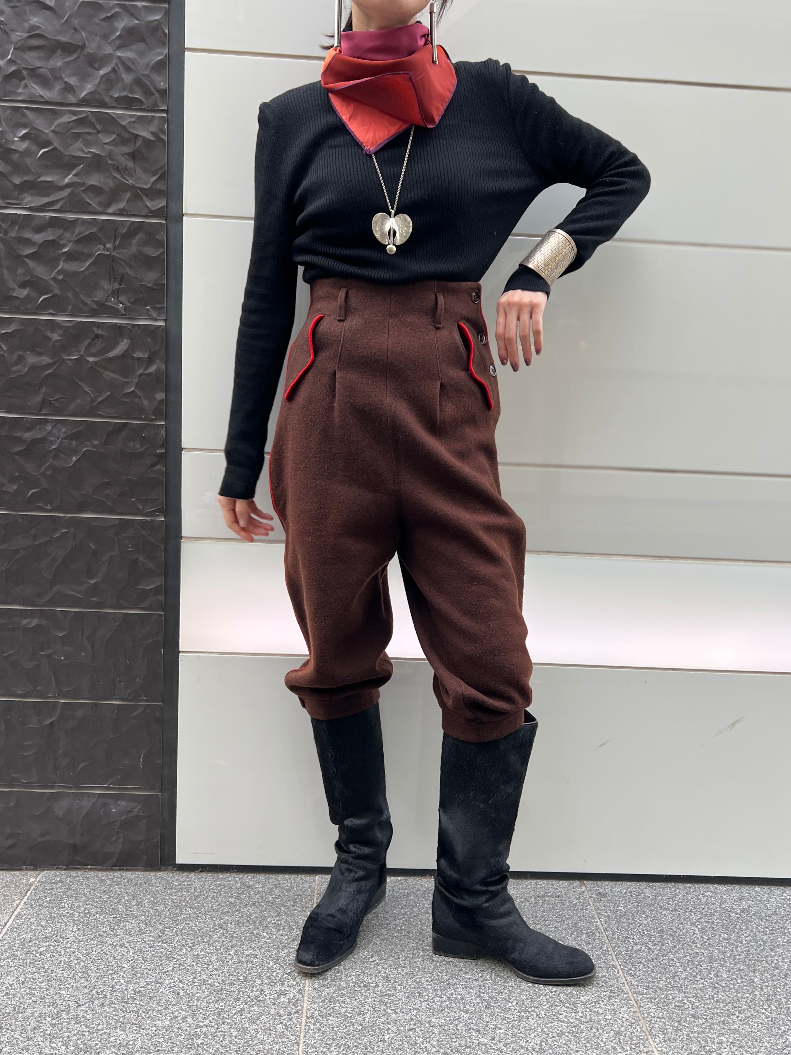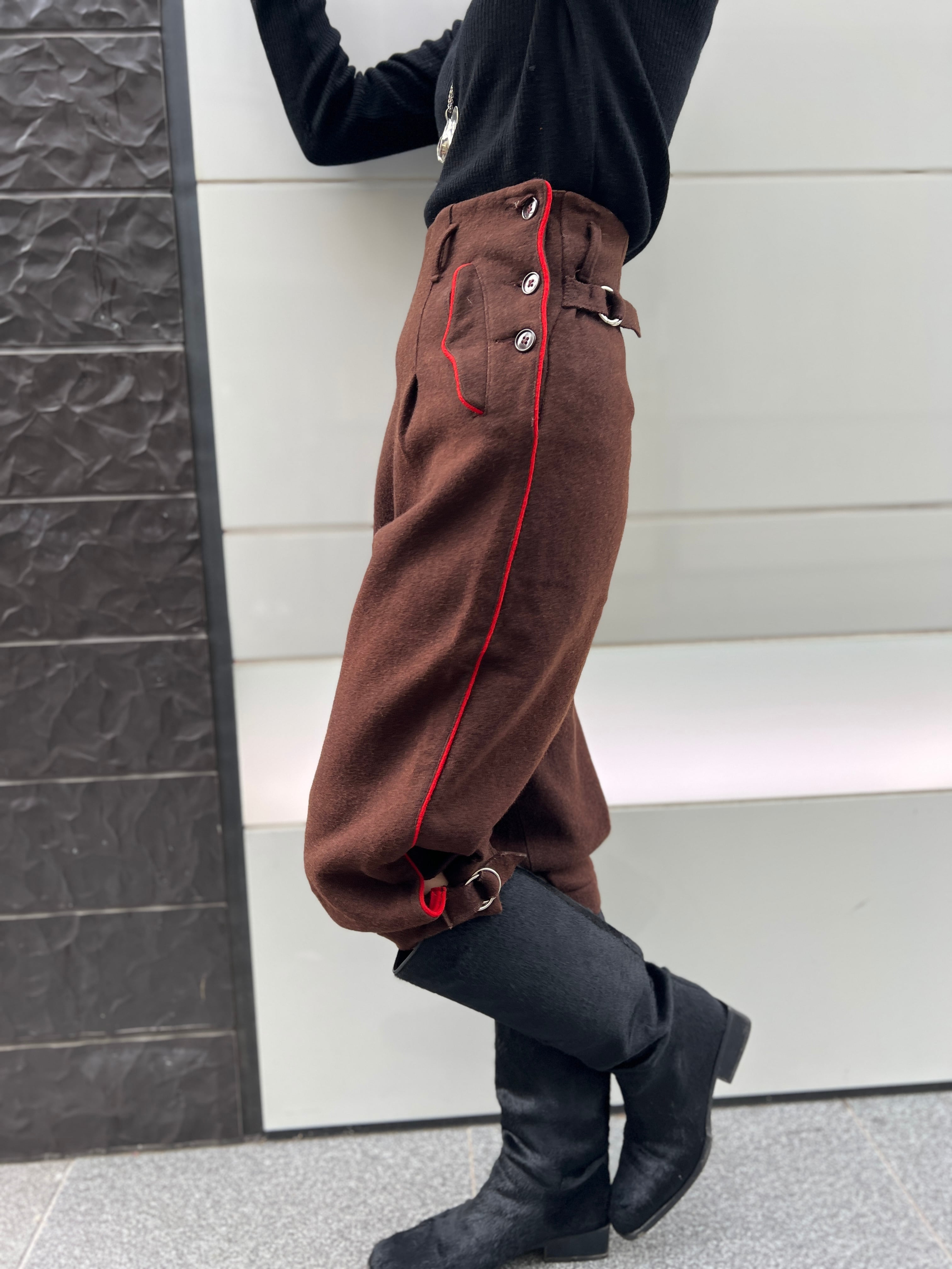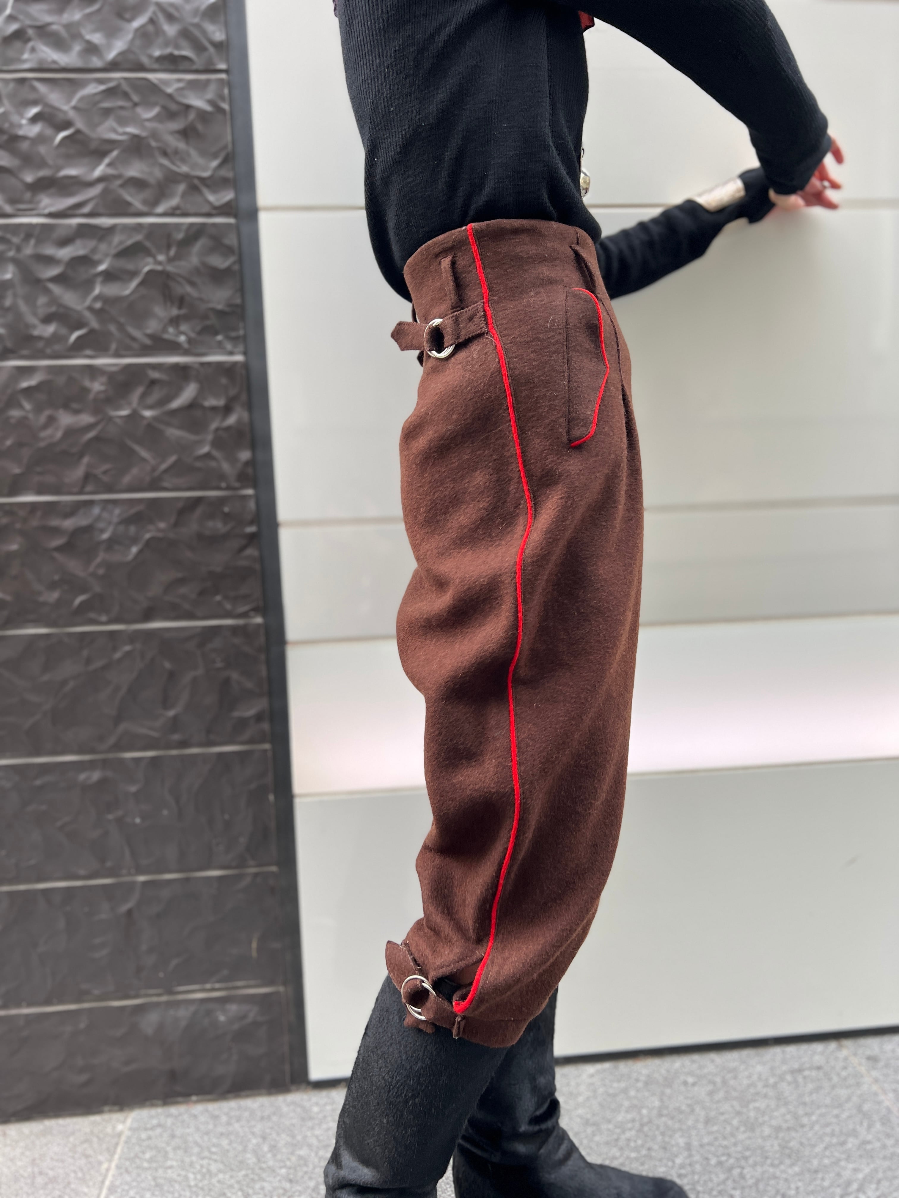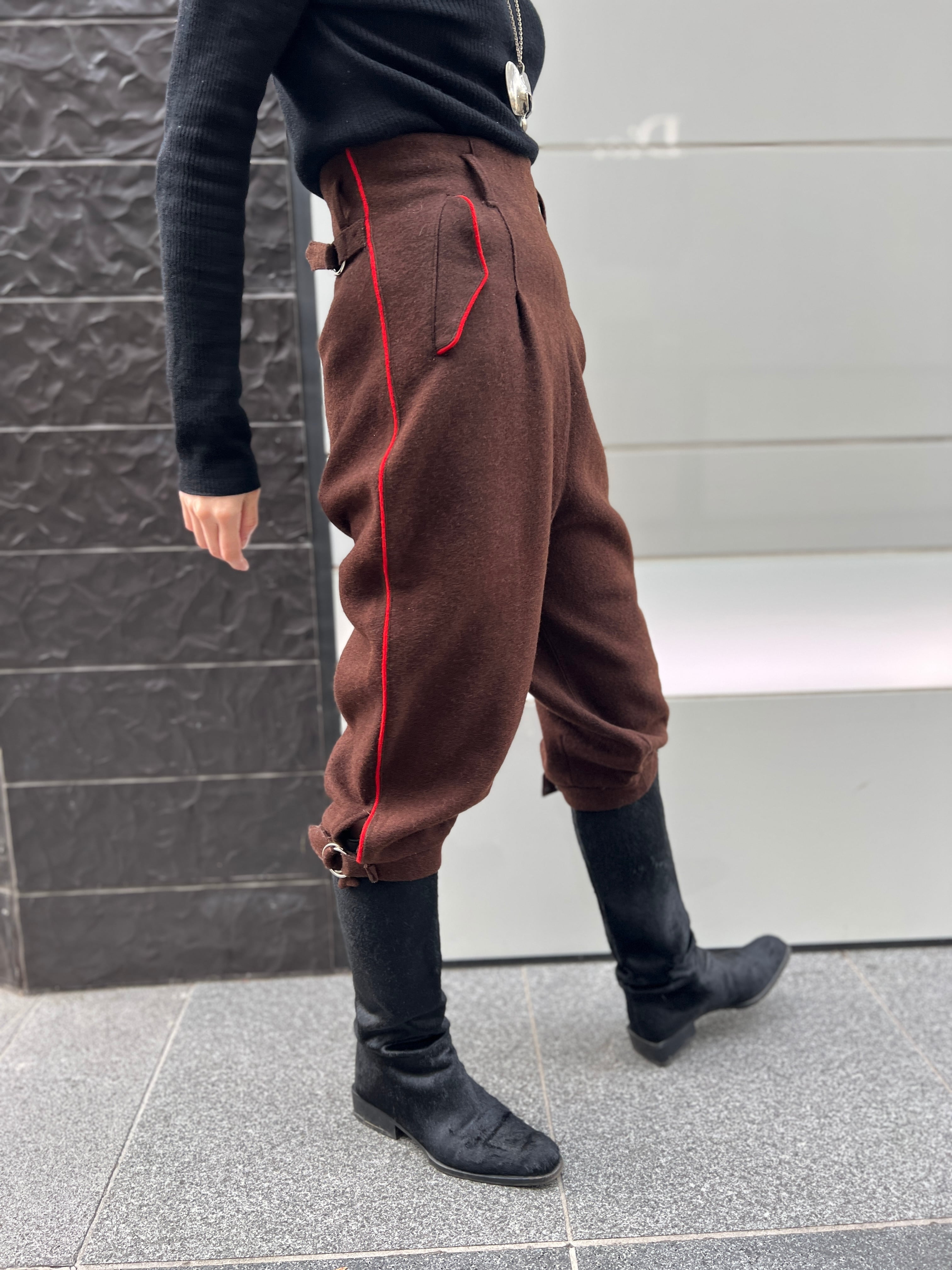 ヴィンテージ ブラウン × 朱赤ライン ウールパンツ