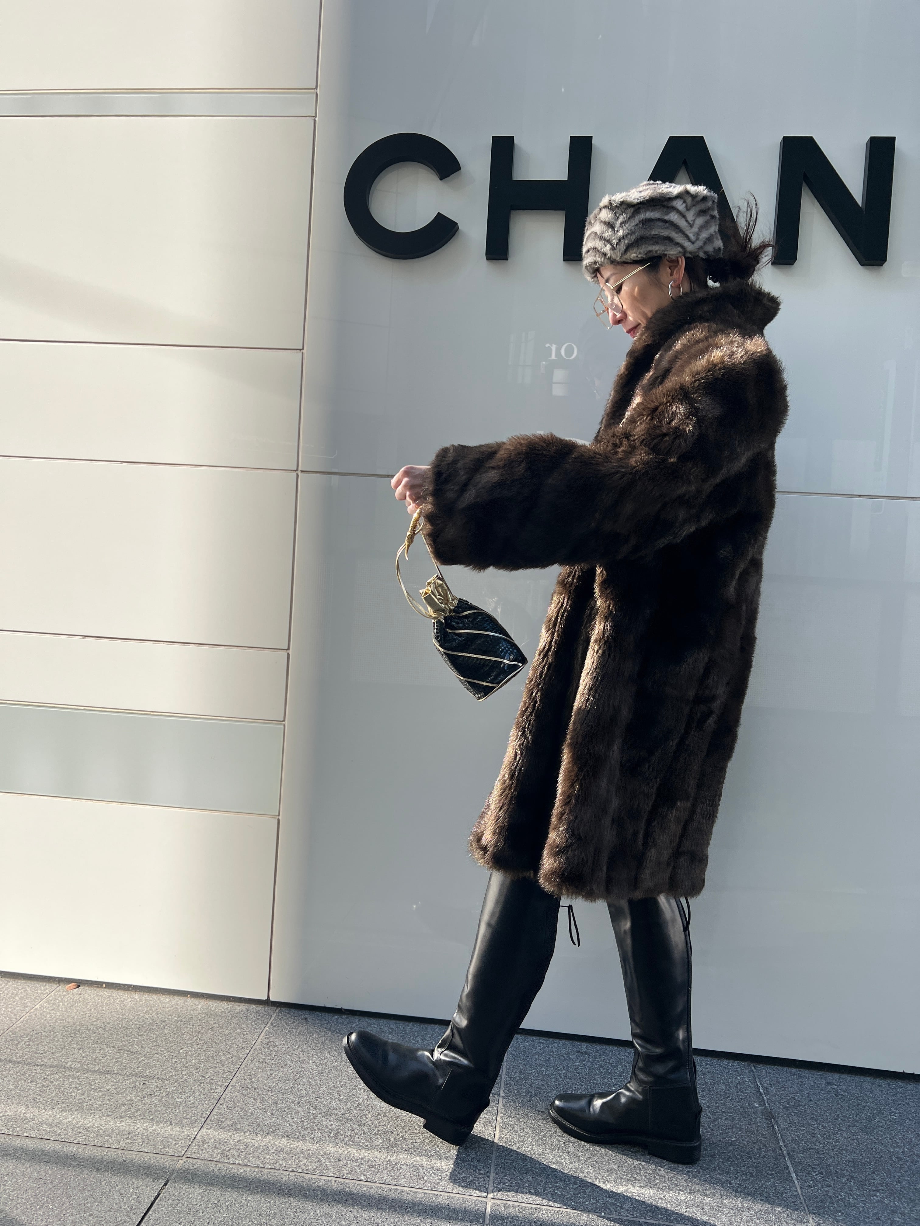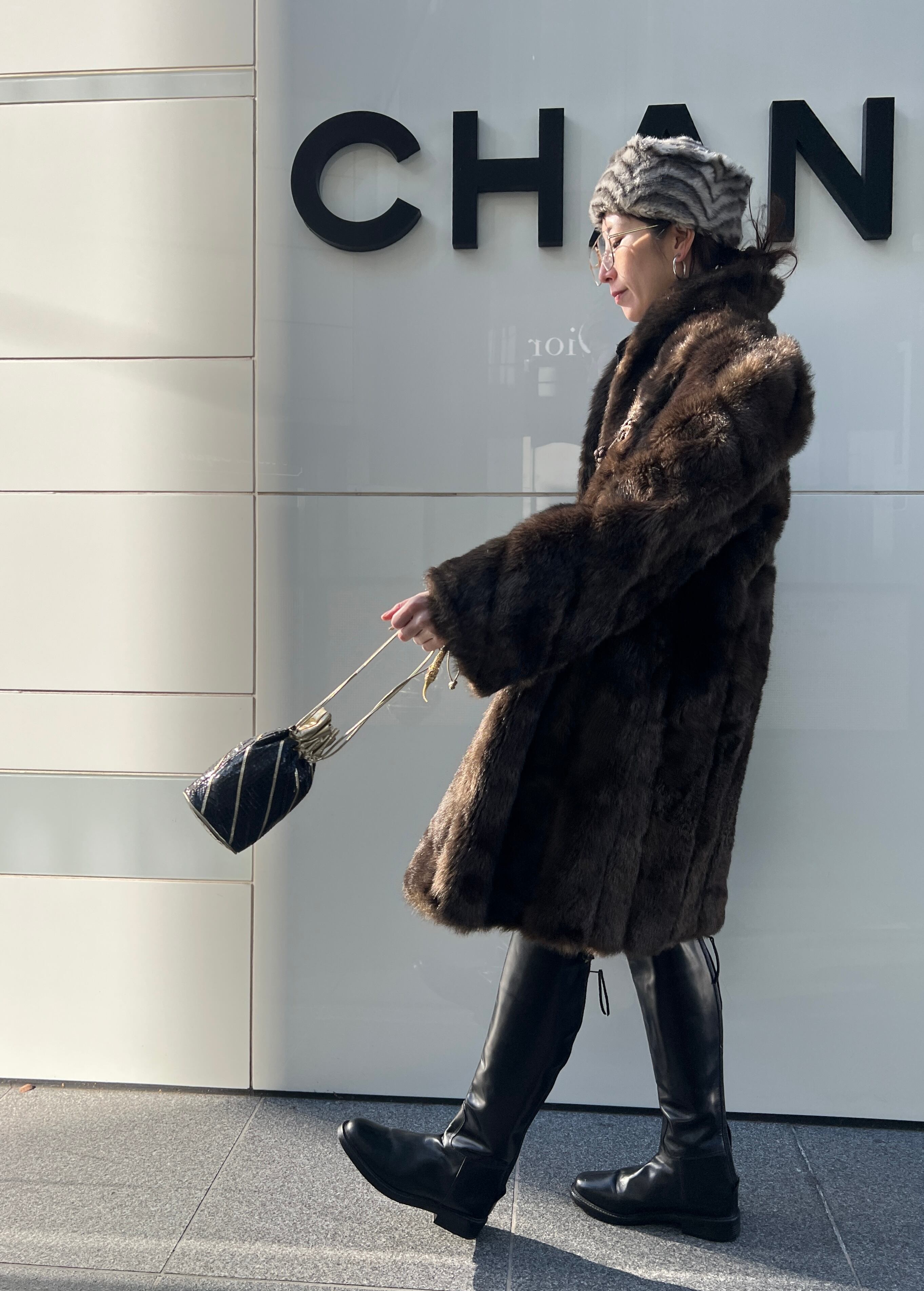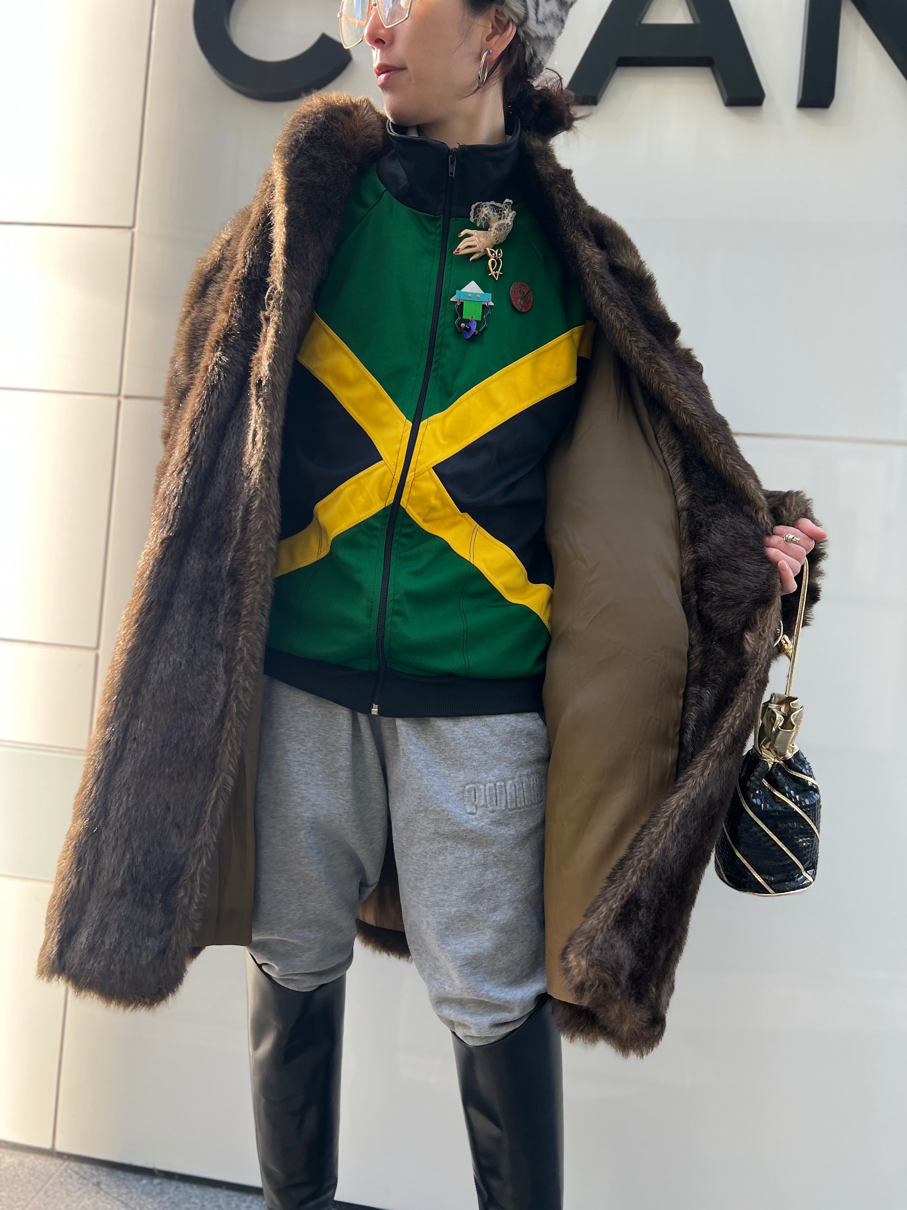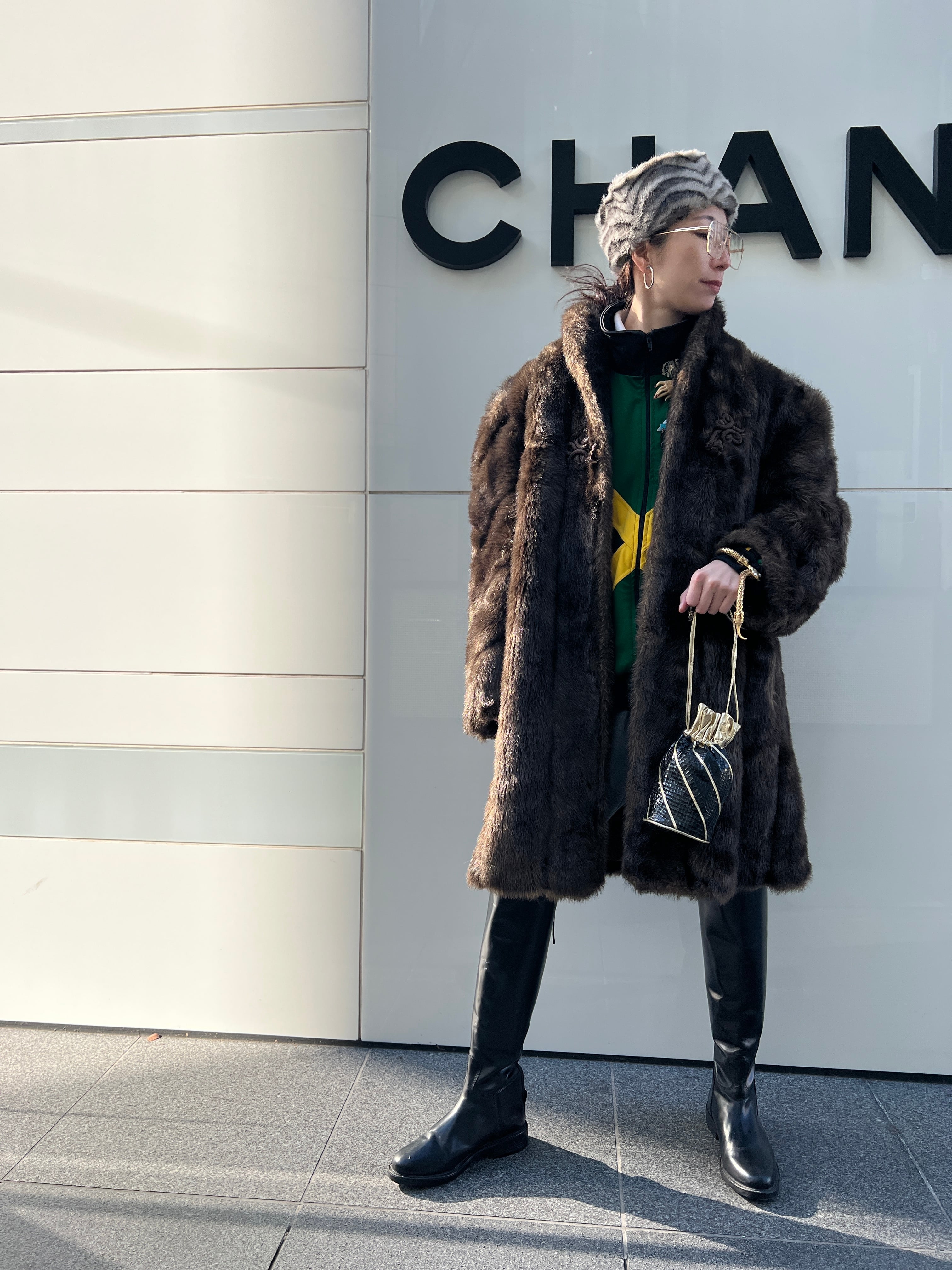 Vintage Big size Chinese dark brown fake fur coat ( ヴィンテージ ビッグサイズ チャイニーズ 焦げ茶色 フェイクファー コート