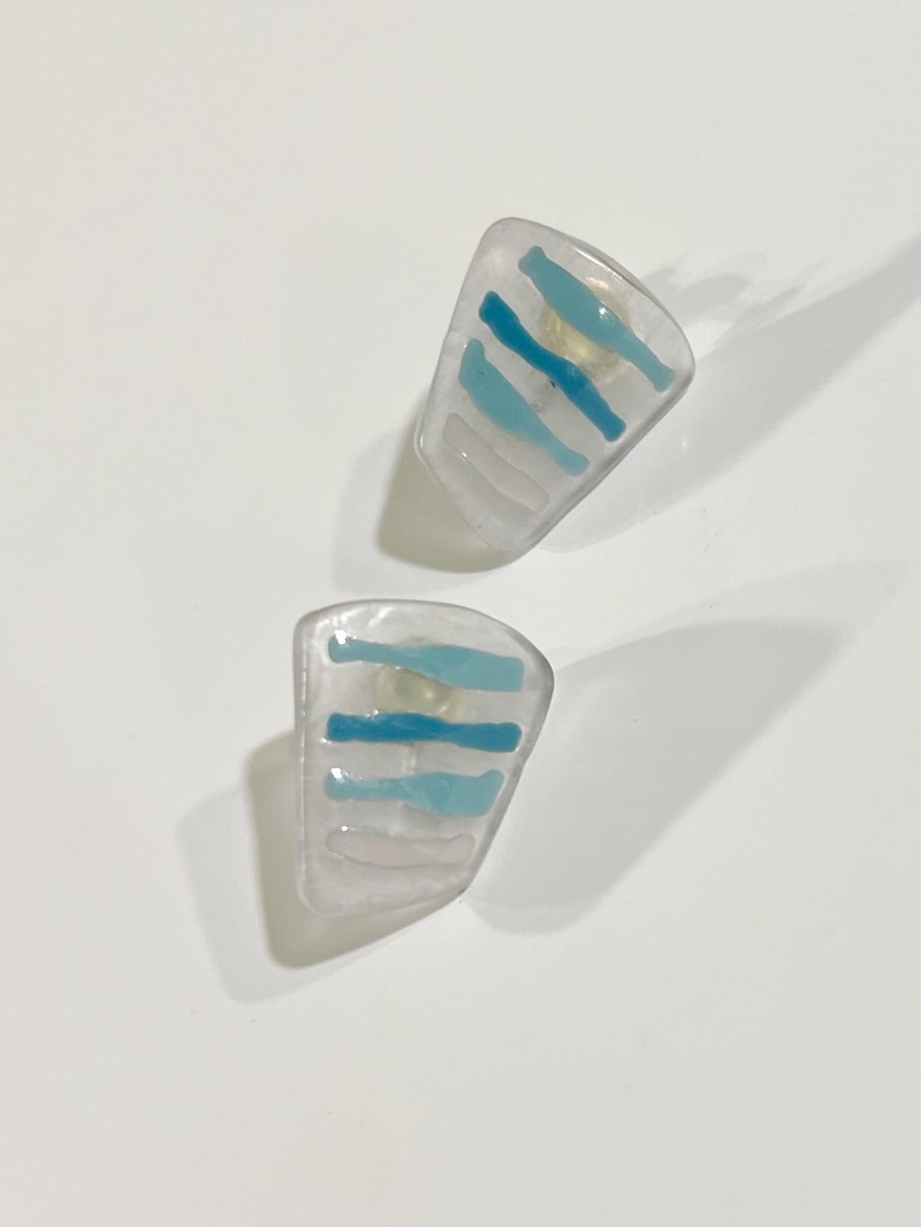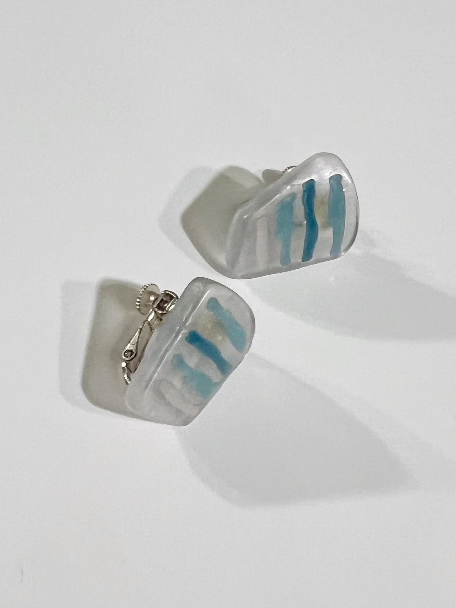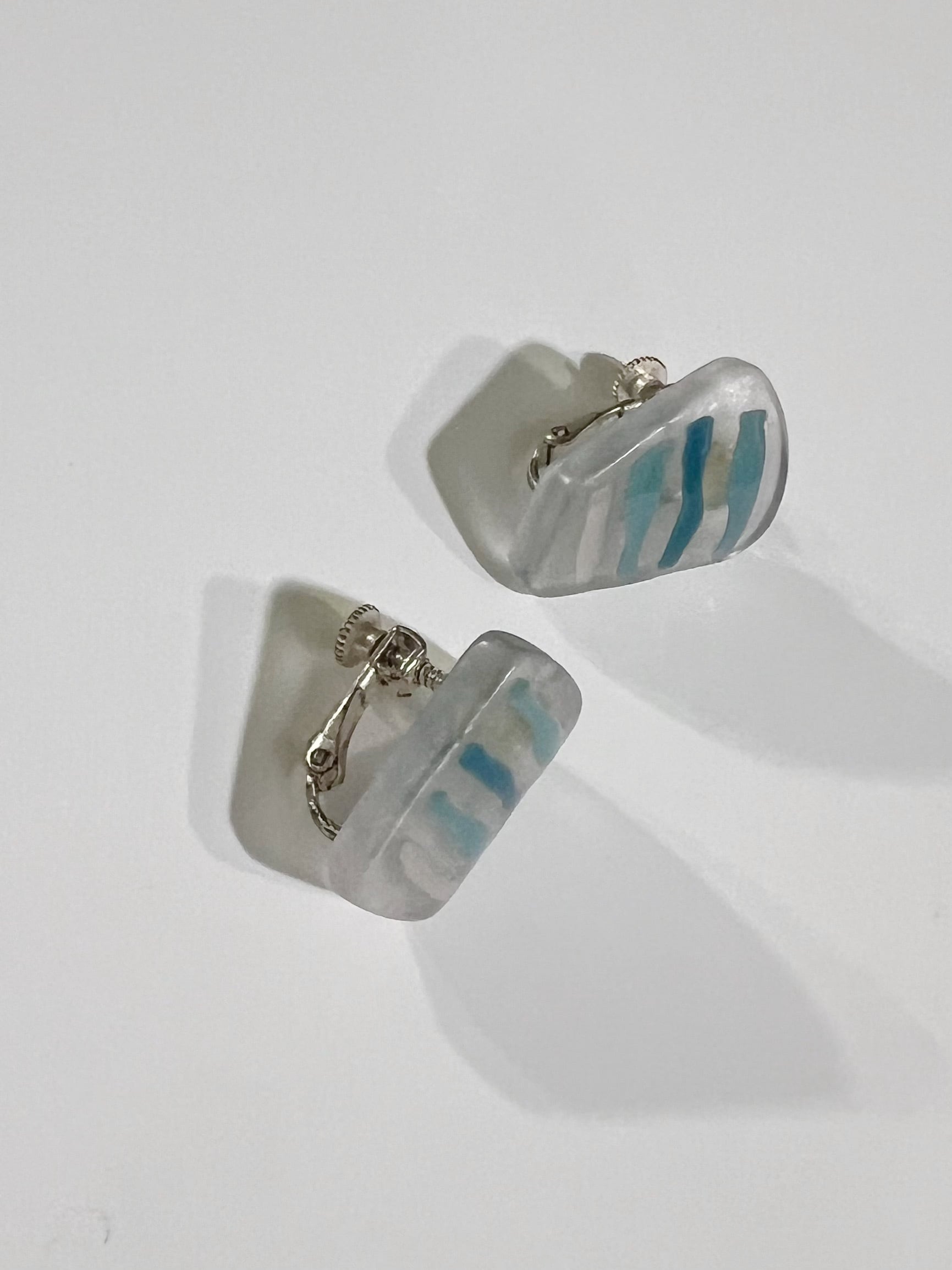 Vintage clear × blue handpaint earrings ( ヴィンテージ クリア × ブルー ハンドペイント イヤリング )