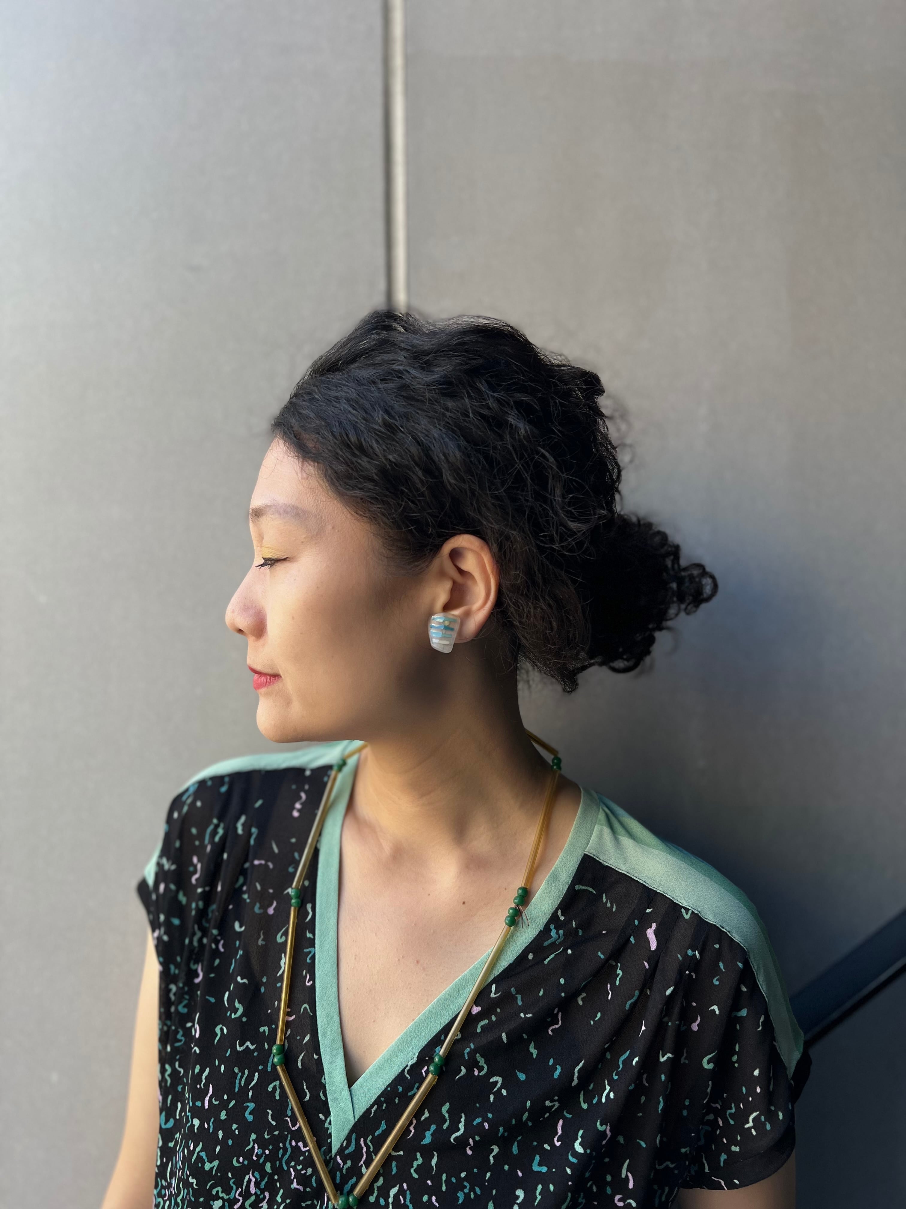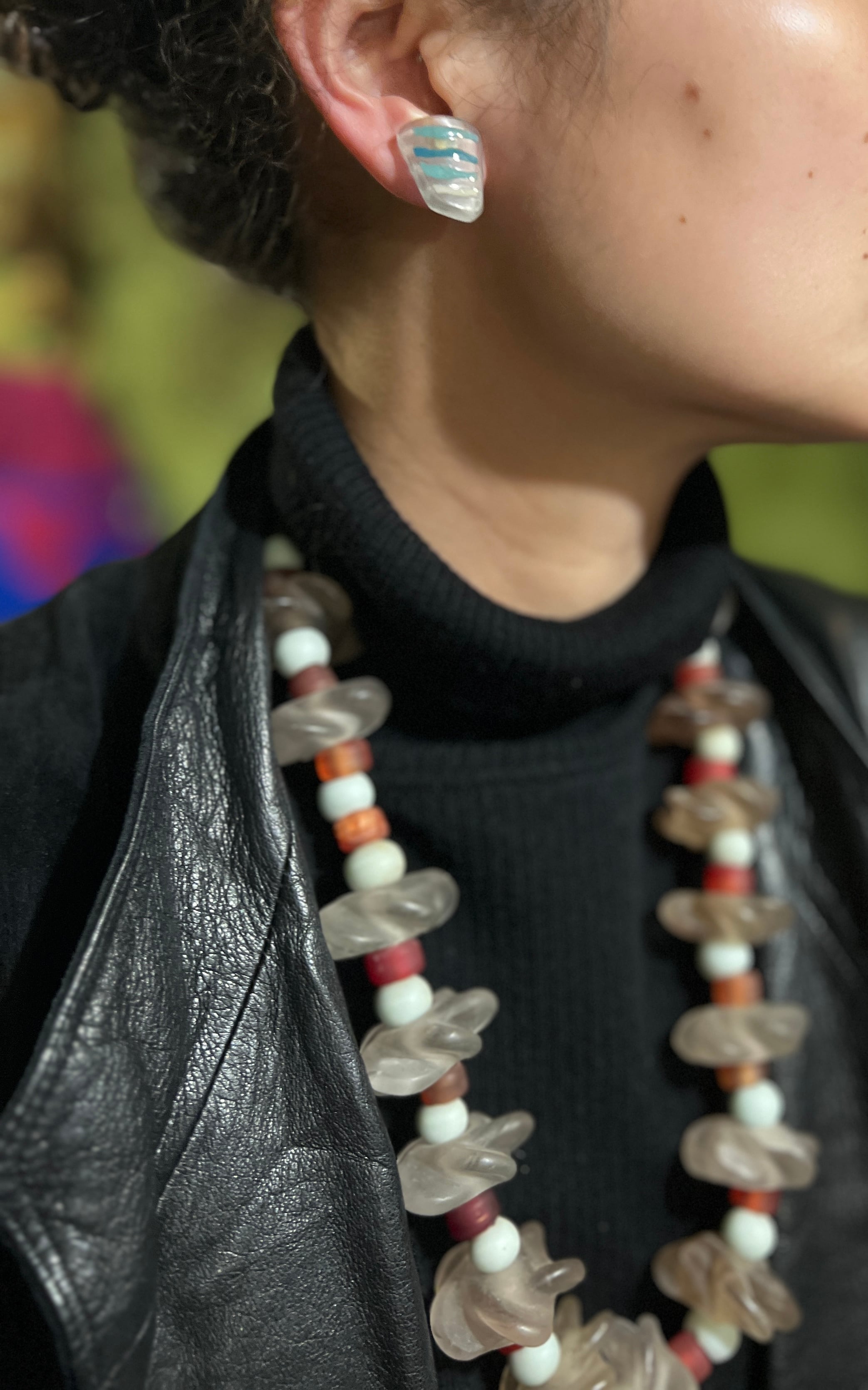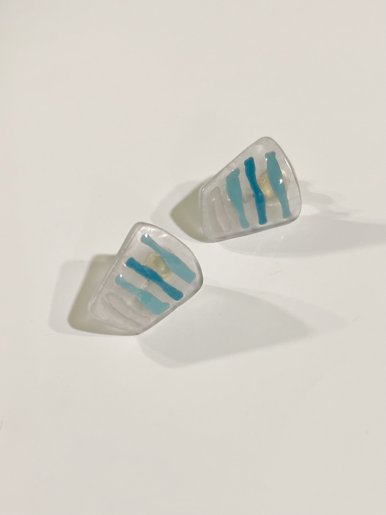 Vintage clear × blue handpaint earrings ( ヴィンテージ クリア × ブルー ハンドペイント イヤリング )